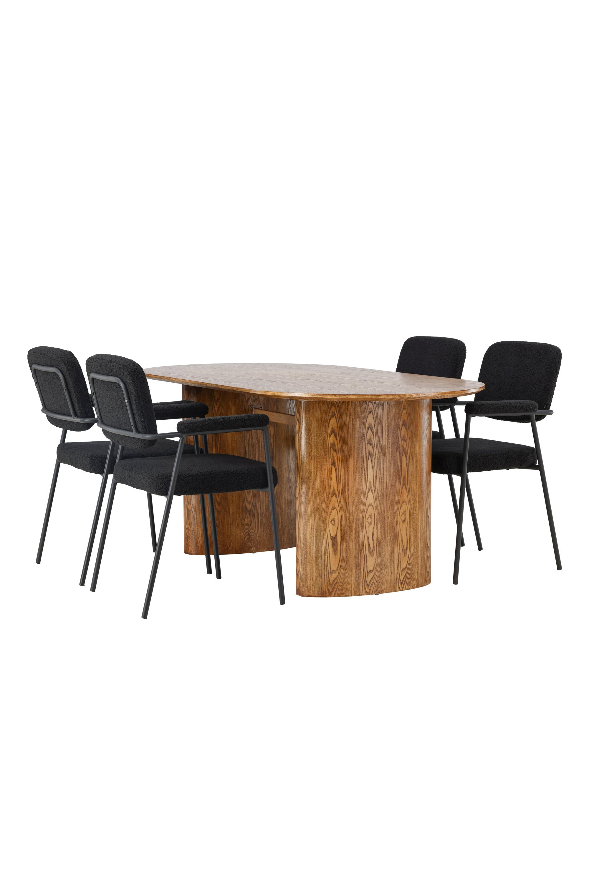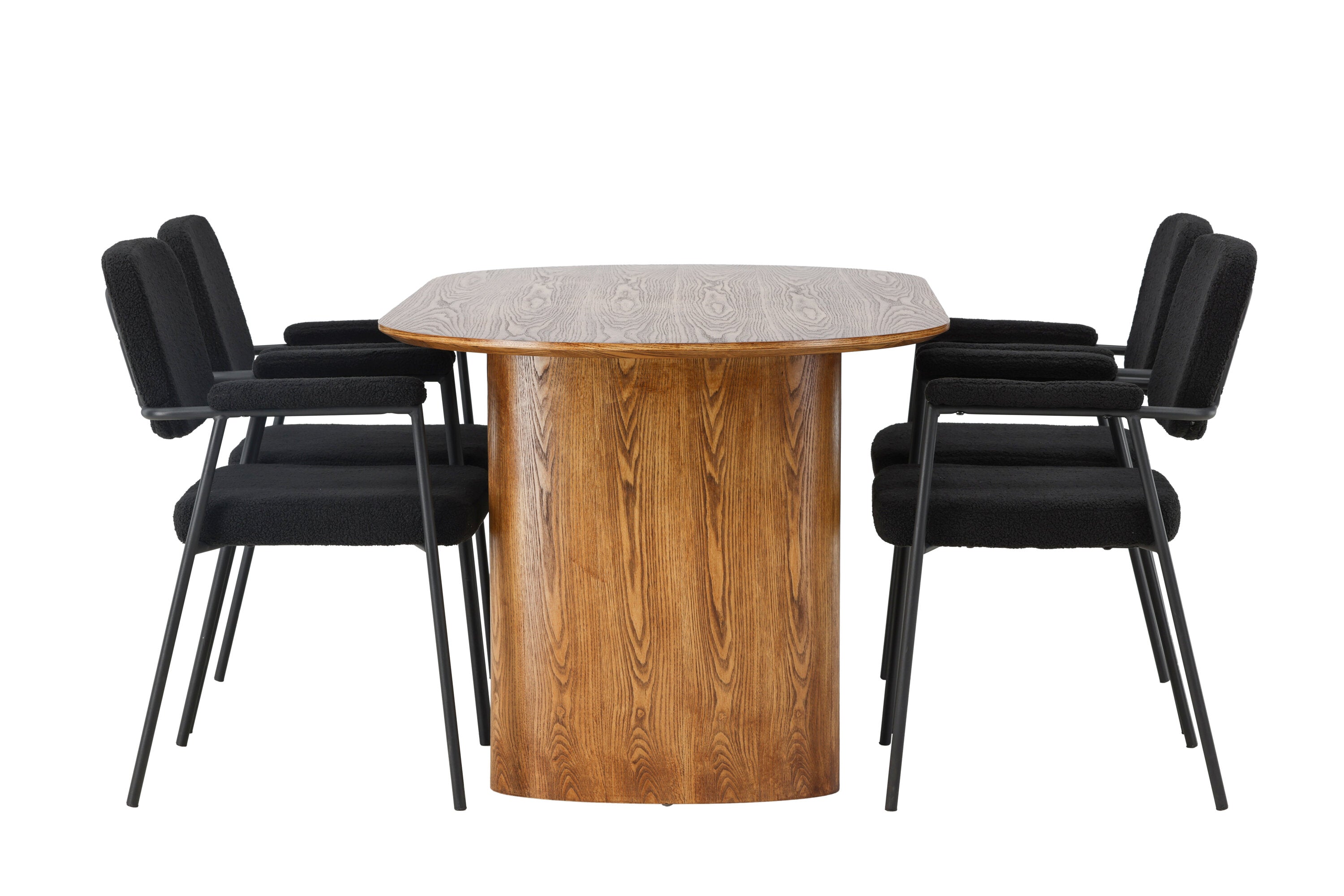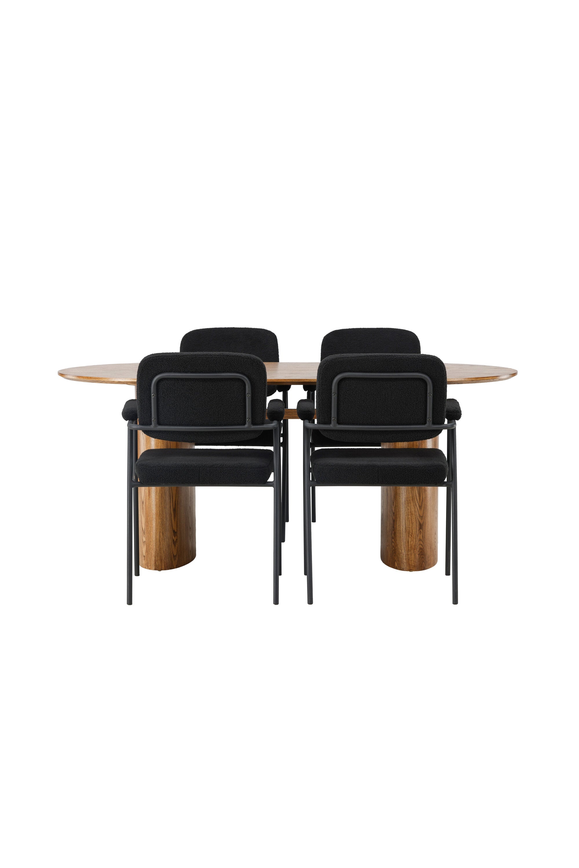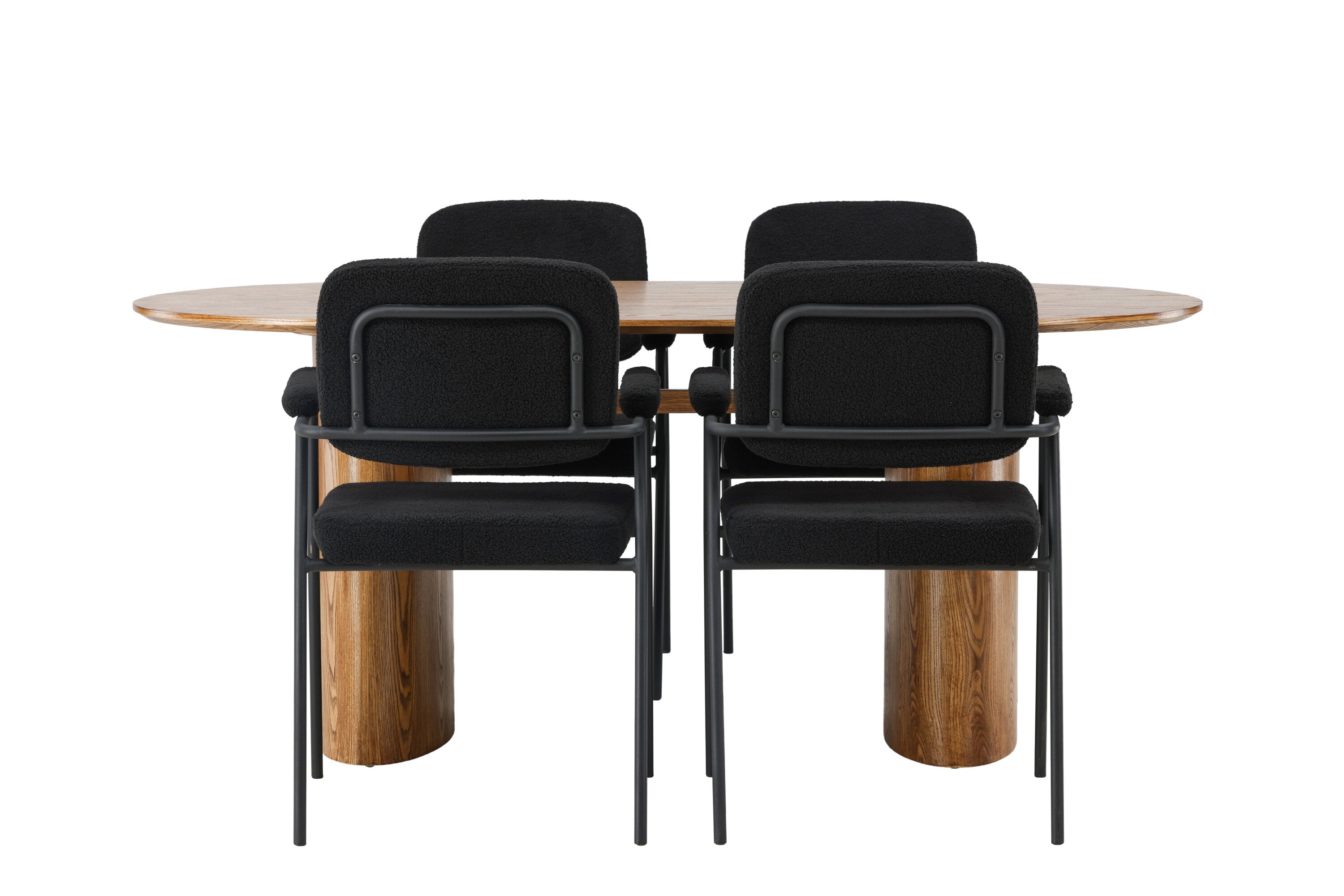 Jídelní stůl Isolde 140*75 - Nature / Nature MDF + Jídelní židle Yesterday - Black / Black Boucle _4