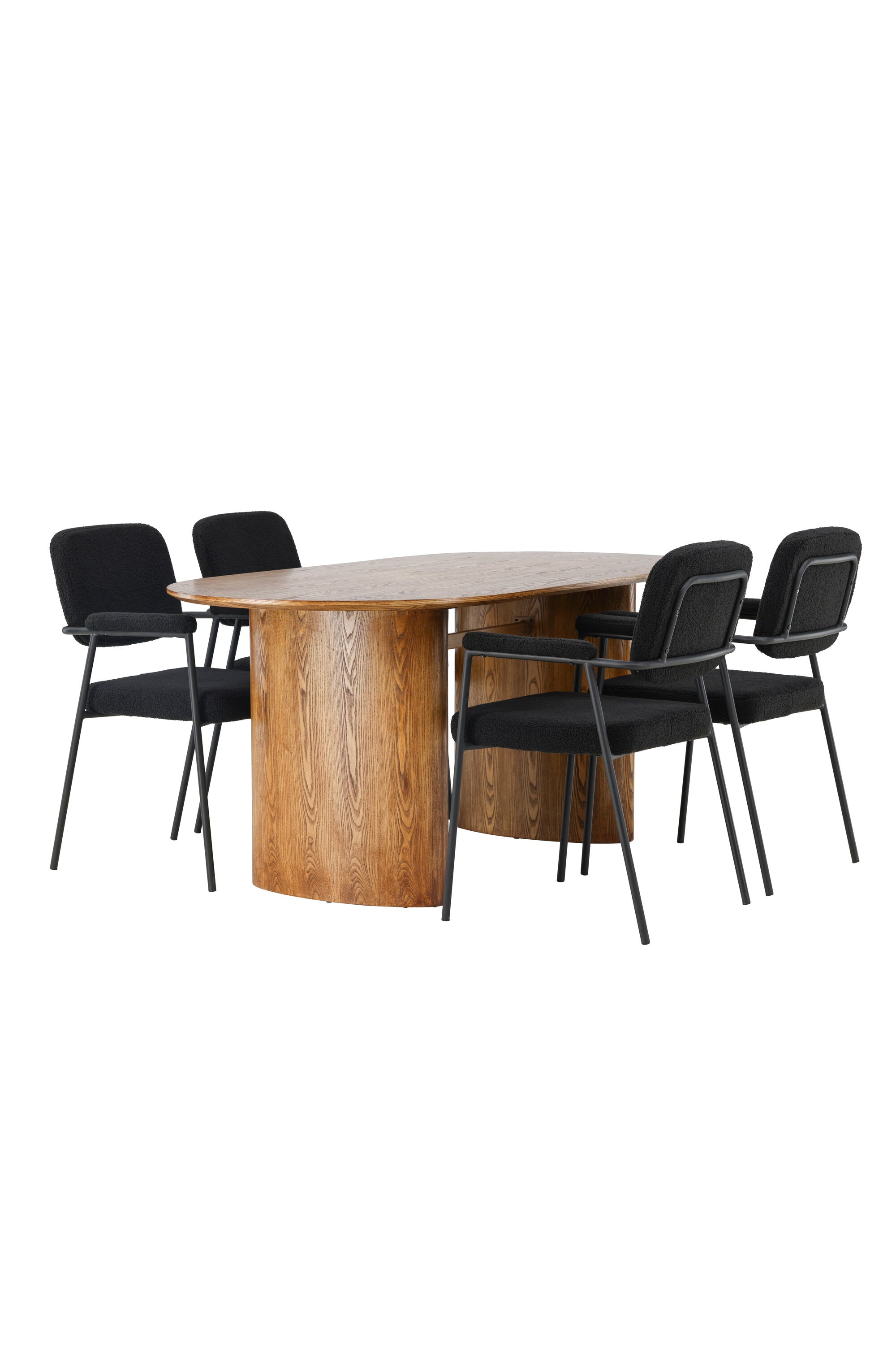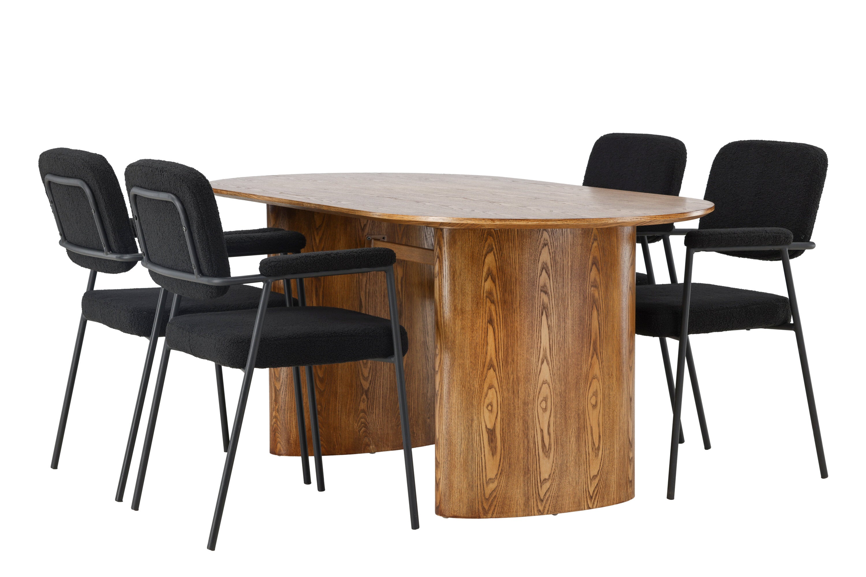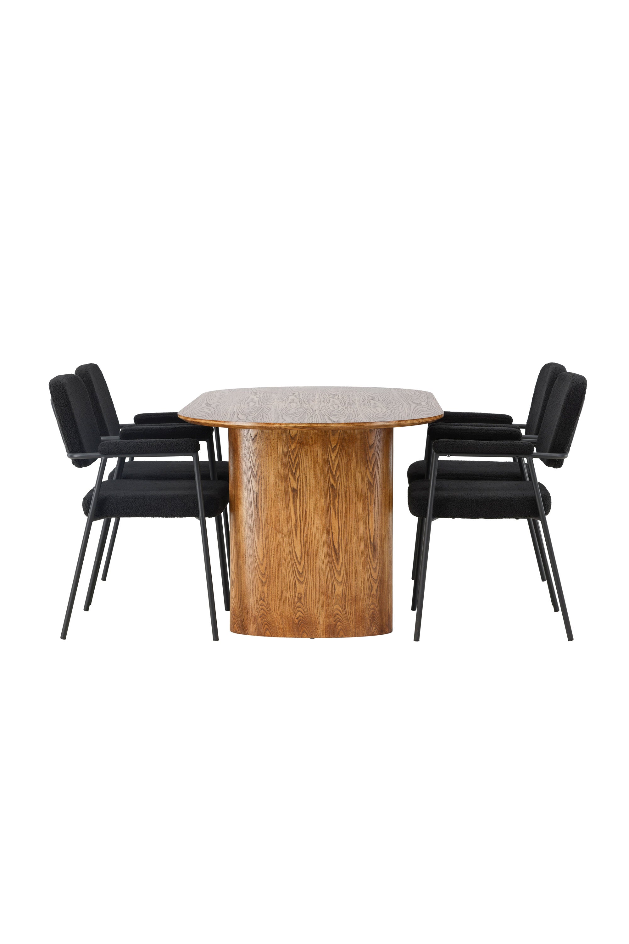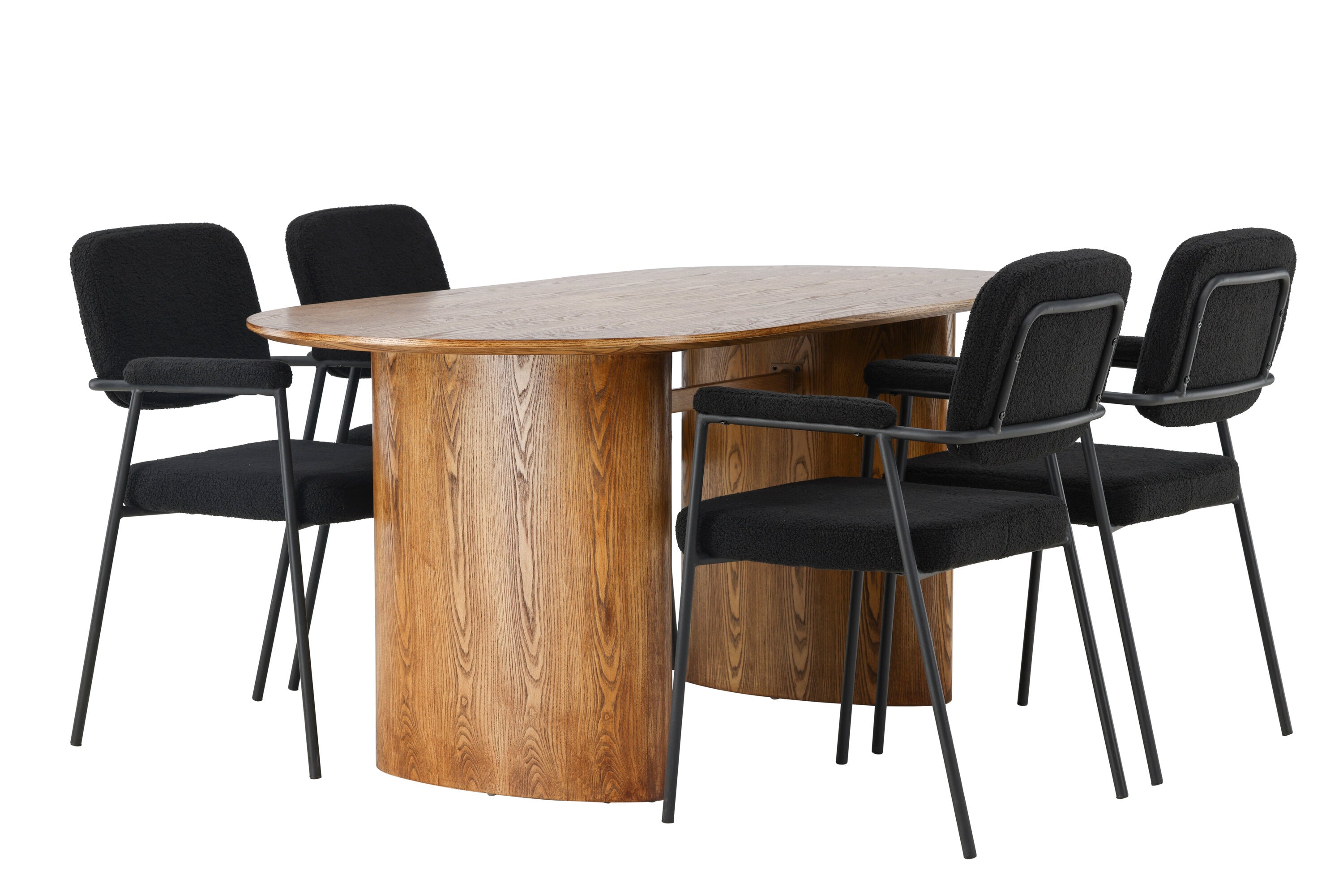Jídelní stůl Isolde 140*75 - Nature / Nature MDF + Jídelní židle Yesterday - Black / Black Boucle _4