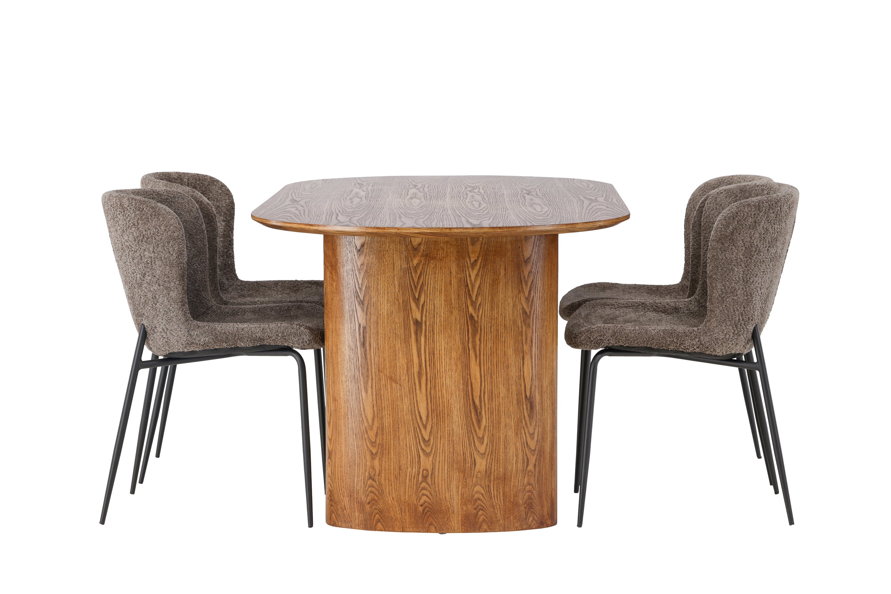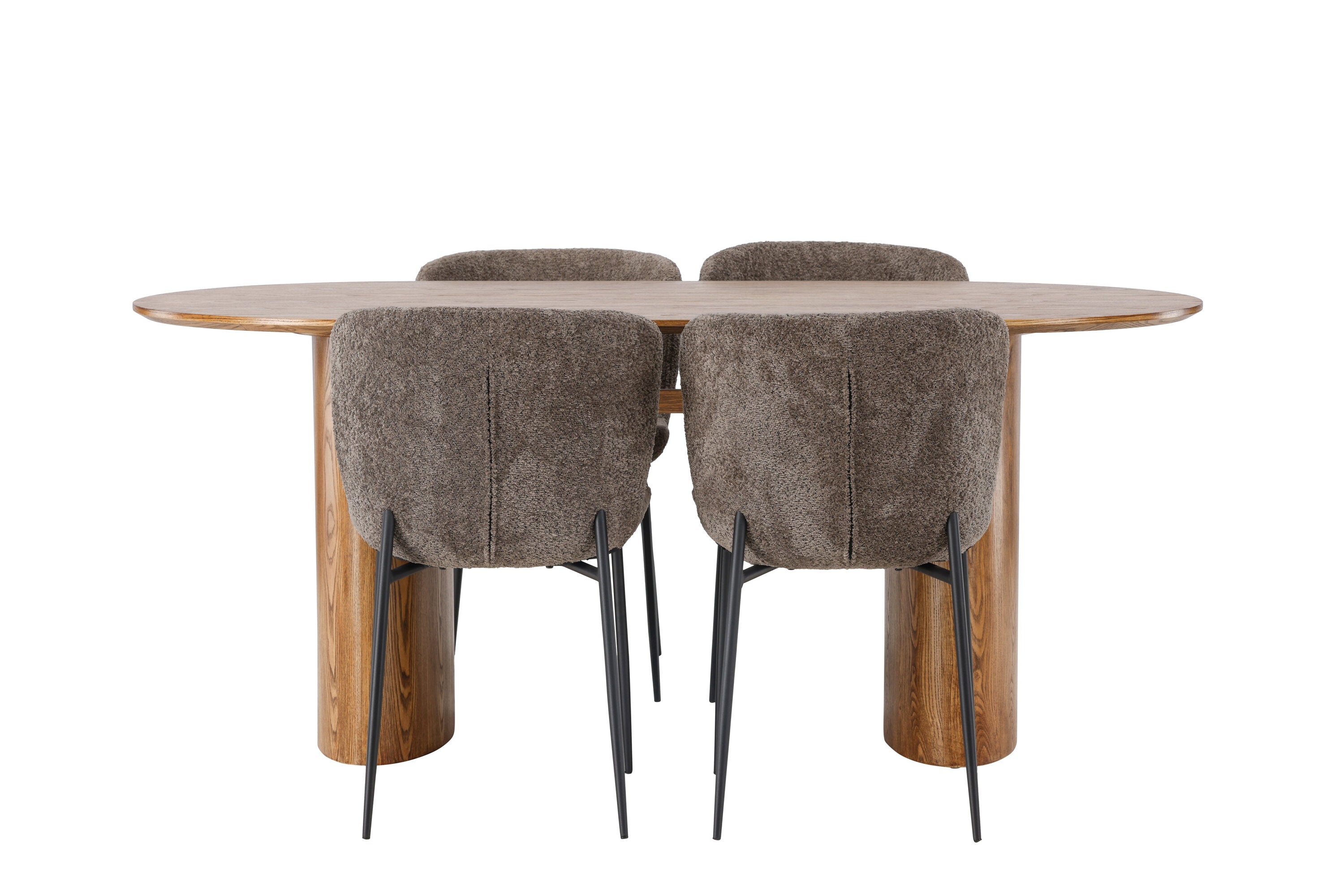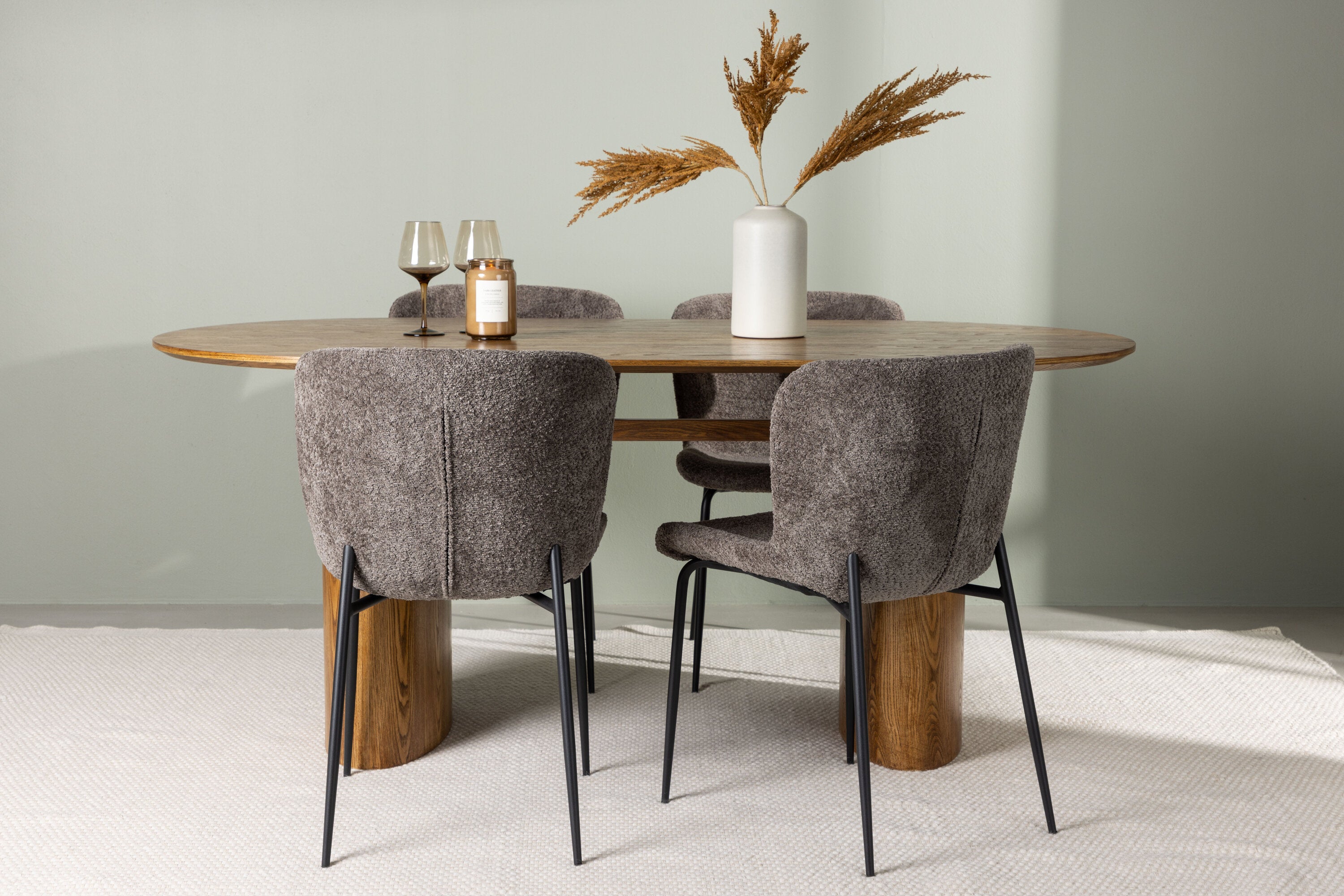 Jídelní stůl Isolde 140*75 - přírodní / přírodní MDF + jídelní židle Modesto - šedá / kouřová černá Boucle _4