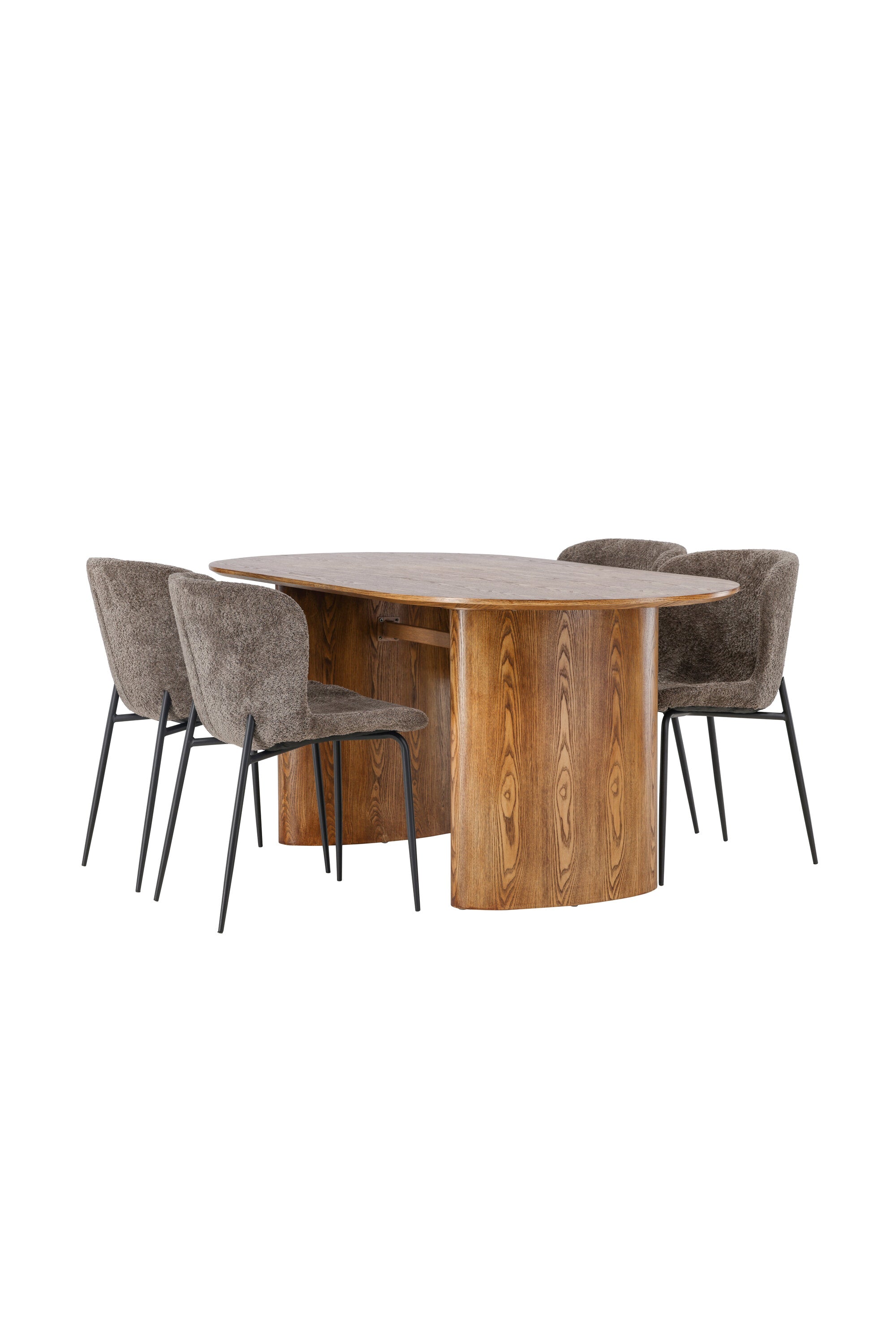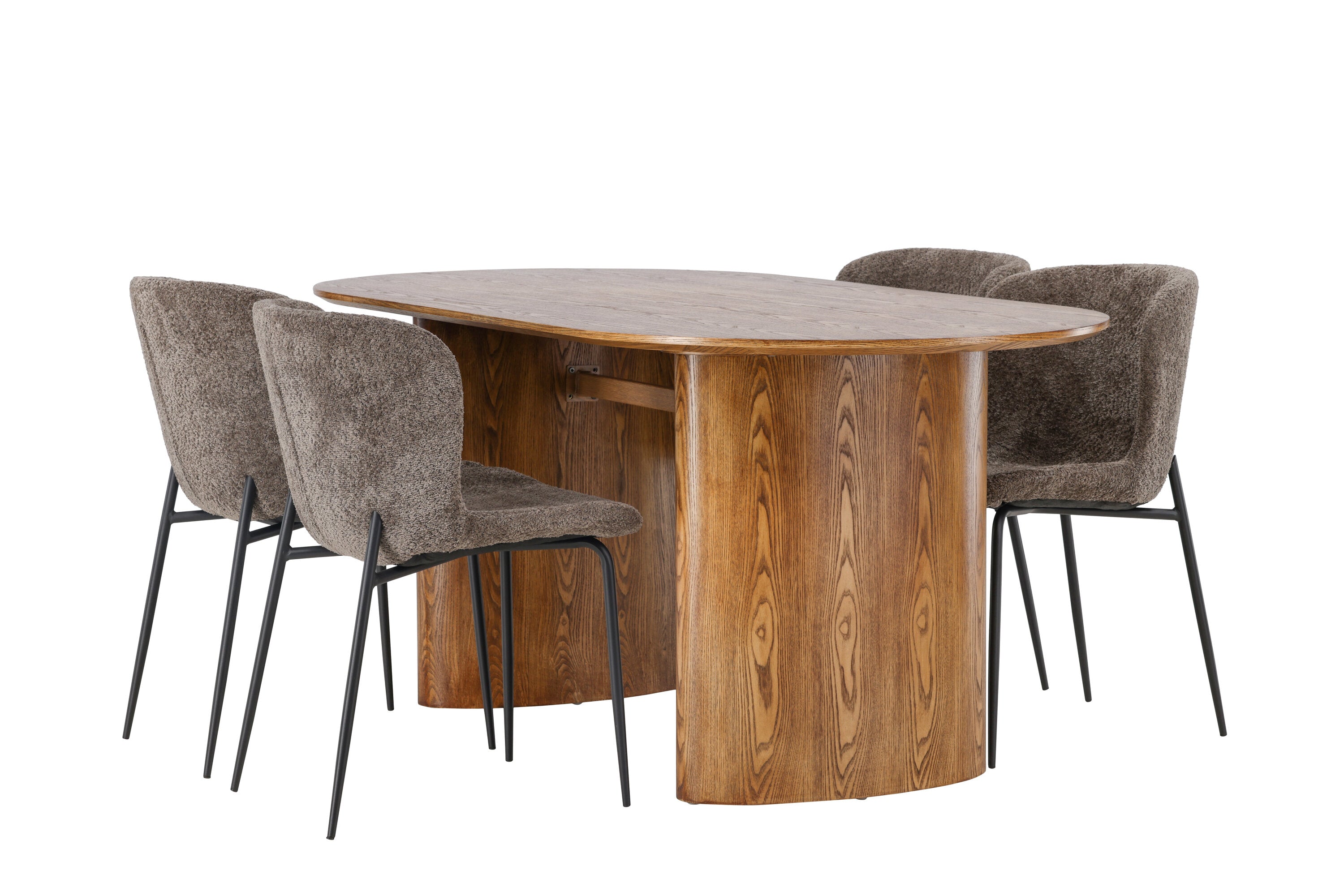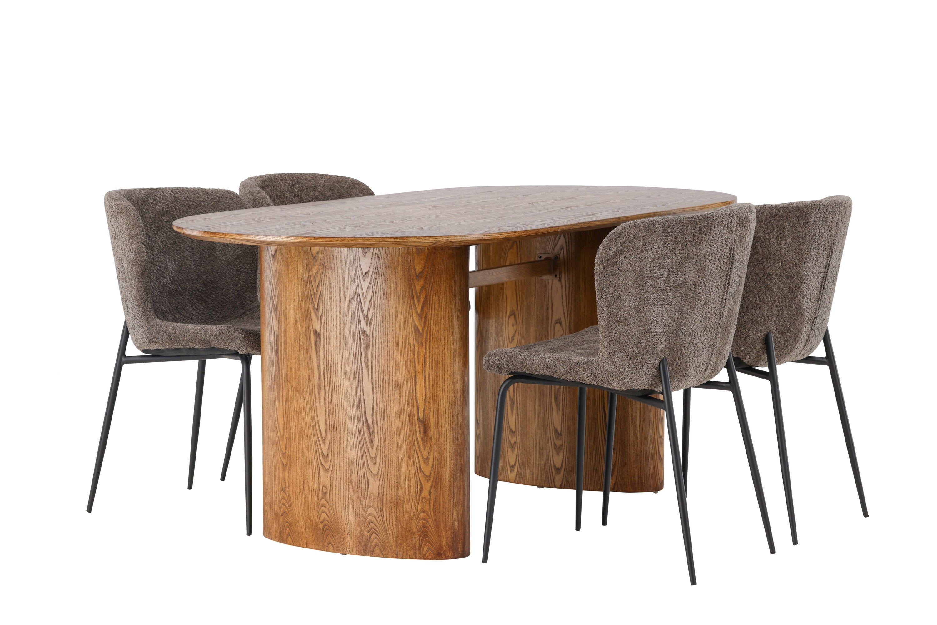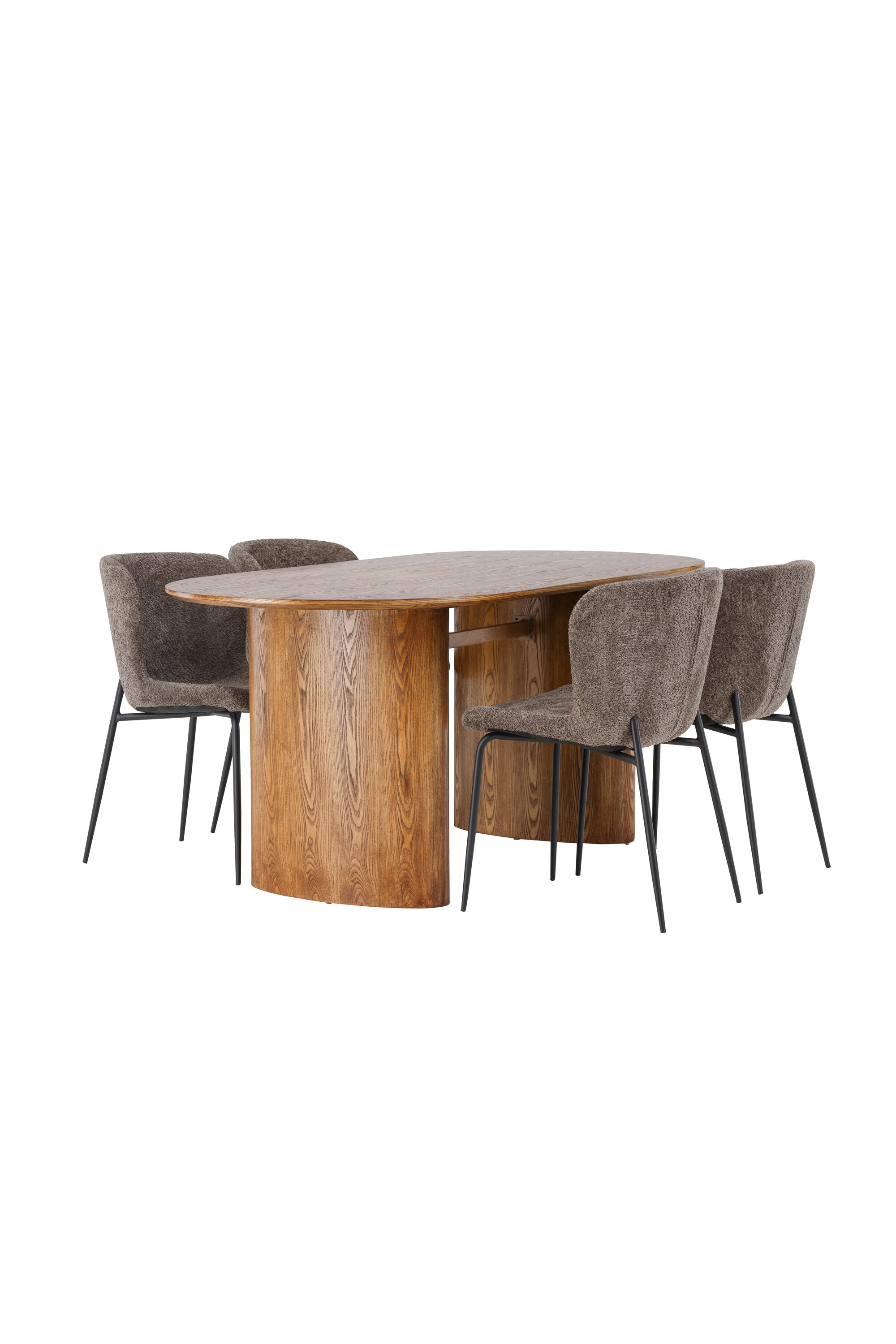Jídelní stůl Isolde 140*75 - přírodní / přírodní MDF + jídelní židle Modesto - šedá / kouřová černá Boucle _4