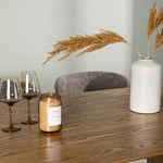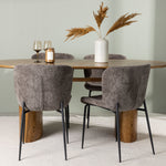 Jídelní set doplňují naše plyšové jídelní židle ze série Modesto. Tato židle je čalouněná měkkou šedou plyšovou látkou, která poskytuje hřejivý a příjemný pocit. Elegantní, štíhlé černé kovové nohy židle dodávají designu moderní nádech. Mírně zaoblené opěradlo a polstrovaný sedák nabízejí nejen elegantní estetiku, ale také poskytují extra pohodlí, což vám umožní vychutnat si dlouhé večeře.