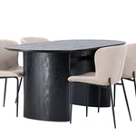 Jídelní stůl Isolde 180*75 - Černá / Černá MDF + Jídelní židle Modesto - Béžová / Béžová Boucle _4