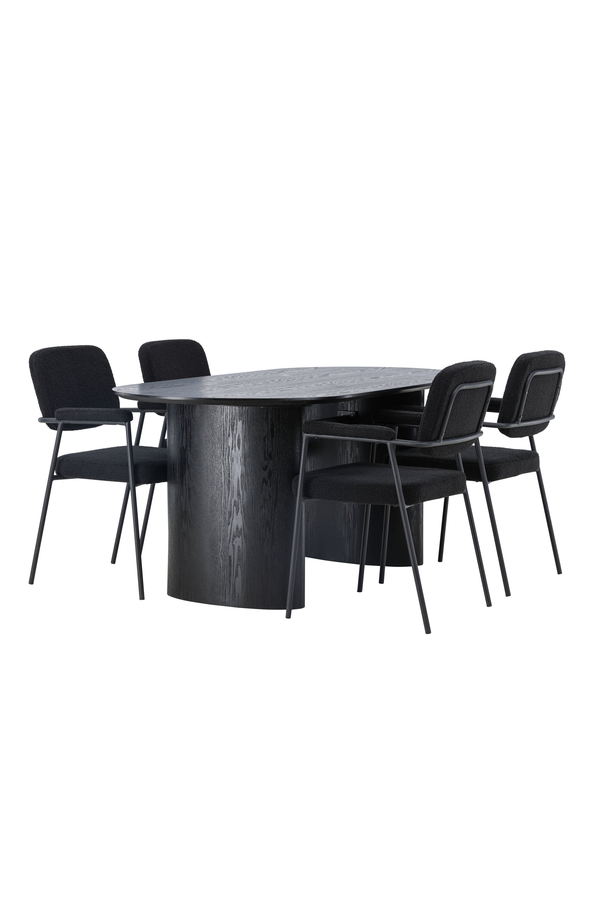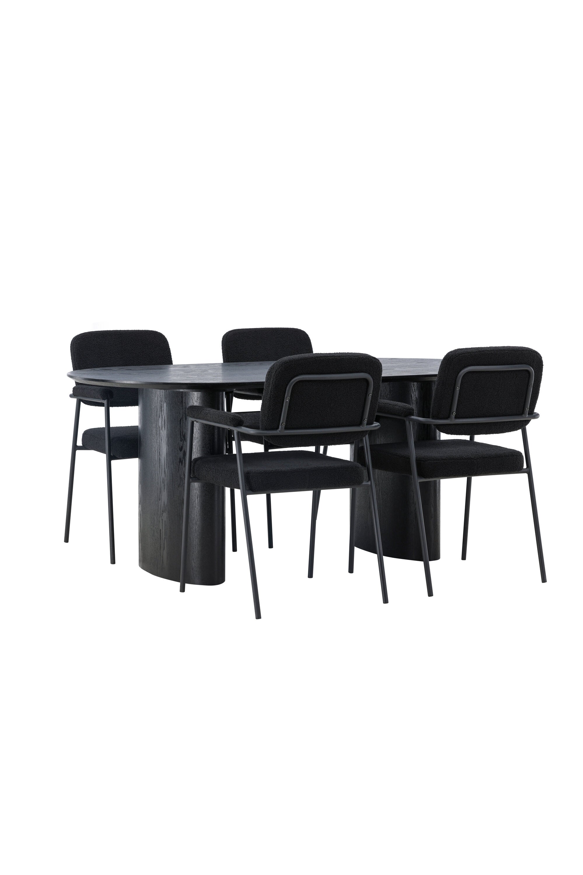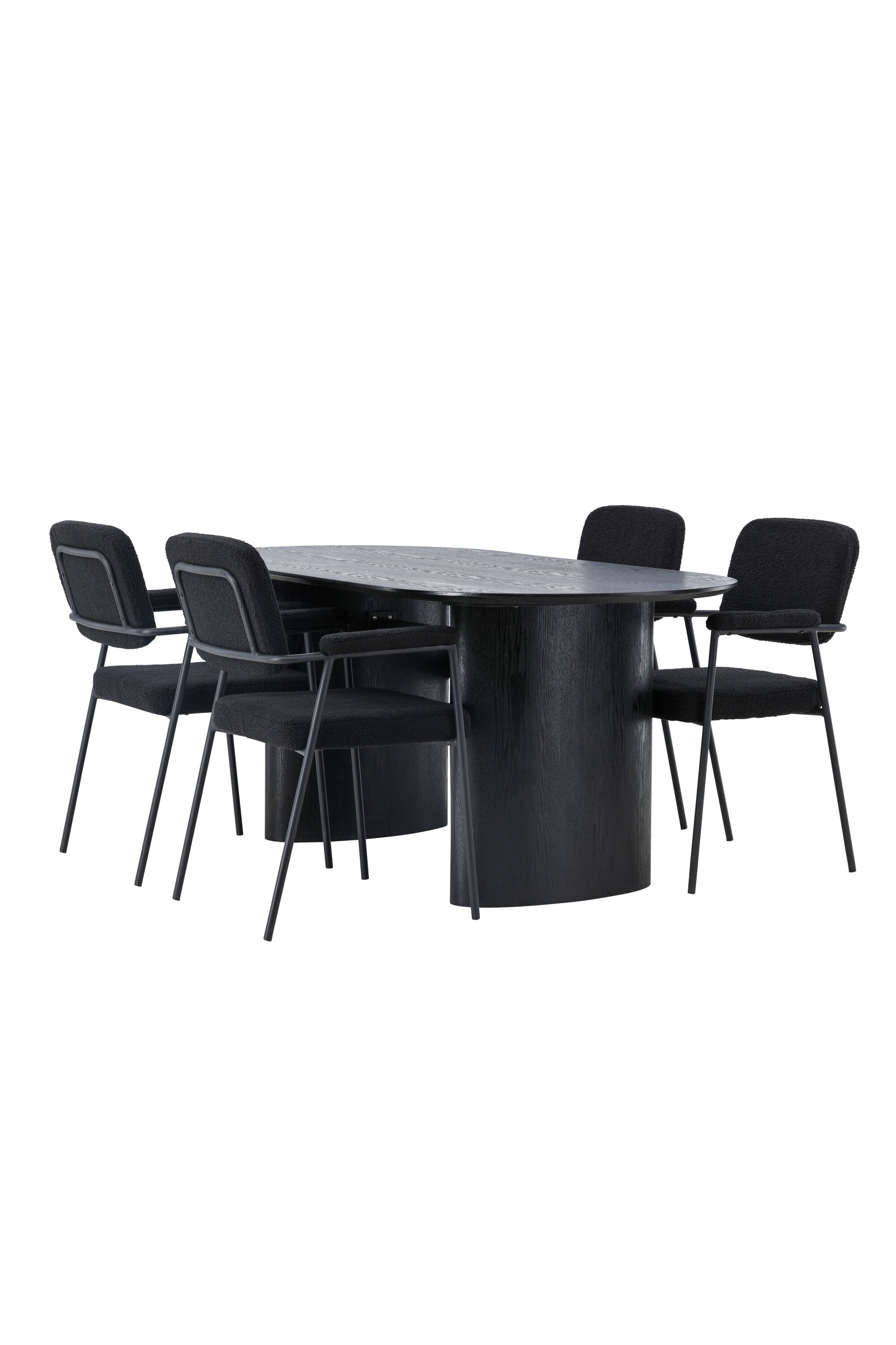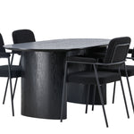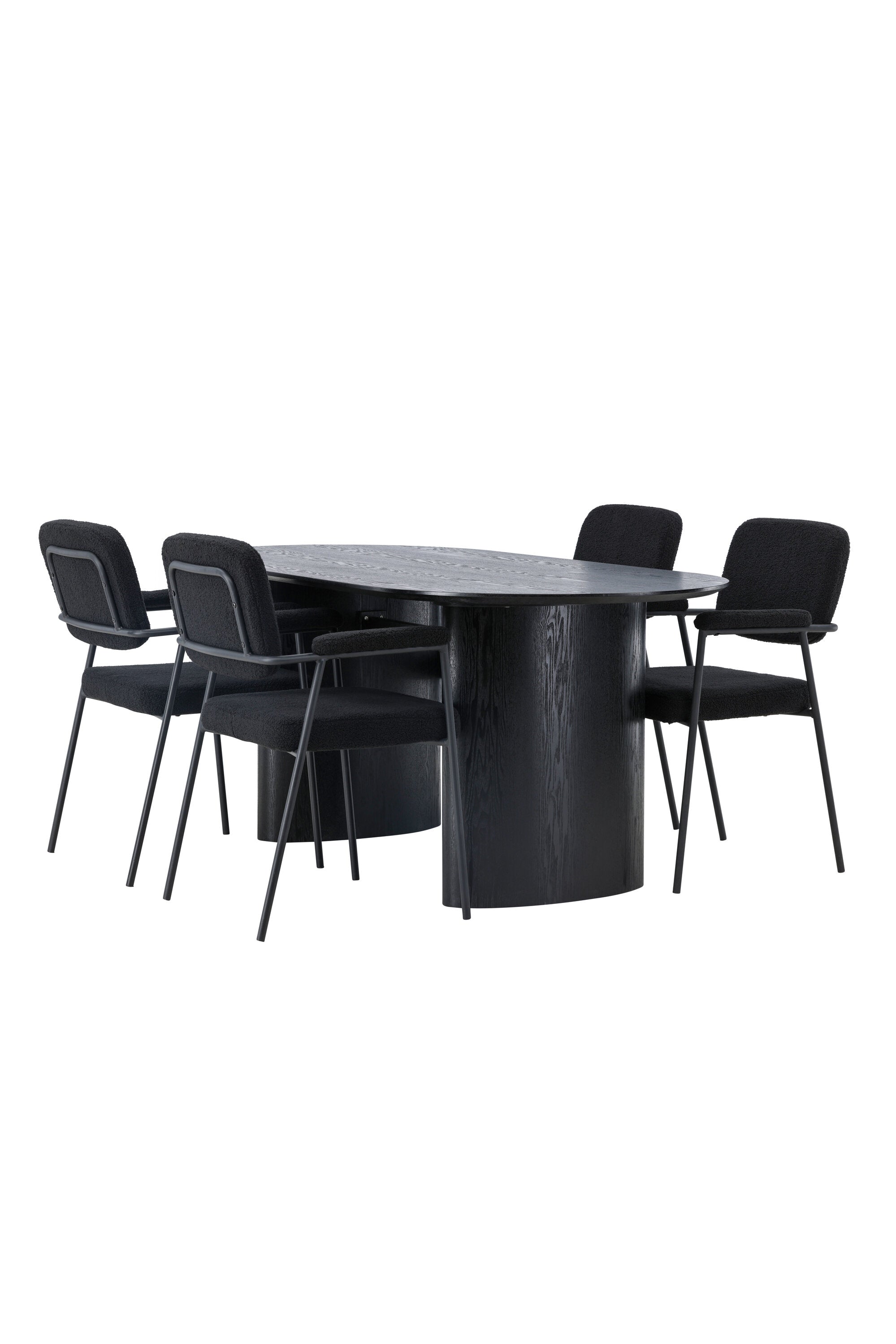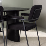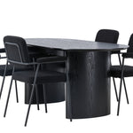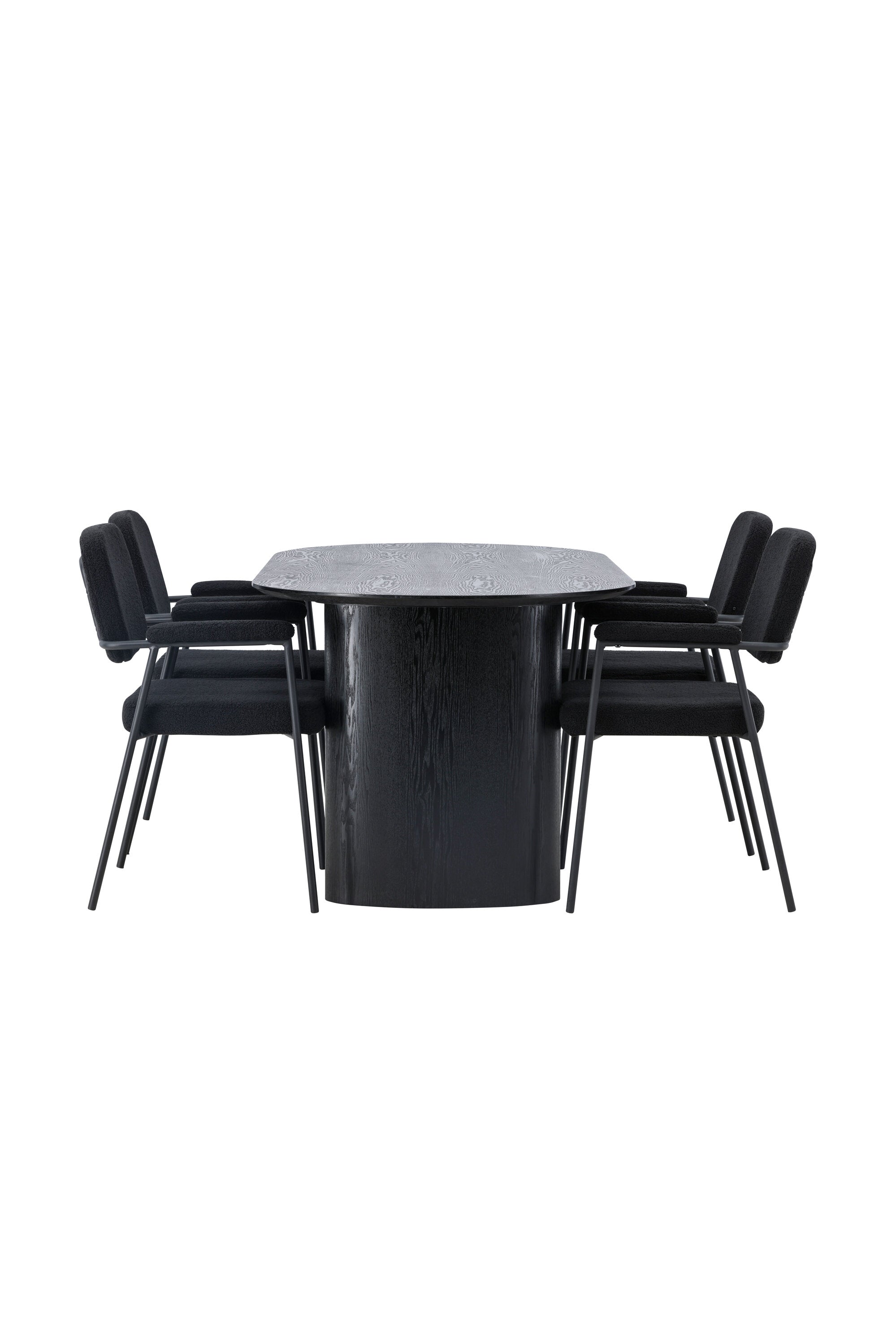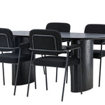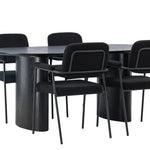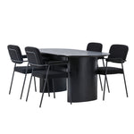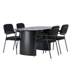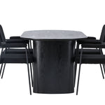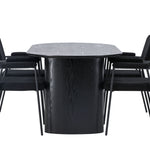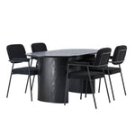 Mělo by to být příjemné usadit se na dobré jídlo! Oválný jídelní stůl Isolde v černé barvě má ​​moderní design s oválnou deskou stolu z MDF a robustním rámem, který působí stabilním dojmem. Živý materiál dává poutače krásný pohyb. Zde s našimi fantastickými černými jídelními židlemi ze série Yesterday. Židle má celočalouněný sedák v černé buklé a úzké nohy s integrovanými područkami v černém kovu. Měkké sedadlo je čalouněné pro větší pohodlí. Jednoduše, fantastická kombinace! Rozměry stolu: 180x75cm.