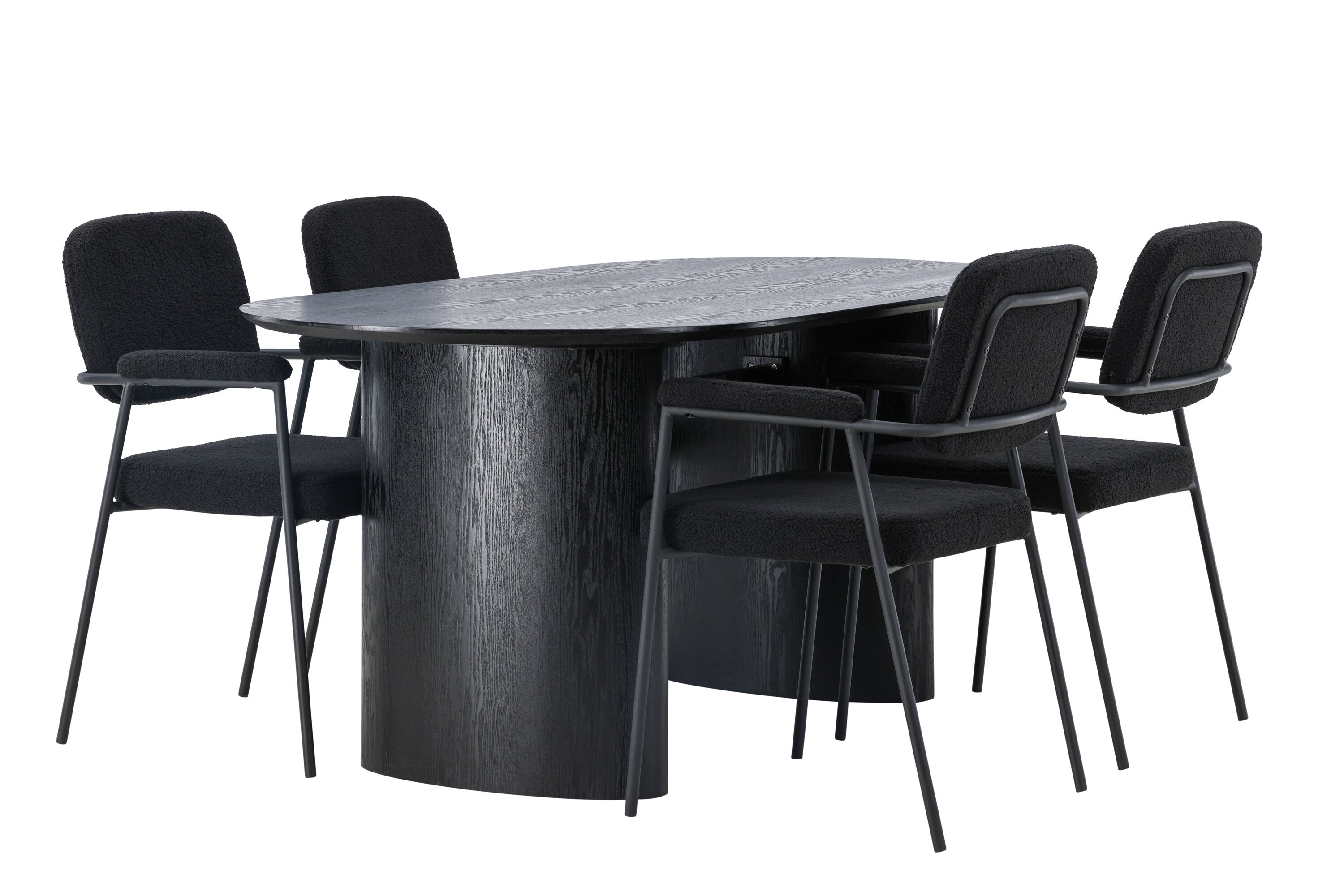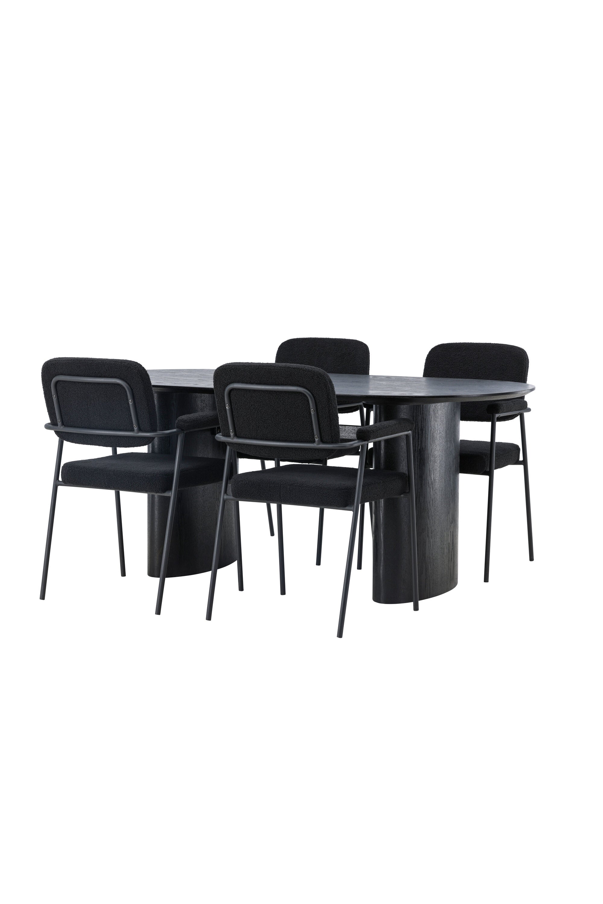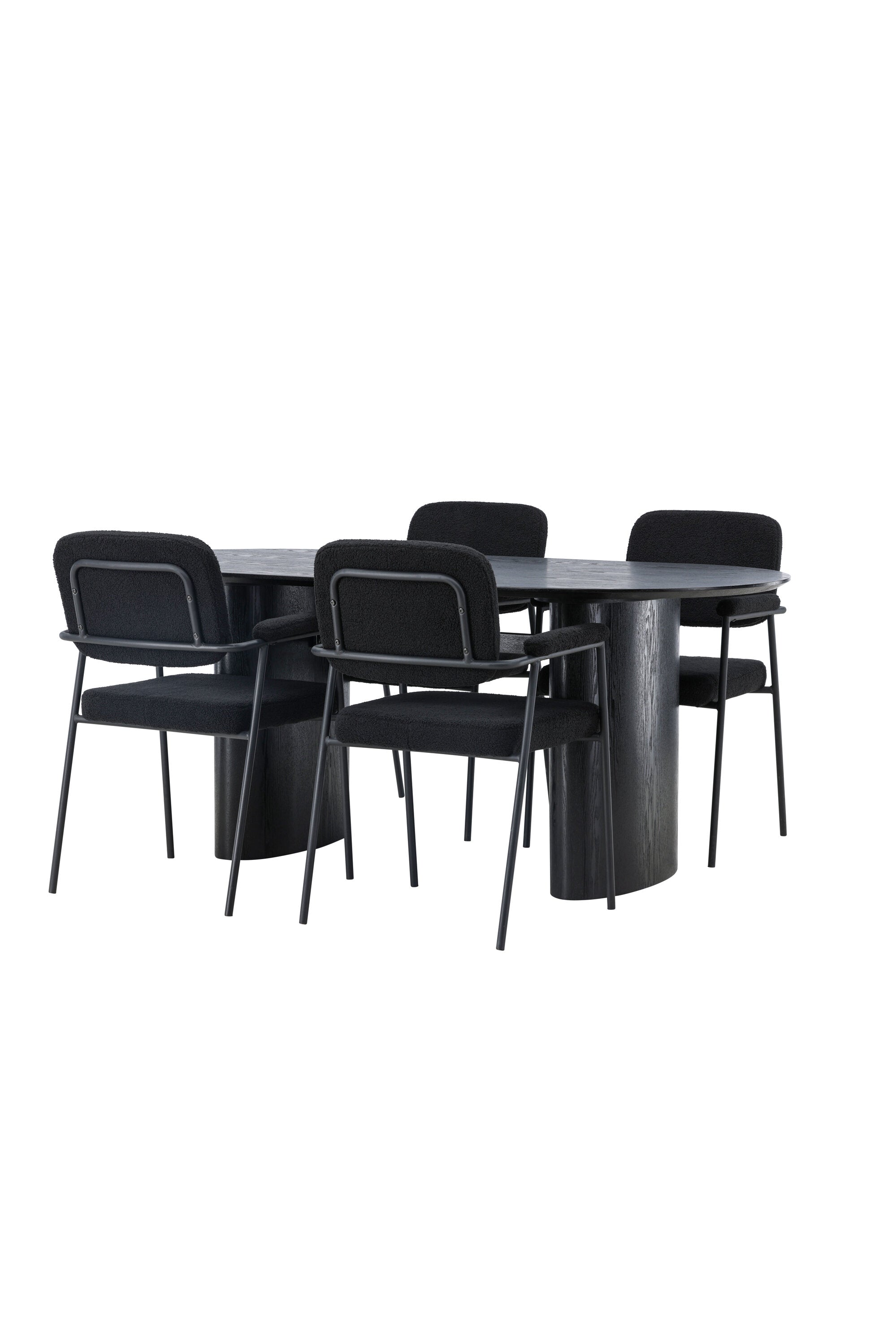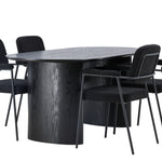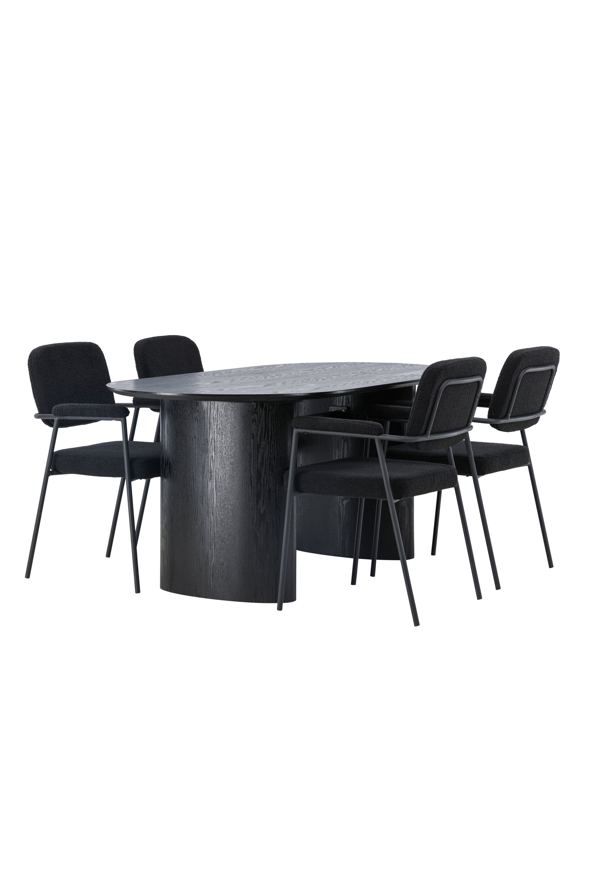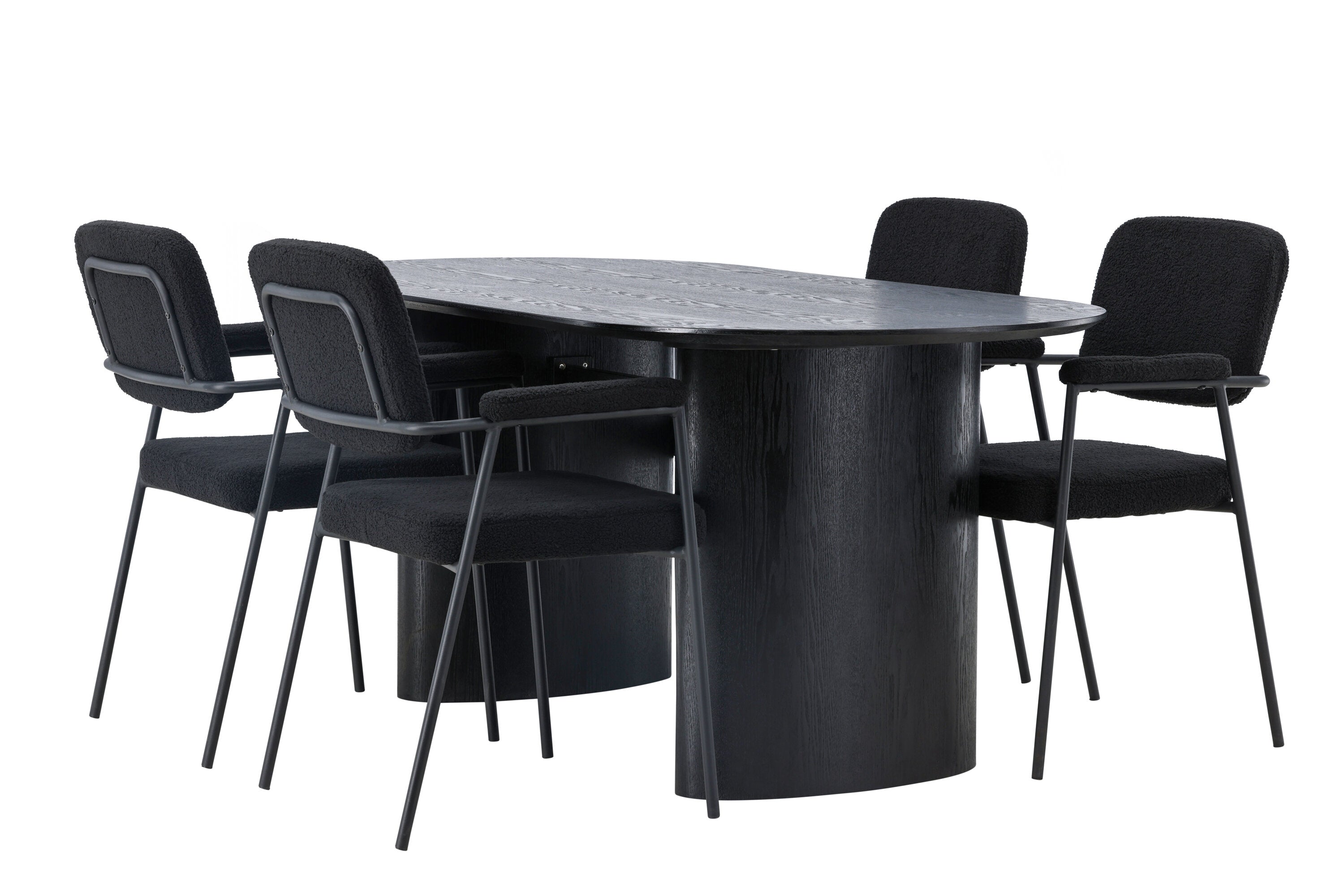 Mělo by to být příjemné usadit se na dobré jídlo! Oválný jídelní stůl Isolde v černé barvě má ​​moderní design s oválnou deskou stolu z MDF a robustním rámem, který působí stabilním dojmem. Živý materiál dává poutače krásný pohyb. Zde s našimi fantastickými černými jídelními židlemi ze série Yesterday. Židle má celočalouněný sedák v černé buklé a úzké nohy s integrovanými područkami v černém kovu. Měkké sedadlo je čalouněné pro větší pohodlí. Jednoduše, fantastická kombinace! Rozměry stolu: 180x75cm.