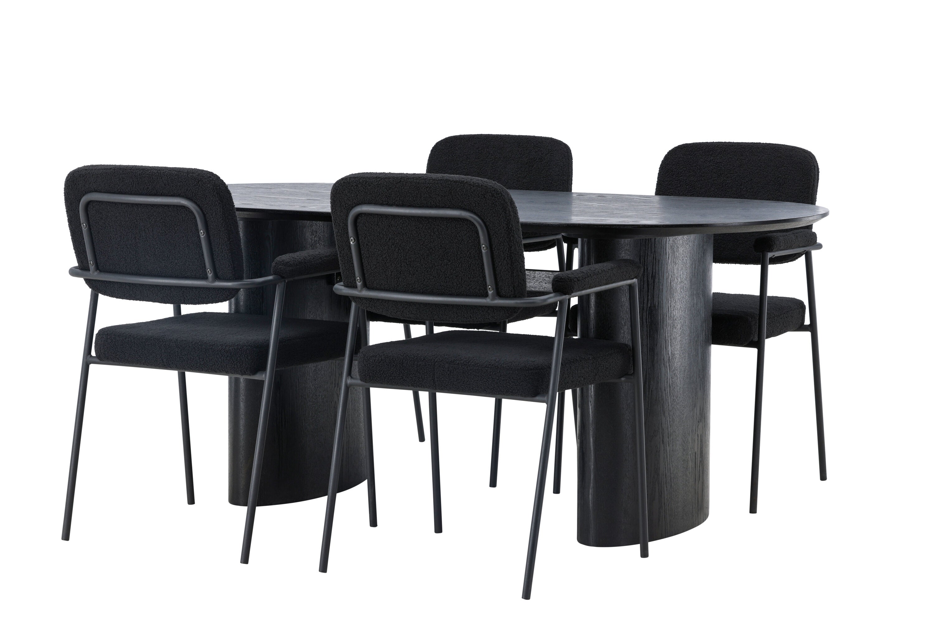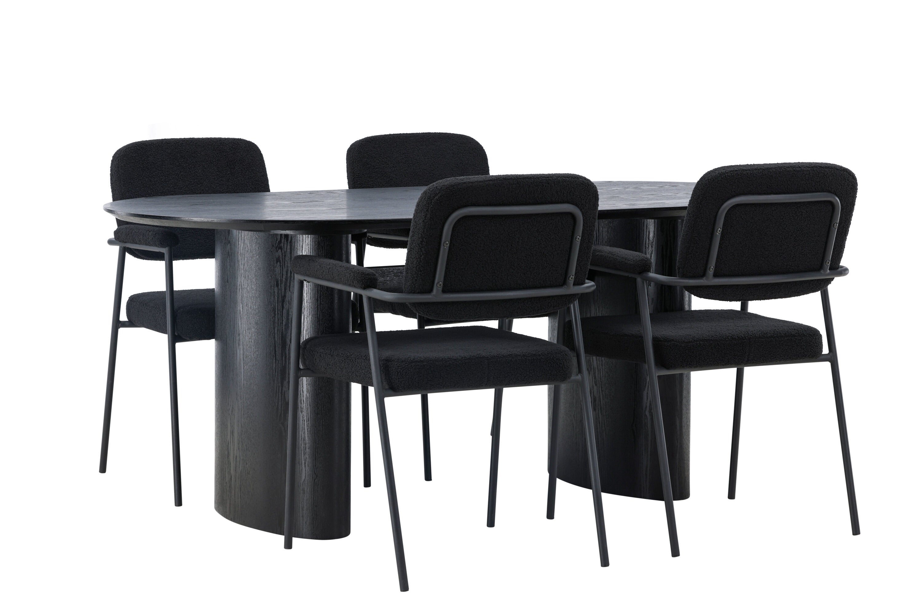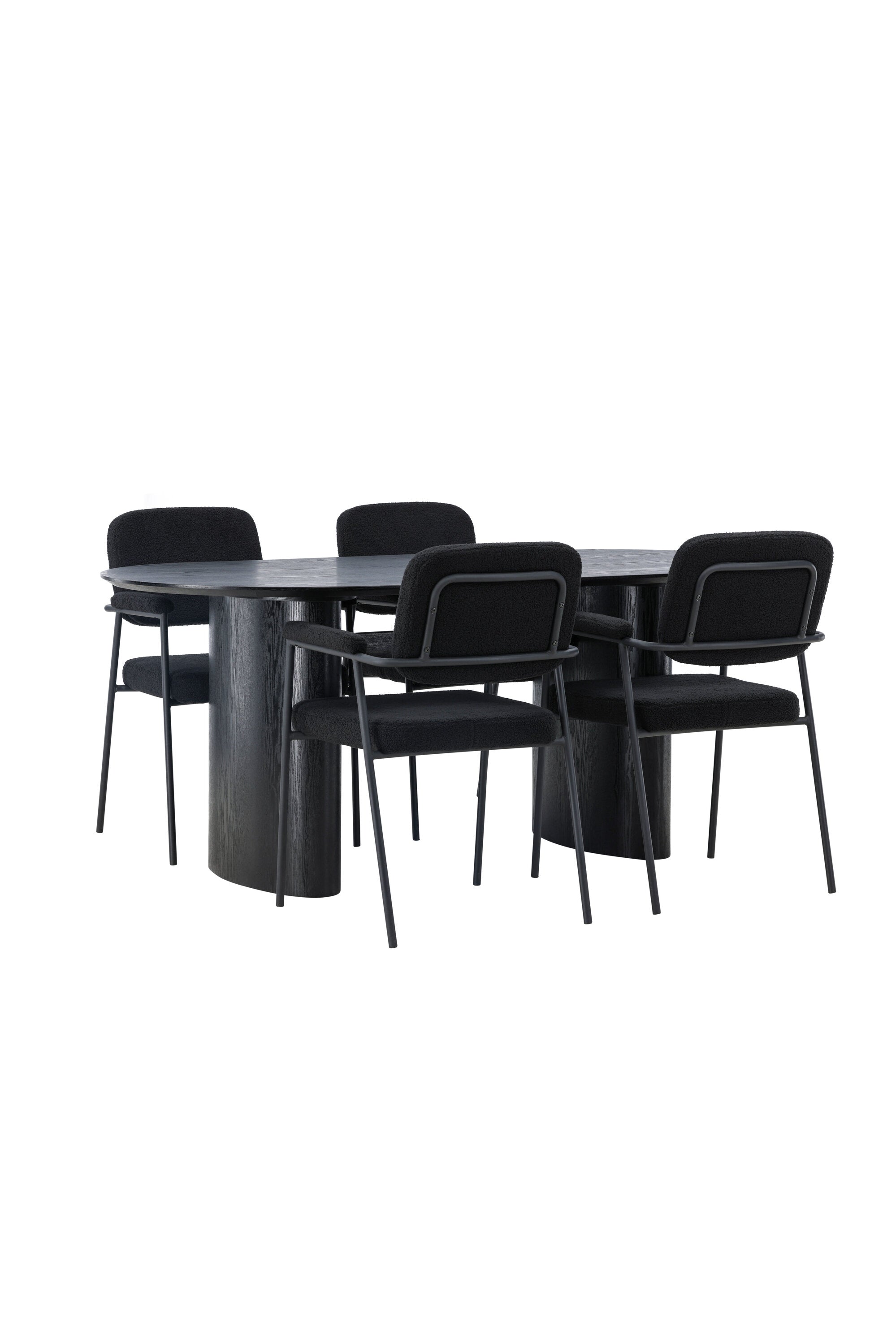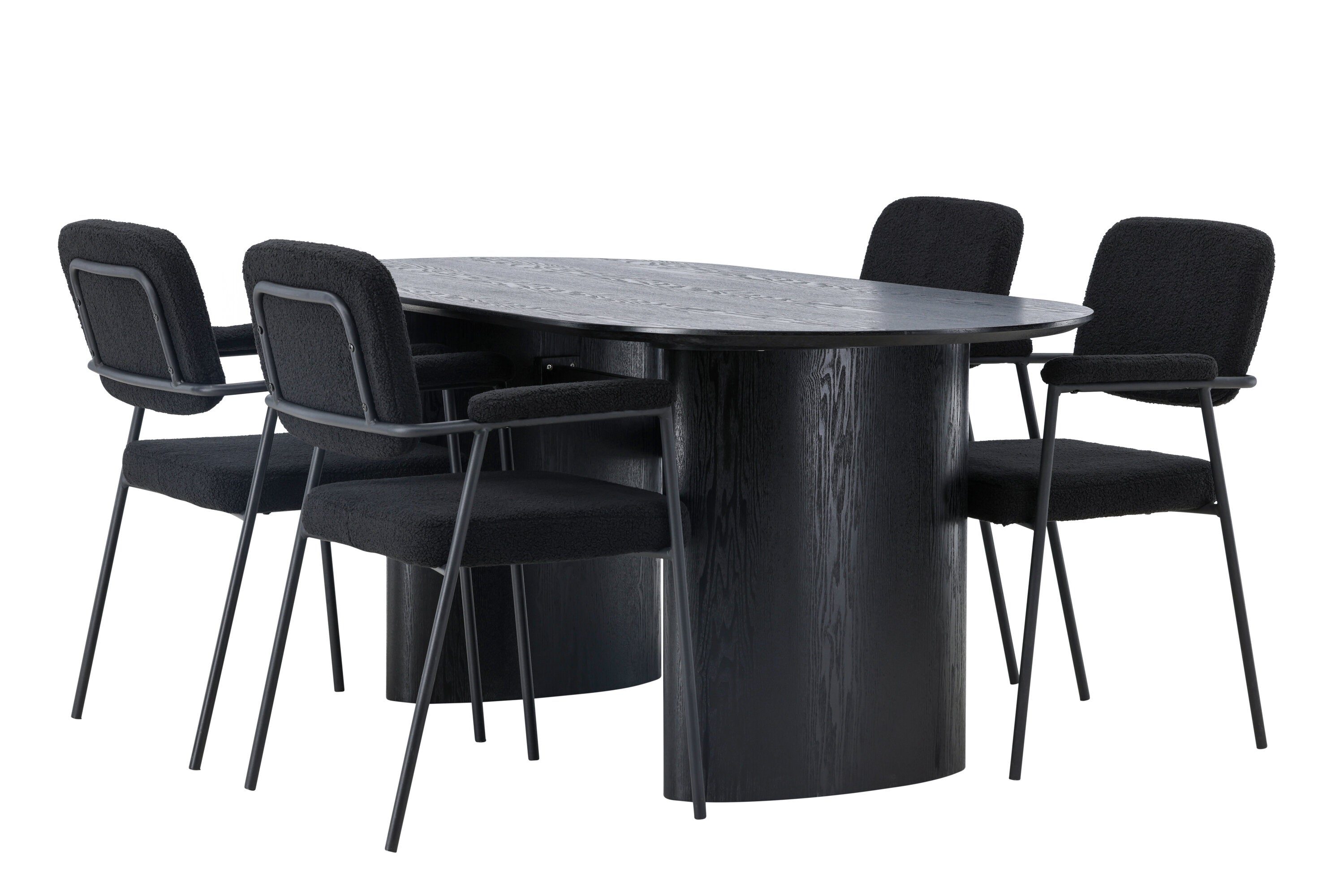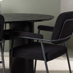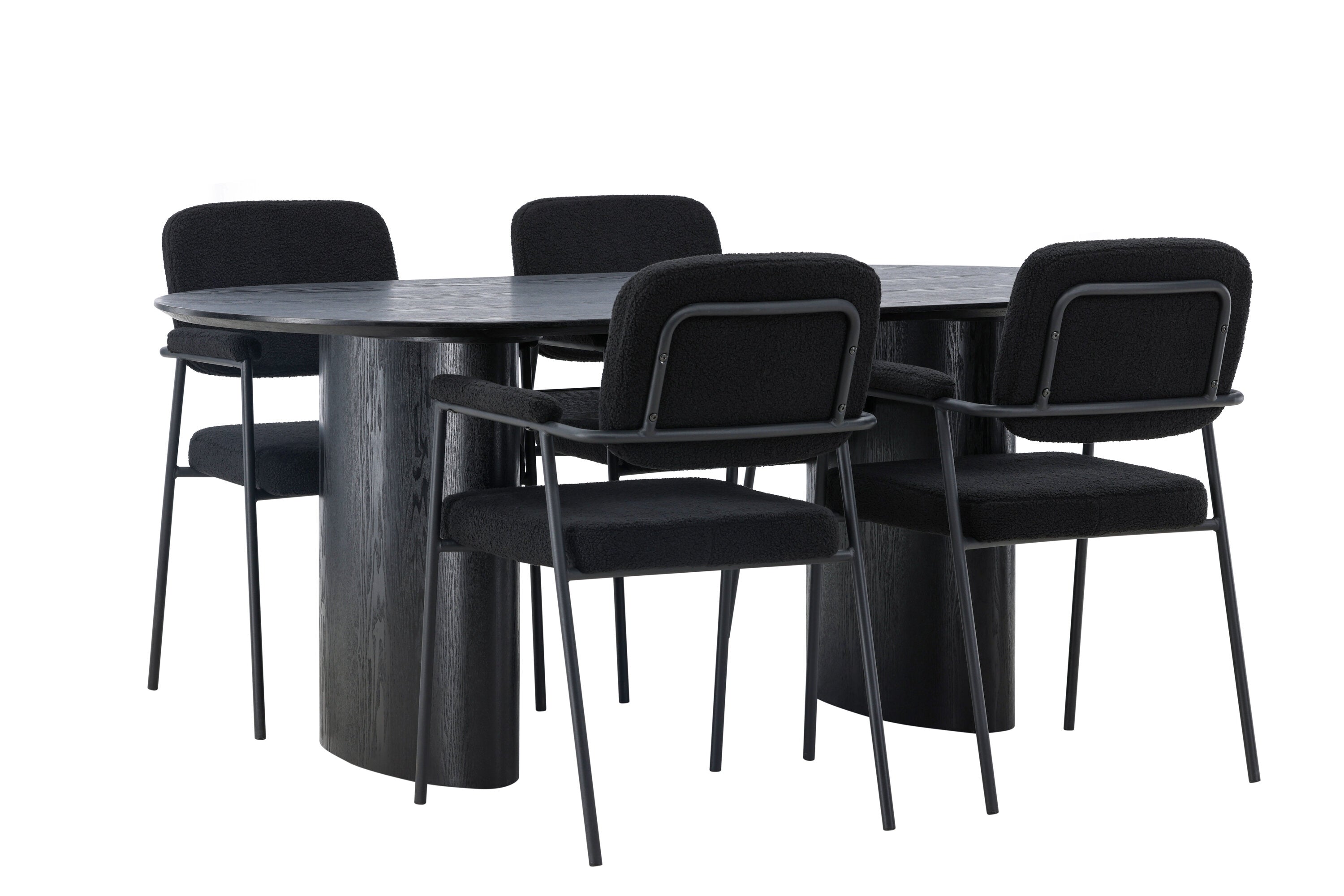 Mělo by to být příjemné usadit se na dobré jídlo! Oválný jídelní stůl Isolde v černé barvě má ​​moderní design s oválnou deskou stolu z MDF a robustním rámem, který působí stabilním dojmem. Živý materiál dává poutače krásný pohyb. Zde s našimi fantastickými černými jídelními židlemi ze série Yesterday. Židle má celočalouněný sedák v černé buklé a úzké nohy s integrovanými područkami v černém kovu. Měkké sedadlo je čalouněné pro větší pohodlí. Jednoduše, fantastická kombinace! Rozměry stolu: 180x75cm.