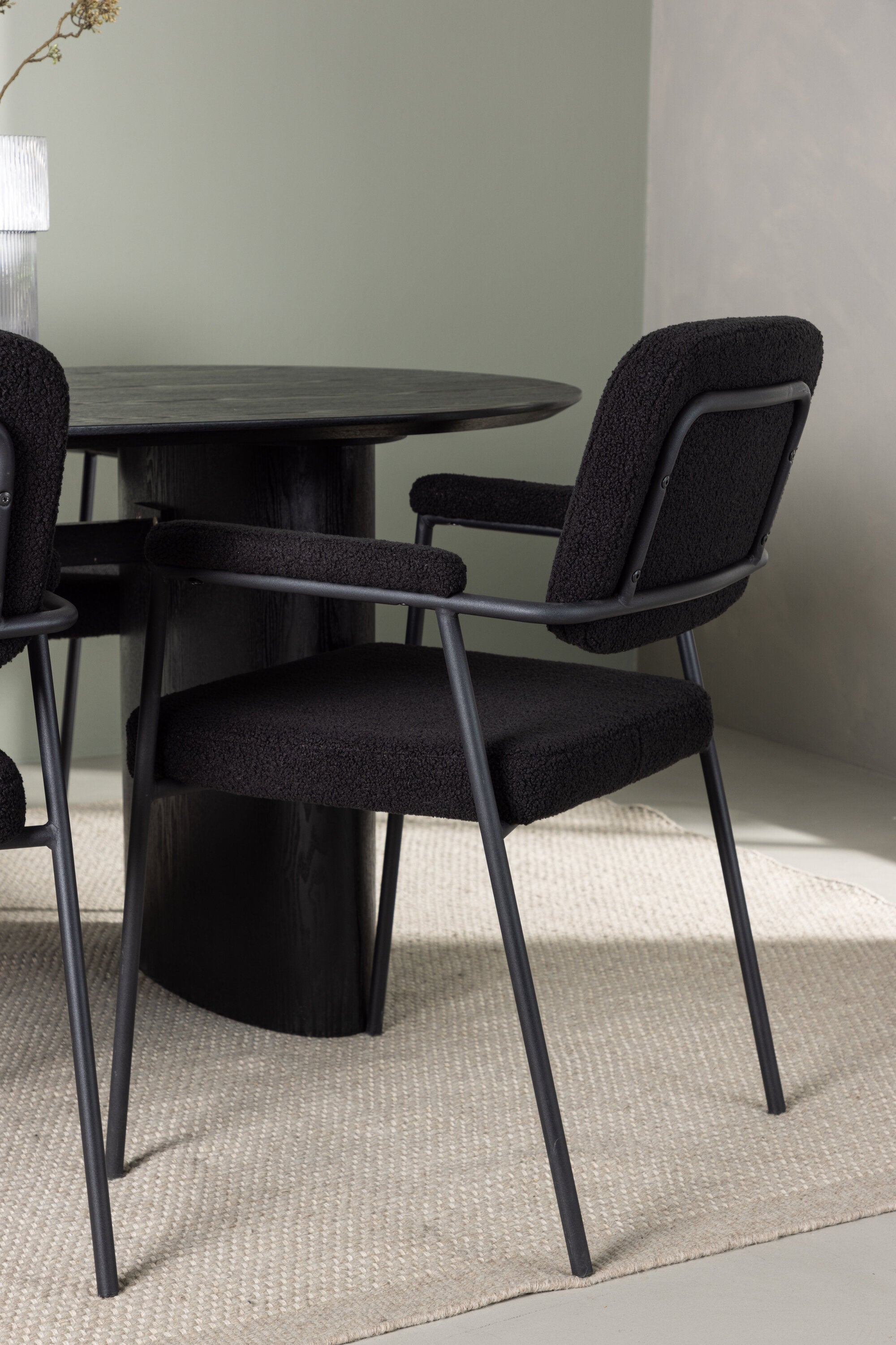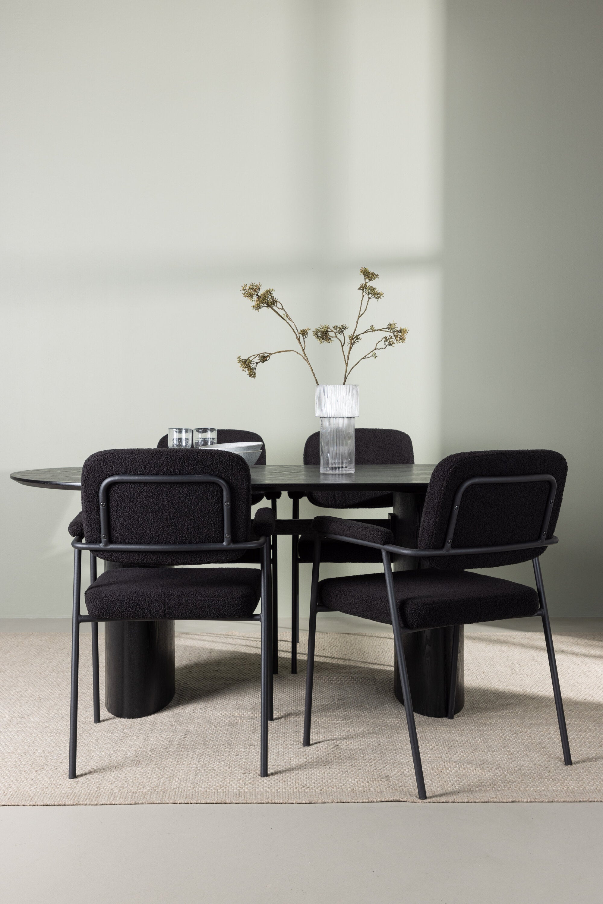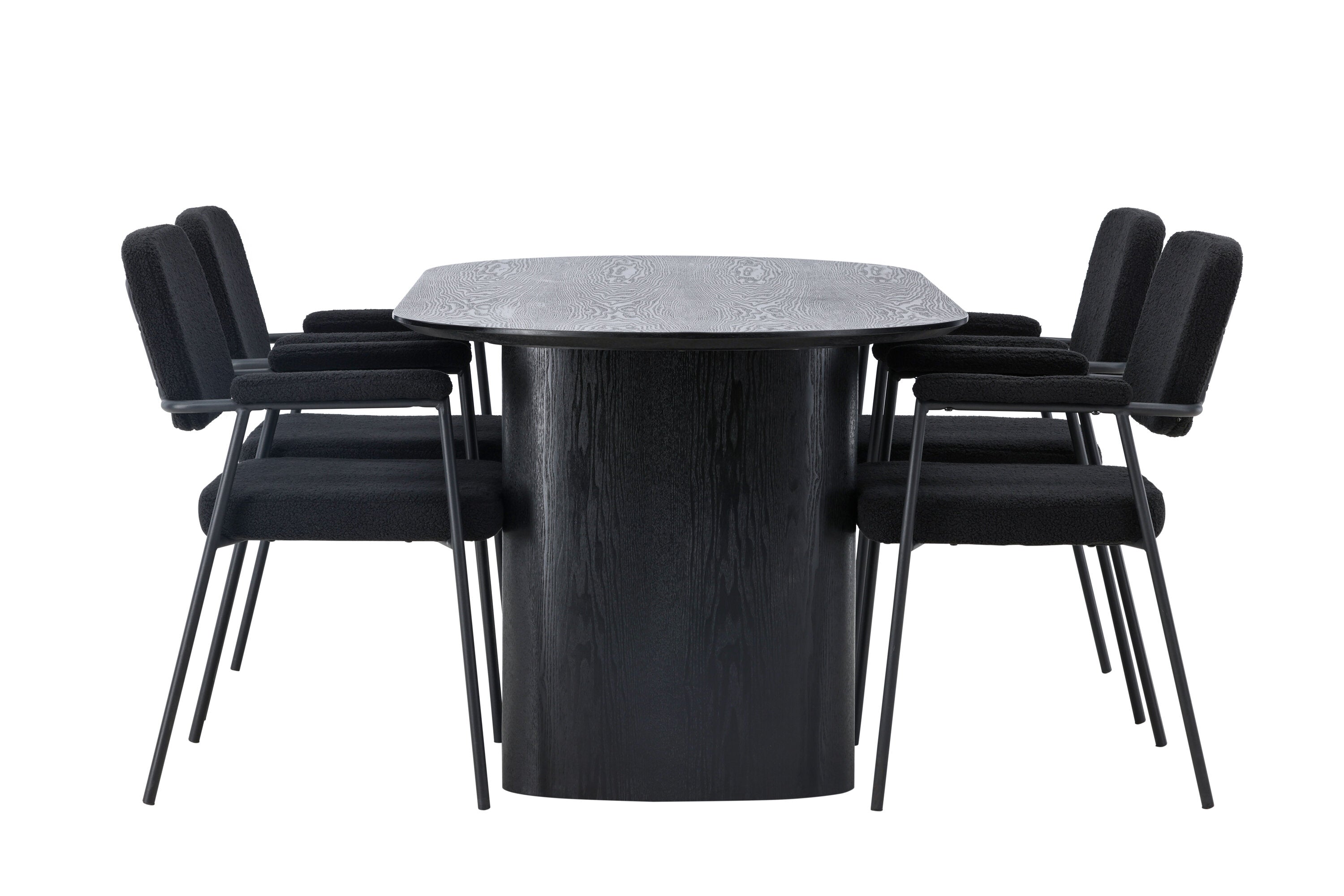 Jídelní stůl Isolde 180*75 – černá / černá MDF + jídelní židle Yesterday – černá / černá Boucle _4
