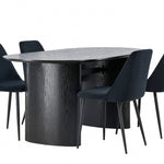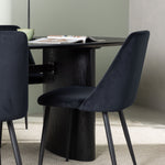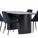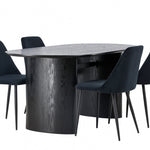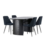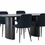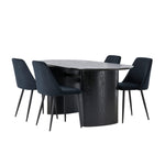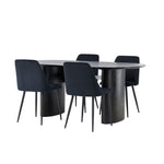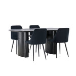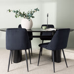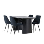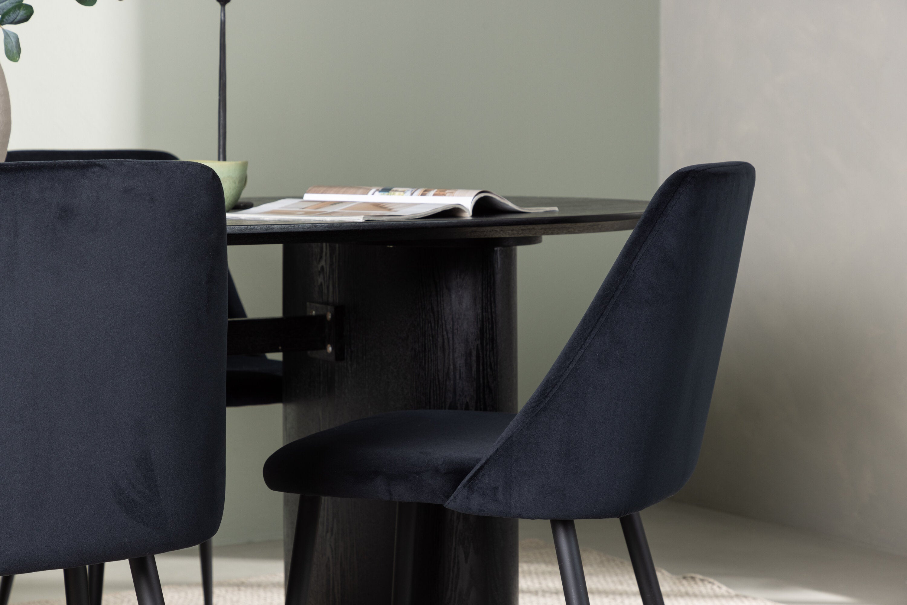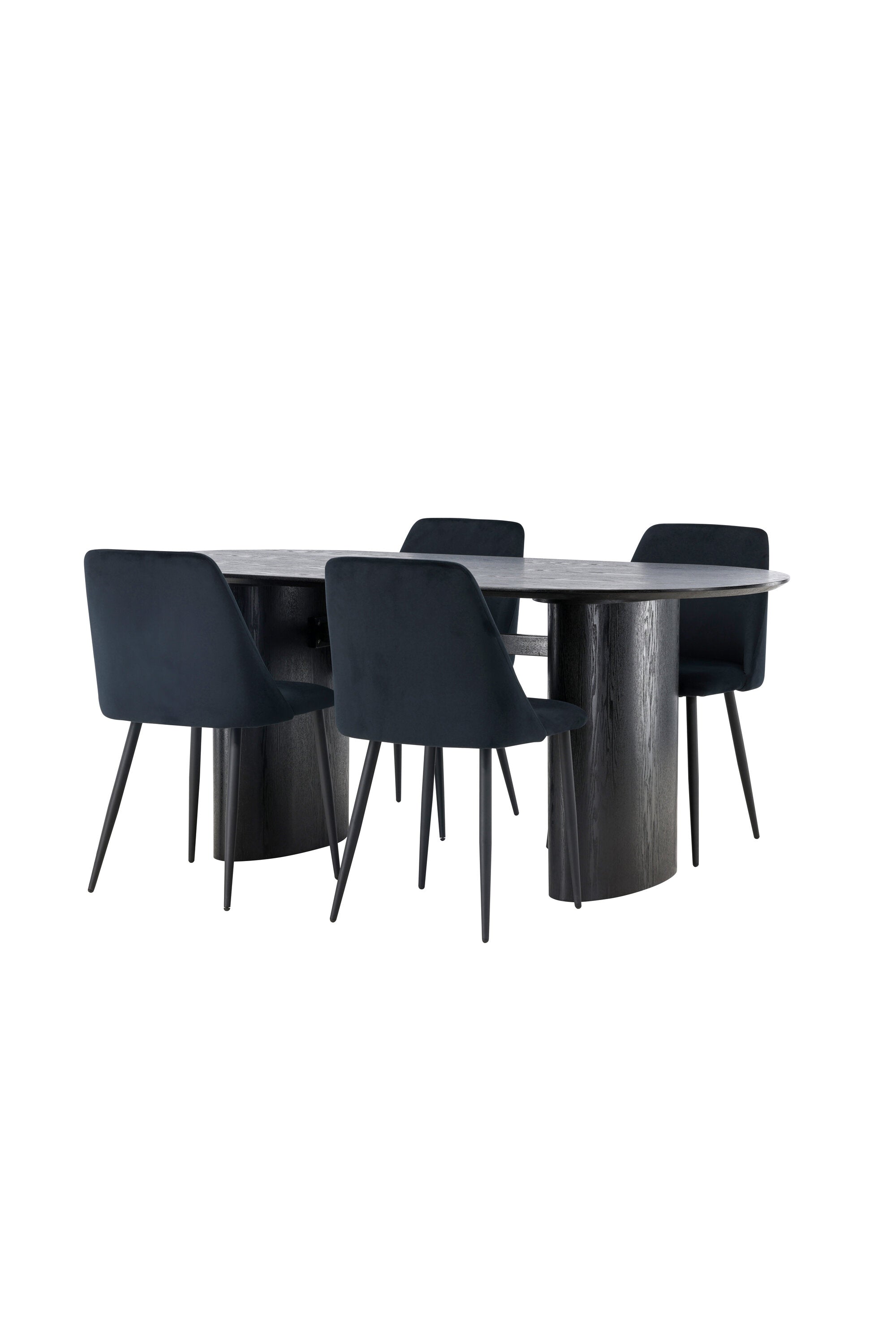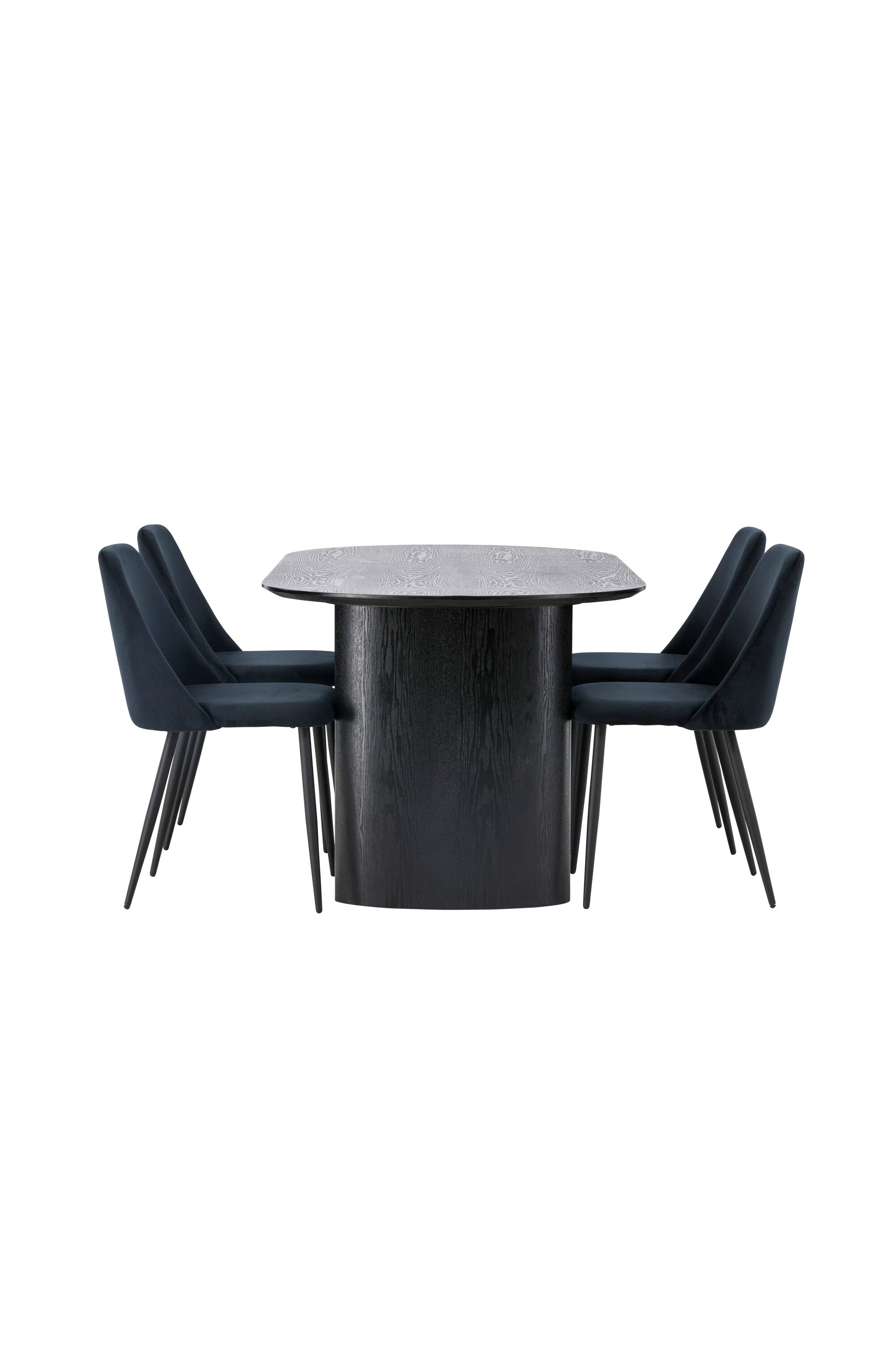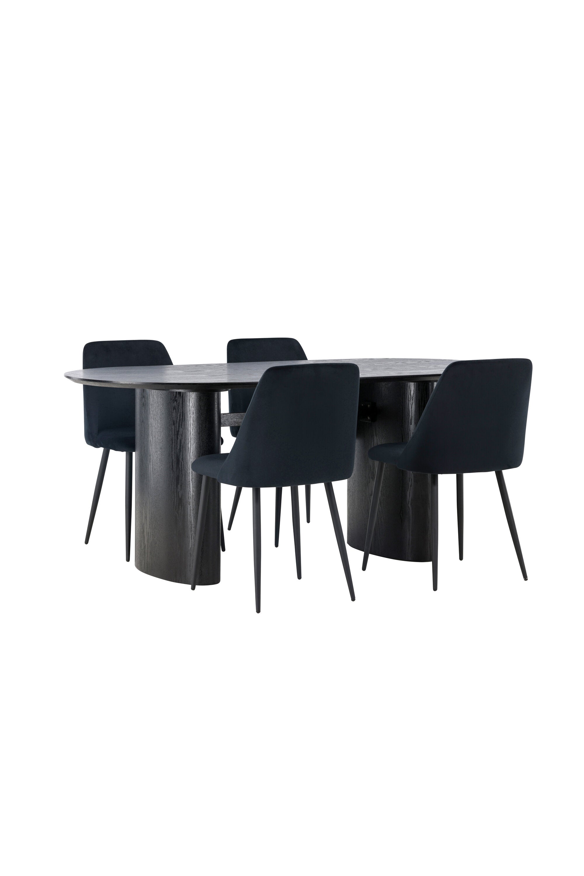 Vyzdobte obývací pokoj luxusně a pohodlně! Oválný jídelní stůl Isolde v černé barvě má ​​moderní design s oválnou deskou stolu z MDF a robustním rámem, který působí stabilním dojmem. Živý materiál dává poutače krásný pohyb. Zde v dokonalé kombinaci s černými jídelními židlemi ze série Night. Židle má celočalouněný sedák v černé sametové látce a nohy v odpovídající černé barvě. Jednoduše, neuvěřitelná kombinace! Rozměry stolu: 180x75cm.