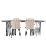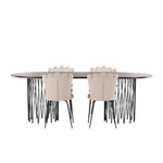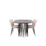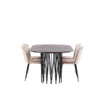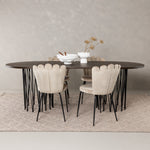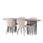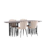 Kamenný oválný jídelní stůl - černá / mocca dýha + židle Limhamn Light - černá / béžová sametová _4