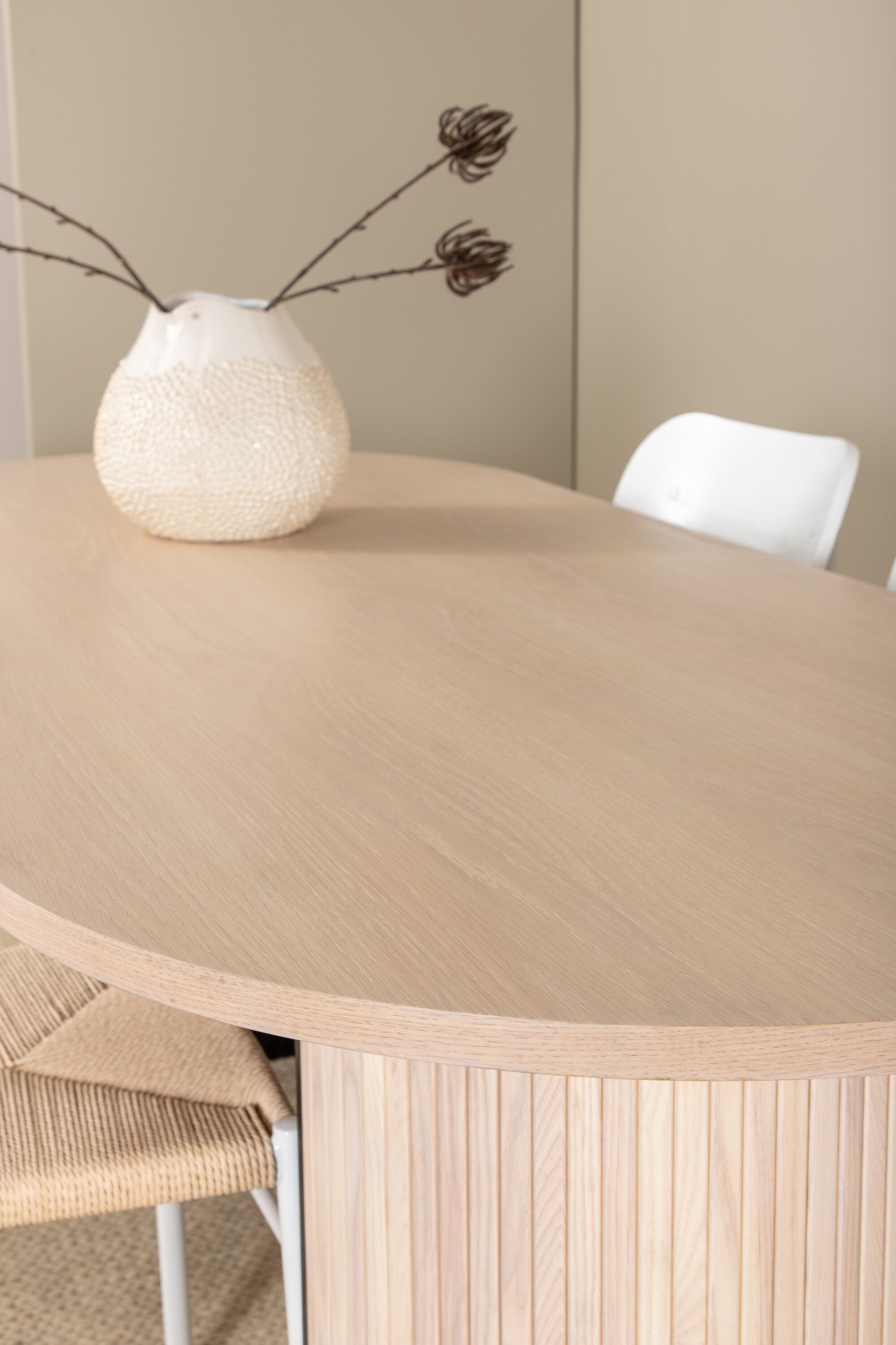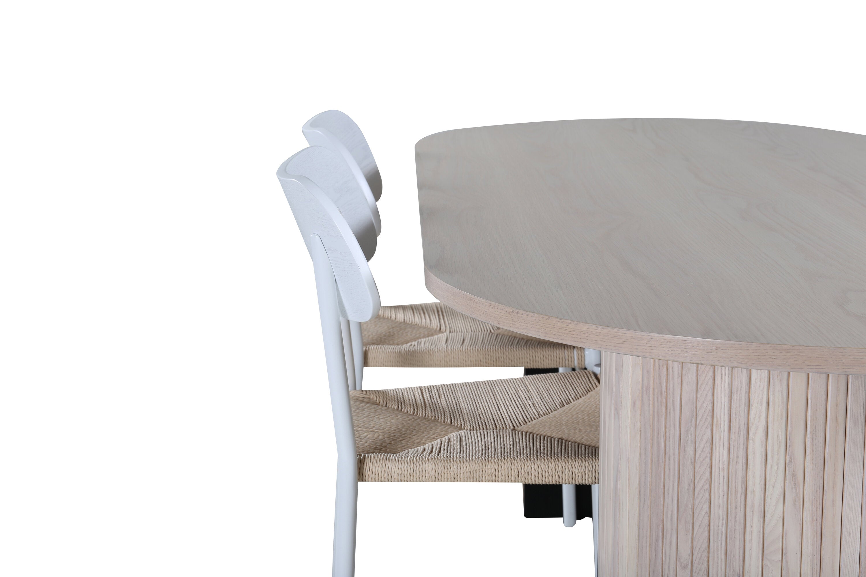 Oválný jídelní stůl Bianca - White Wash / White Wash Dýha + Jídelní židle Polly - White / Nature _4