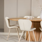 Jídelní židle Lilja skvěle doplní stůl svým stylovým a pohodlným designem v sofistikované béžové barvě. Židle jsou čalouněné měkkou a lákavou béžovou látkou a jsou elegantní a všestranné. Lilja je ergonomicky navržena tak, aby poskytovala vynikající oporu během dlouhých jídel, a velkoryse polstrované sedadlo zajišťuje pohodlný a relaxační zážitek.