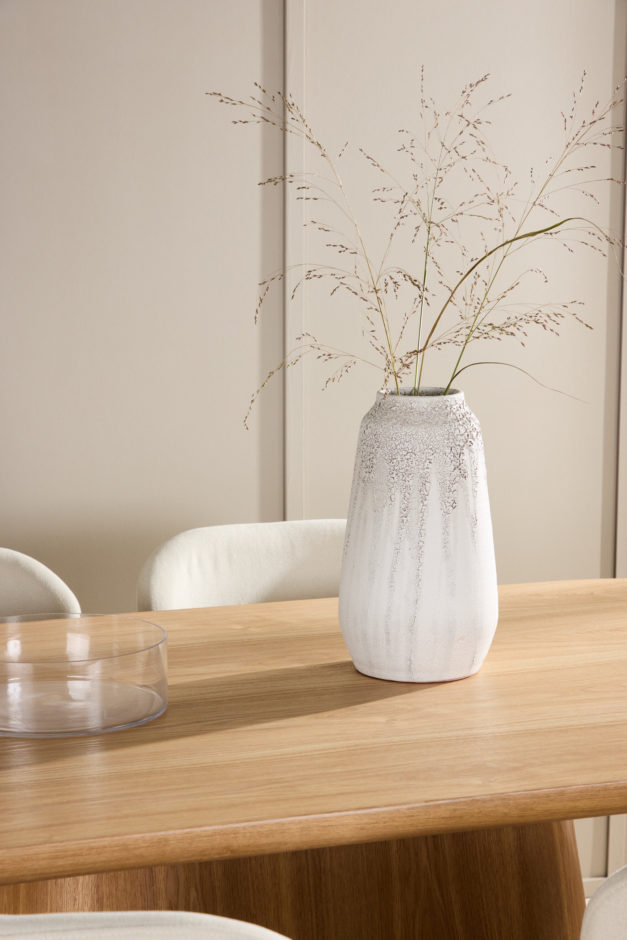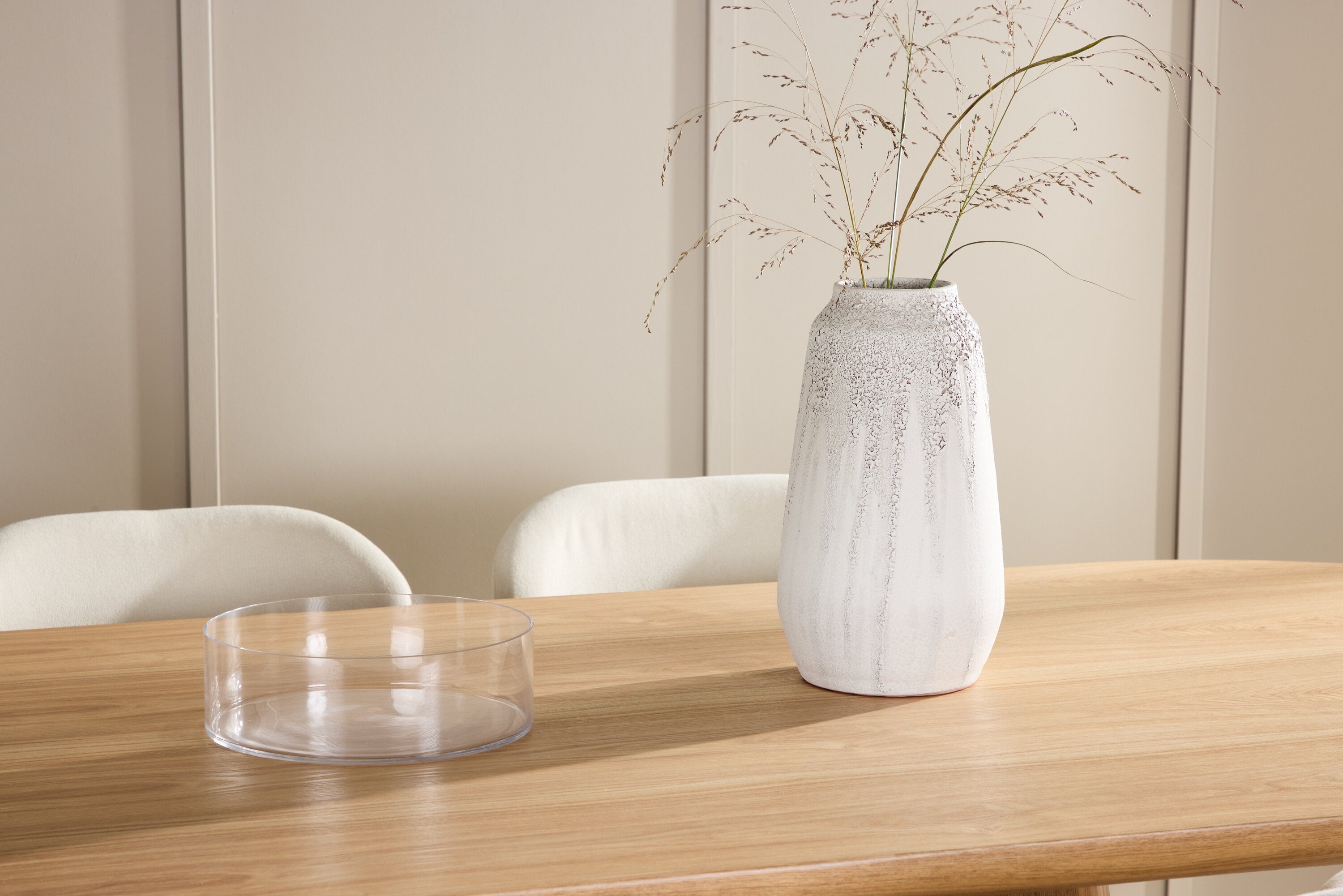 Jídelní stůl Stjärnö je elegantním a funkčním středobodem, který nabízí velkorysé rozměry 200x90 cm a poskytuje dostatek prostoru jak pro rodinné večeře, tak pro větší setkání. Stolní deska je vyrobena z MDF s krásným povrchem v přírodní barvě dřeva, který podtrhuje autentický vzhled kresby dřeva.