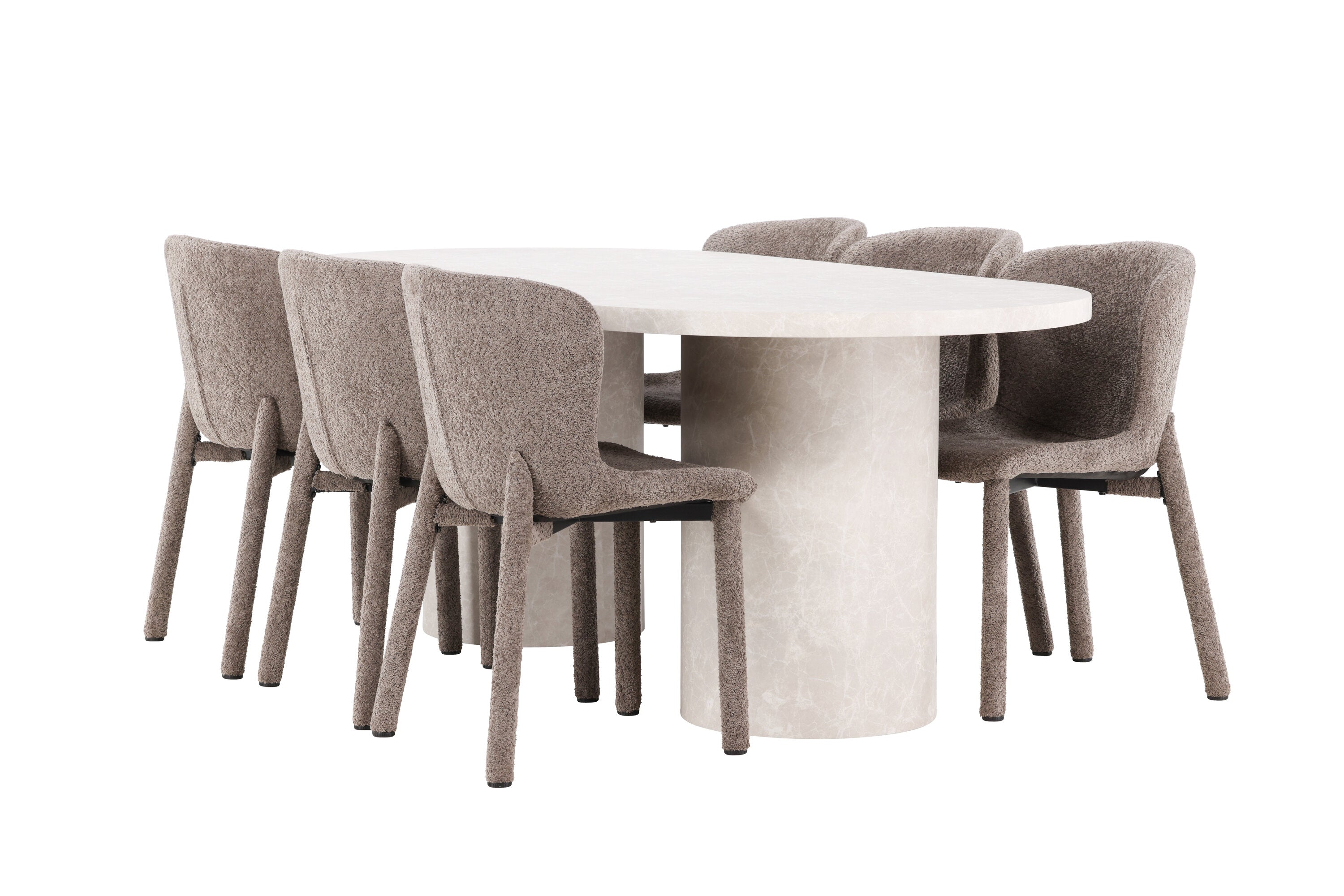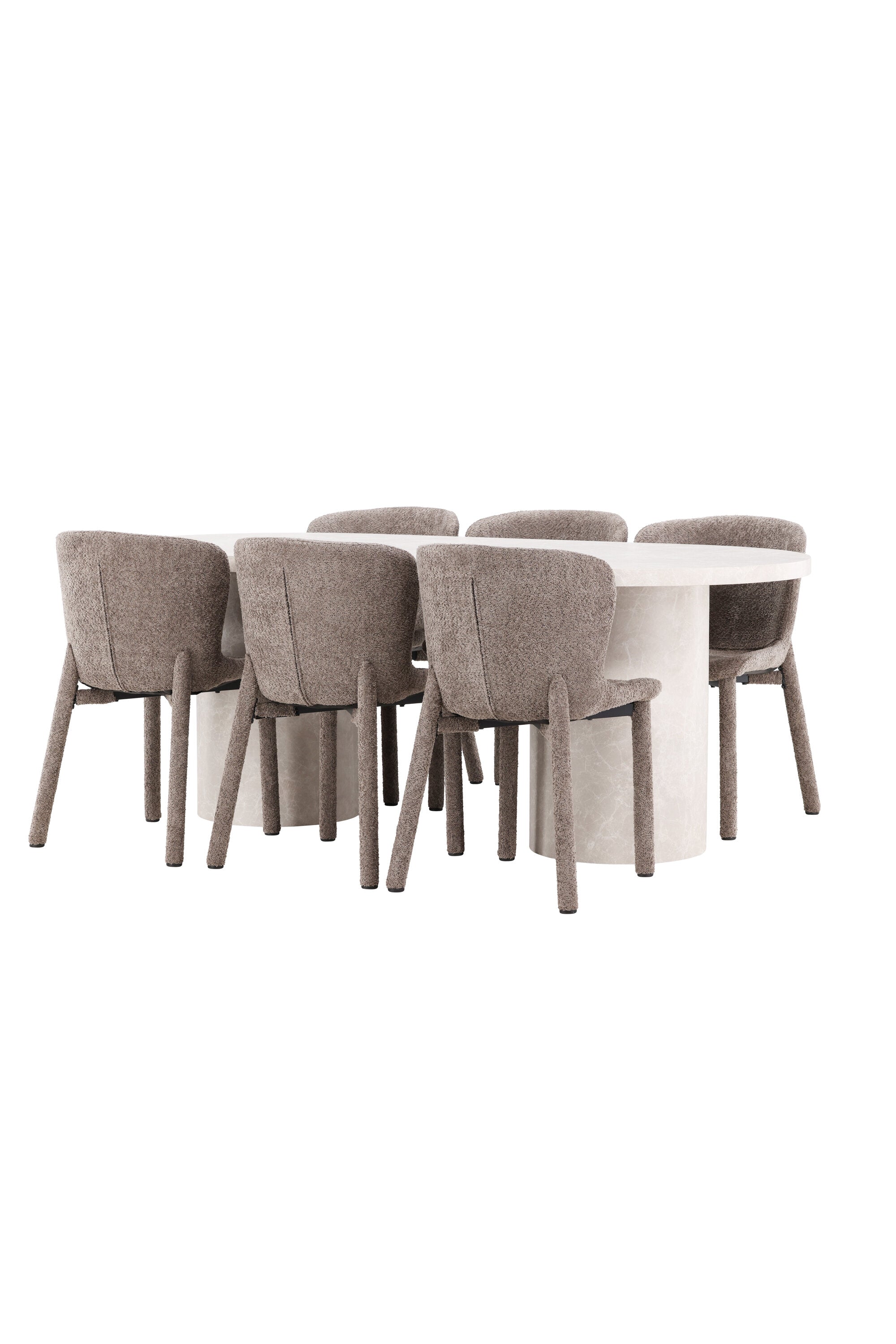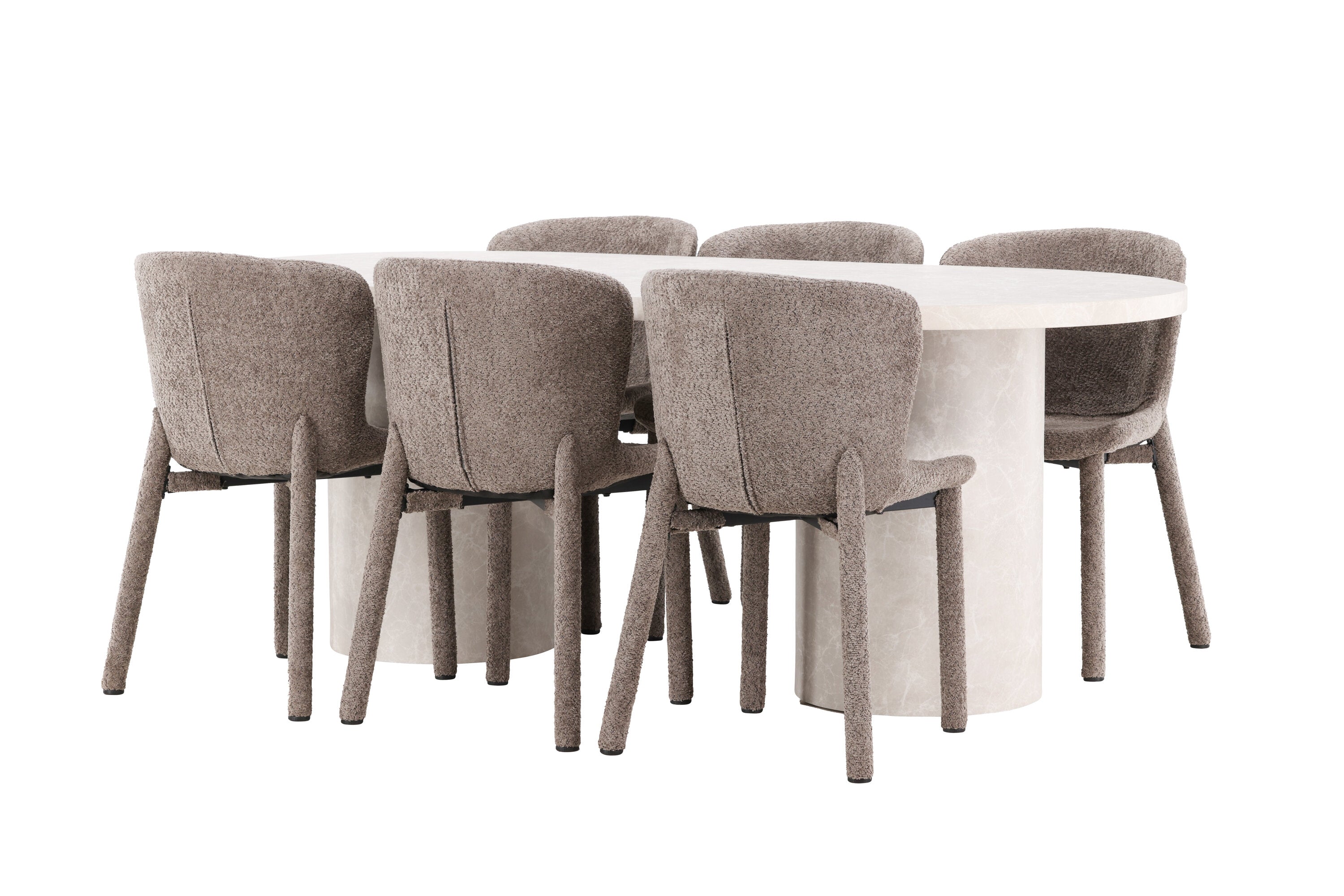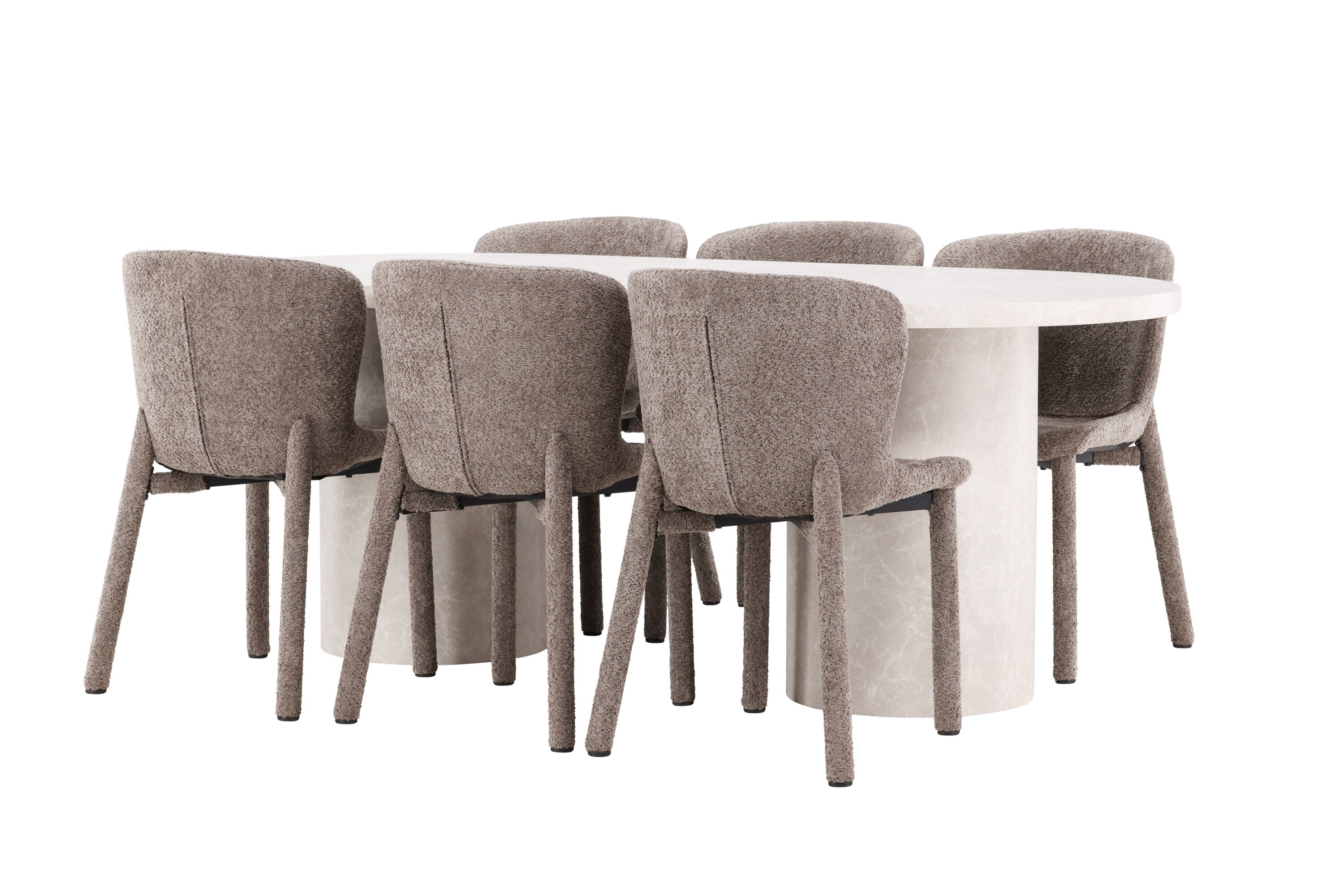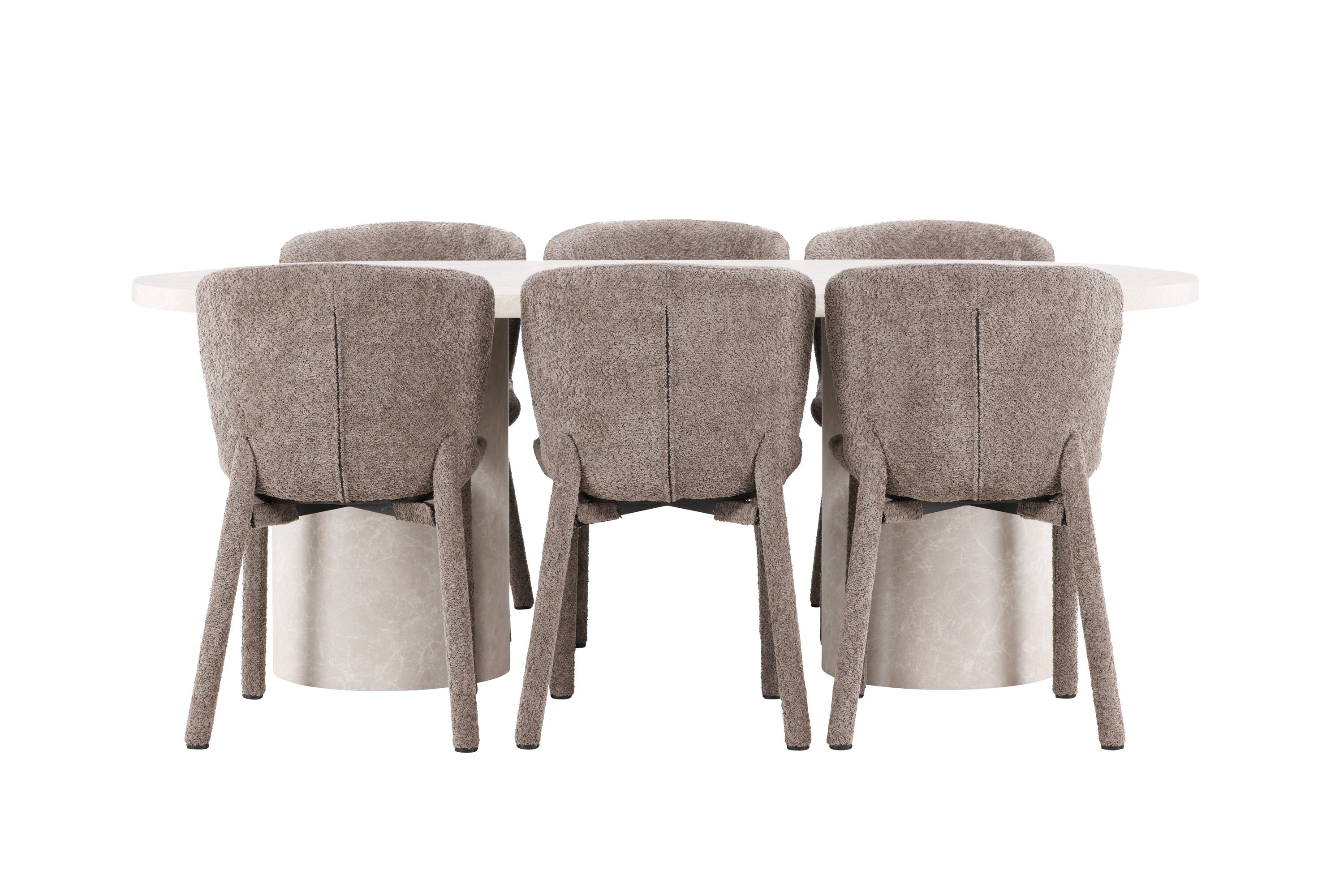 Stůl Narvik – béžový se 6 židlemi Astoria – hnědý