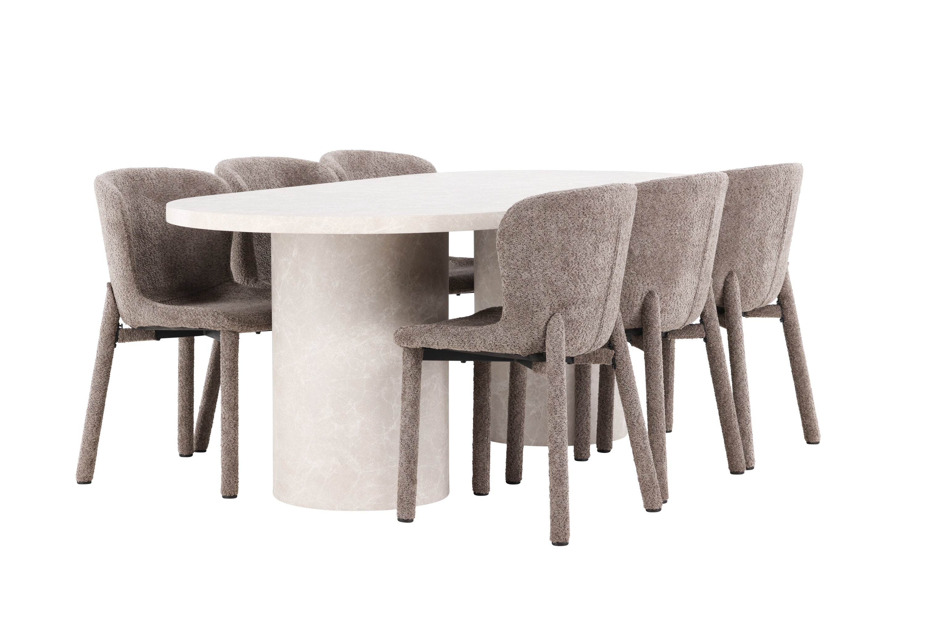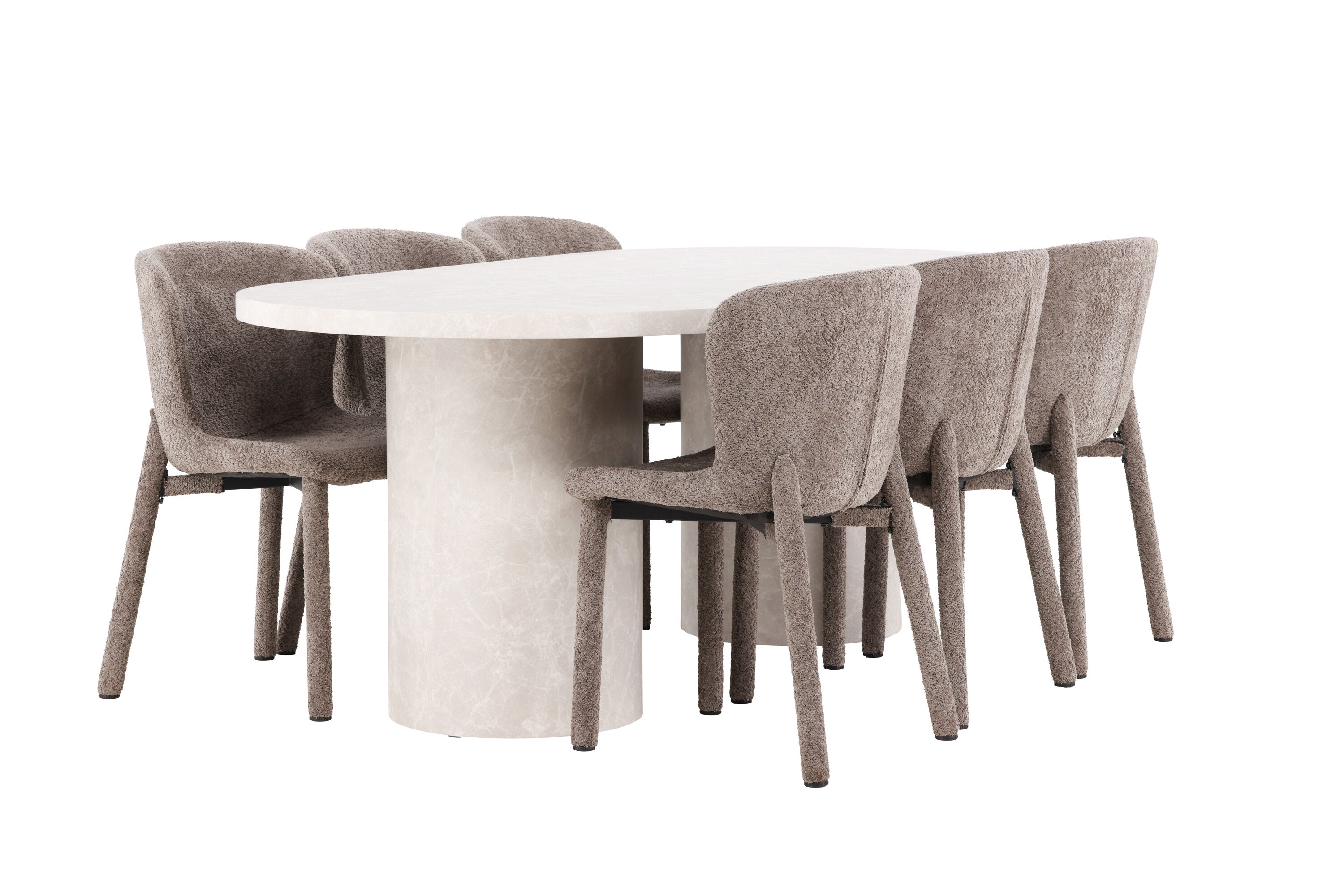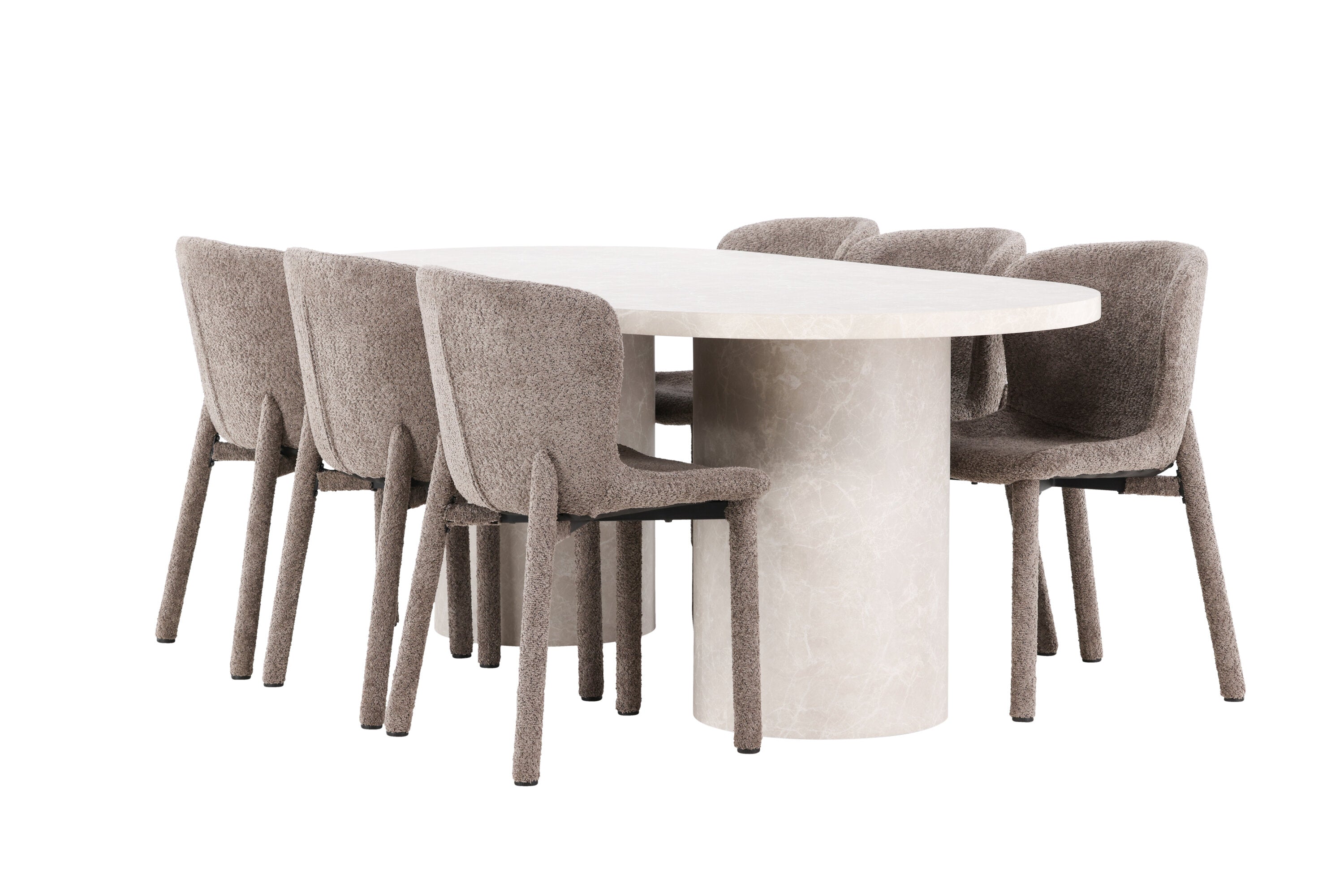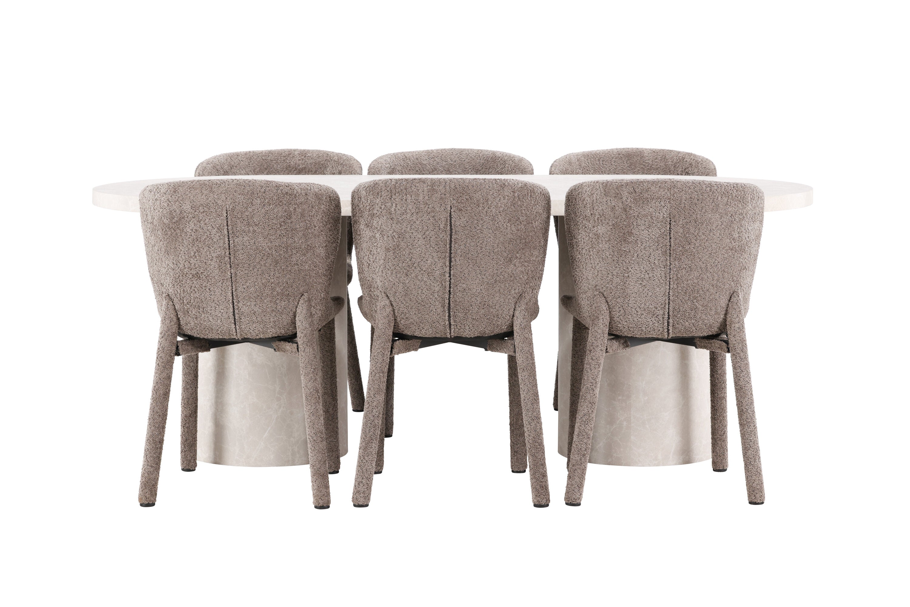 Stůl Narvik – béžový se 6 židlemi Astoria – hnědý