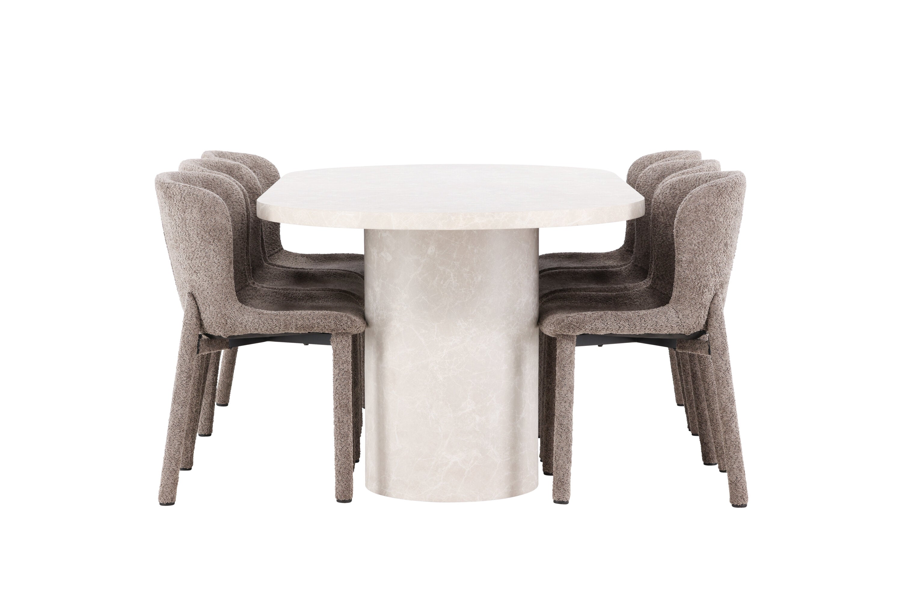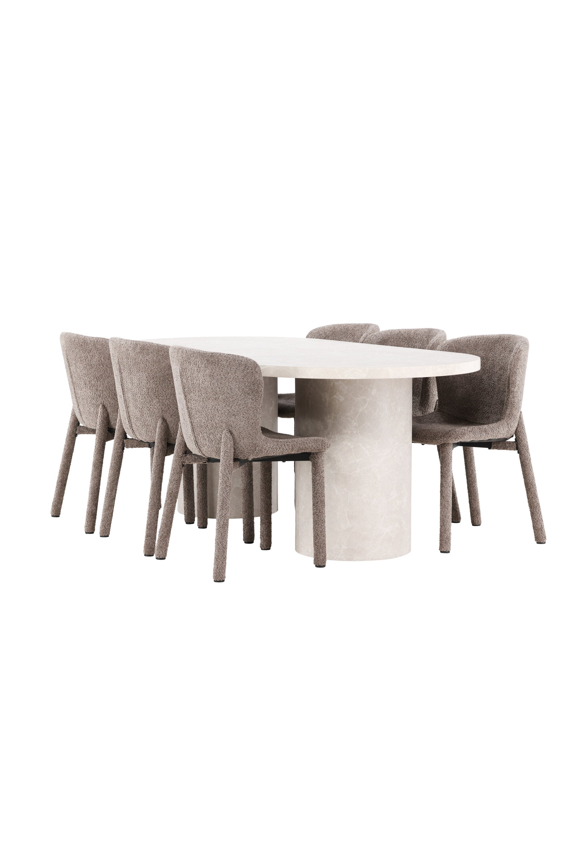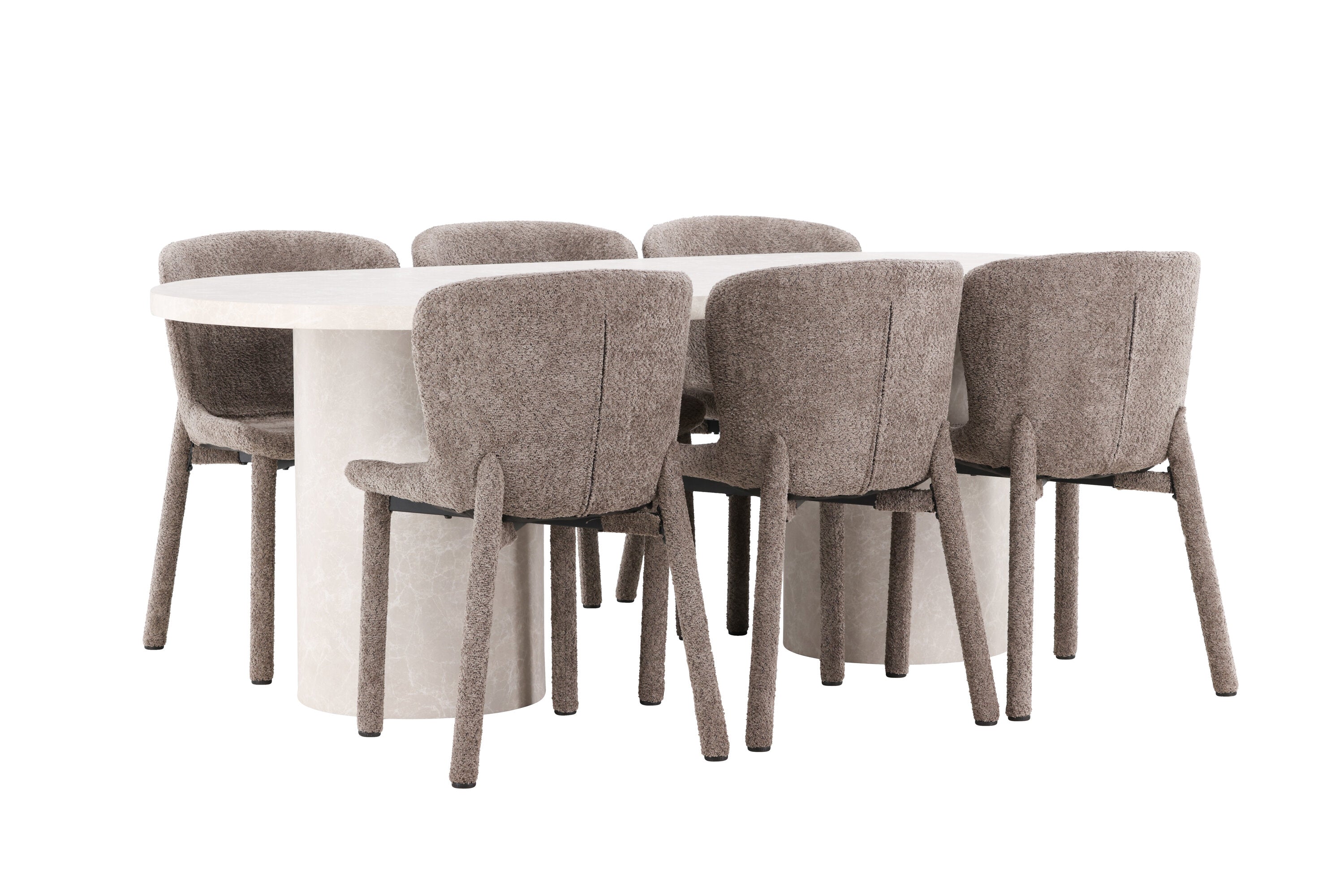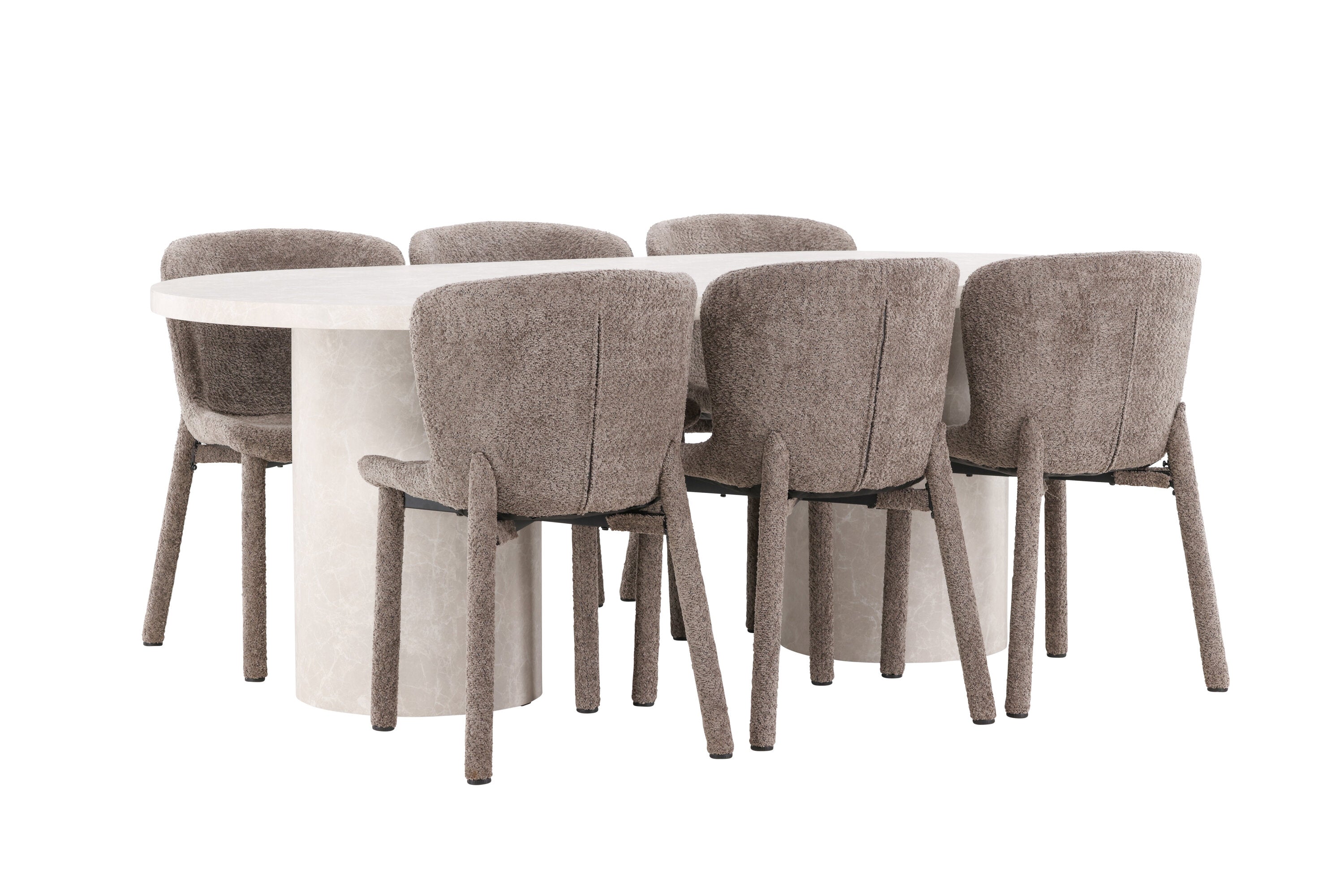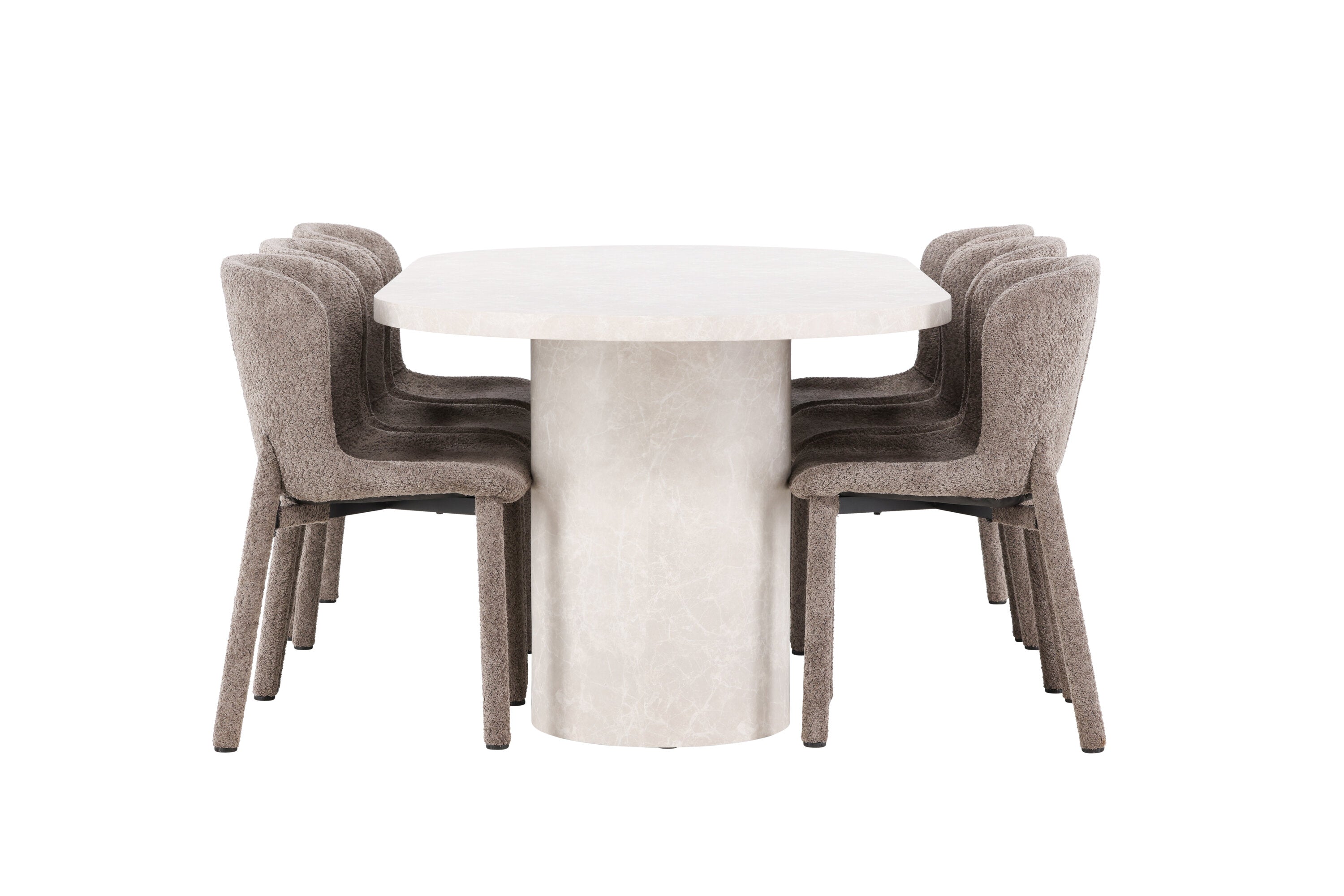 Stůl Narvik – béžový se 6 židlemi Astoria – hnědý