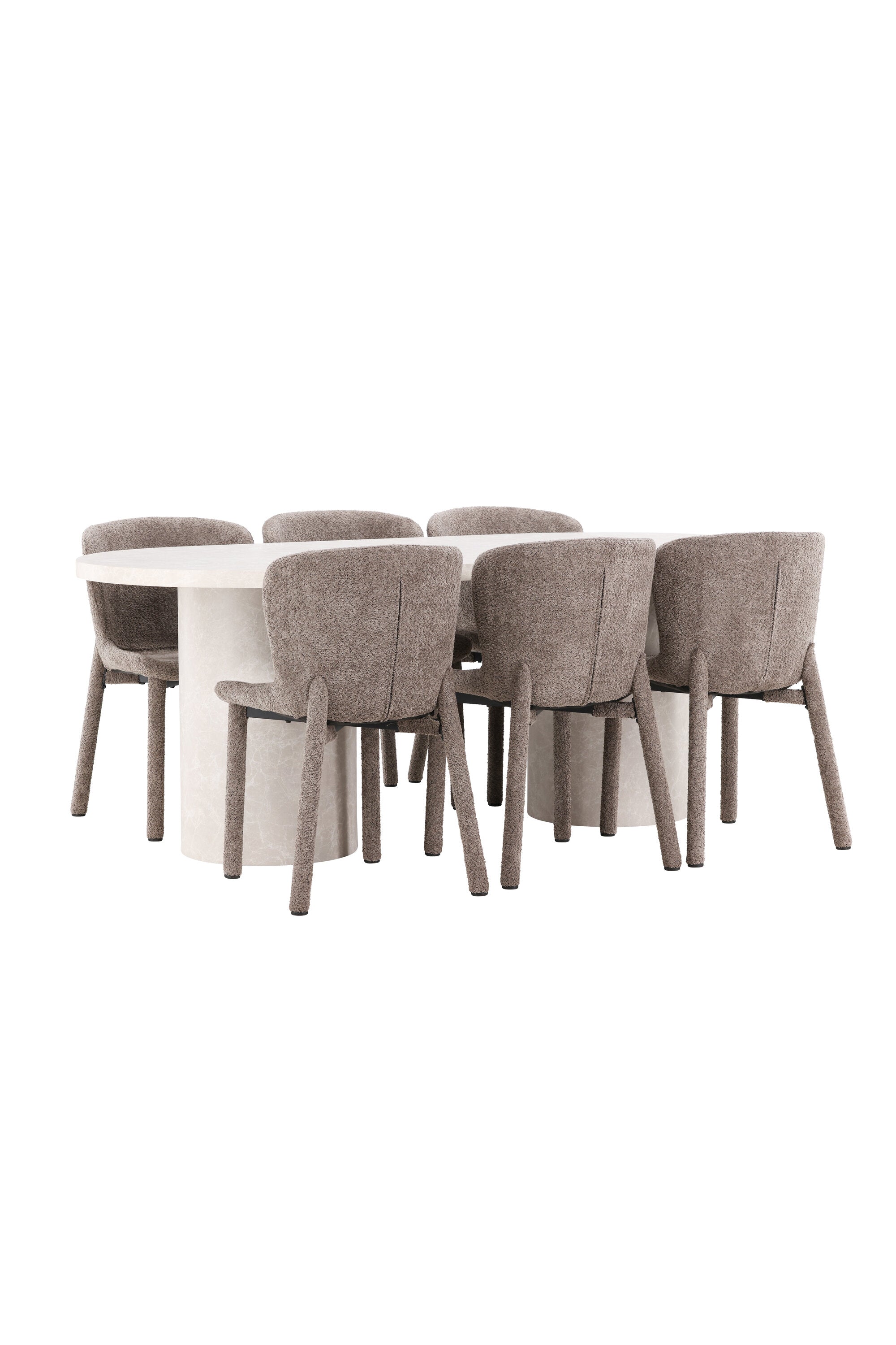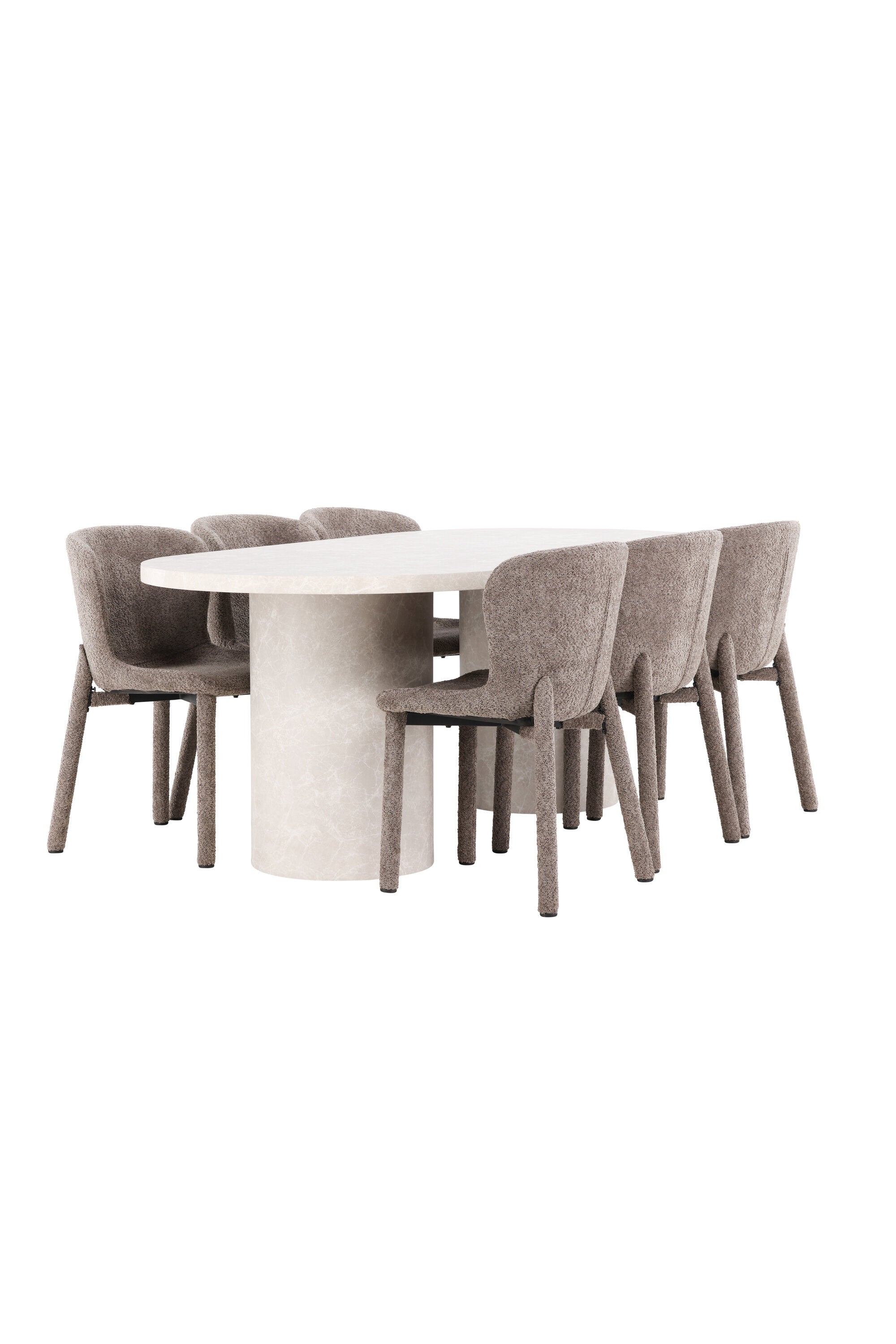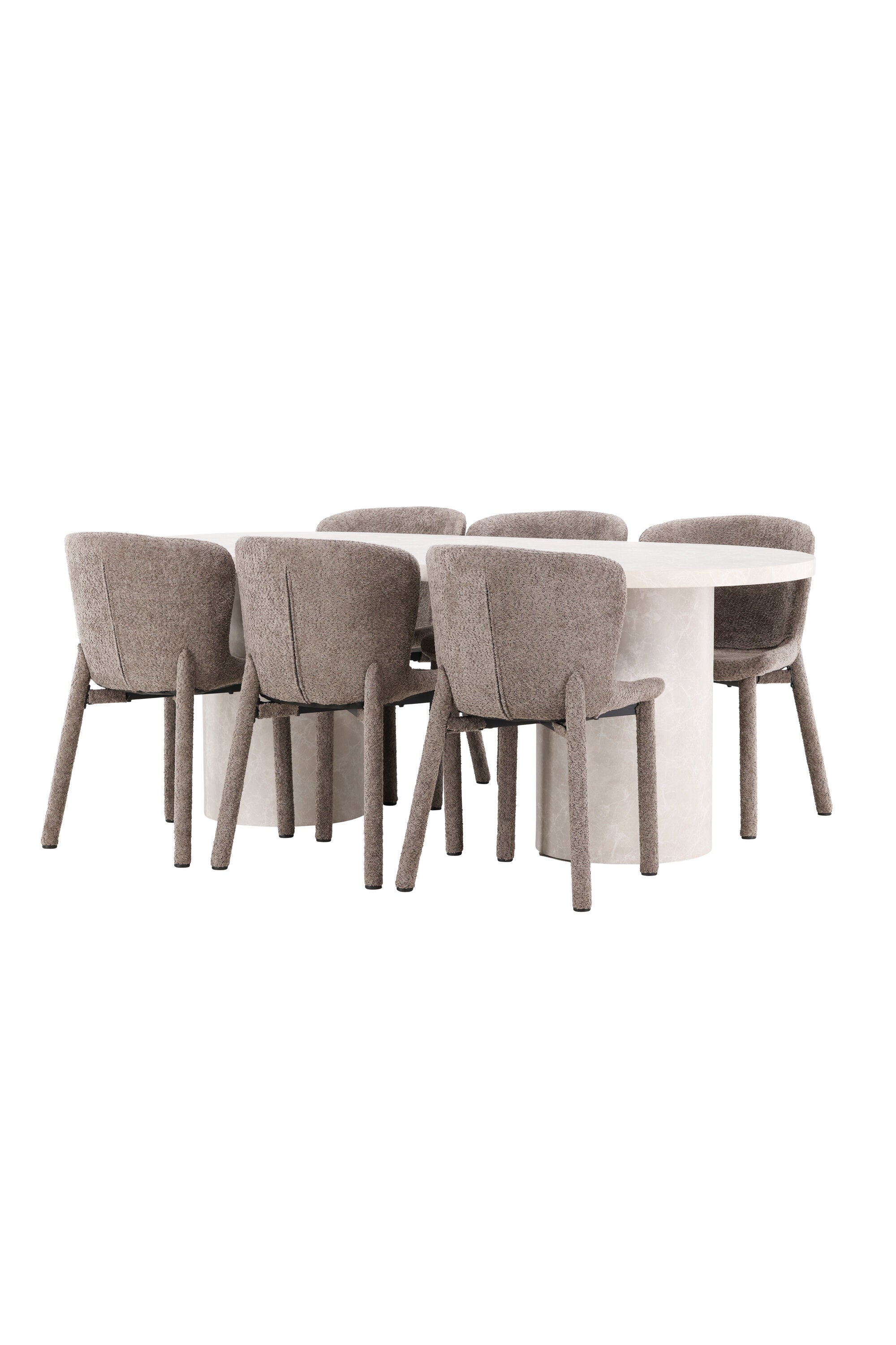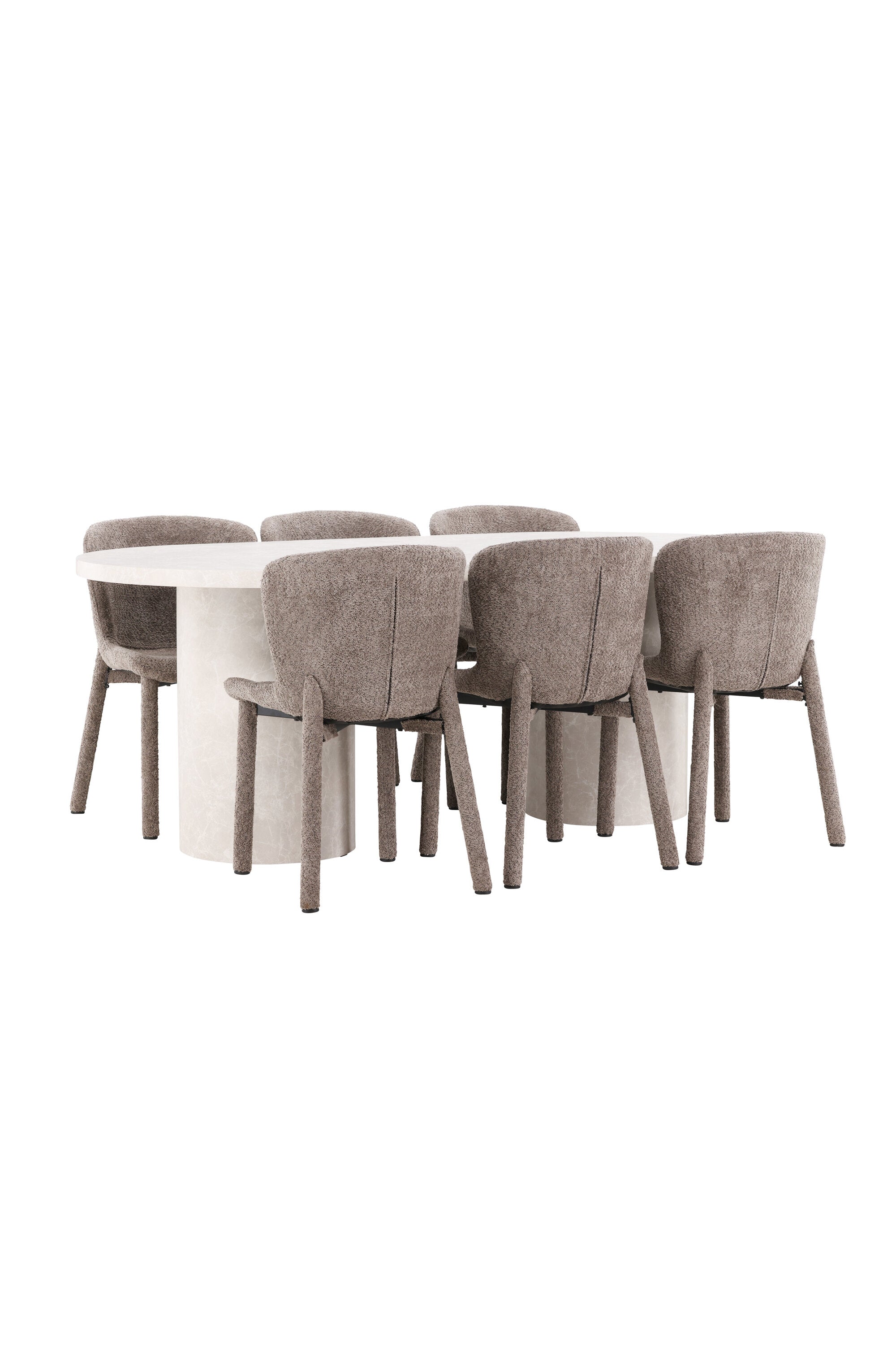 Proměňte svůj jídelní prostor pomocí elegantní a lákavé kombinace jídelního stolu Narvik a jídelních židlí Astoria, kde se styl snoubí s pohodlím v dokonalé harmonii.