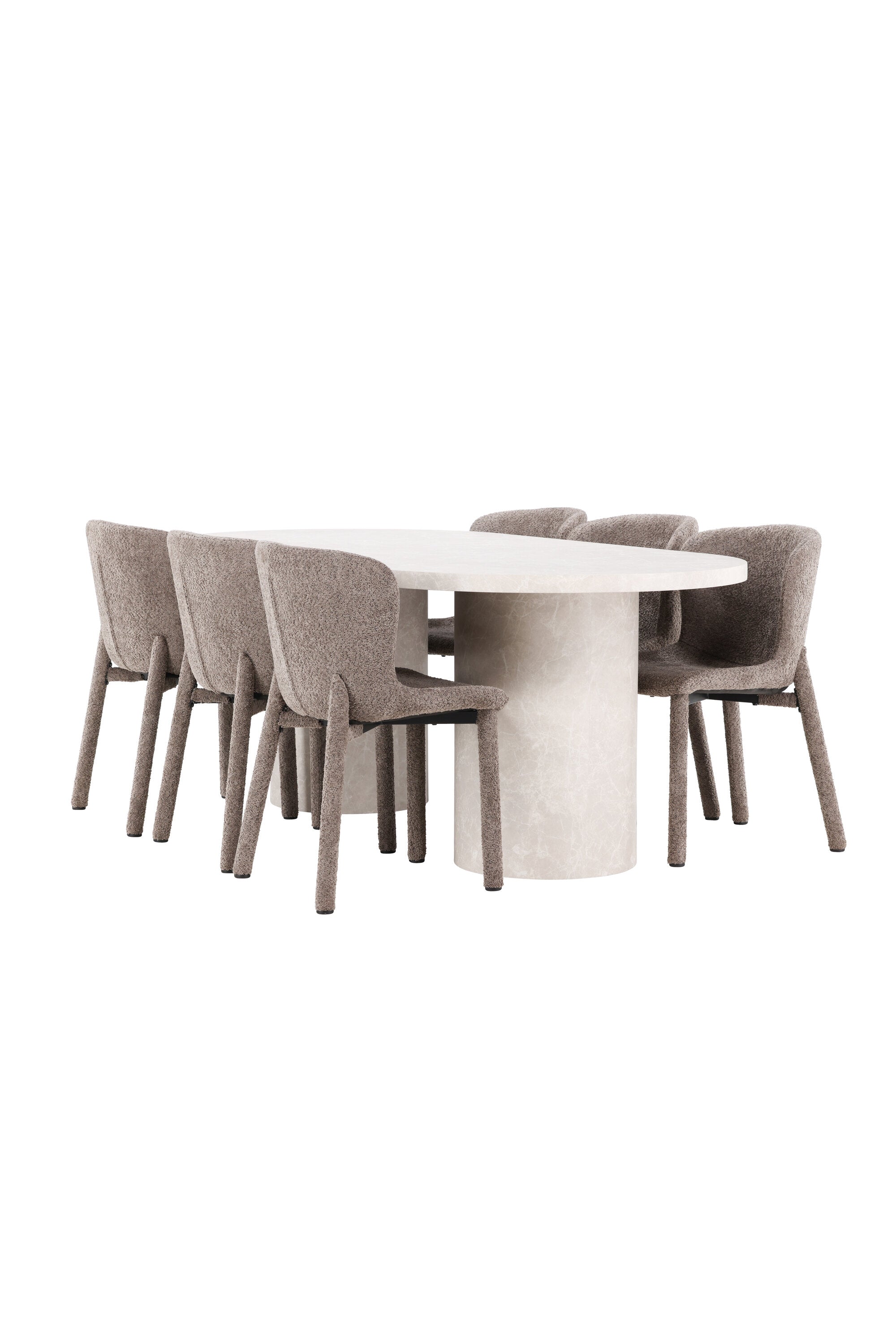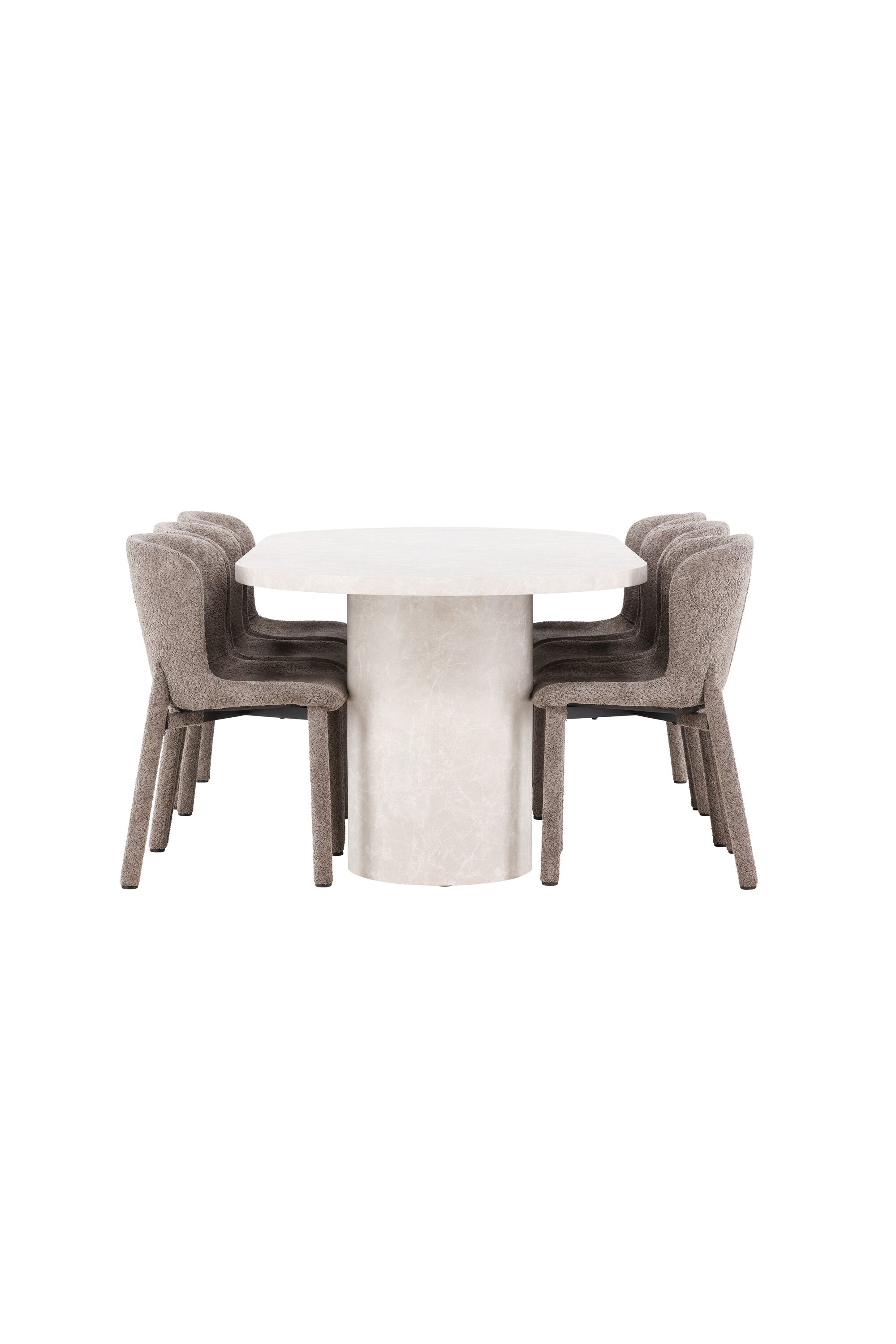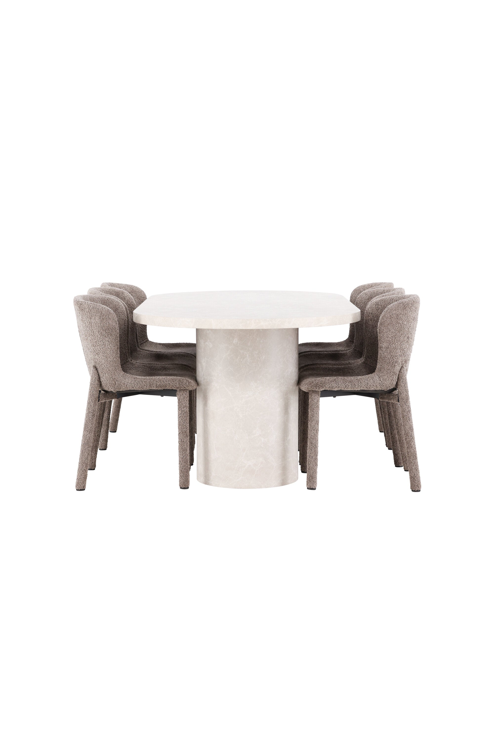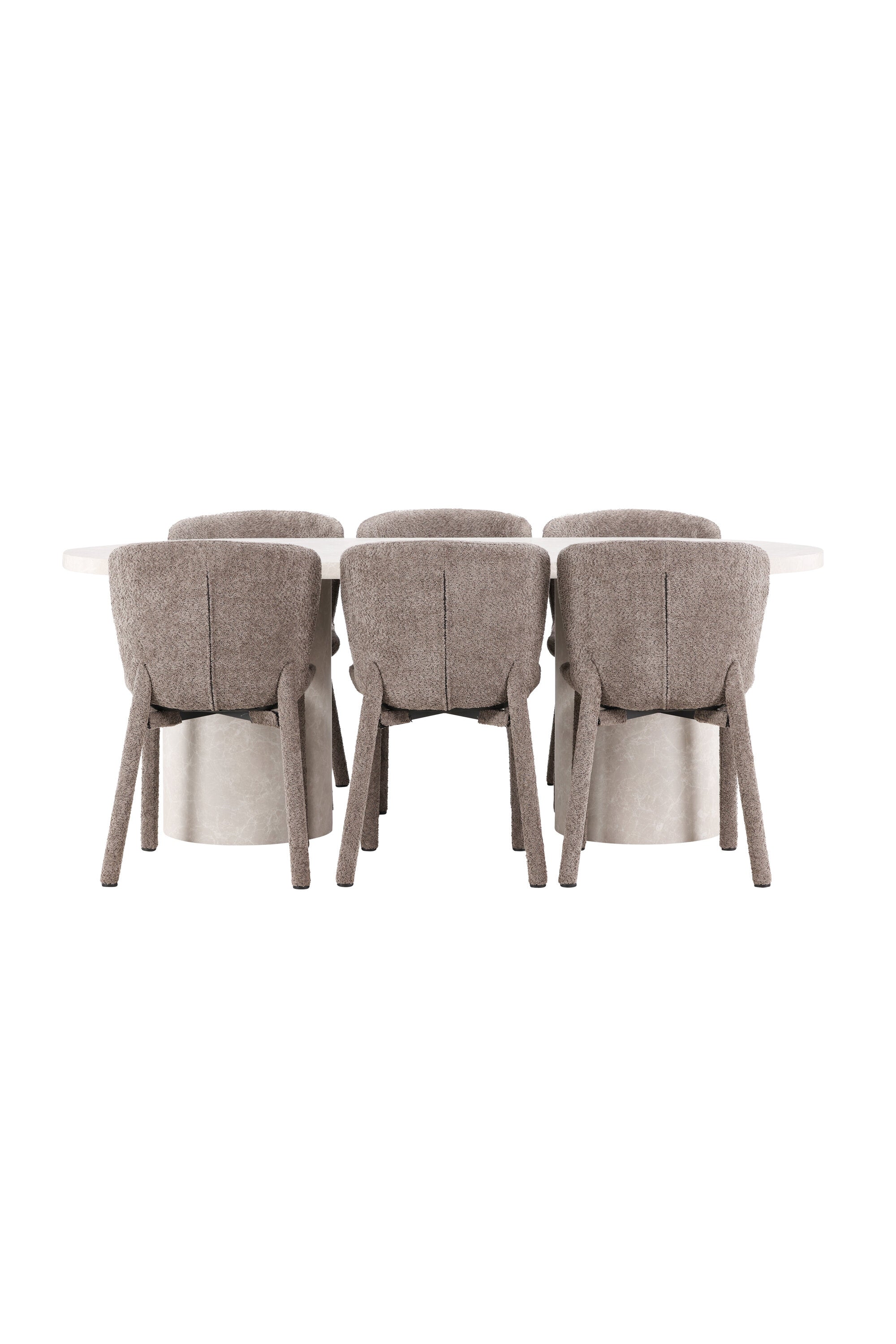 Proměňte svůj jídelní prostor pomocí elegantní a lákavé kombinace jídelního stolu Narvik a jídelních židlí Astoria, kde se styl snoubí s pohodlím v dokonalé harmonii.