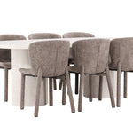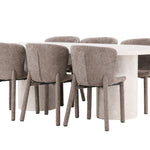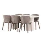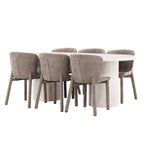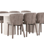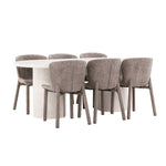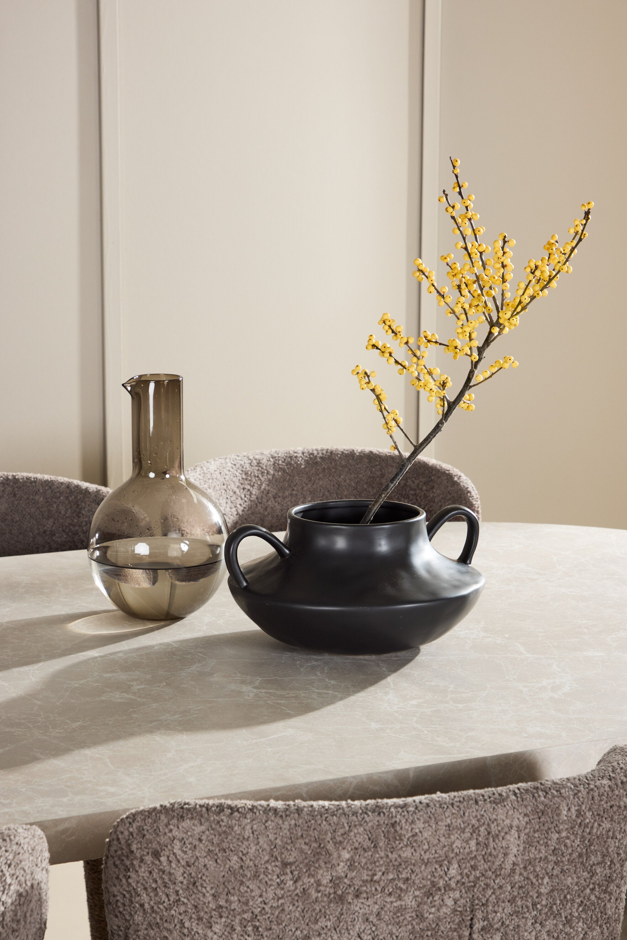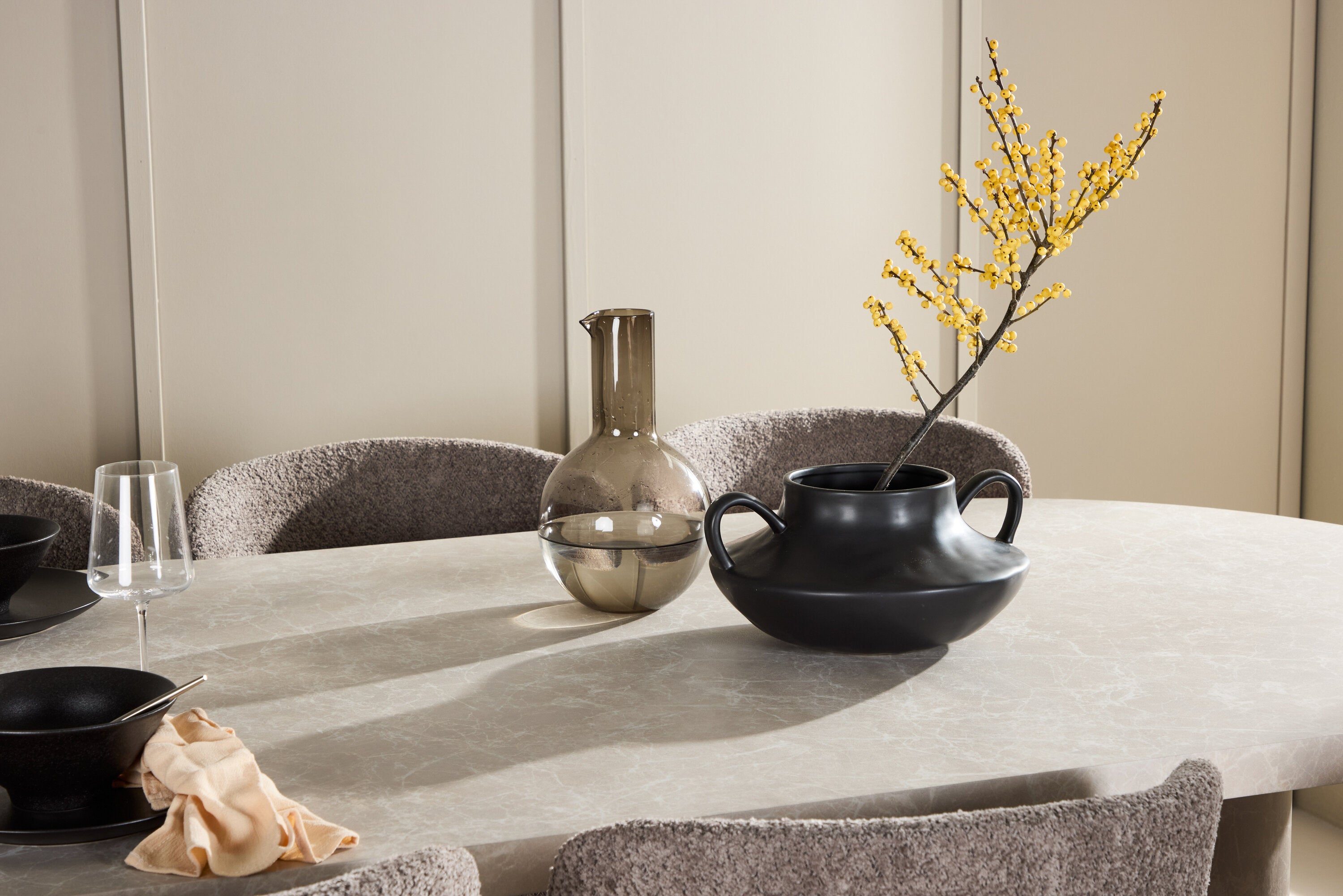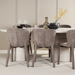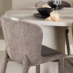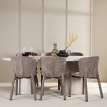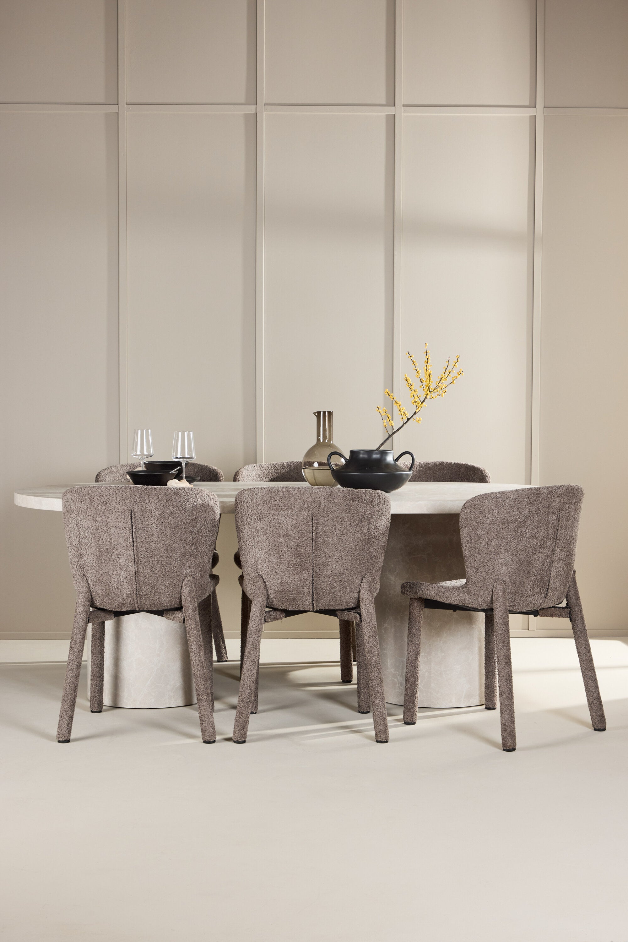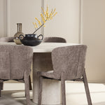 Ke stolu se hodí jídelní židle Astoria, čalouněná luxusním hnědým buclé. Sytá, teplá barva a měkká textura dělají ze židle výrazný prvek ve vaší jídelně. Astoria je stejně příjemná na pohled jako na sezení a nabízí pohodlný a relaxační zážitek ze stolování díky svému ergonomickému opěradlu a velkoryse polstrovanému sedadlu. Nadčasový design židle hladce zapadne do moderního i klasického interiéru a dodá vašemu jídelnímu koutu sofistikovaný nádech.
