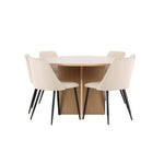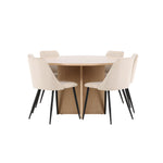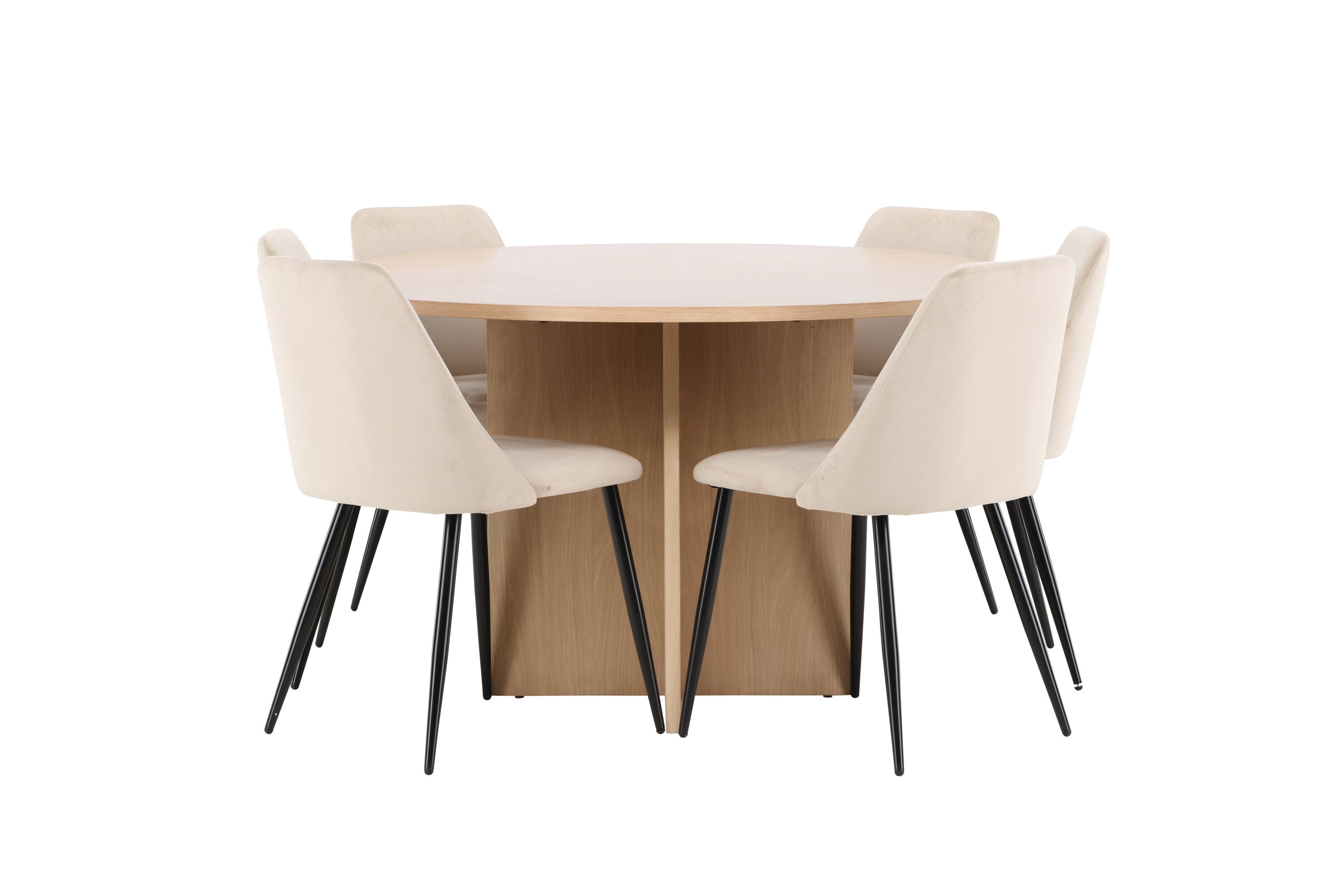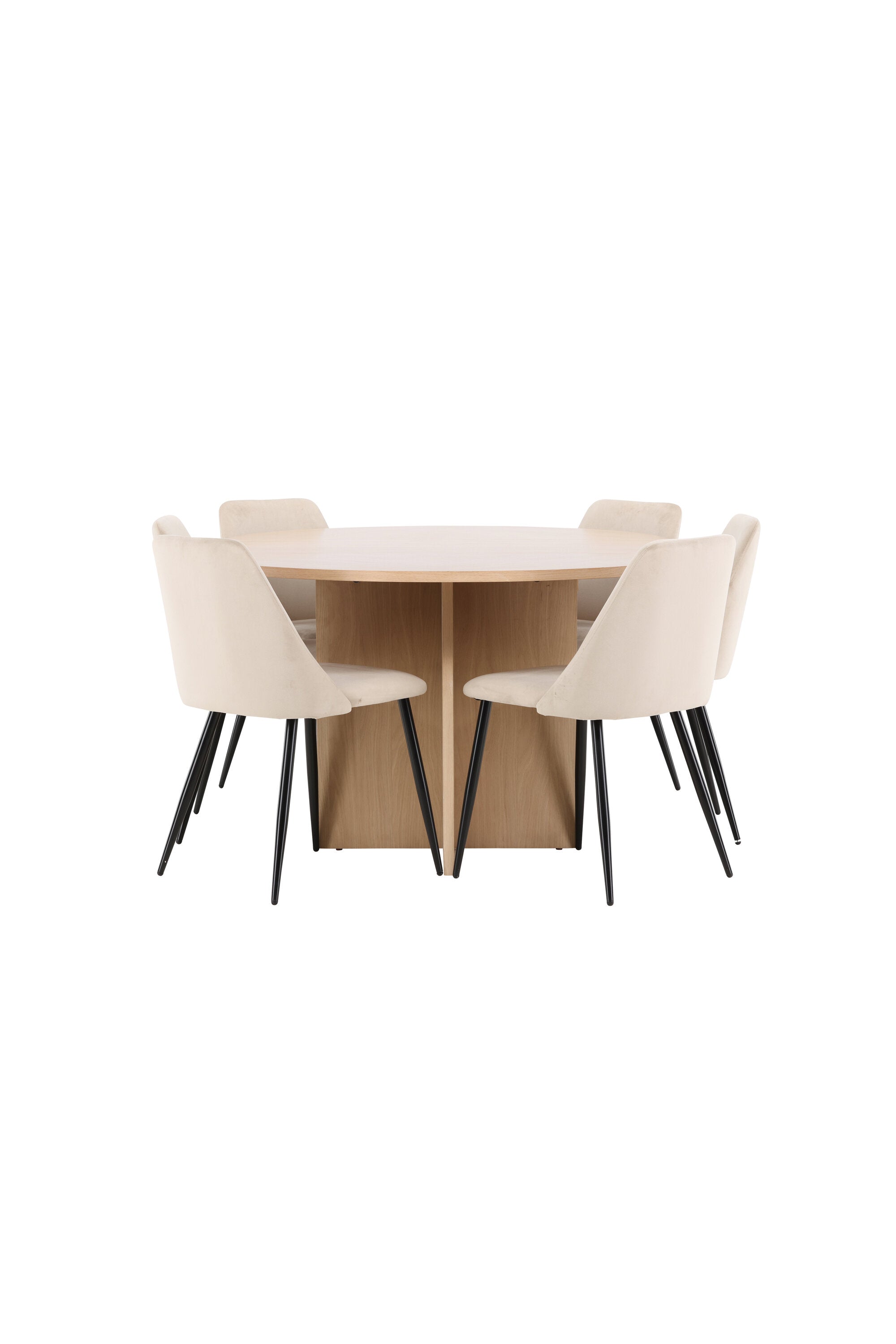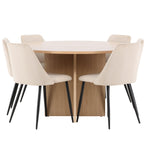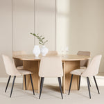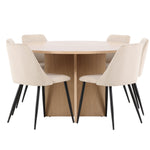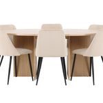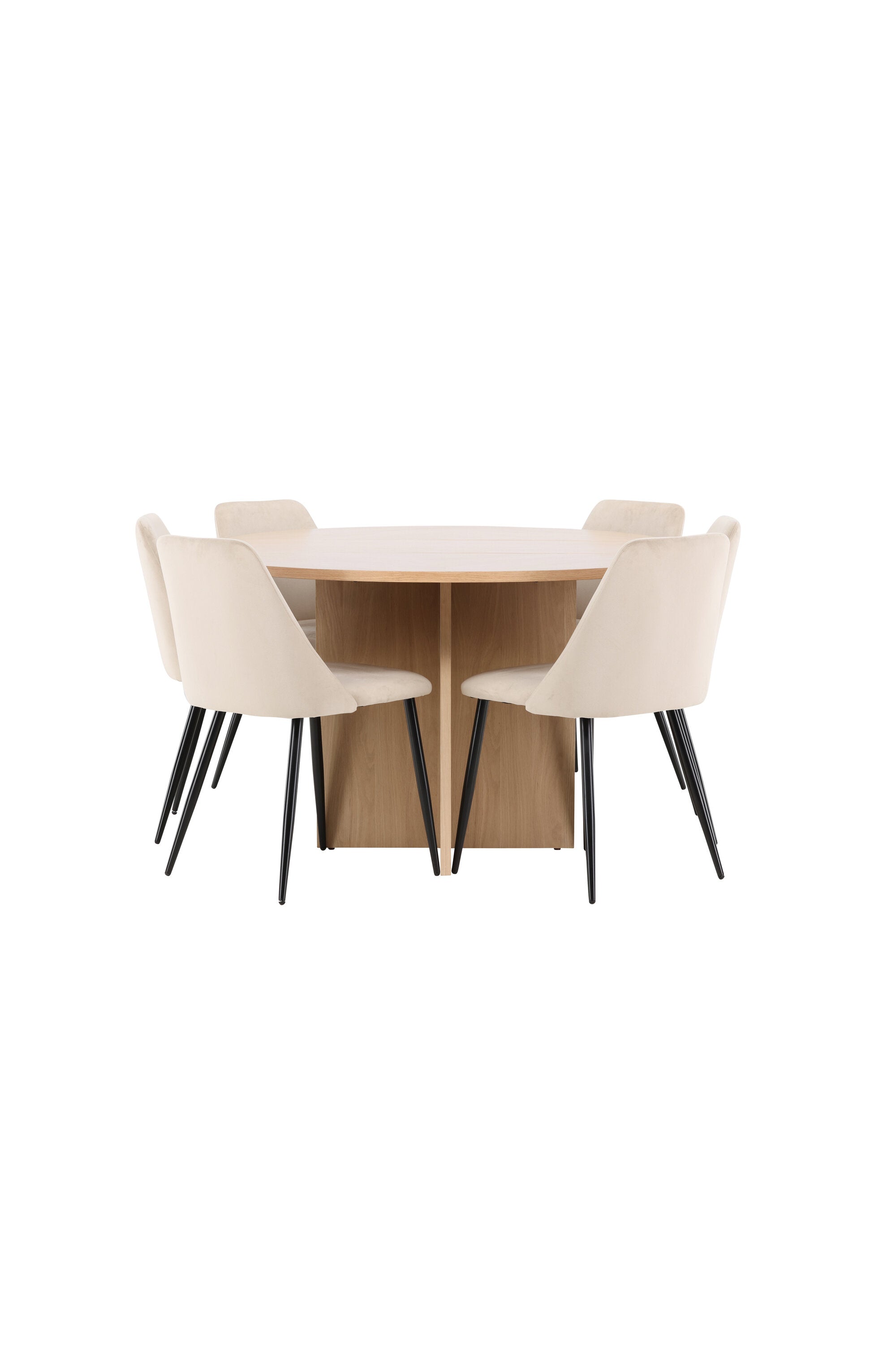 Jídelní židle Night a jídelní stůl Strada společně vytvářejí jídelní kout, který kombinuje pohodlí, styl a funkčnost. Luxusní sametové čalounění a elegantní černé nohy židle Night dokonale doplňují flexibilní, nabílený design stolu Strada, díky čemuž je tato kombinace elegantním a praktickým středobodem vašeho domova.