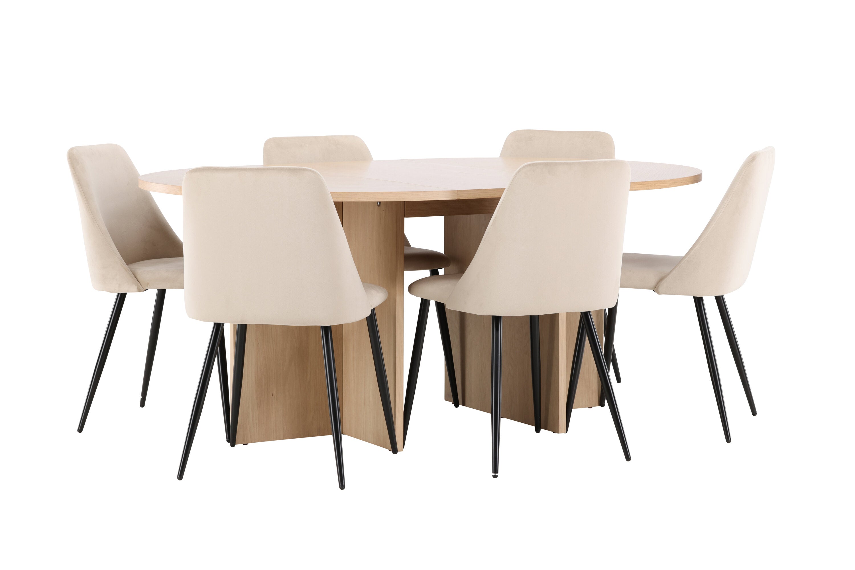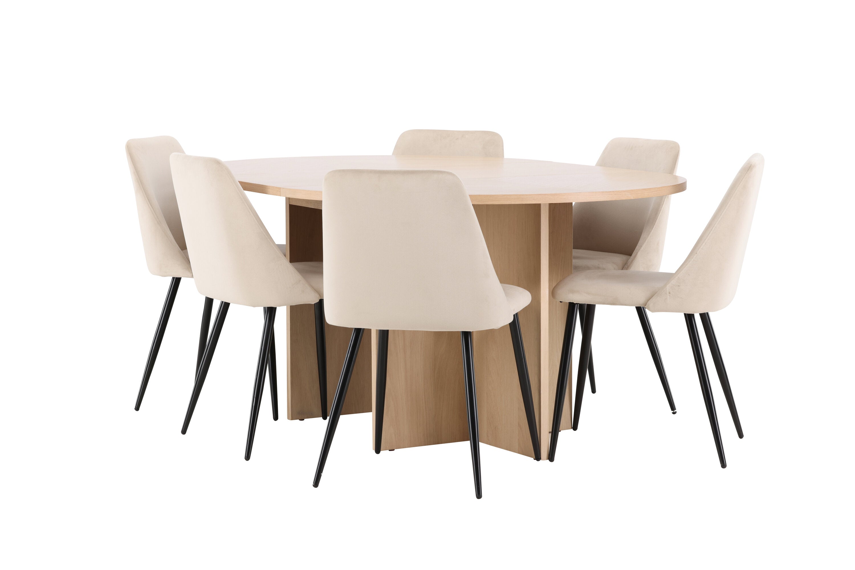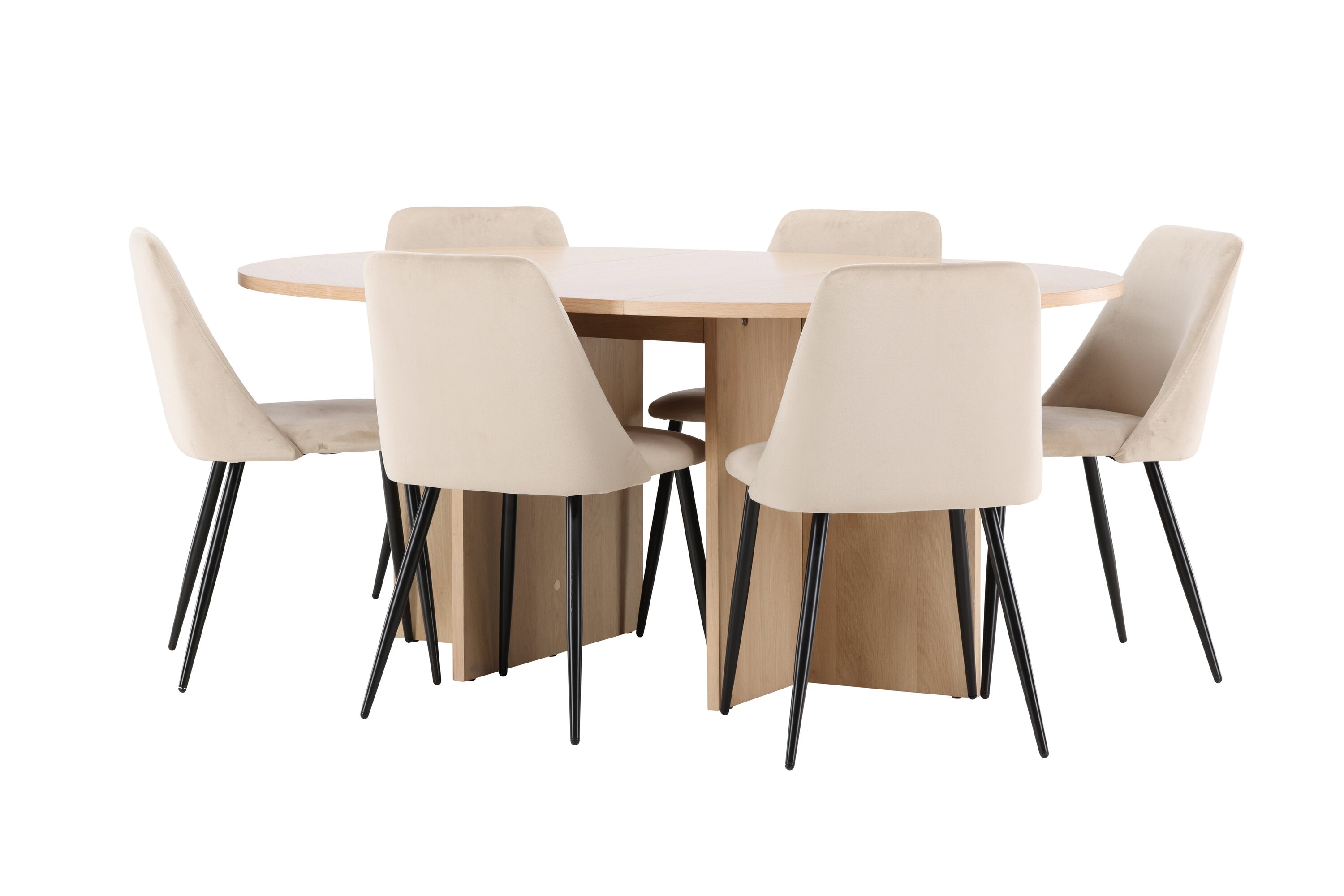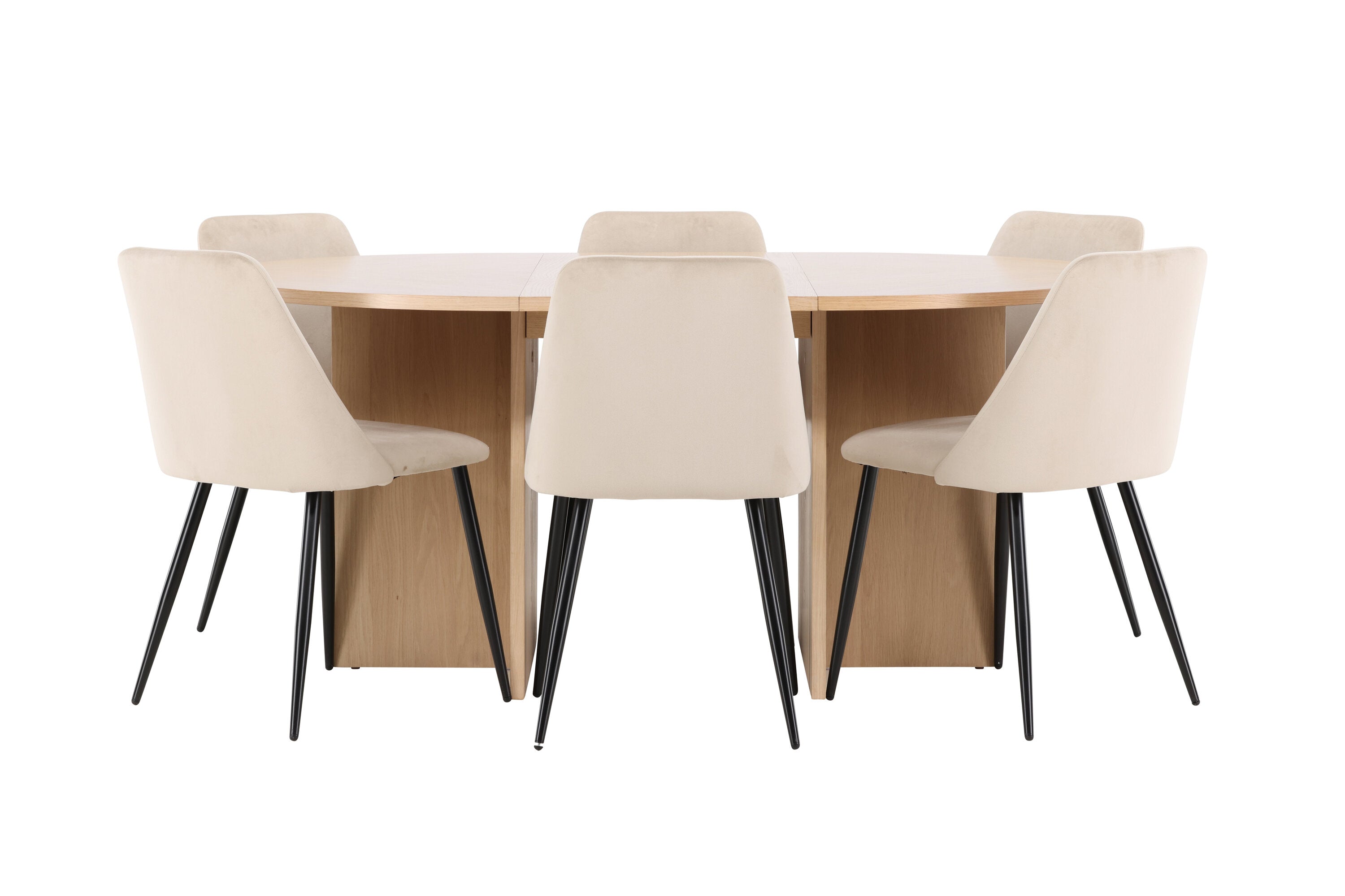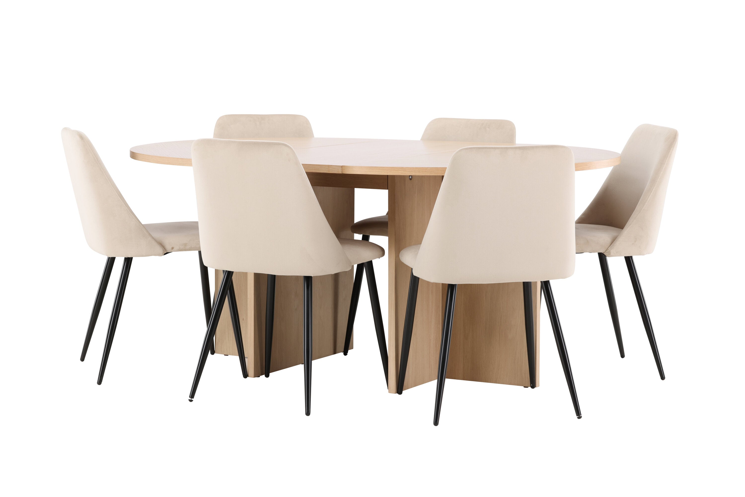 Stůl Strada - Whitewash se 6 nočními židlemi - Černá / Béžová