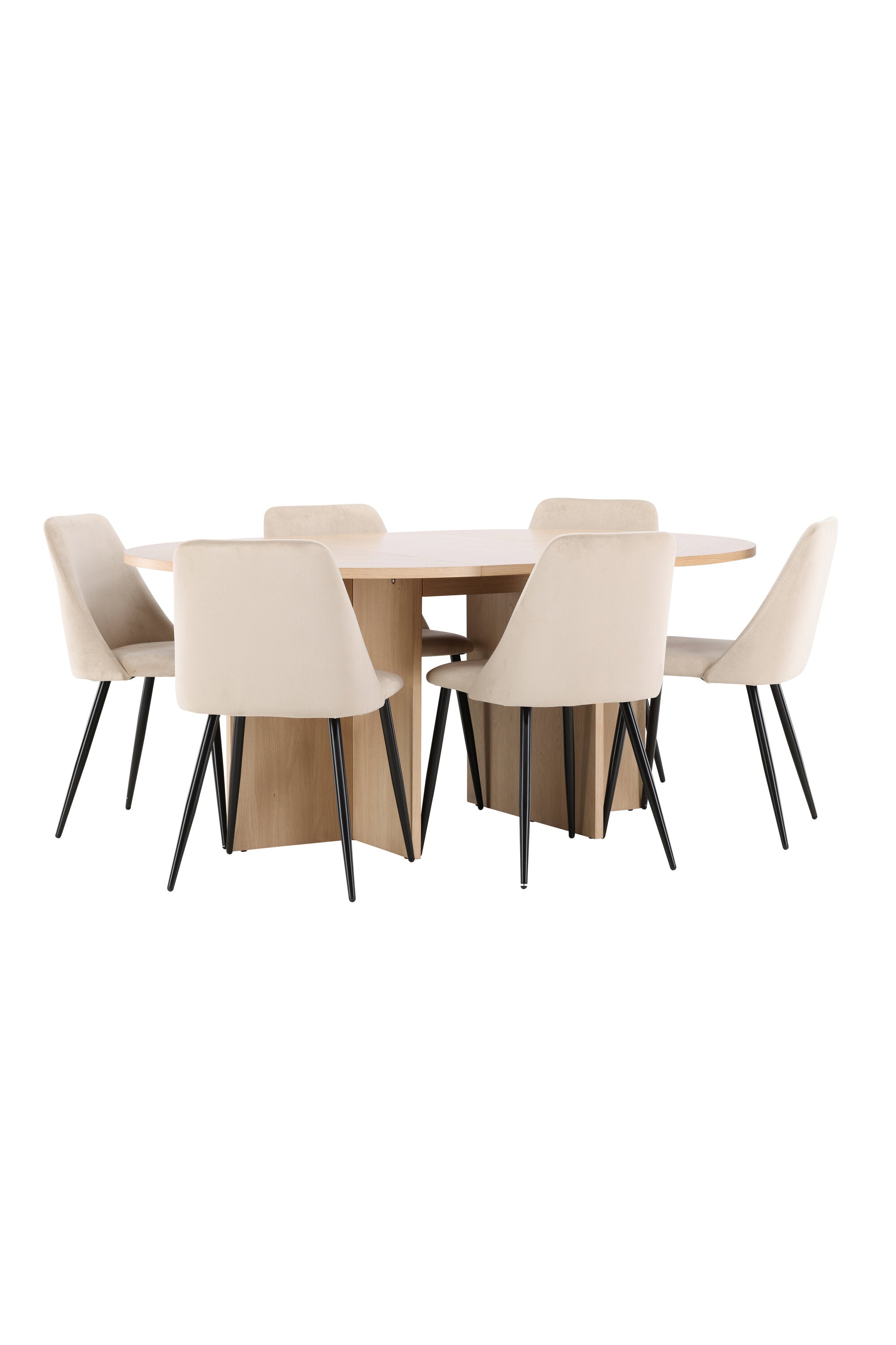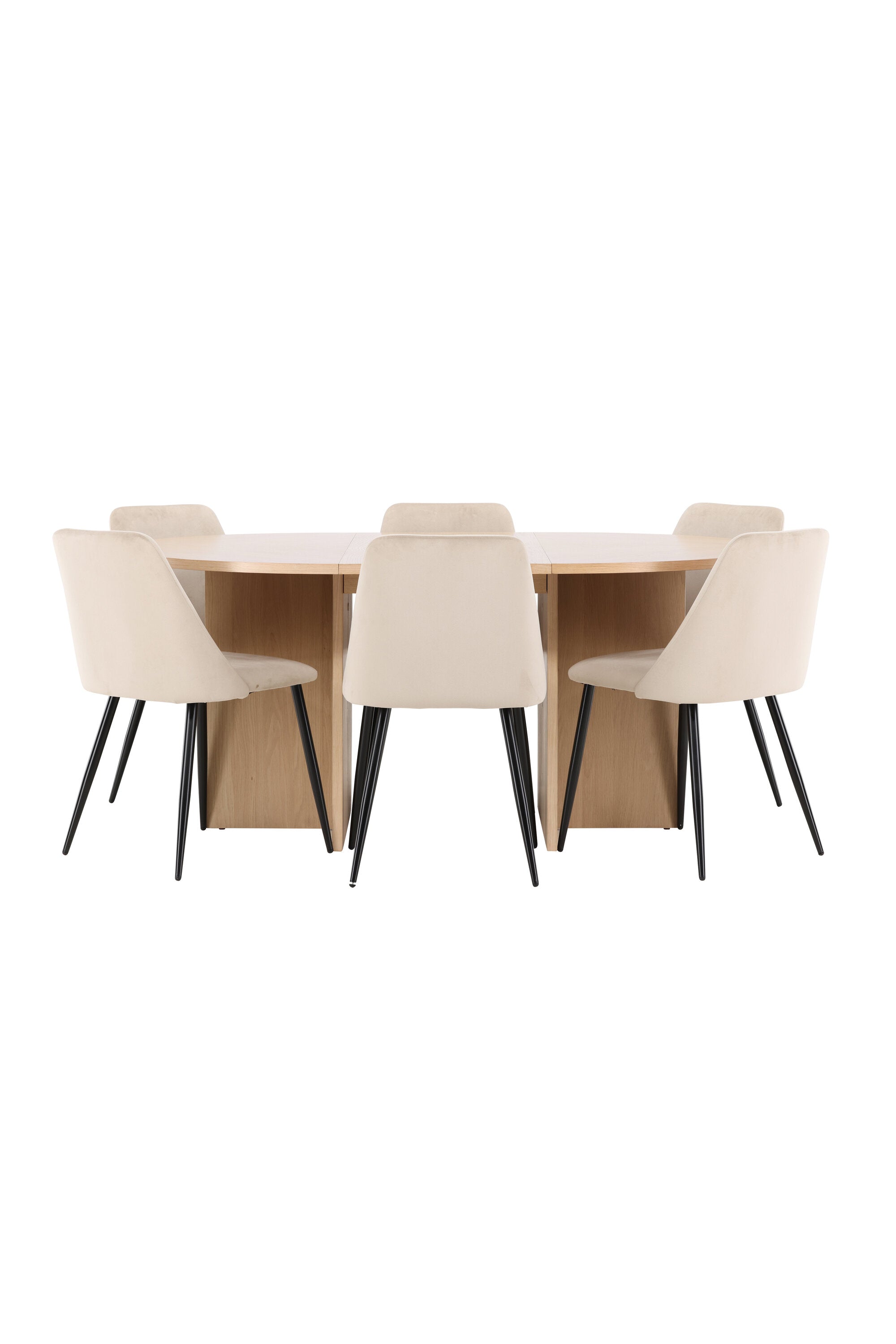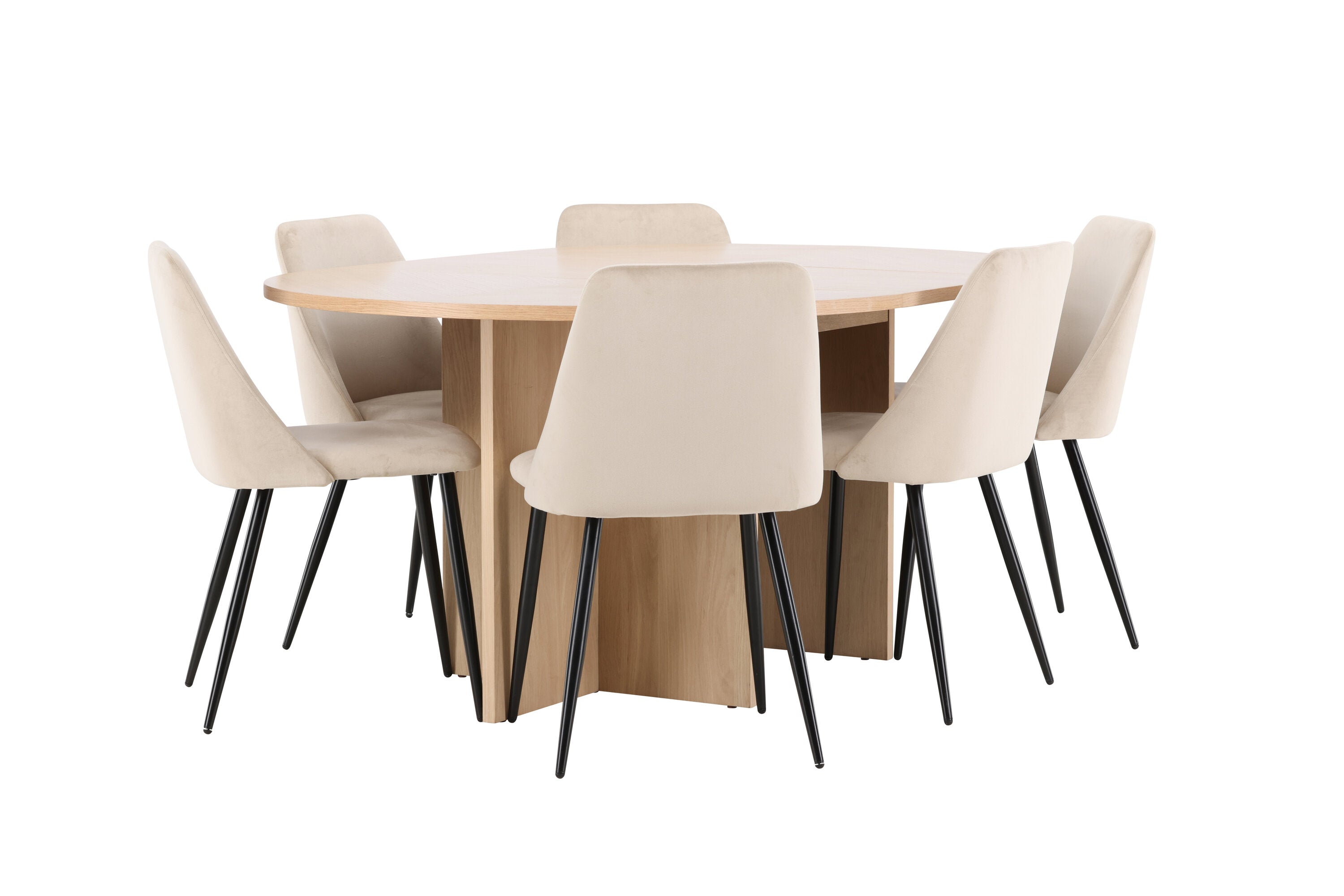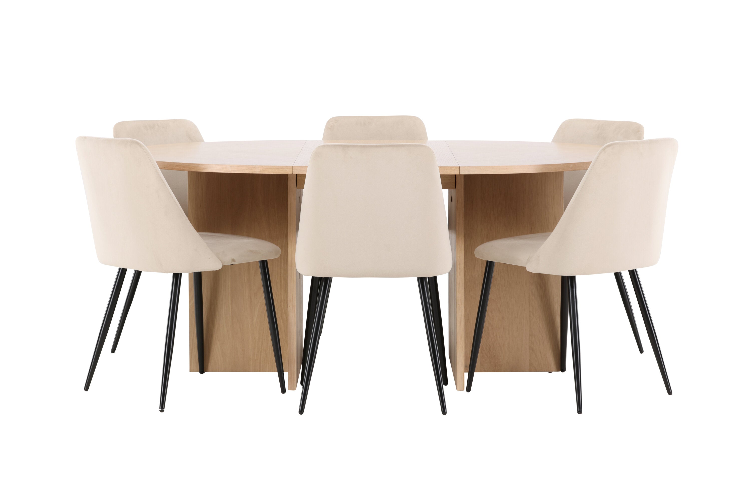 Stůl Strada - Whitewash se 6 nočními židlemi - Černá / Béžová