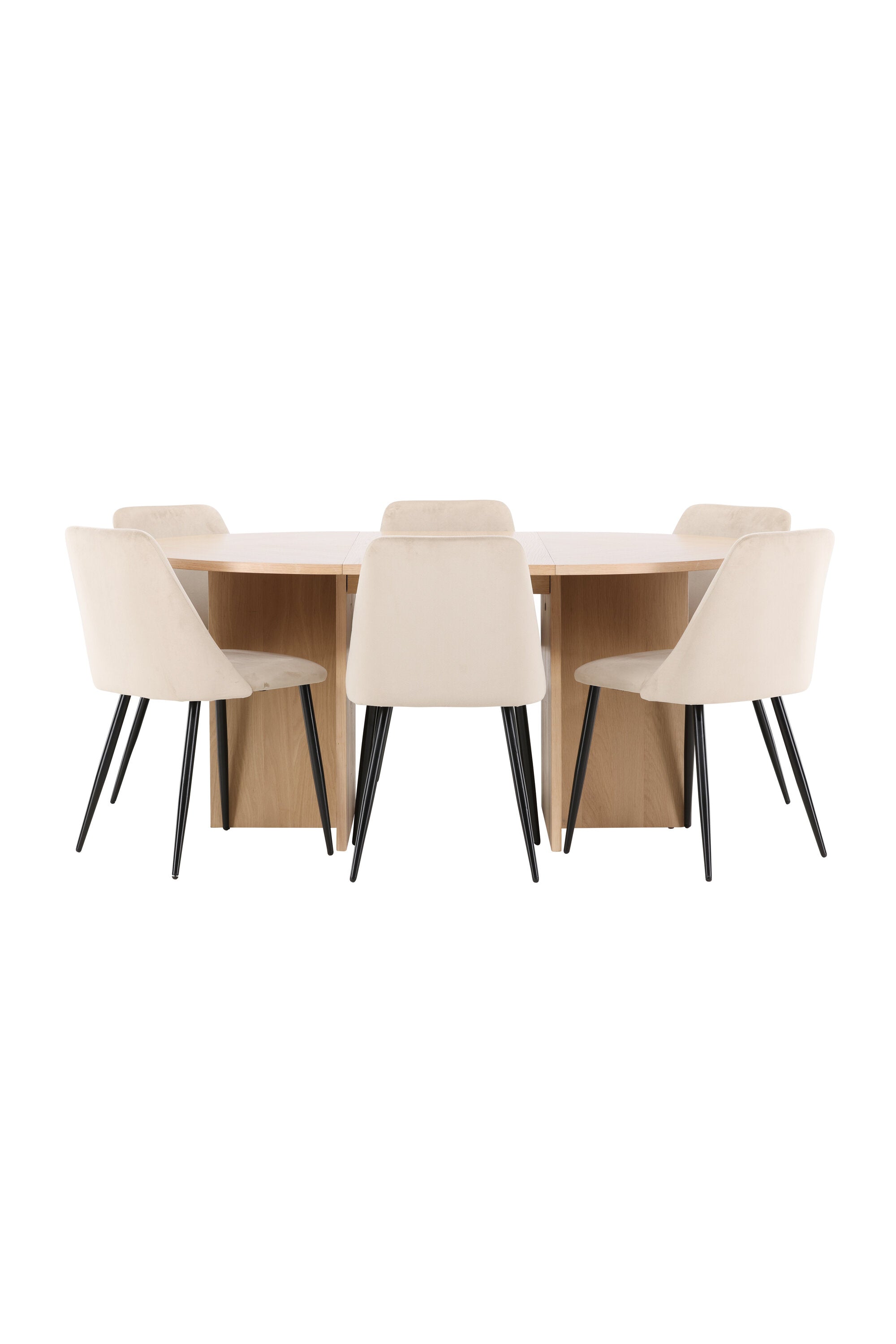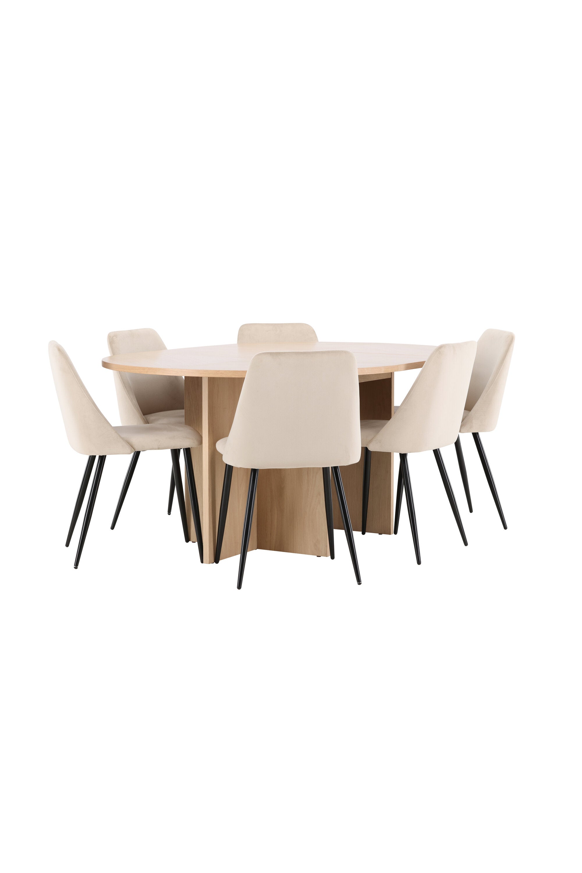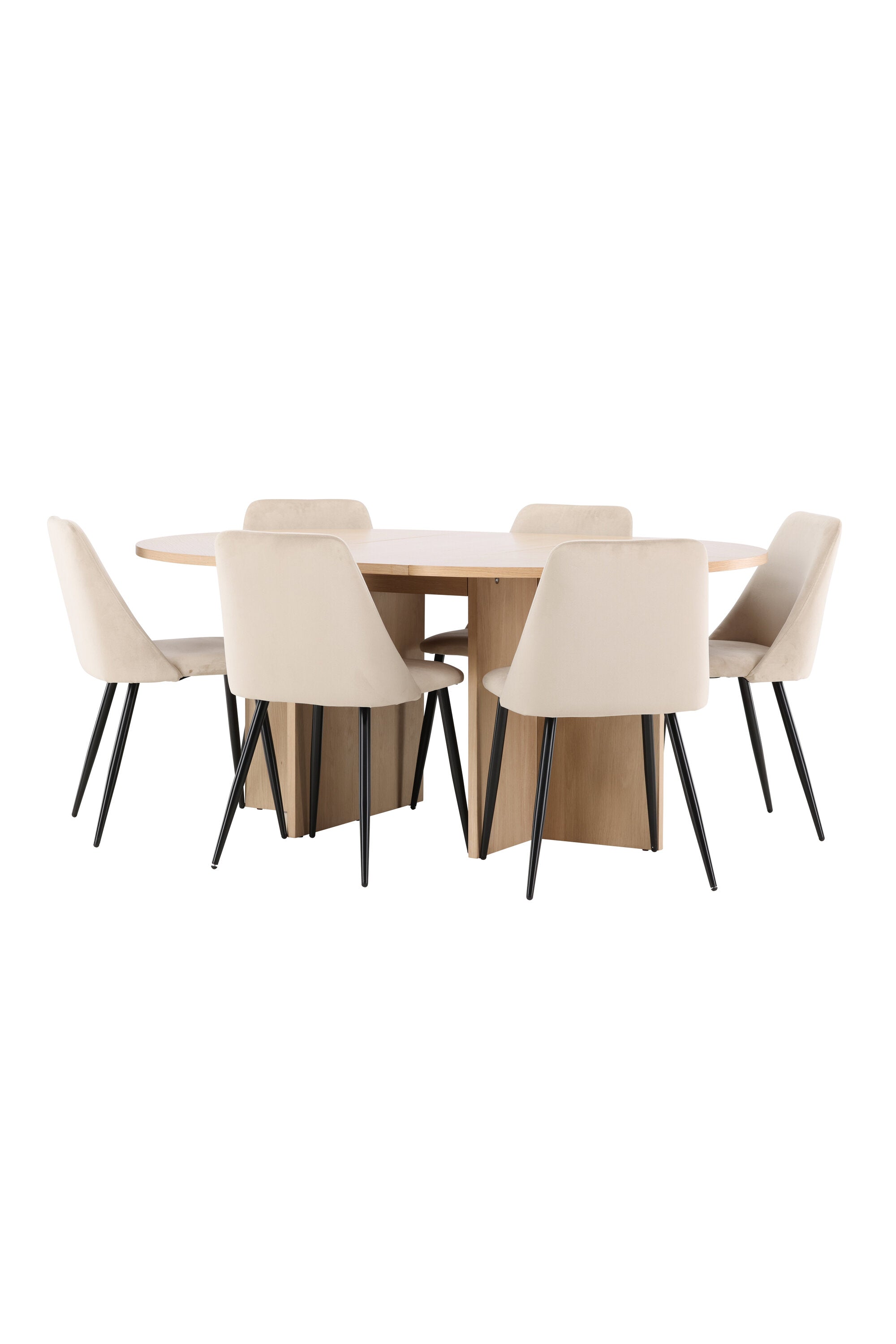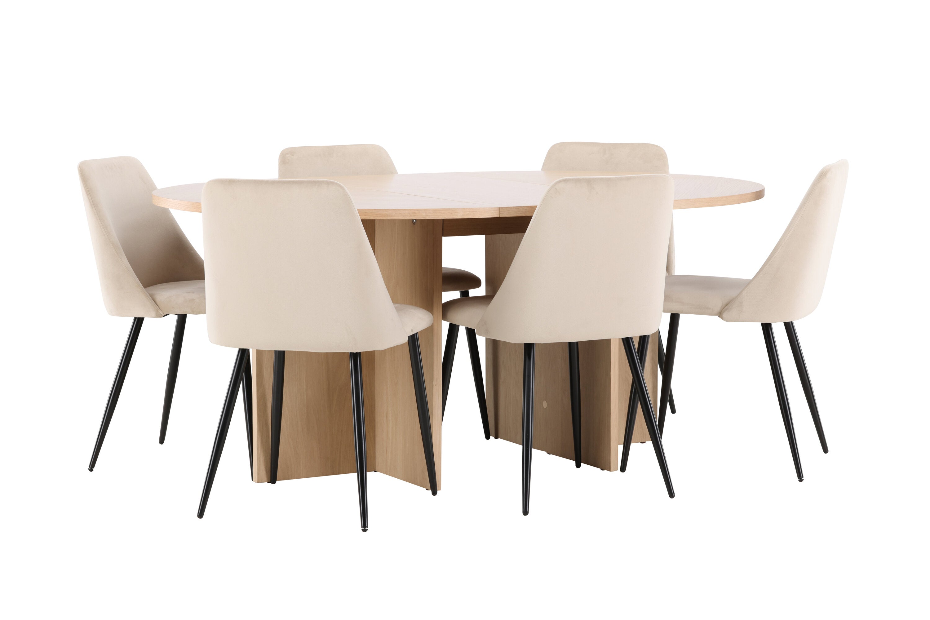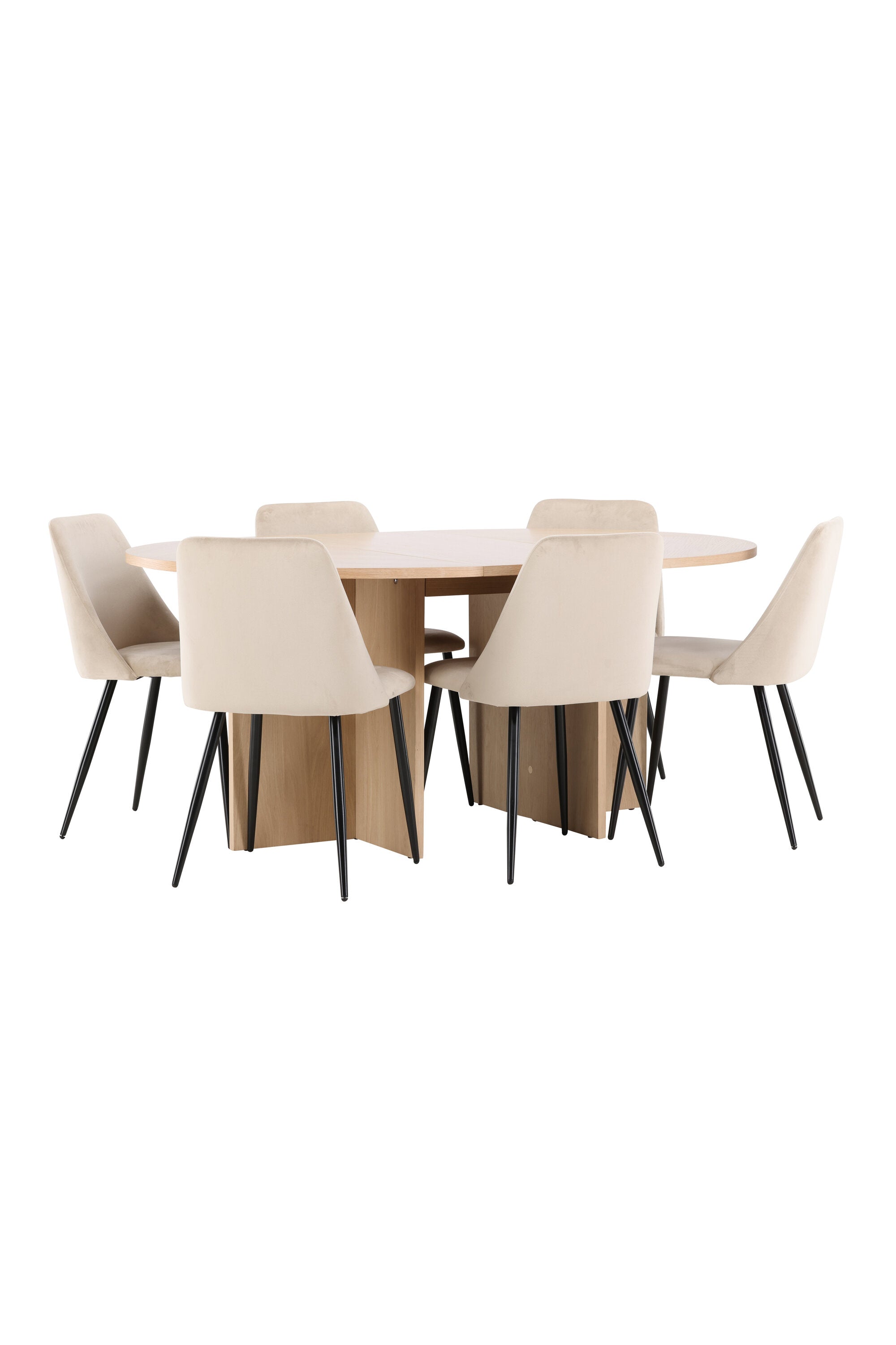 Stůl Strada - Whitewash se 6 nočními židlemi - Černá / Béžová