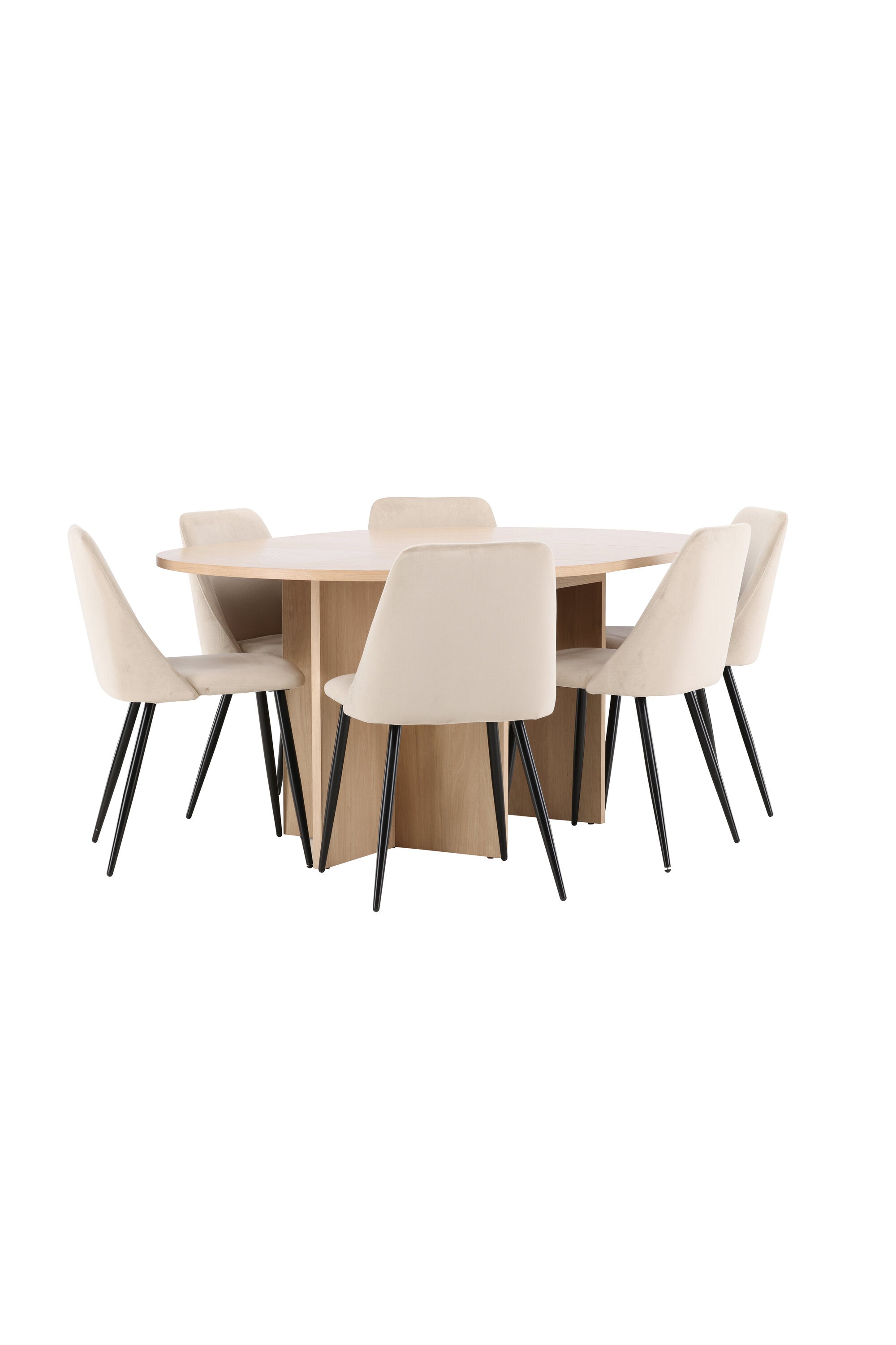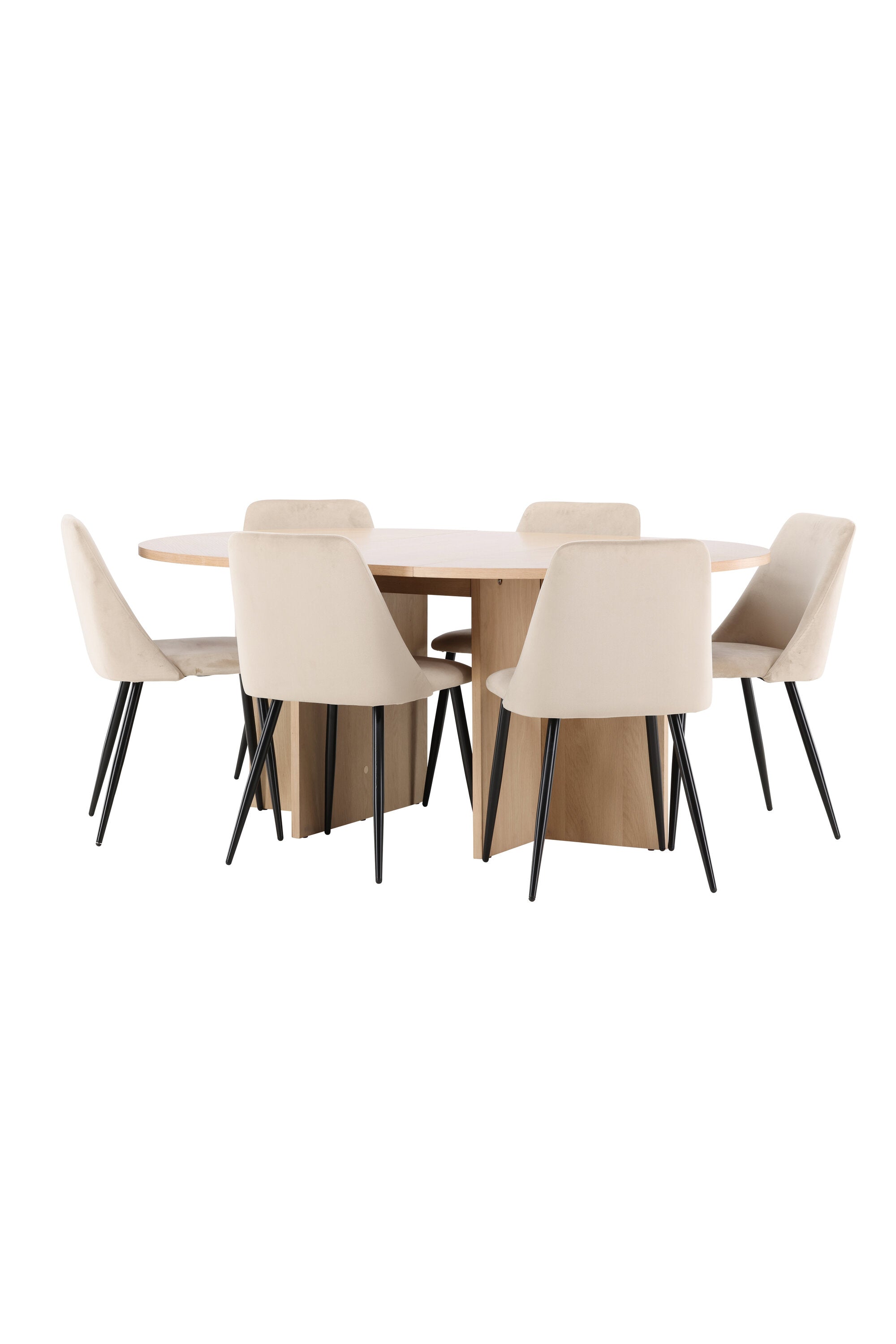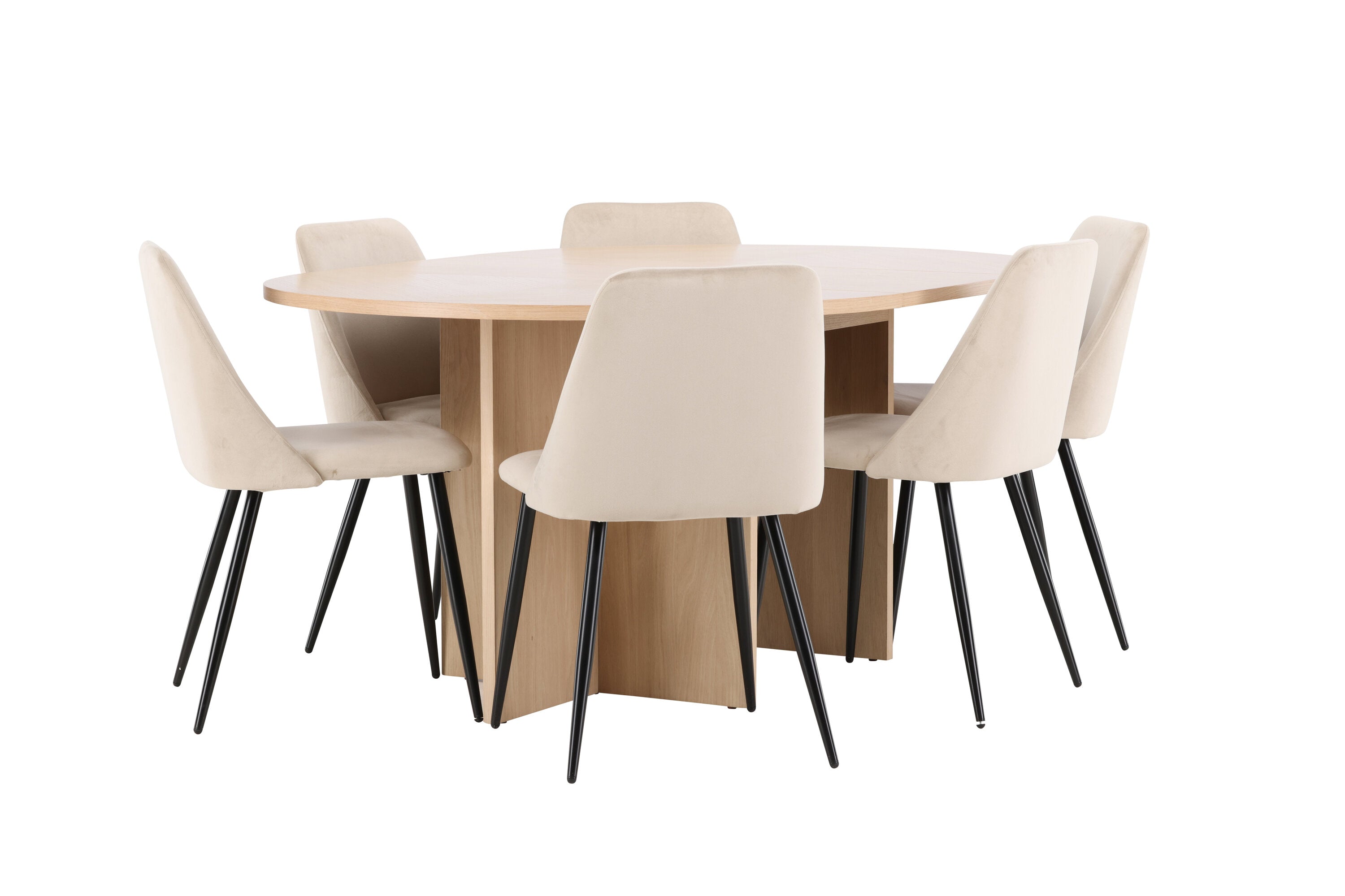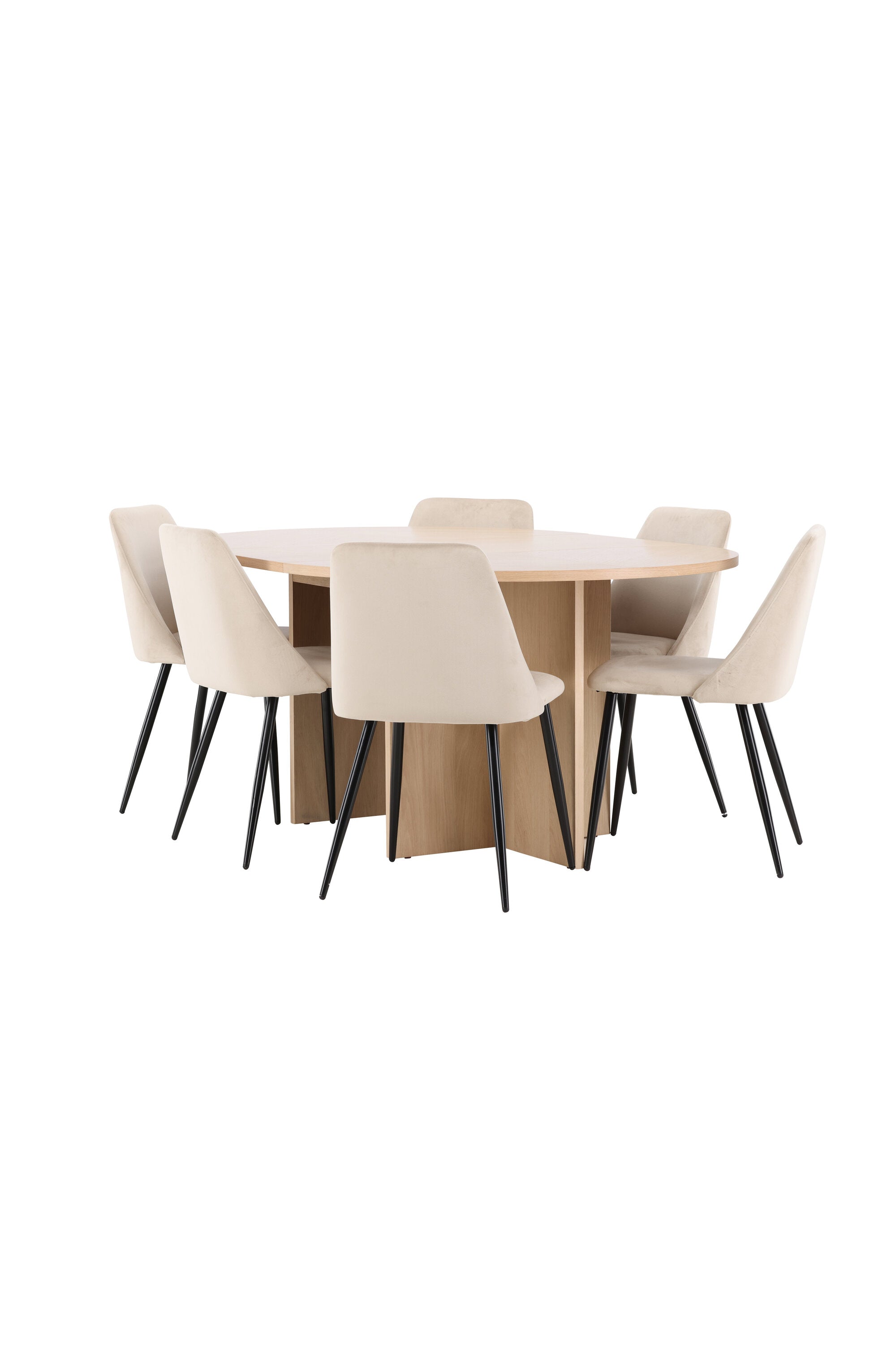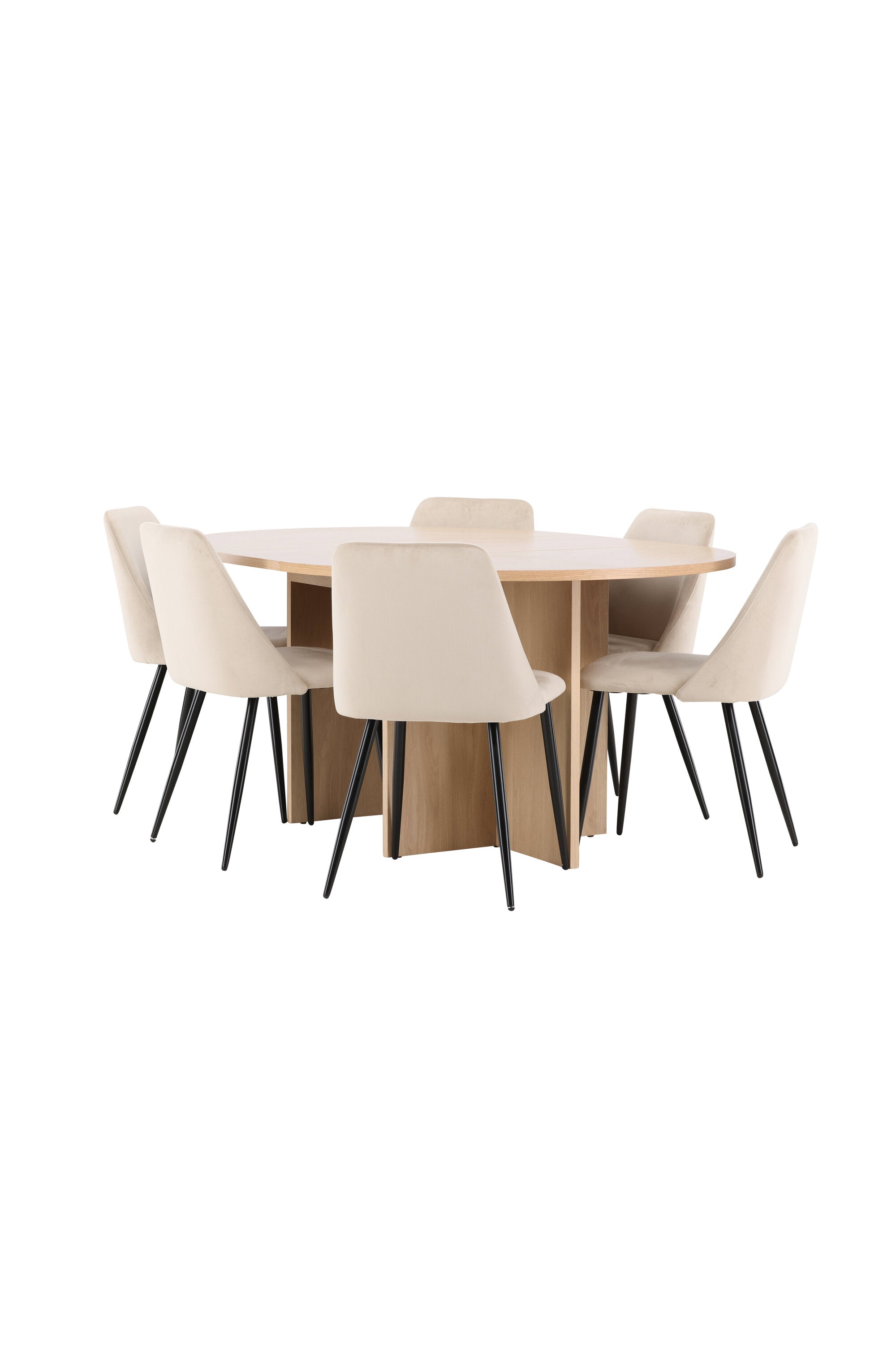 Stůl Strada - Whitewash se 6 nočními židlemi - Černá / Béžová