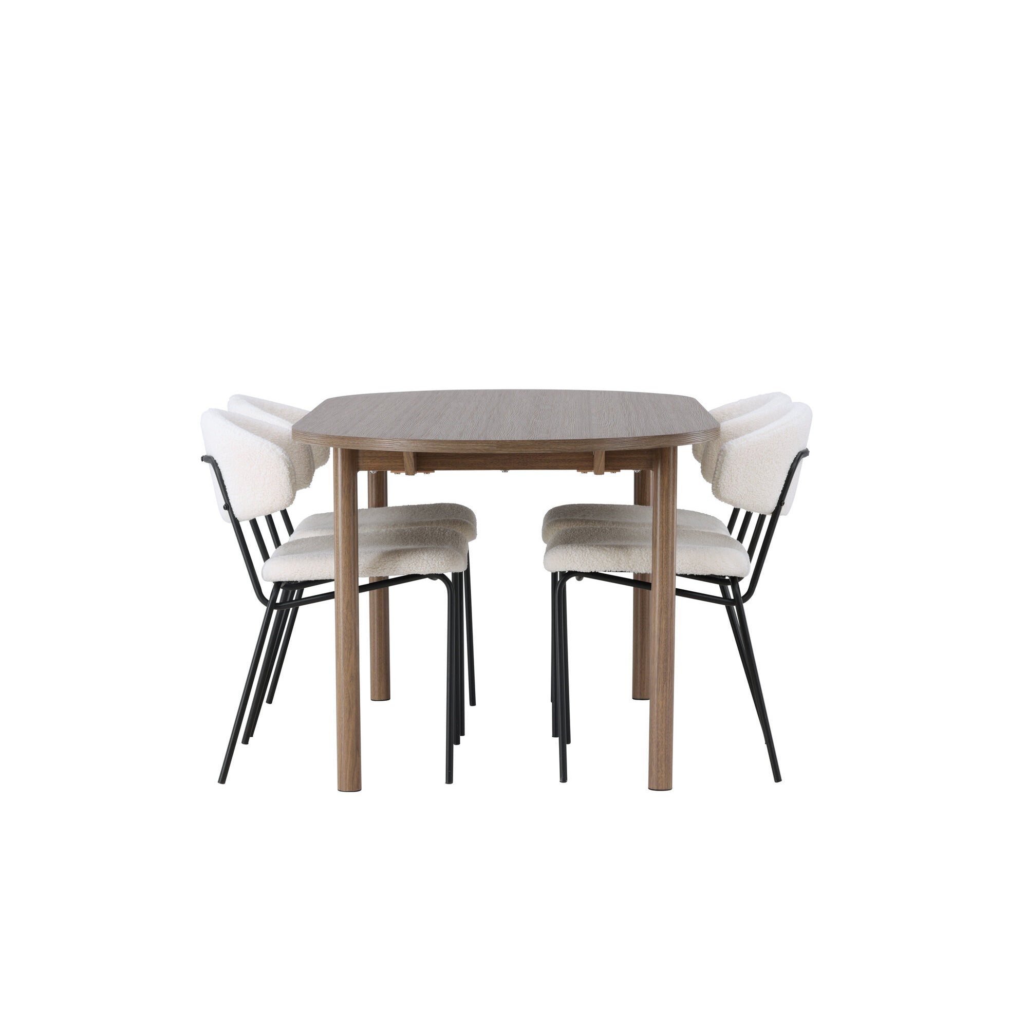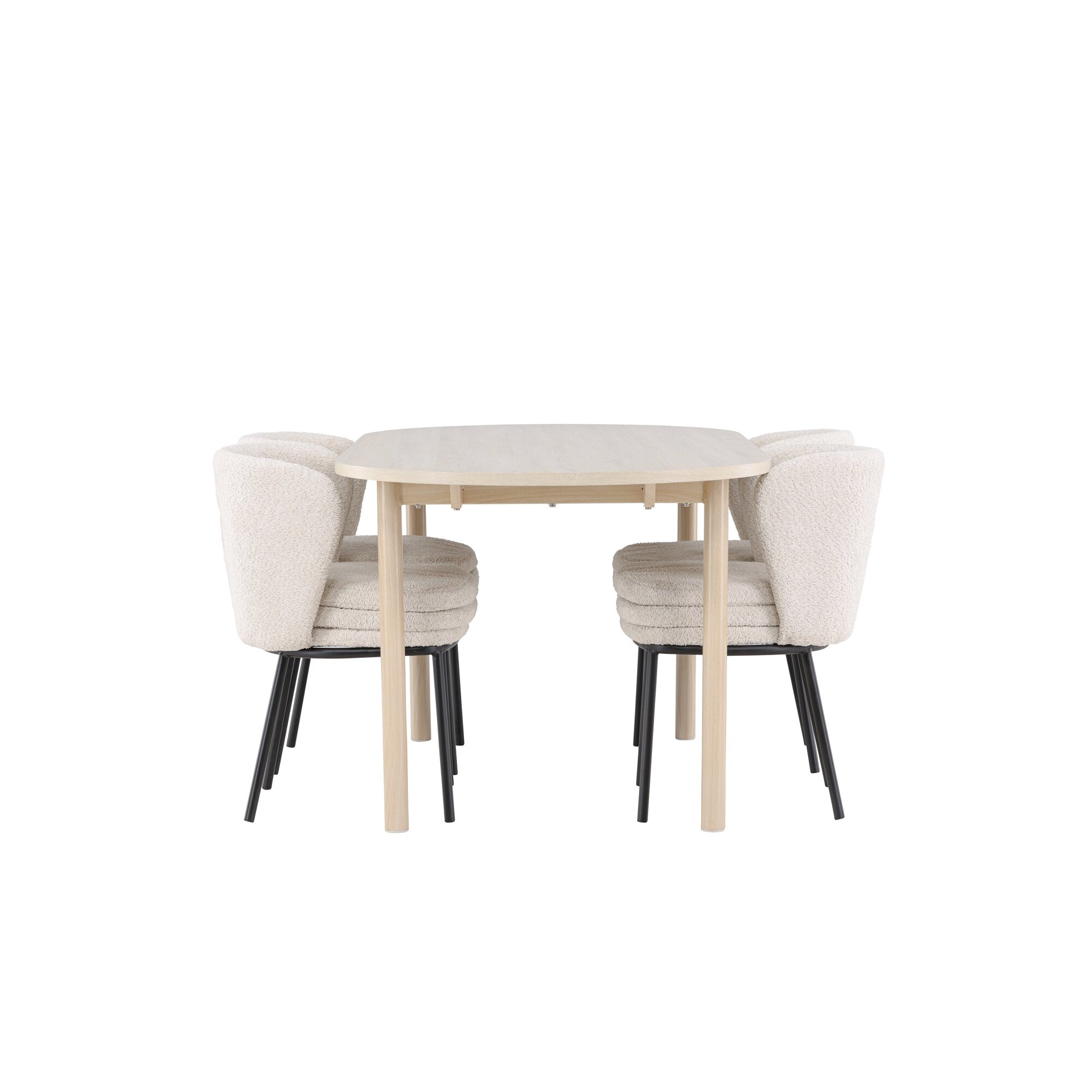 Andy Jídelní stůl 180*75 - Přírodní / Přírodní MDF + Jídelní židle Modesto - Béžová / Béžová Boucle _4