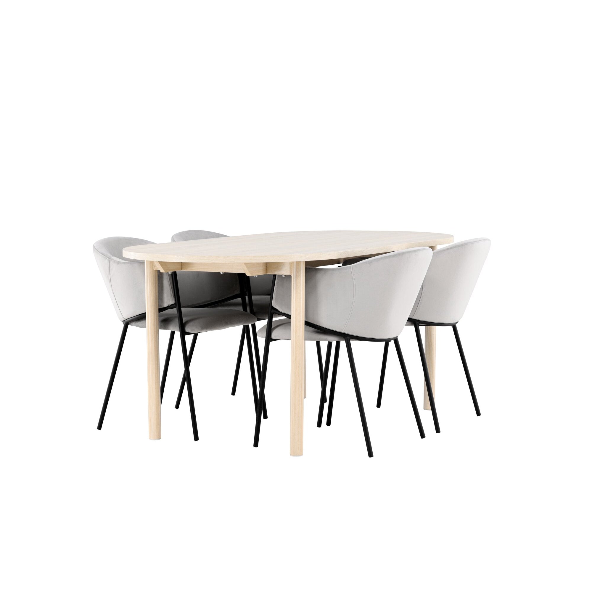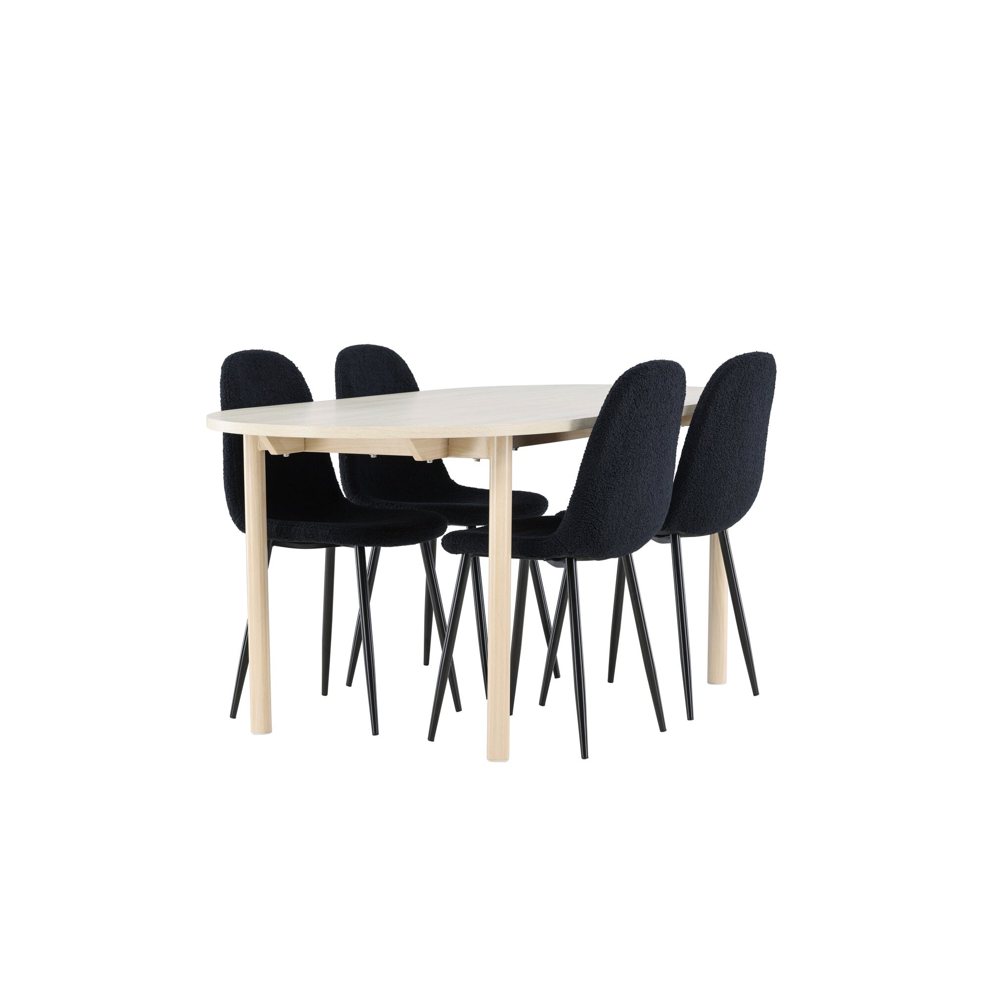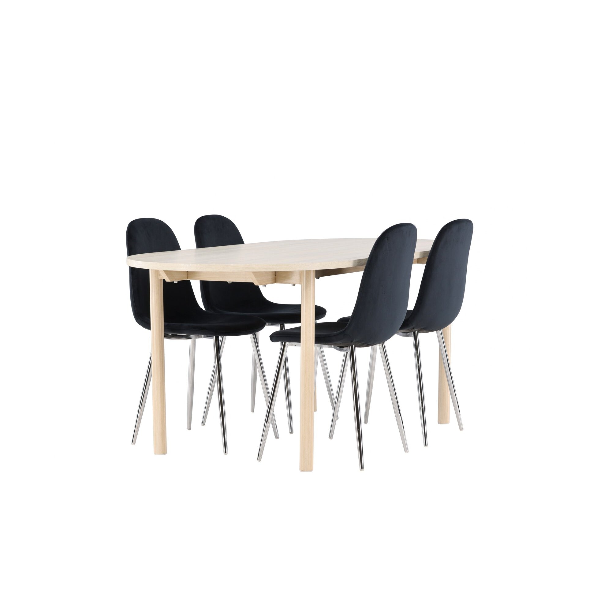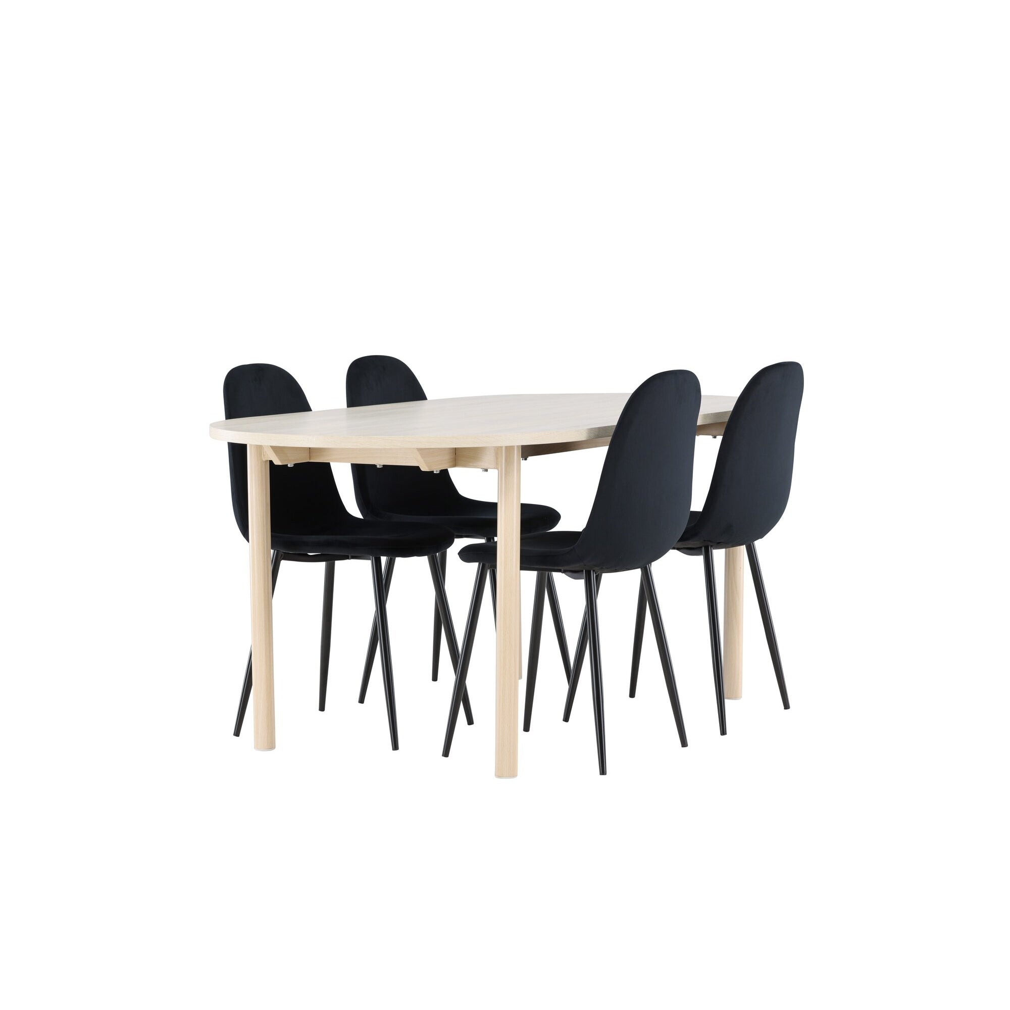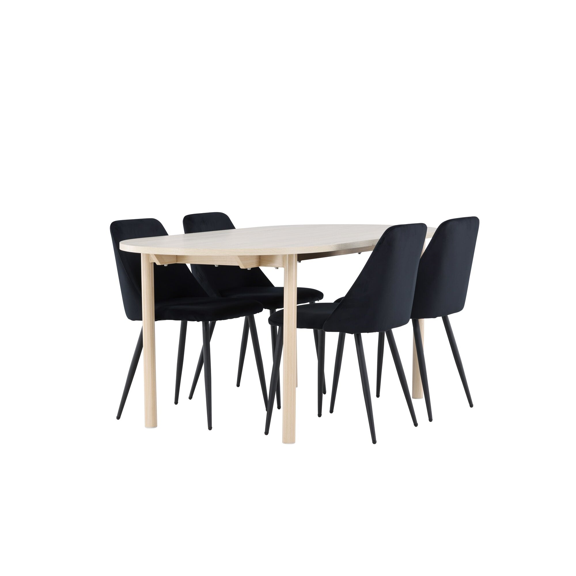 Andy Jídelní stůl 180*75 - Natural / Natural MDF + Polar Jídelní židle - Černé nohy / Black Velvet _4
