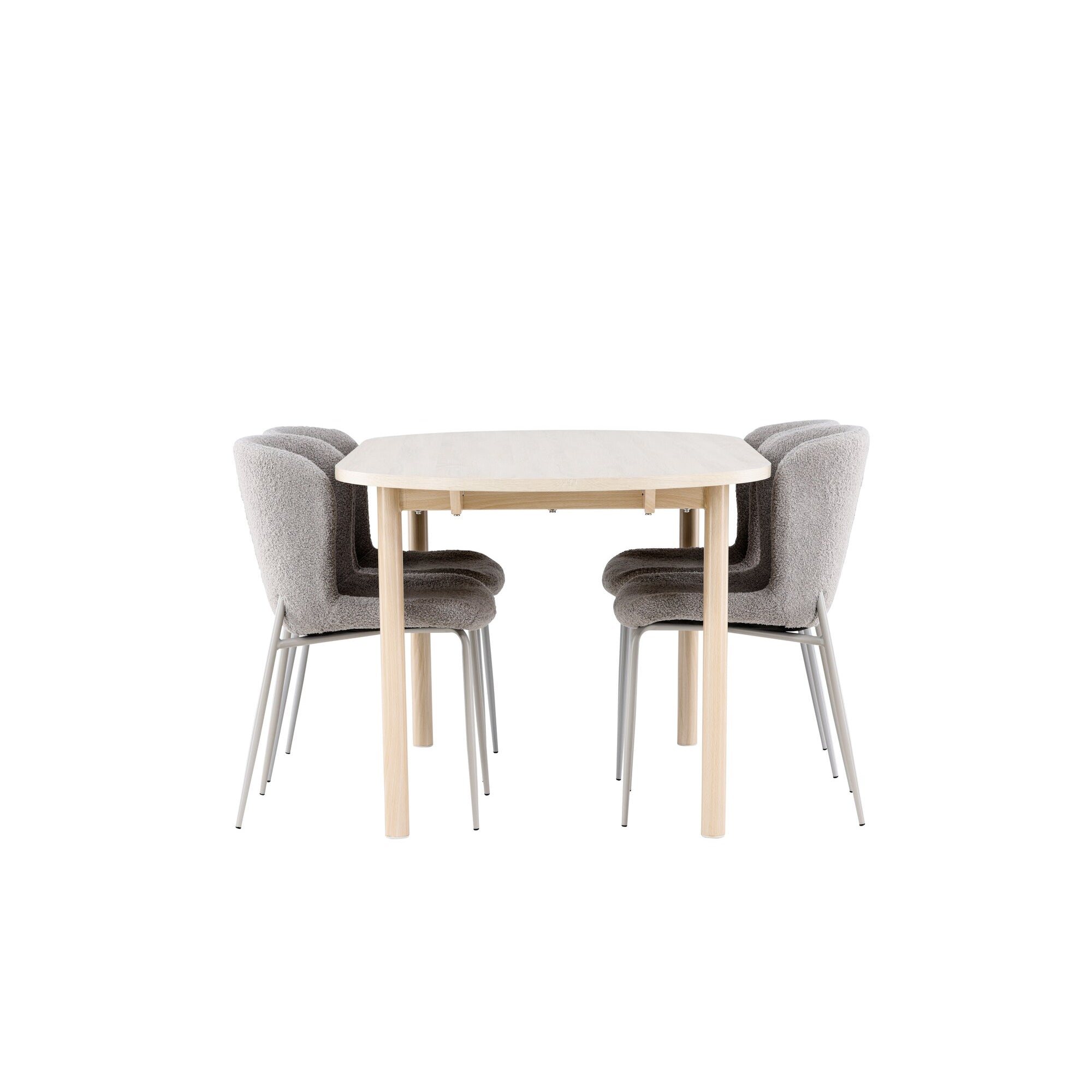 Andy jídelní stůl 180*75 - přírodní / přírodní MDF + jídelní židle Modesto - šedá / kouřová černá Boucle _4