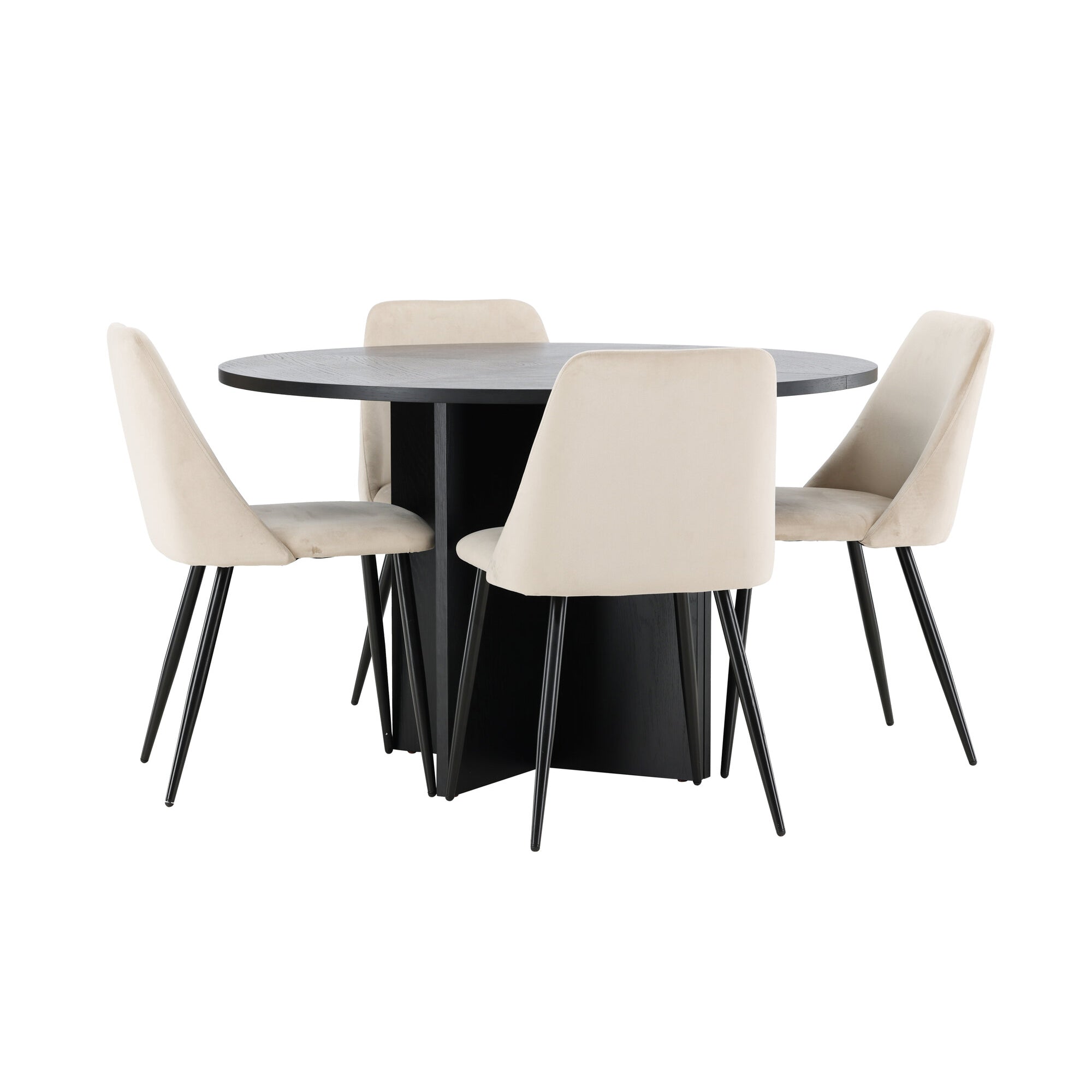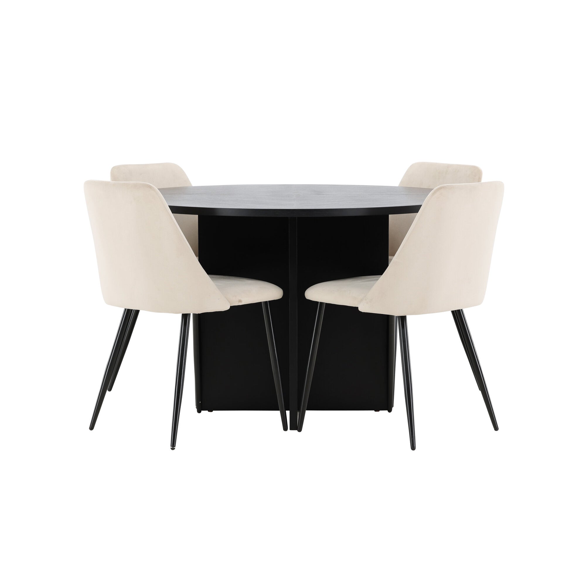 Stůl Strada - černý se 4 nočními židlemi - černá / béžová