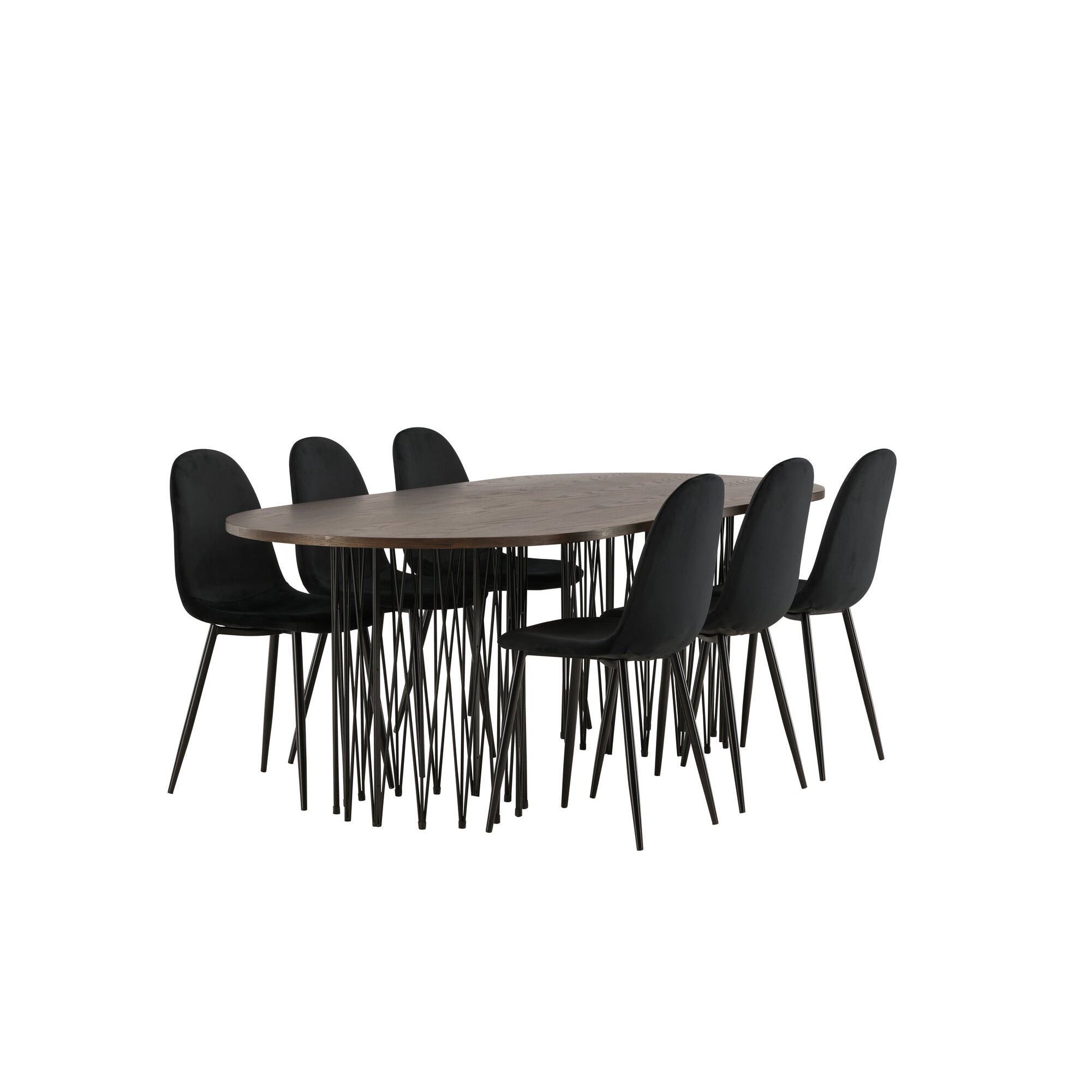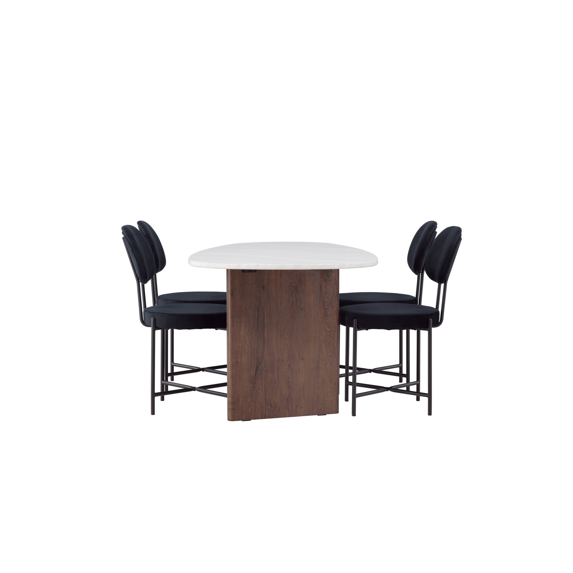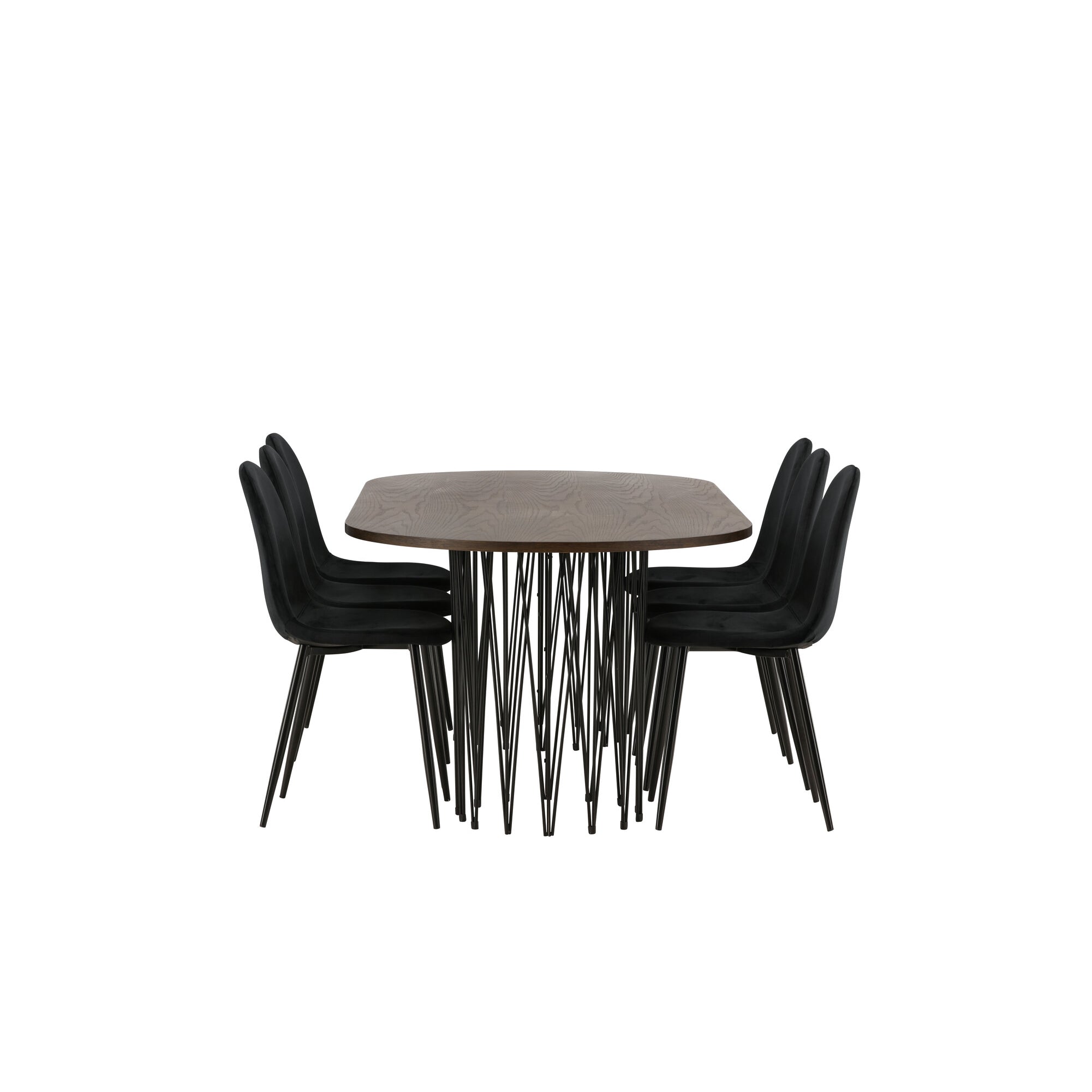 Kamenný oválný jídelní stůl - černá / mocca dýha + židle Limhamn Light_4+ židle Limhamn - černá / béžová sametová _2