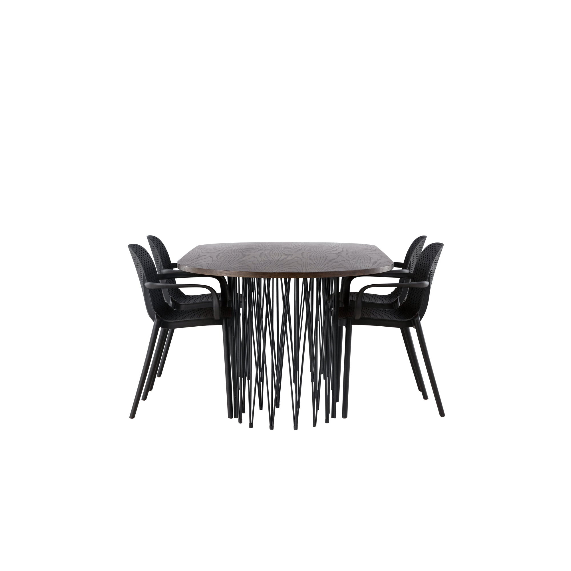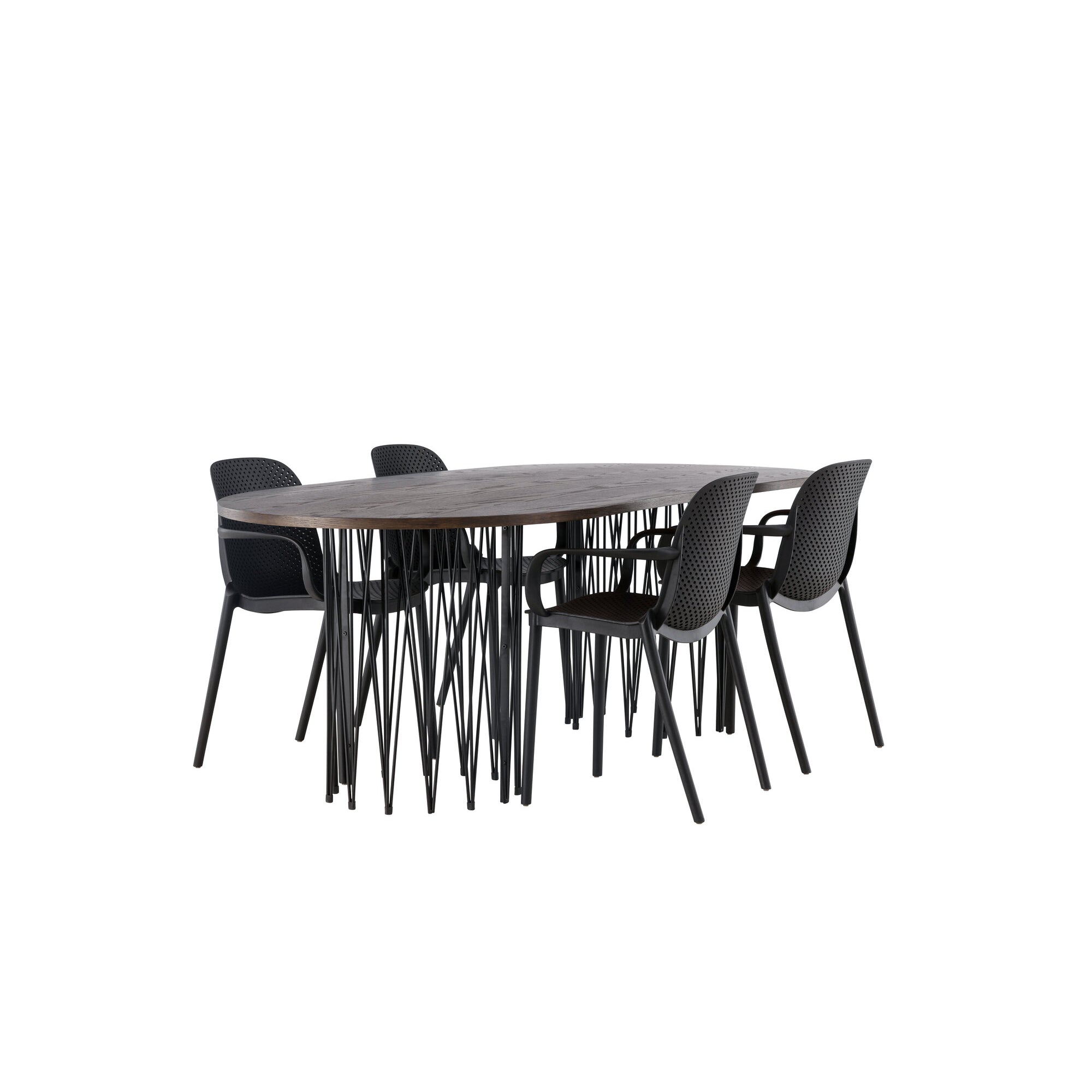 Kamenný oválný jídelní stůl - černá / mocca dýha + židle Limhamn Light - černá / béžová sametová _4