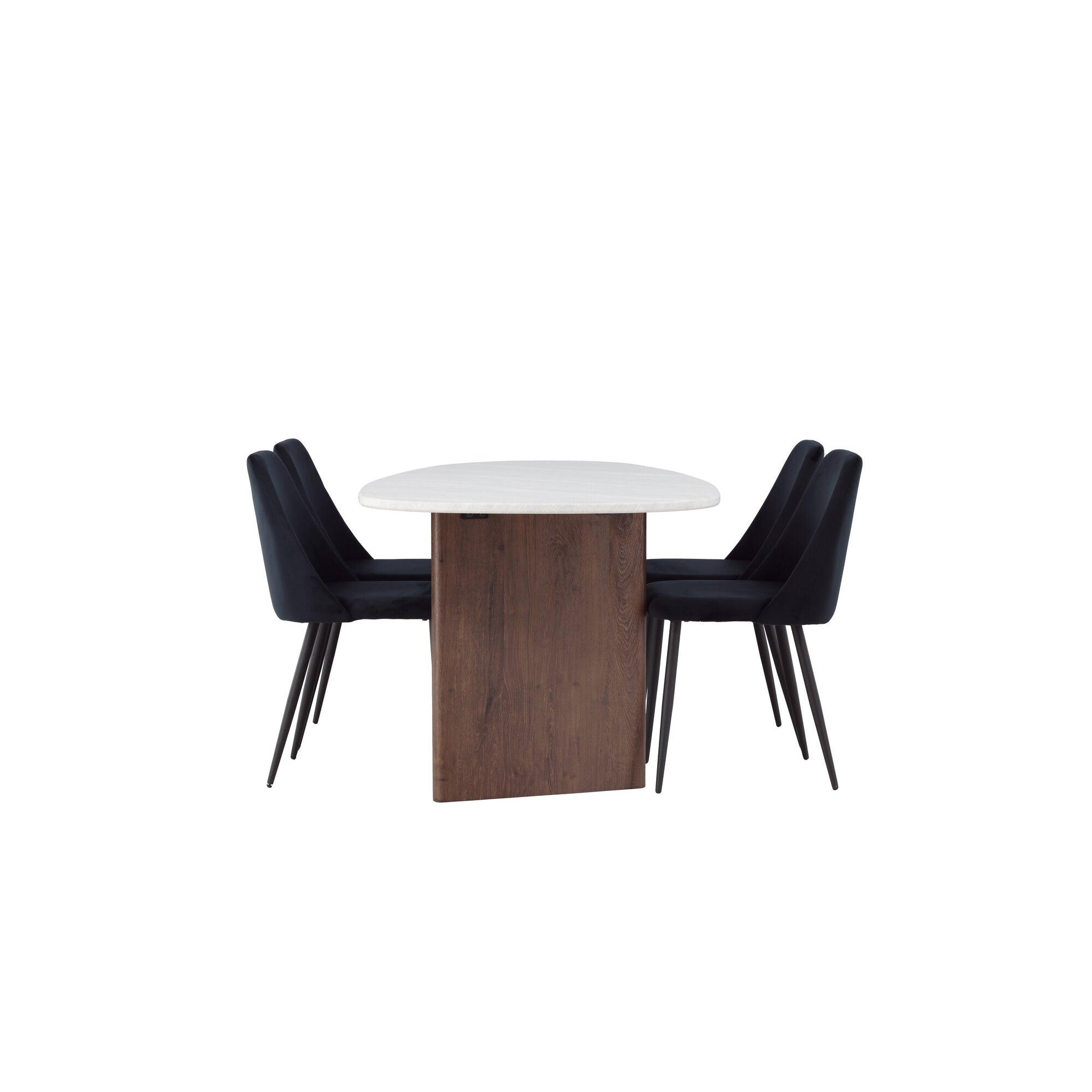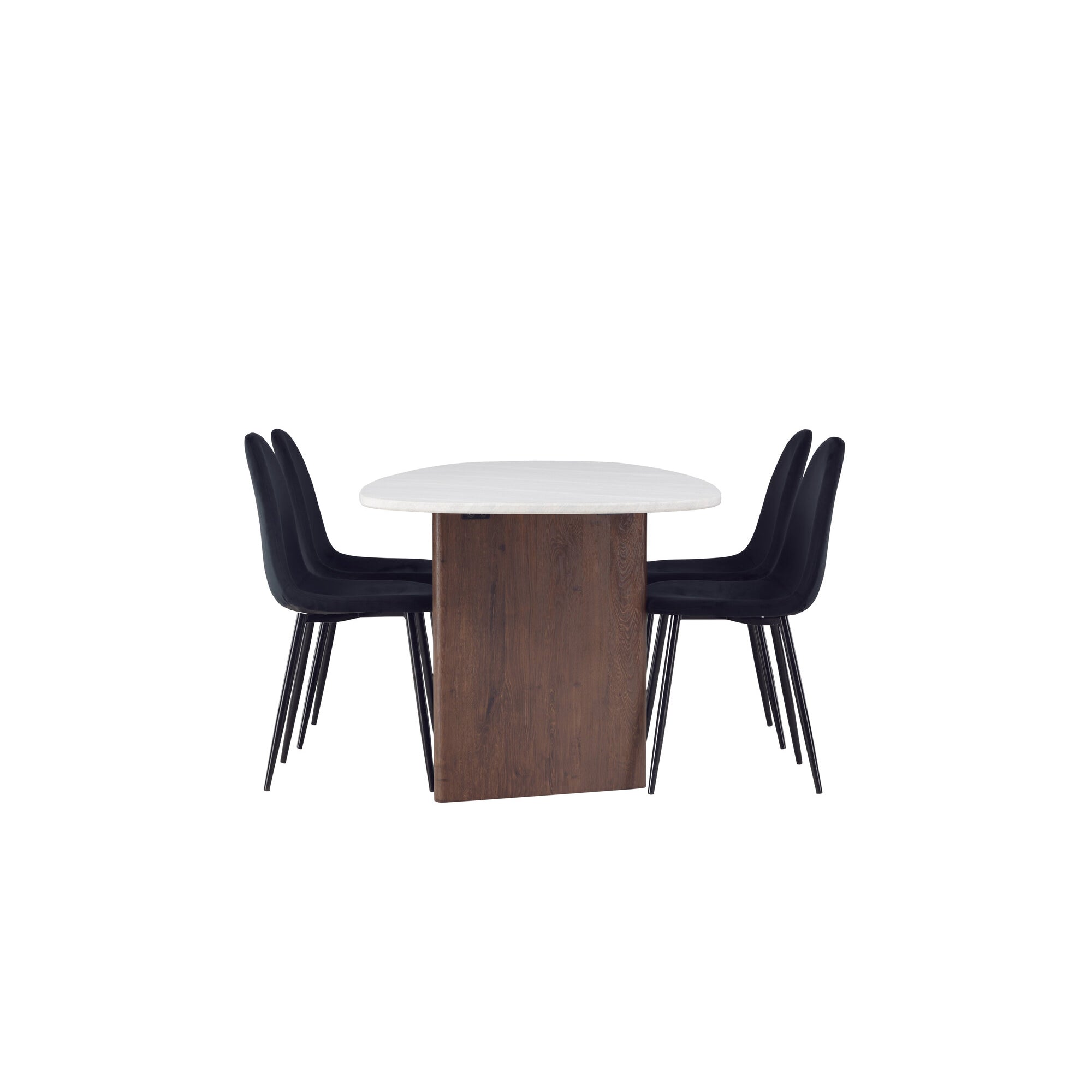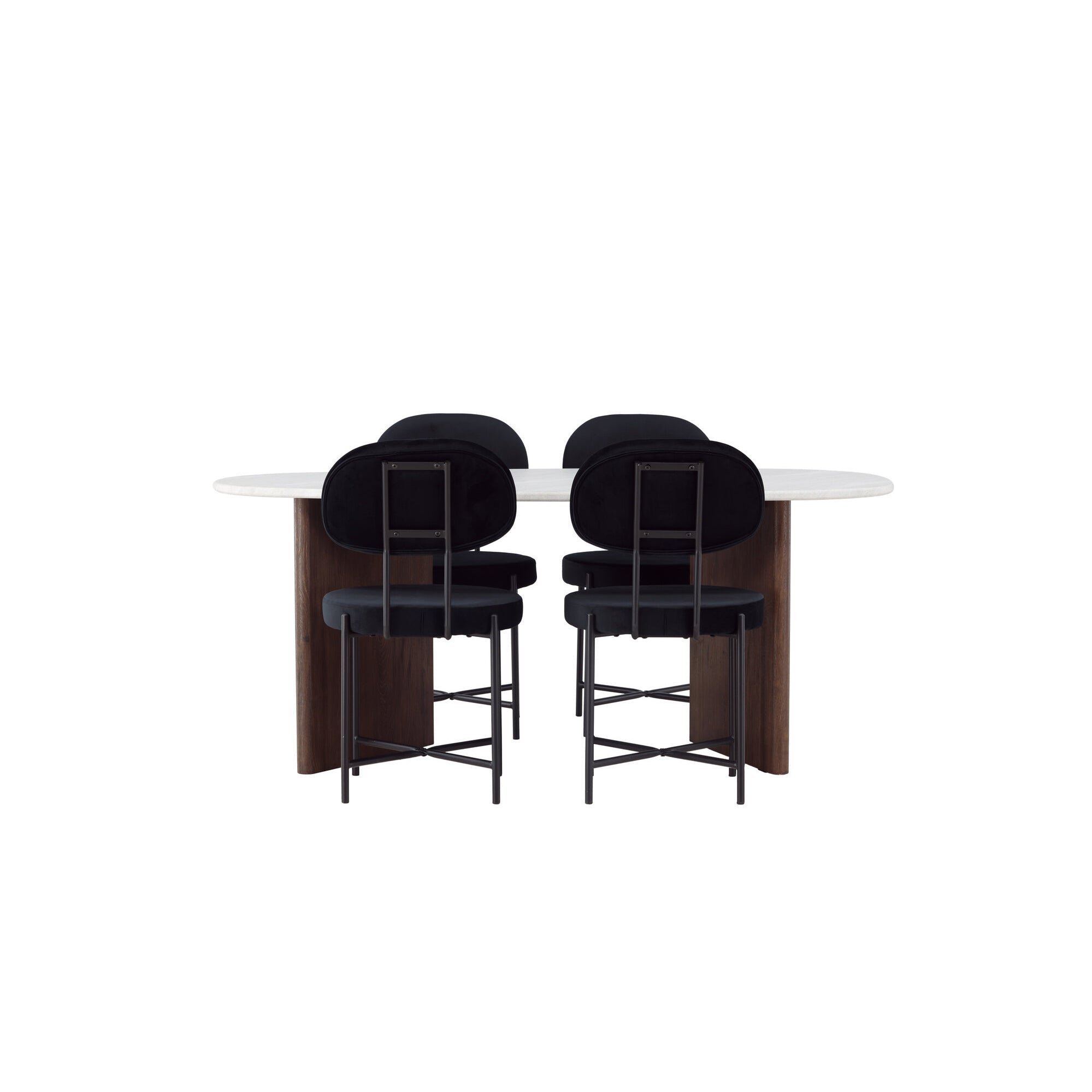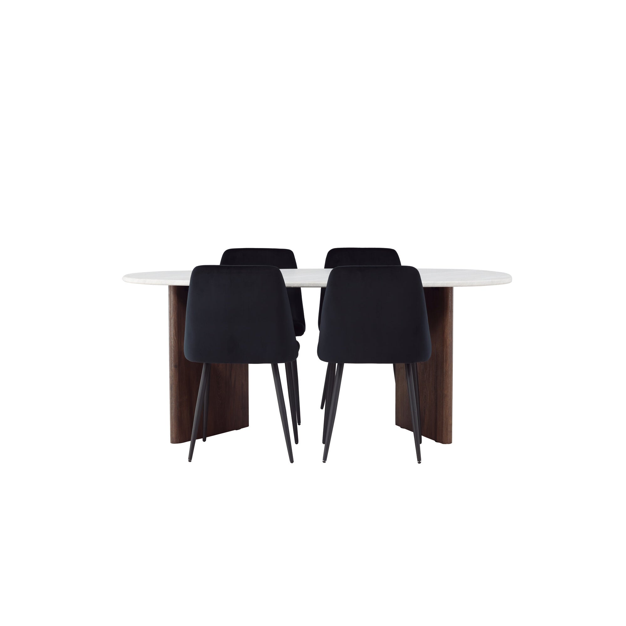 Kamenný oválný jídelní stůl - černá / mocca dýha + jídelní židle Polar - černé nohy / černý samet _6