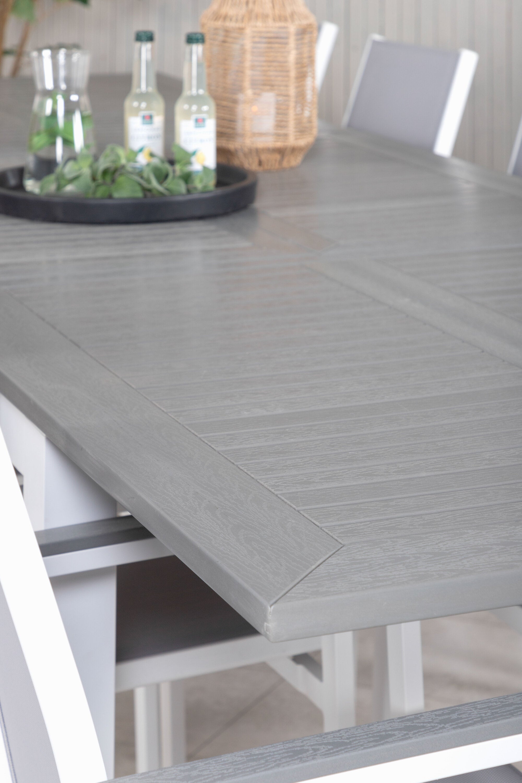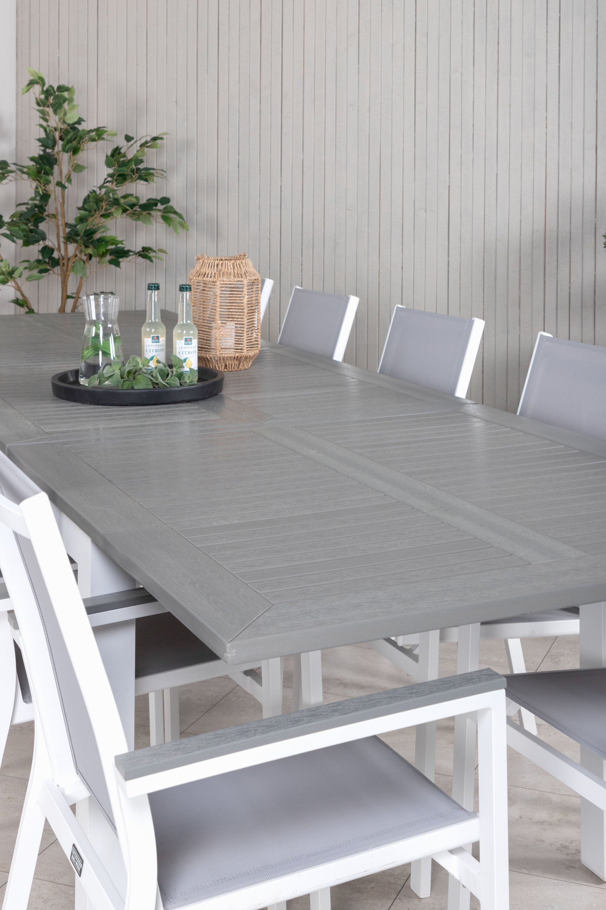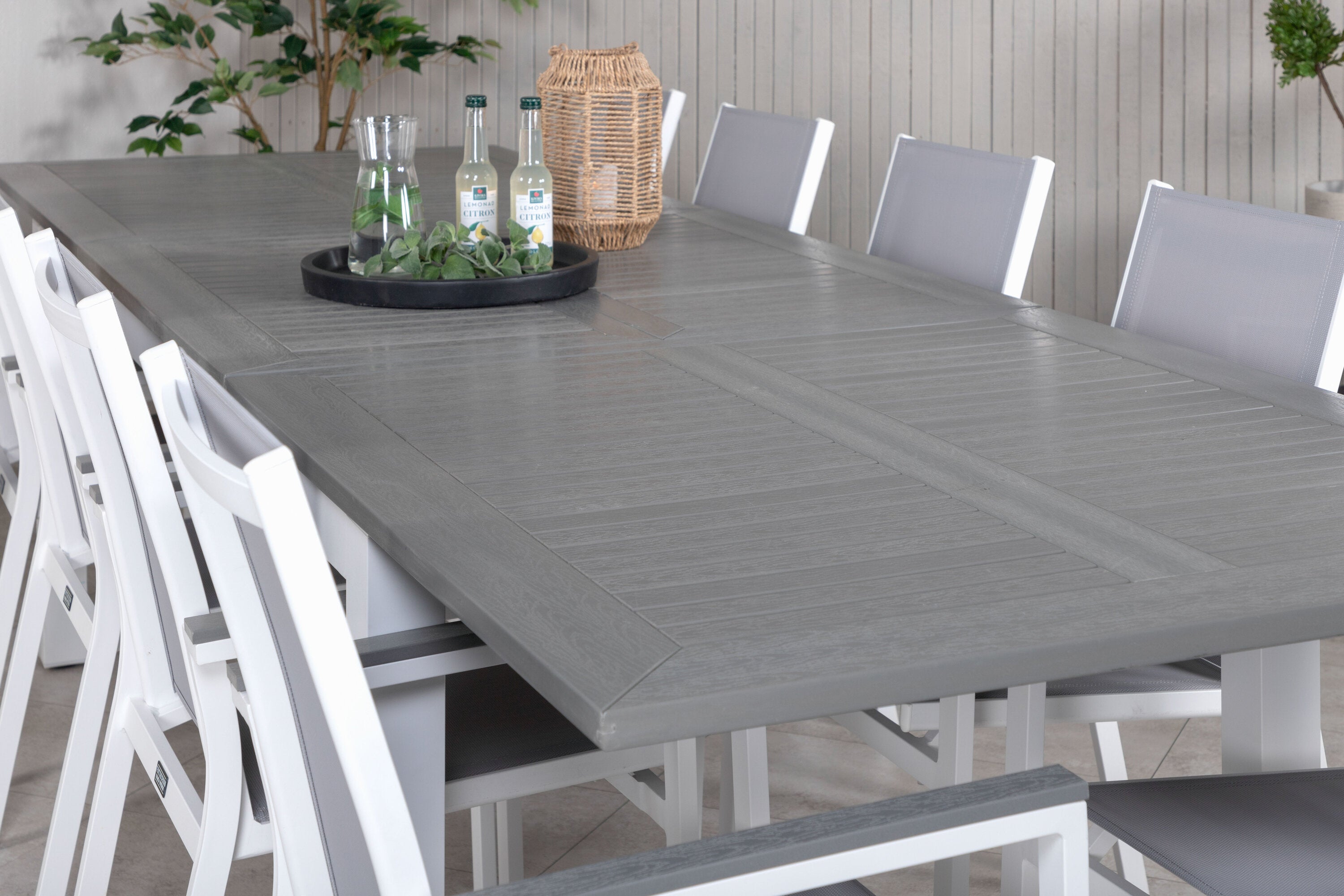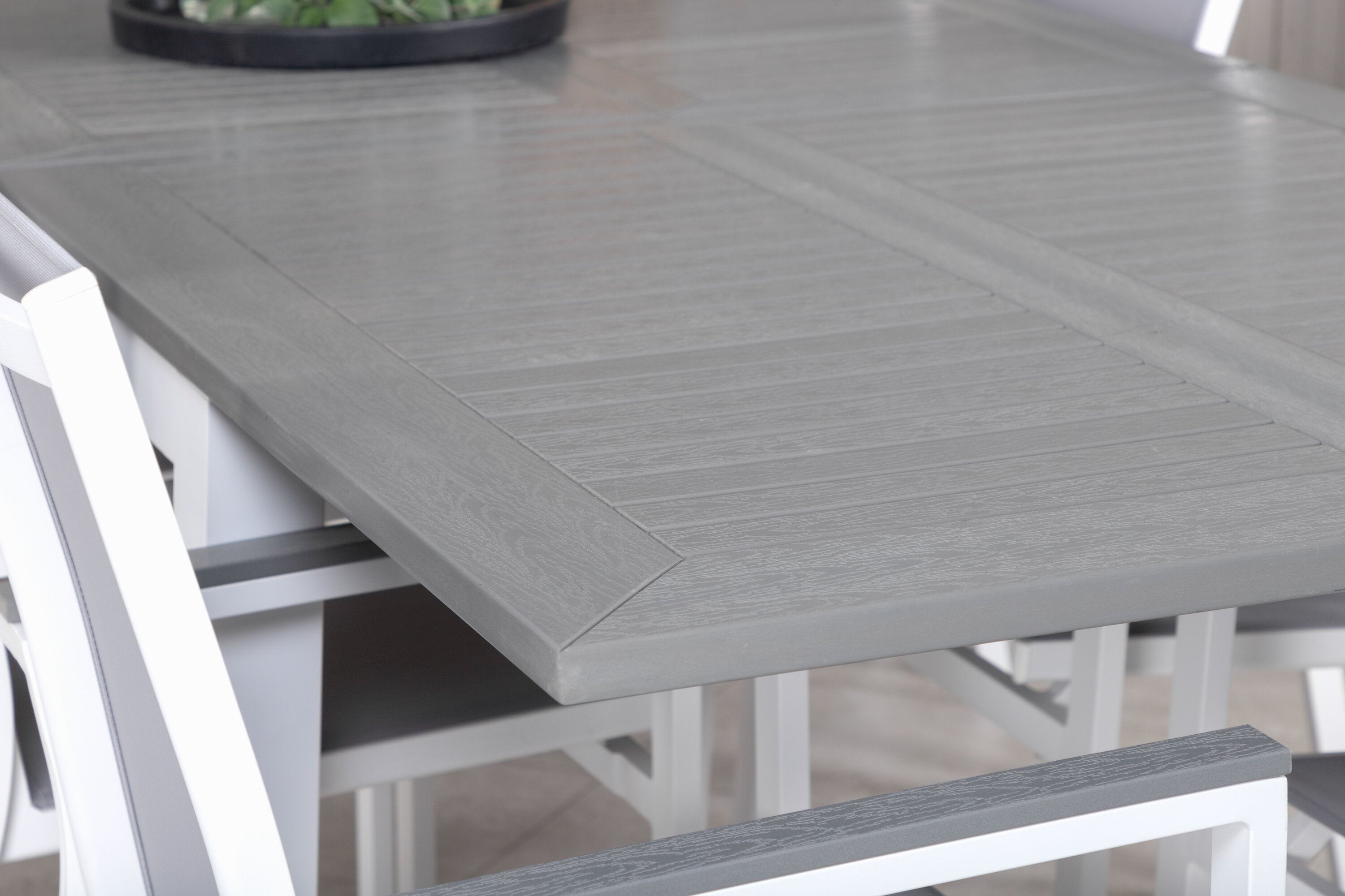 Albany Bord - Vit Alu/grå aintwood - 224/324*100+Parma Karmstol (stapelbar) - vi
