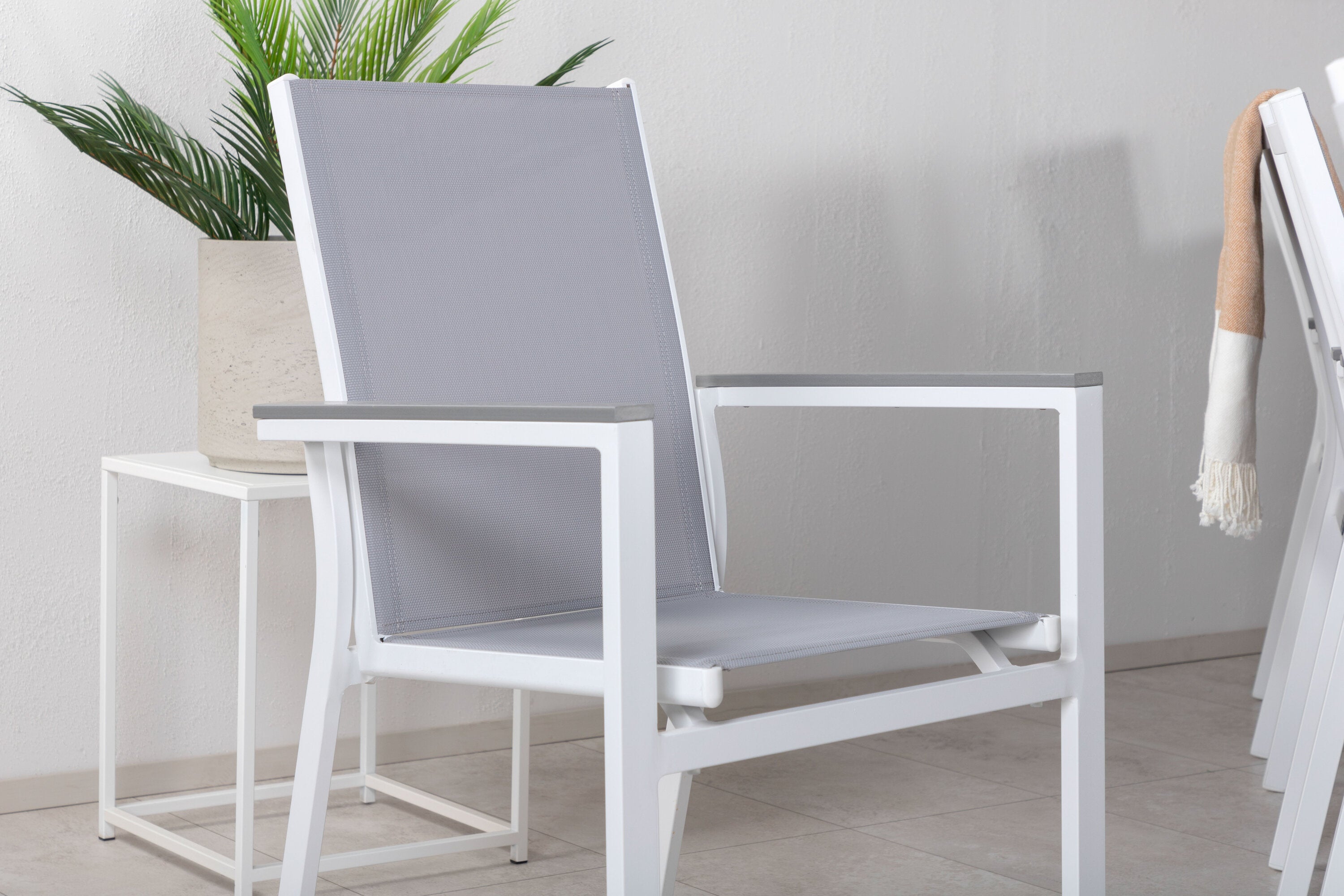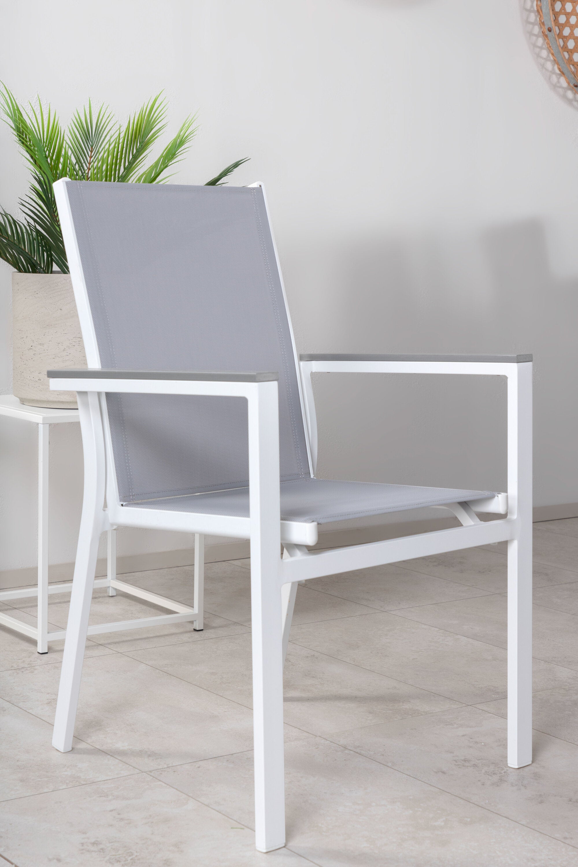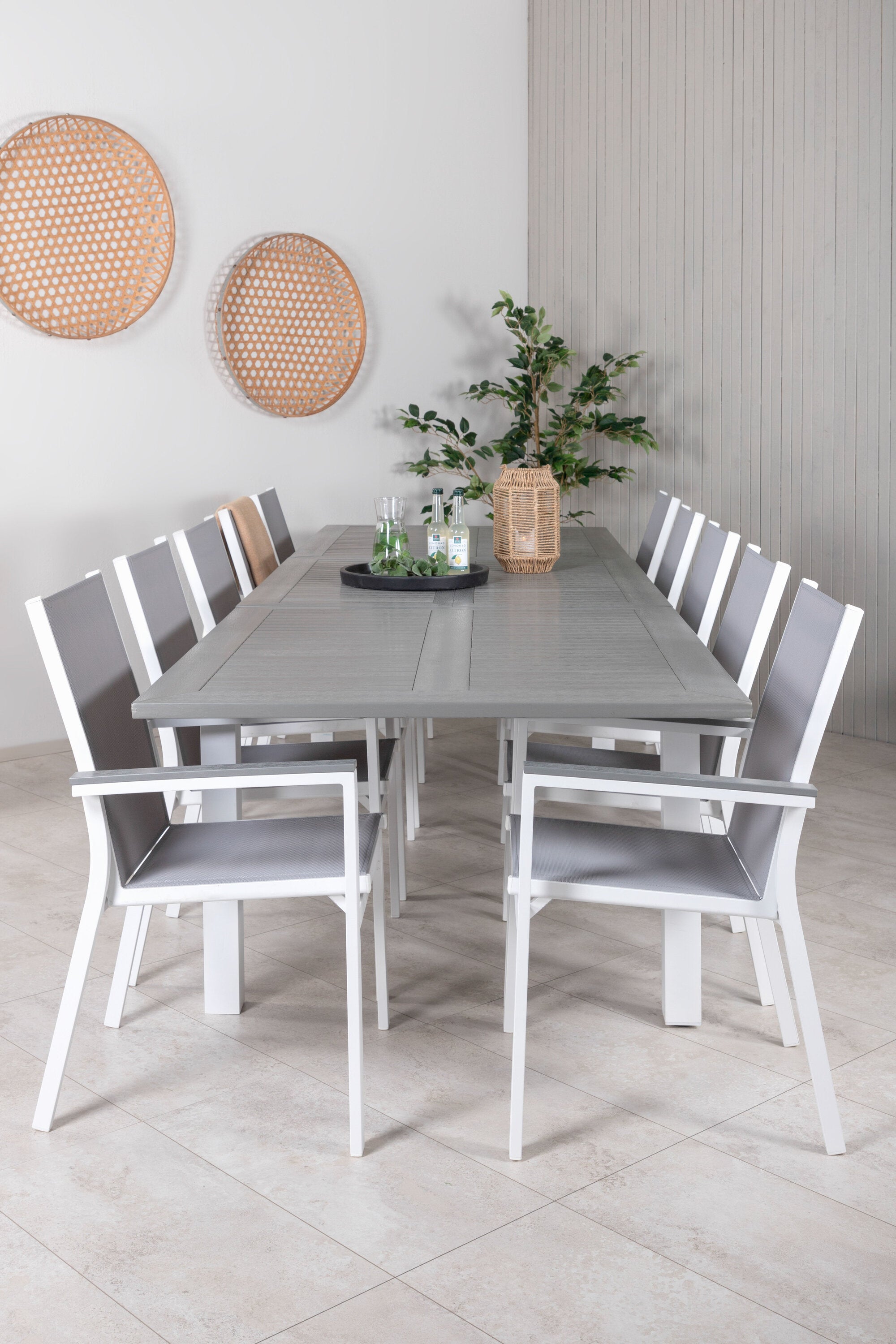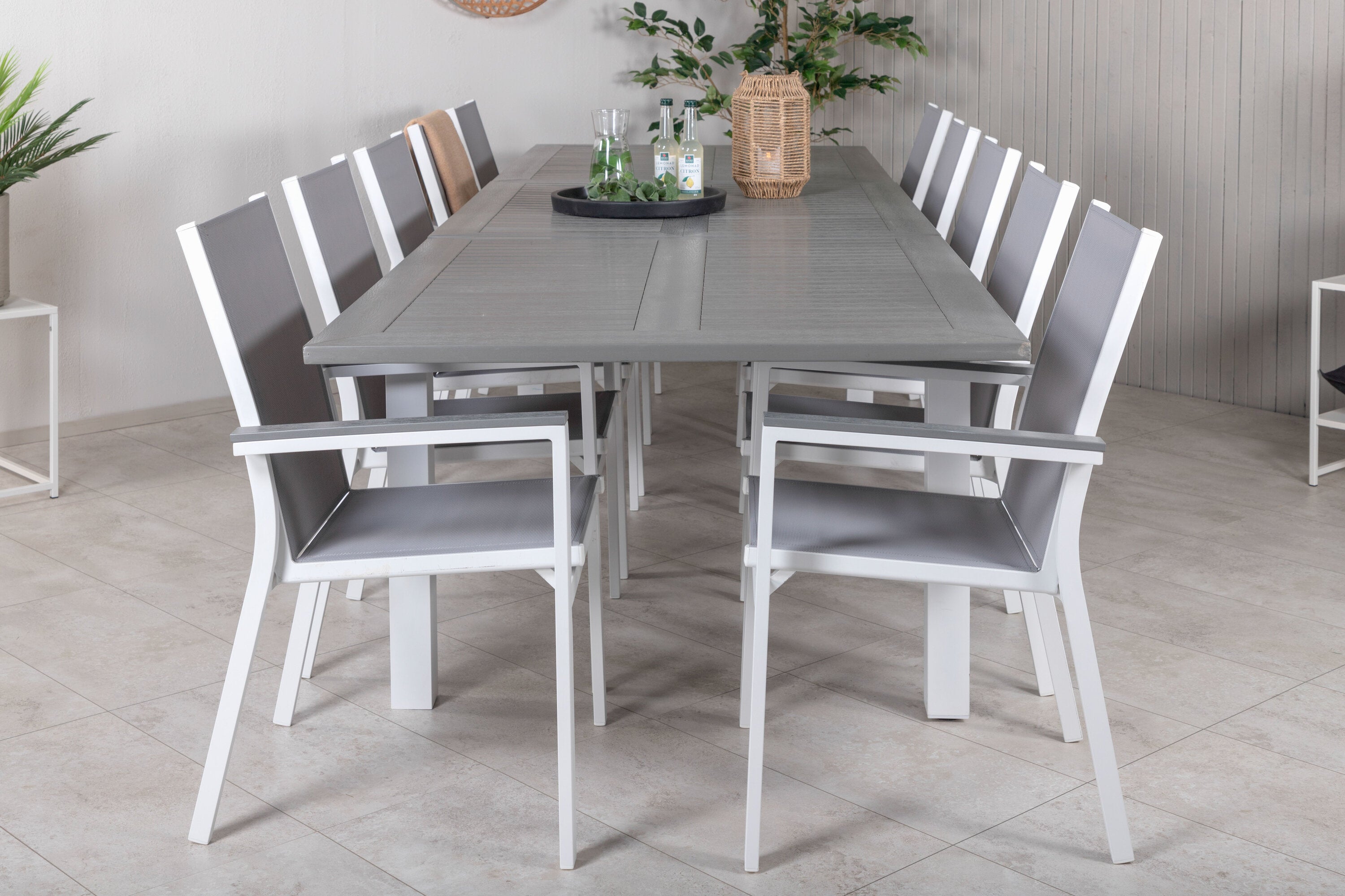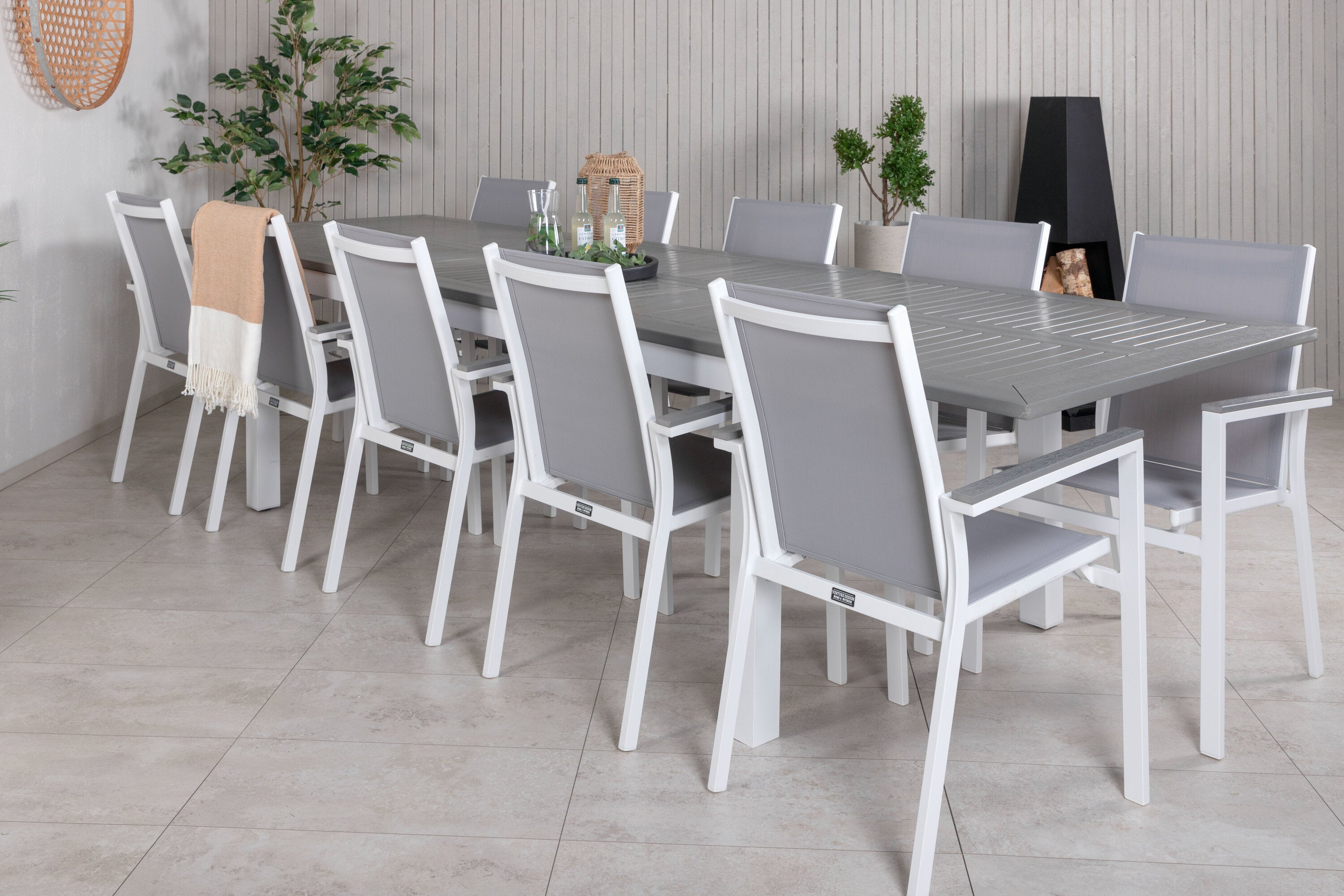 Albany Bord - Vit Alu/grå aintwood - 224/324*100+Parma Karmstol (stapelbar) - vi