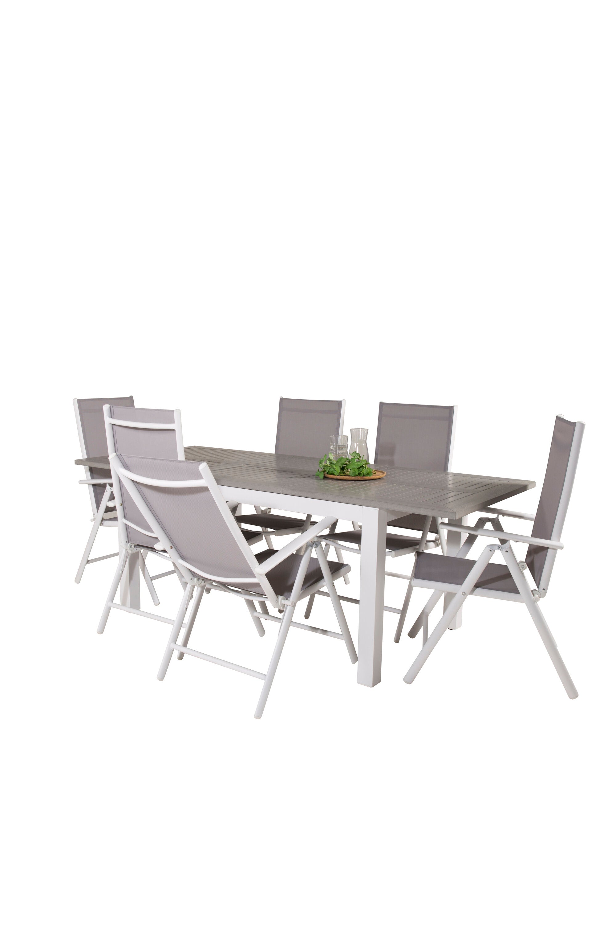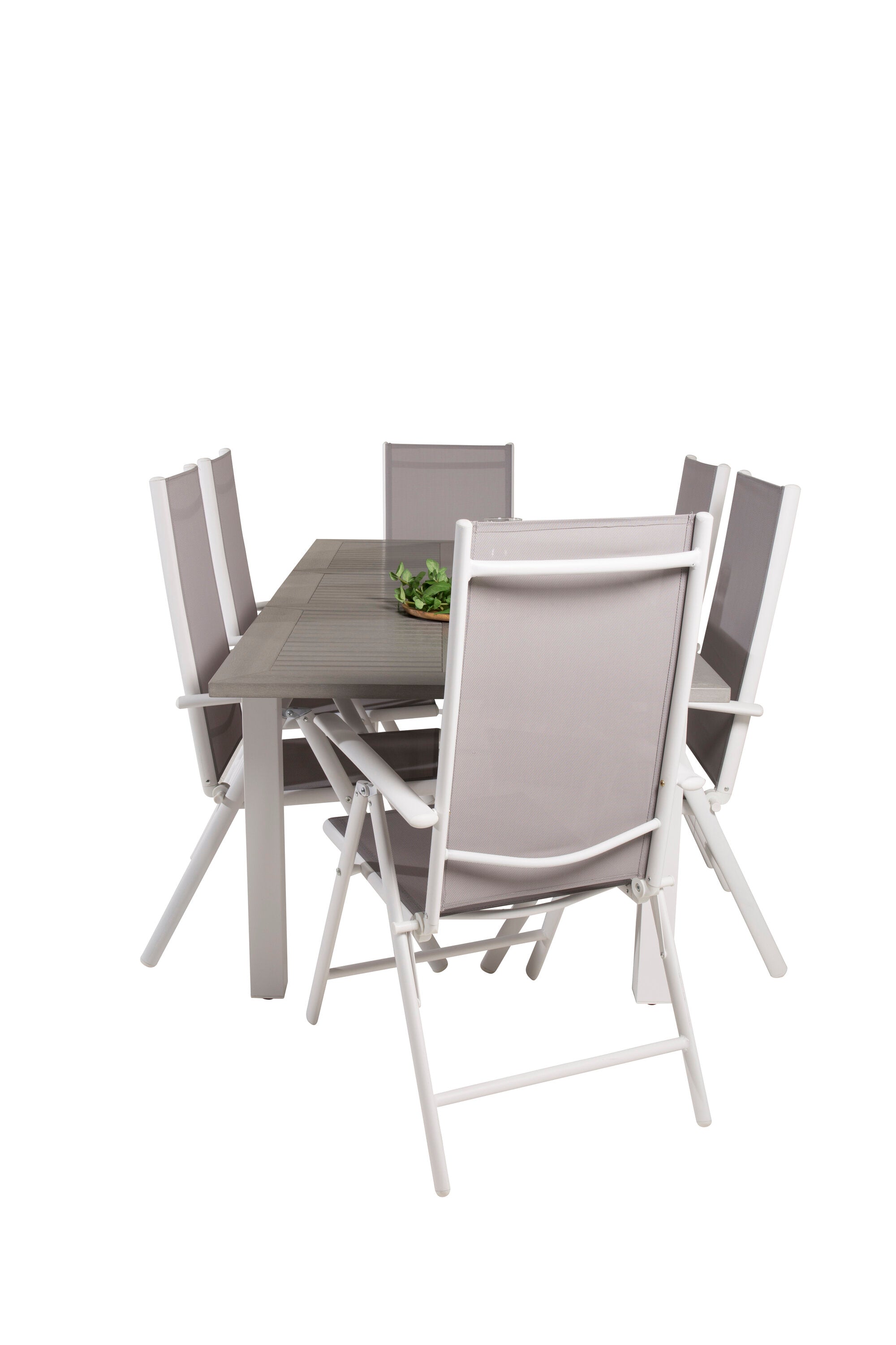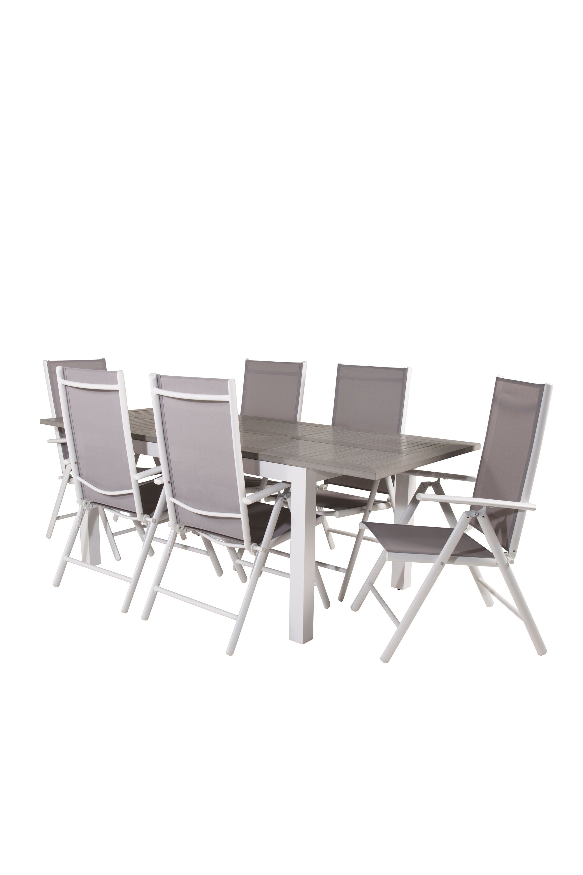 Albany jídelní stůl 152/210*90 - Bílá Alu / Šedá Aintwood+Break 5:pos Židle - Bílá alu / Šedá Textilene_6