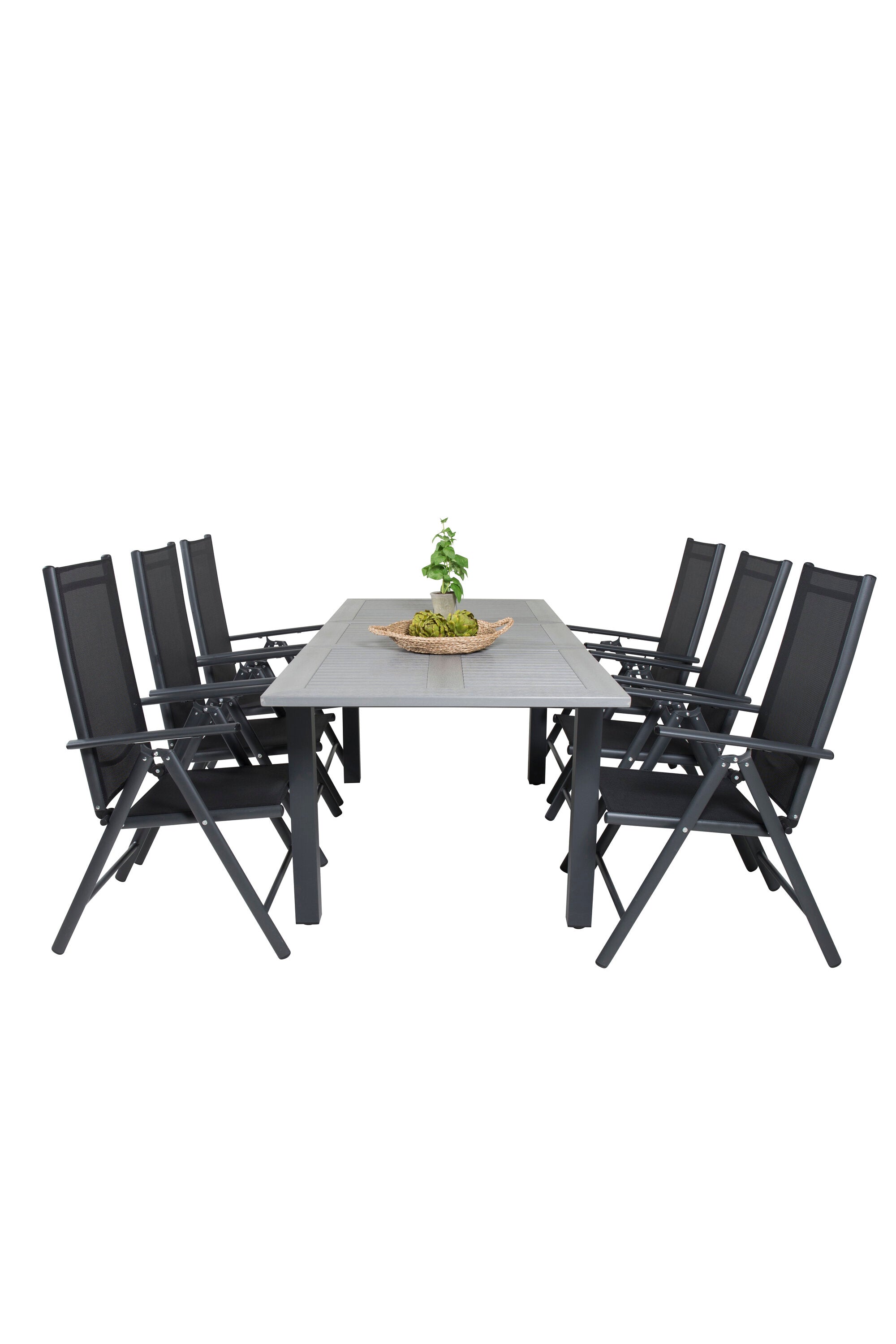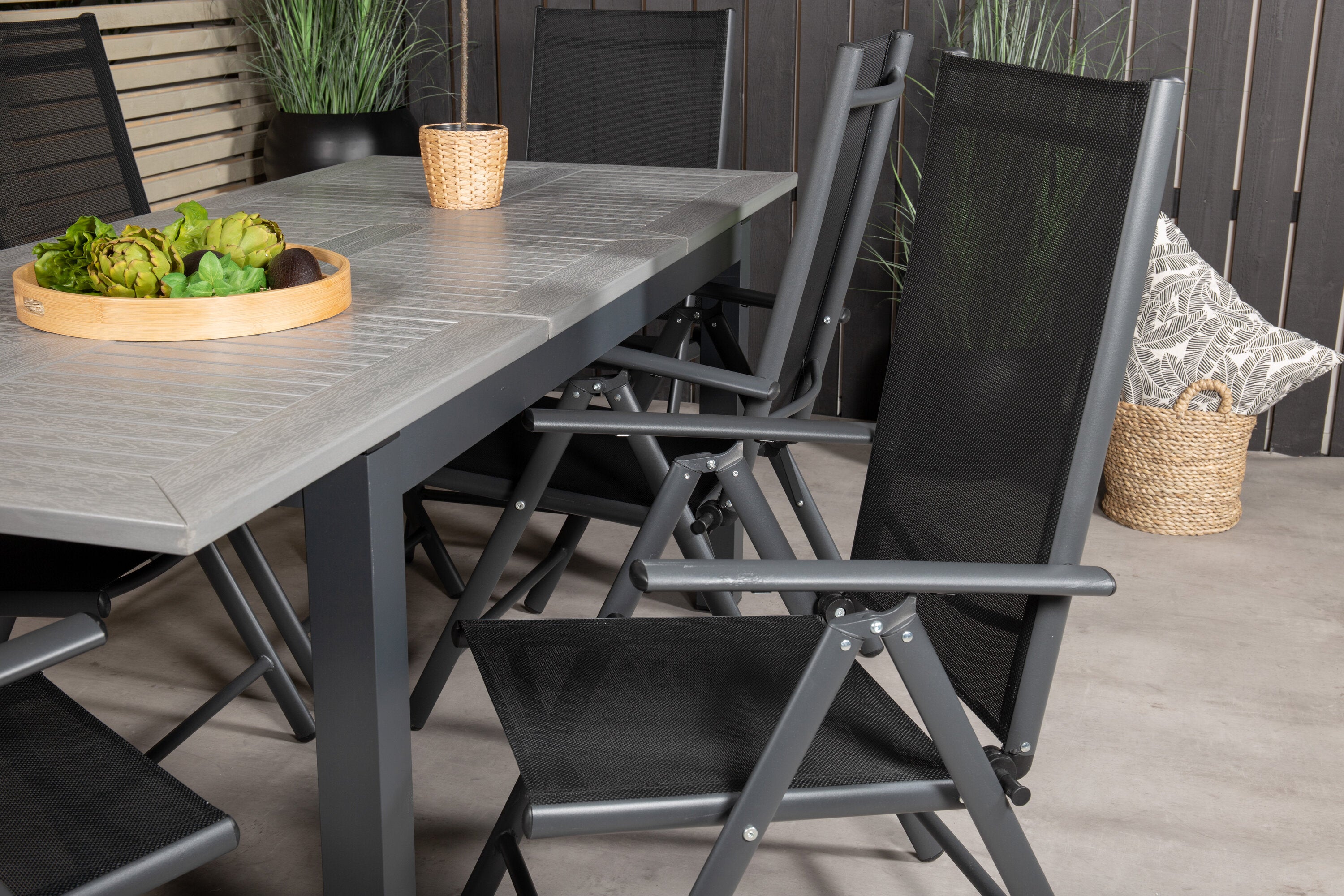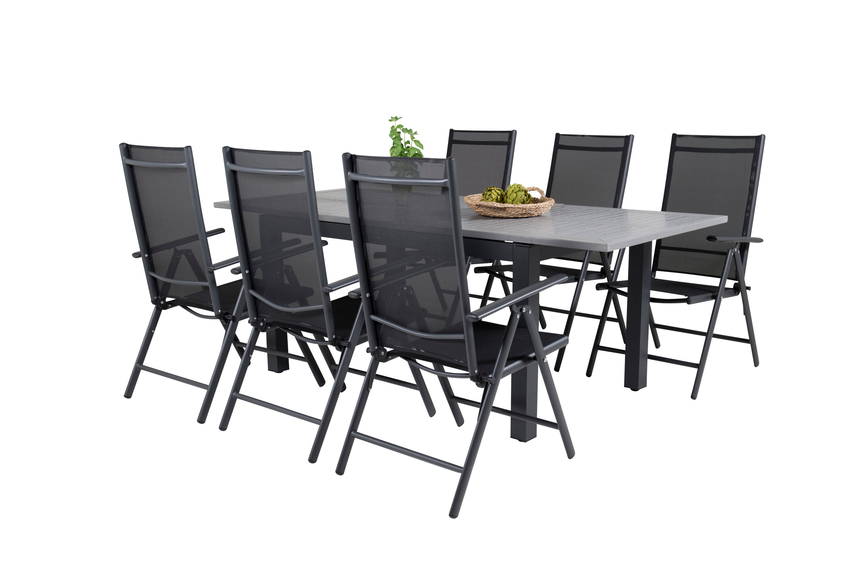 Albany stůl - 152/210 - Černá/šedá - Break 5:pos židle - Černá/Černá 6