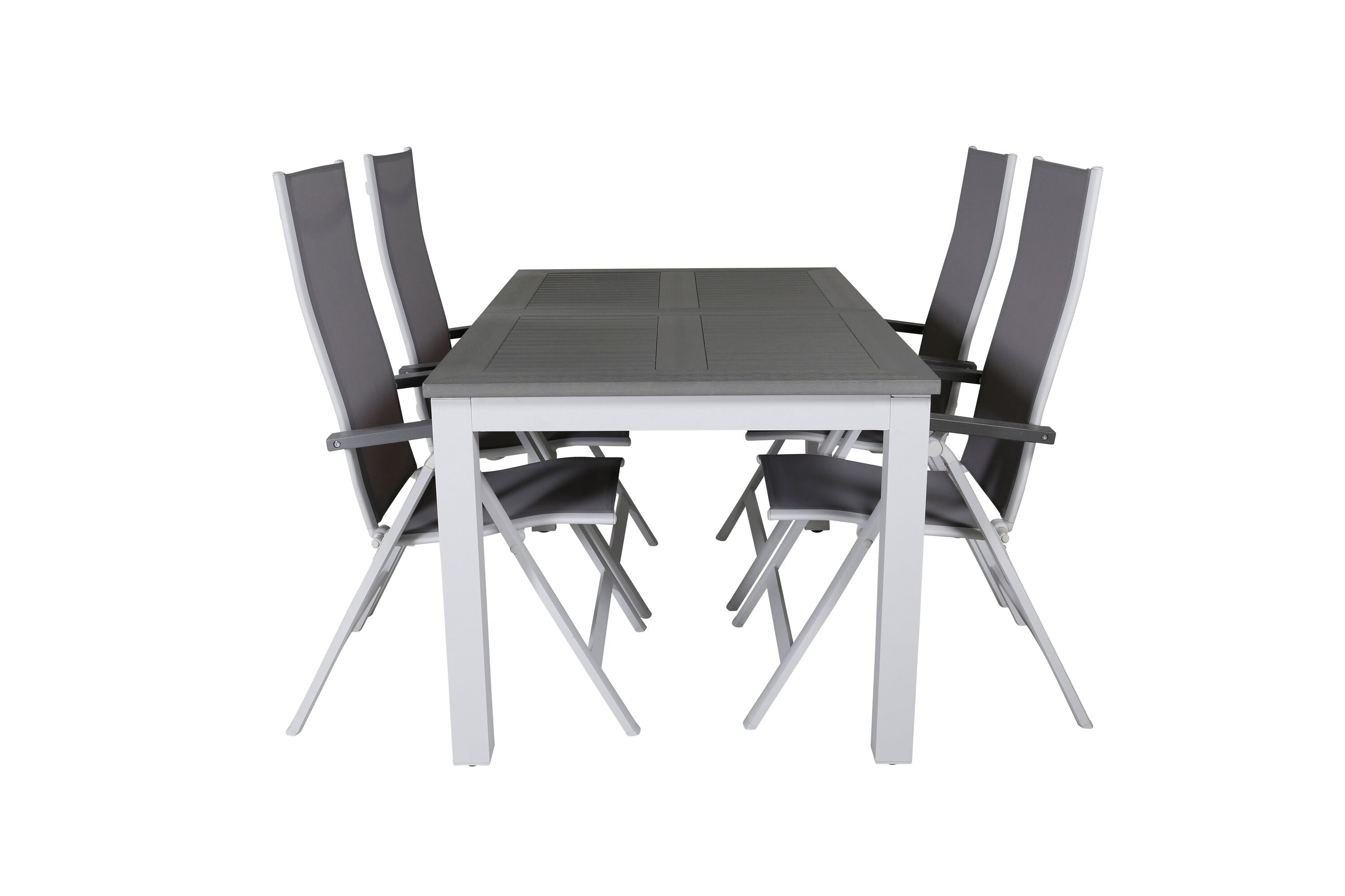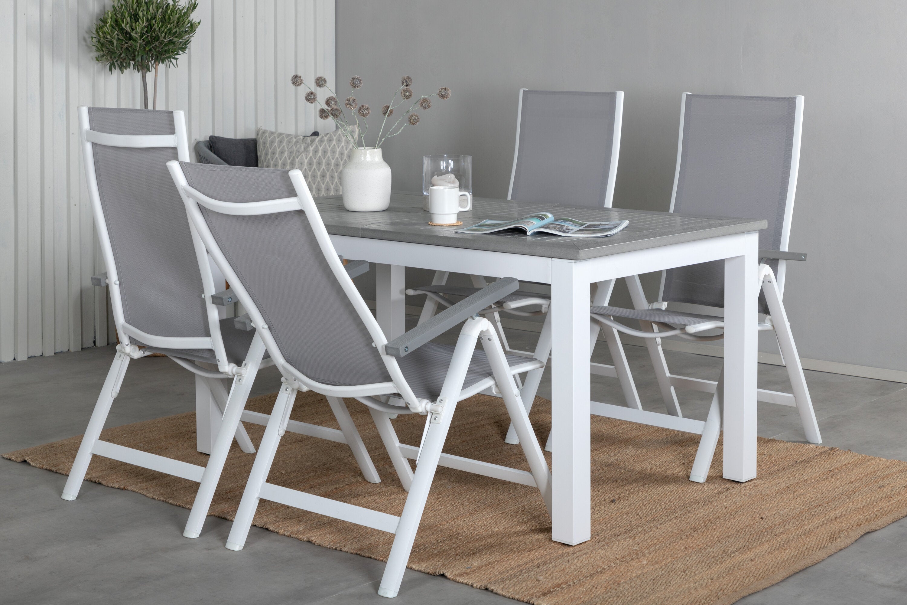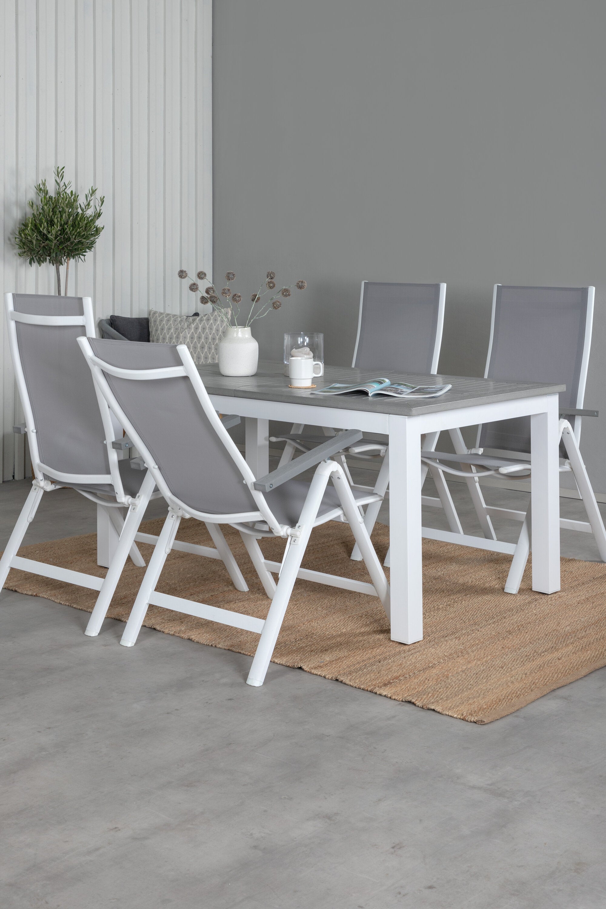 Moderní potravinová skupina na terasu v nadčasové barevné škále! Zde kombinujeme jídelní stůl Albany v klasickém stylu s trendy a skládacími jídelními židlemi ze stejné série. Nechte terasu charakterizovat vaši novou poutavou skupinu jídel, která pojme místo pro všechny blízké!