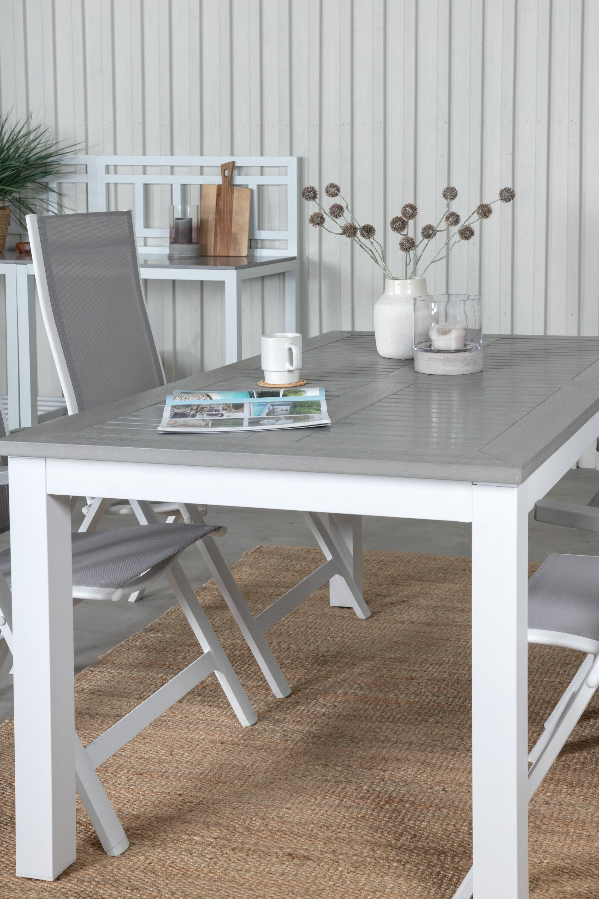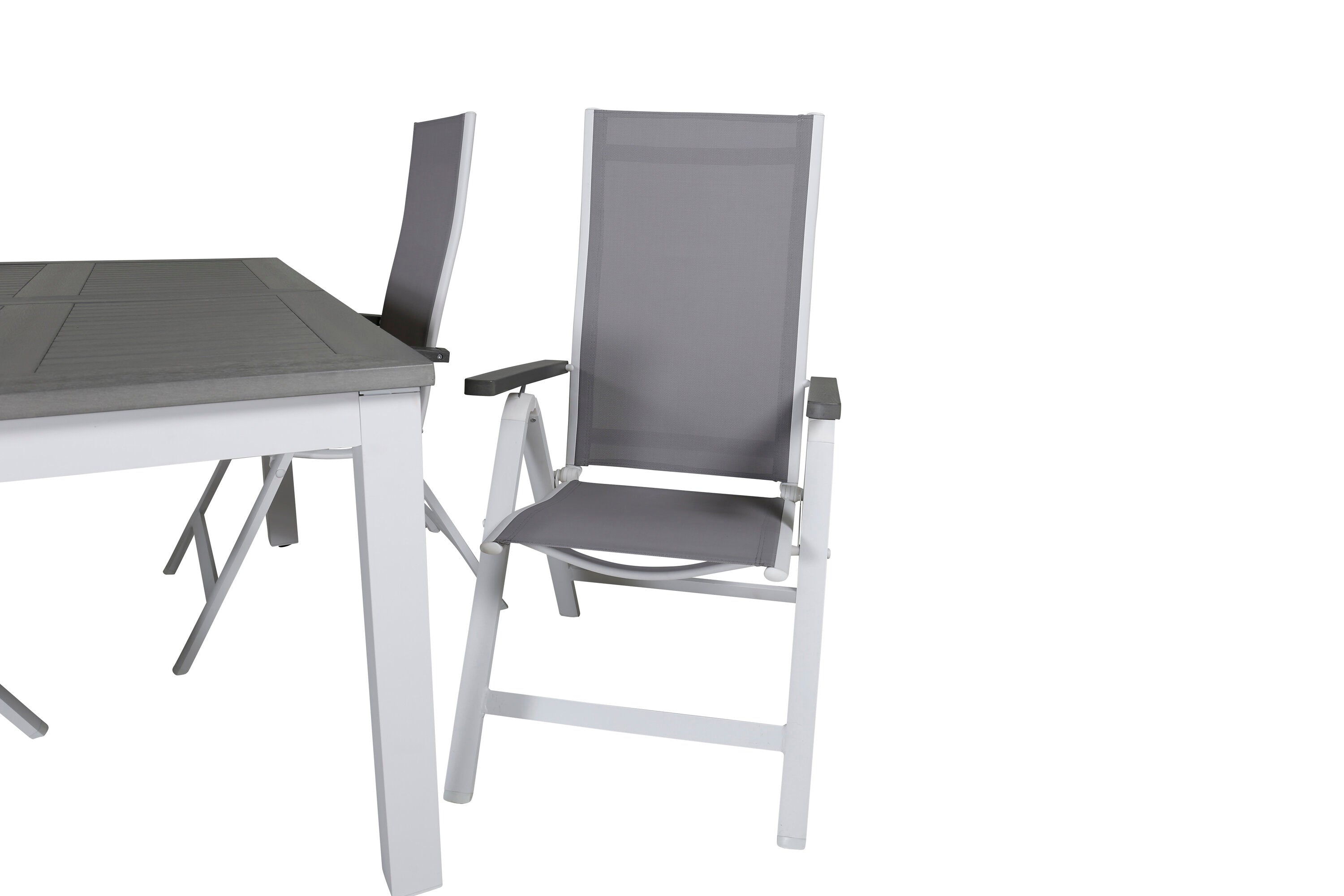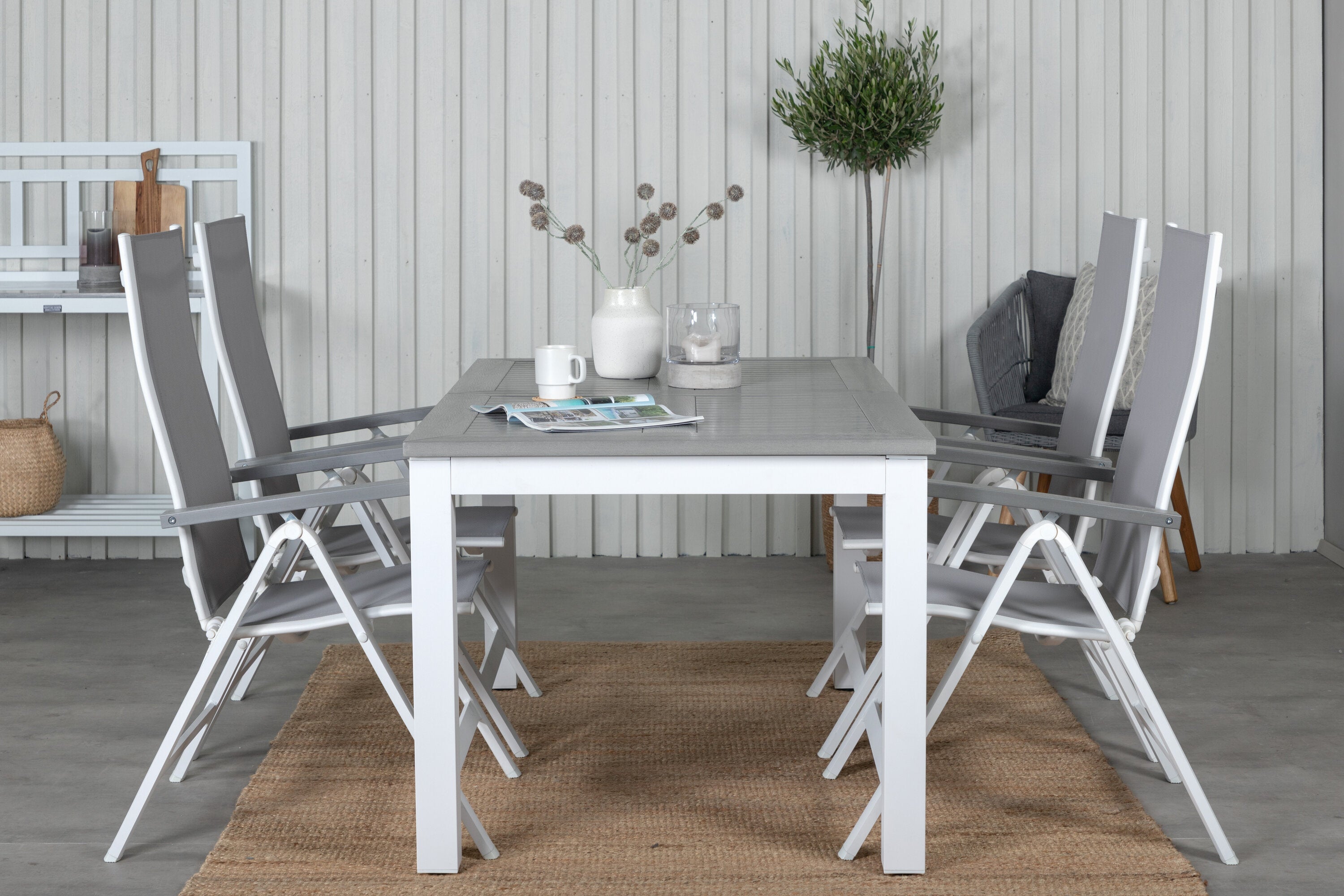 Albany stůl - 160/240 - Bílá/Šedá+Albany Světlá 5dílná bílá alu / Šedá Textilene_4