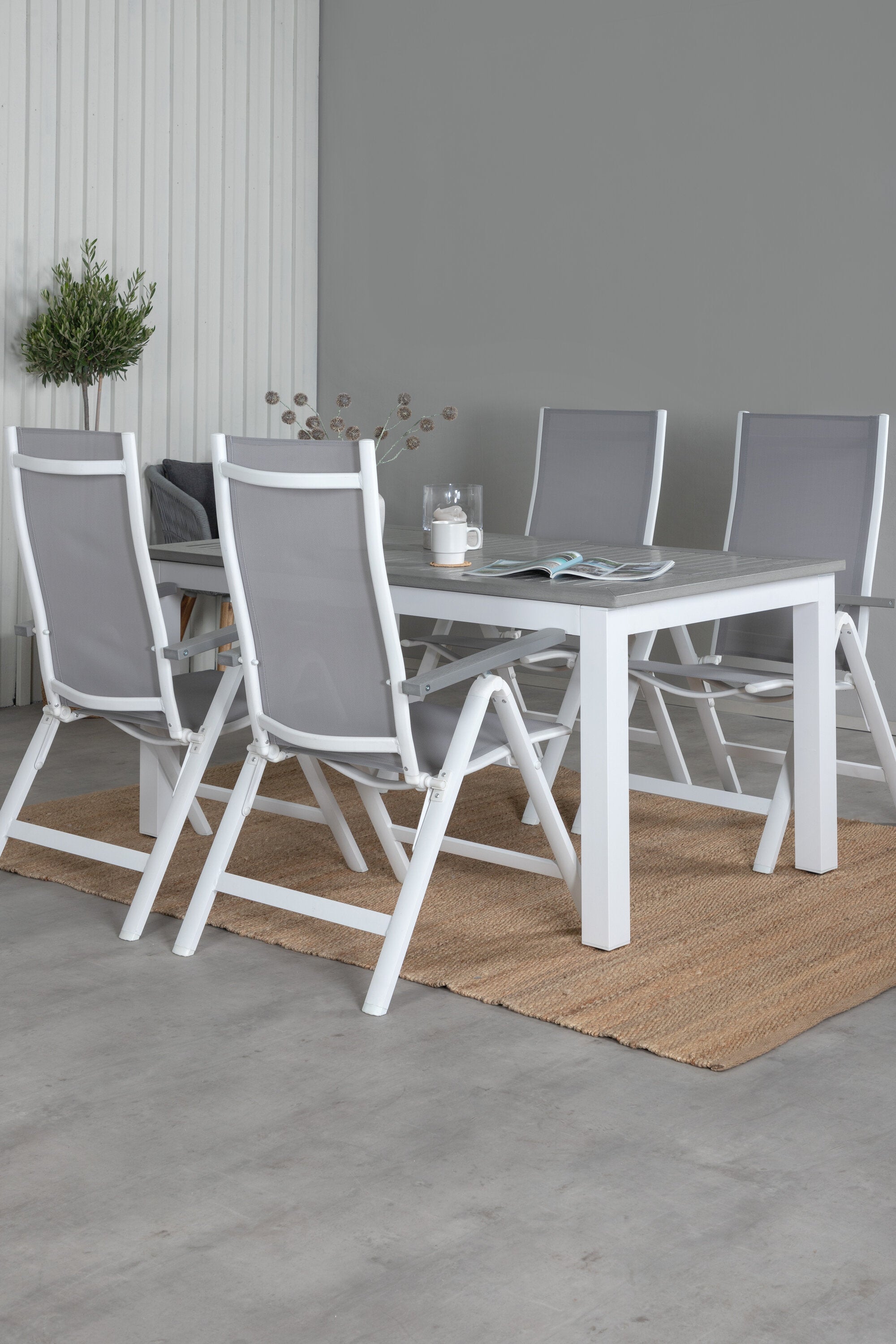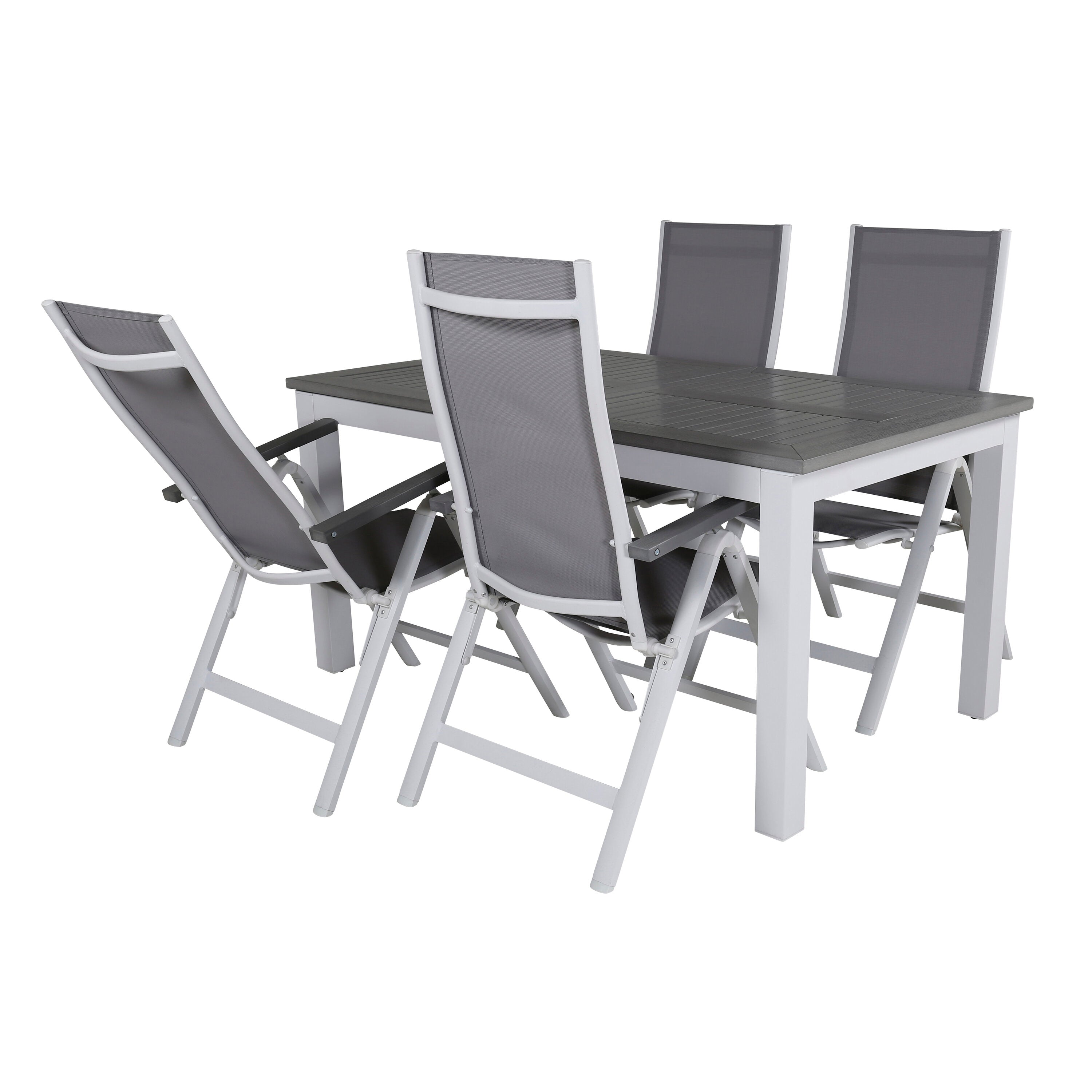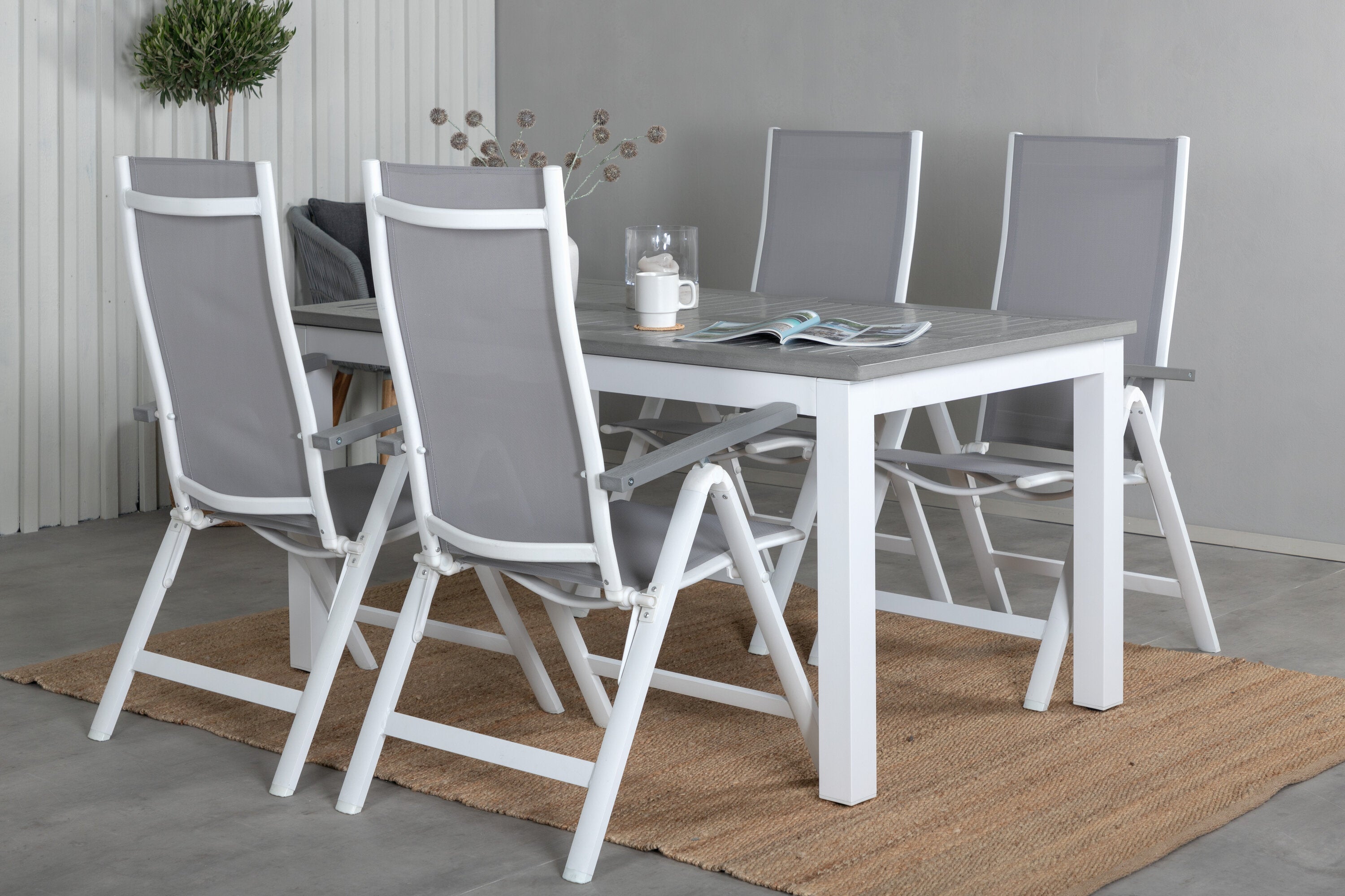 Albany stůl - 160/240 - Bílá/Šedá+Albany Světlá 5dílná bílá alu / Šedá Textilene_4