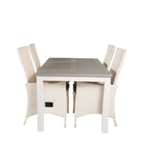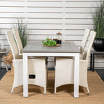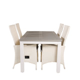 Moderní a útulné! Jídelní stůl Albany spolu s jídelními židlemi Padova vám poskytne skupinu jídel, která touží po horkém letním večeru. Židle jsou robustní a dobře rostlé - zde můžete dlouho sedět a užívat si společnost dobrých přátel!