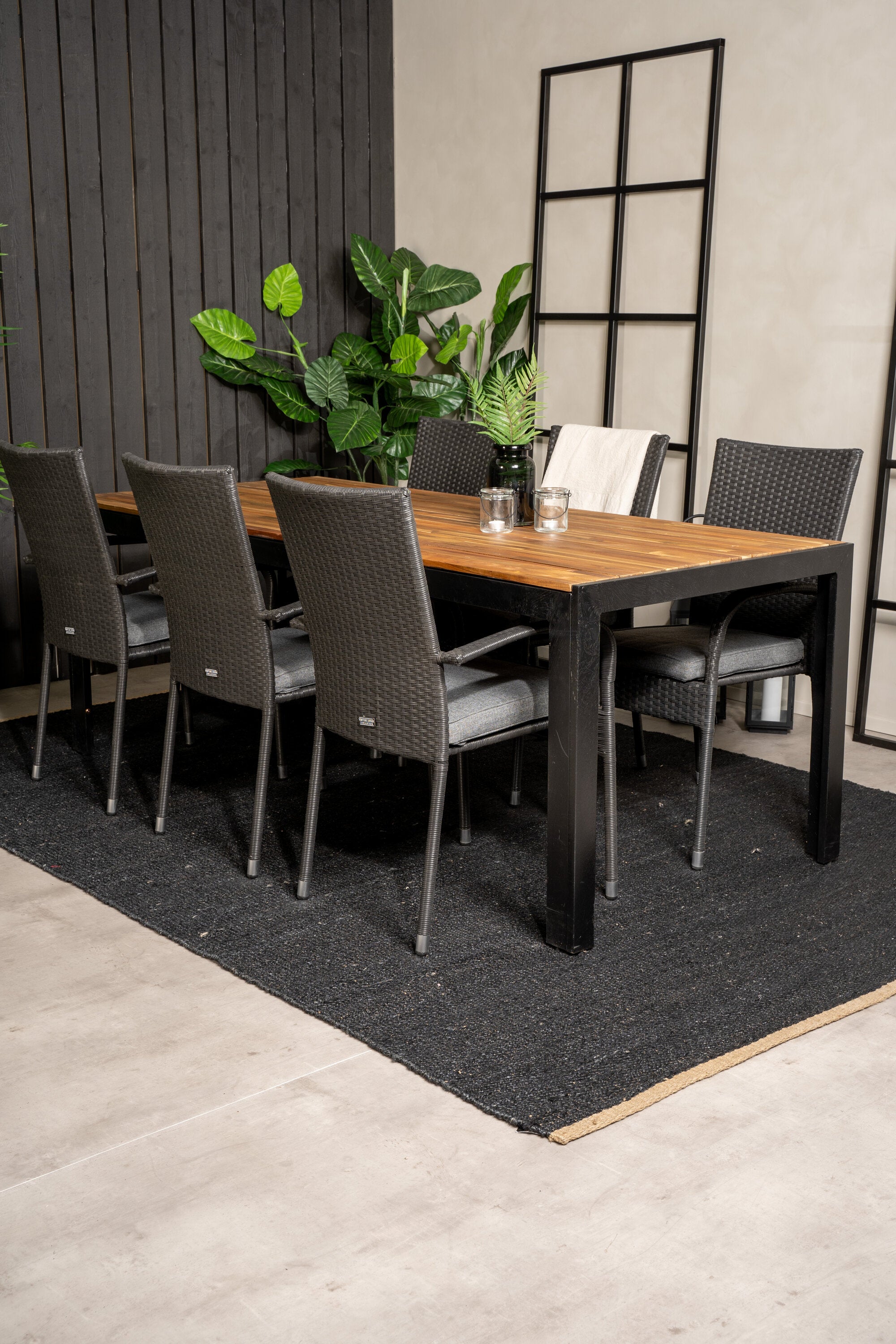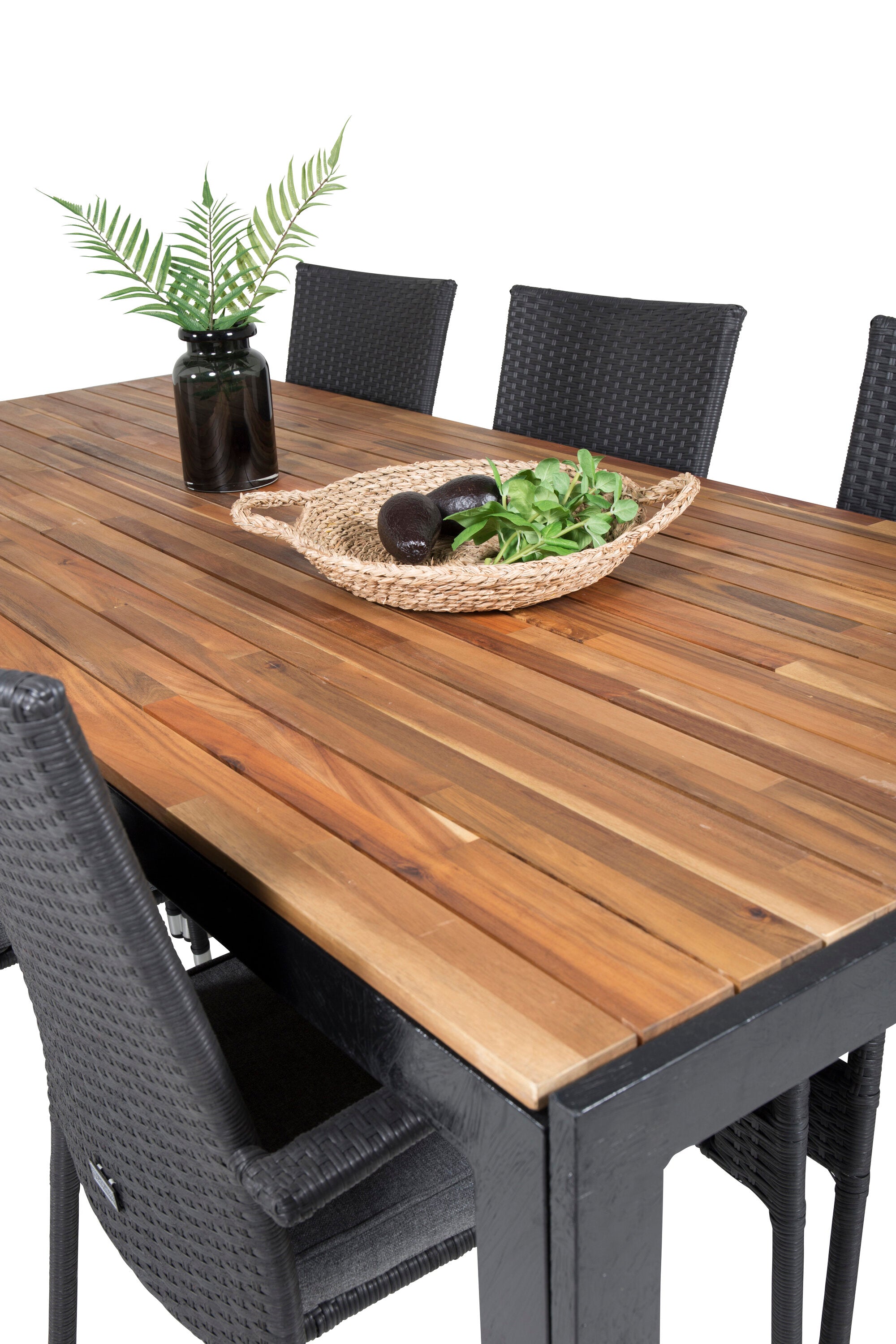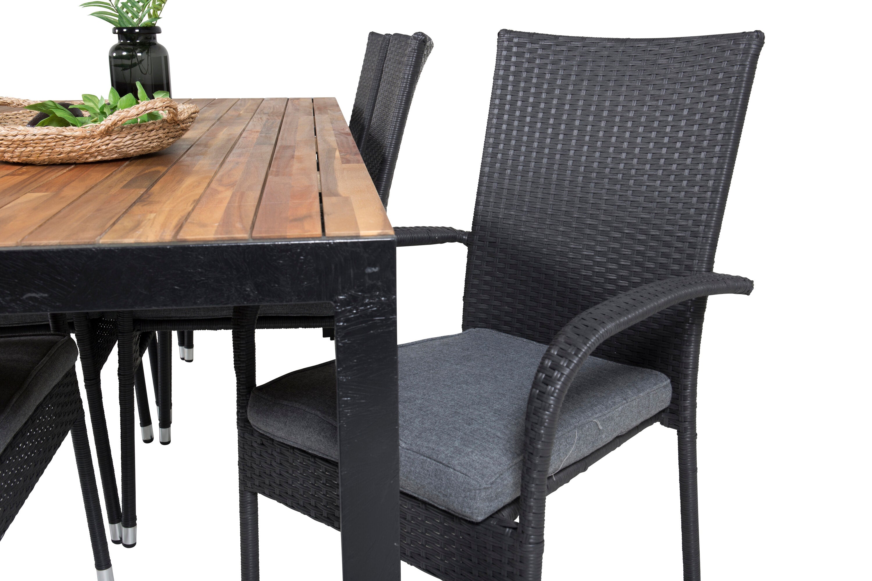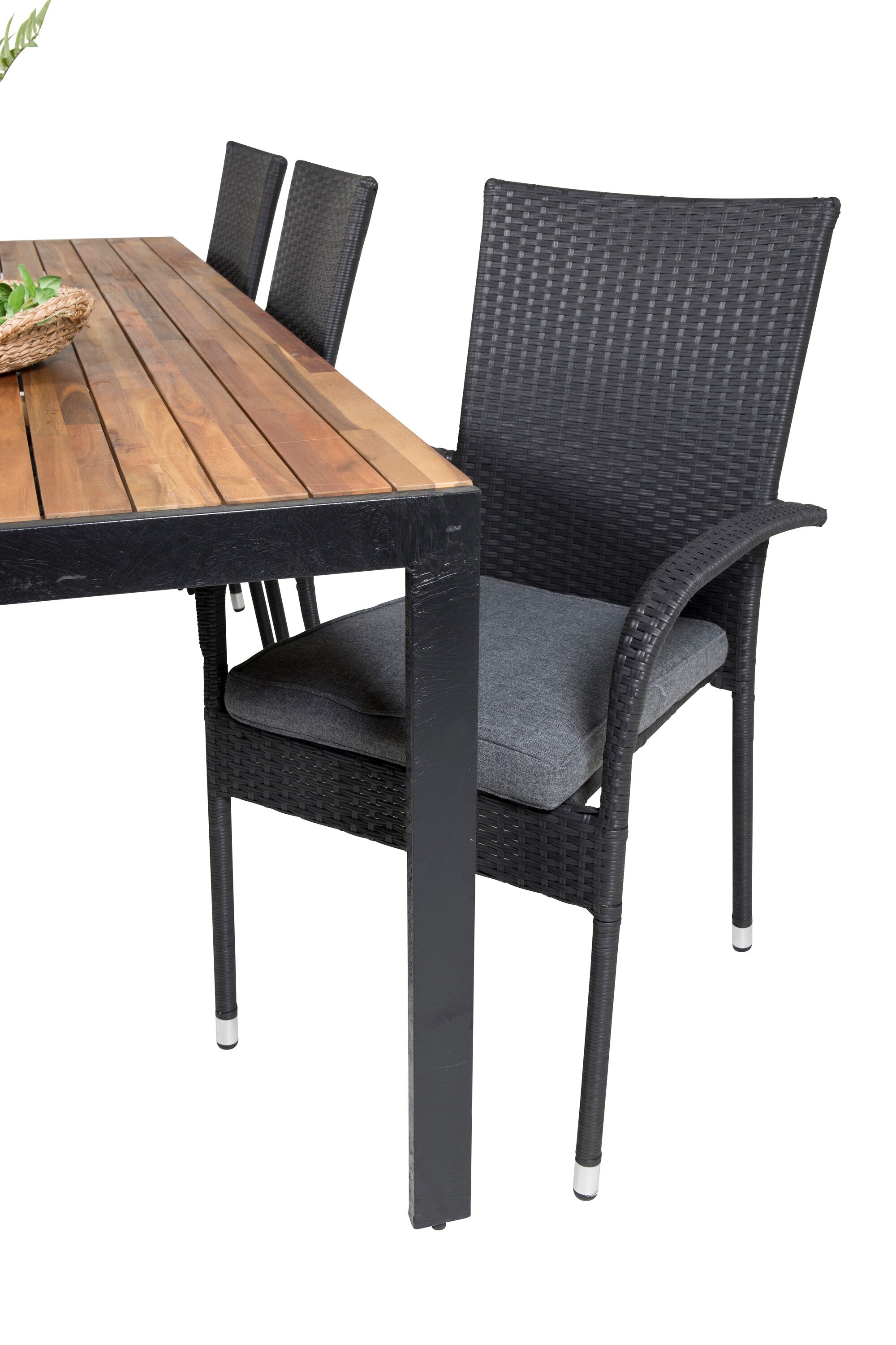 Bois Jídelní stůl 200*100cm - Černé nohy / Akácie + křeslo Anna (stohovatelné) -