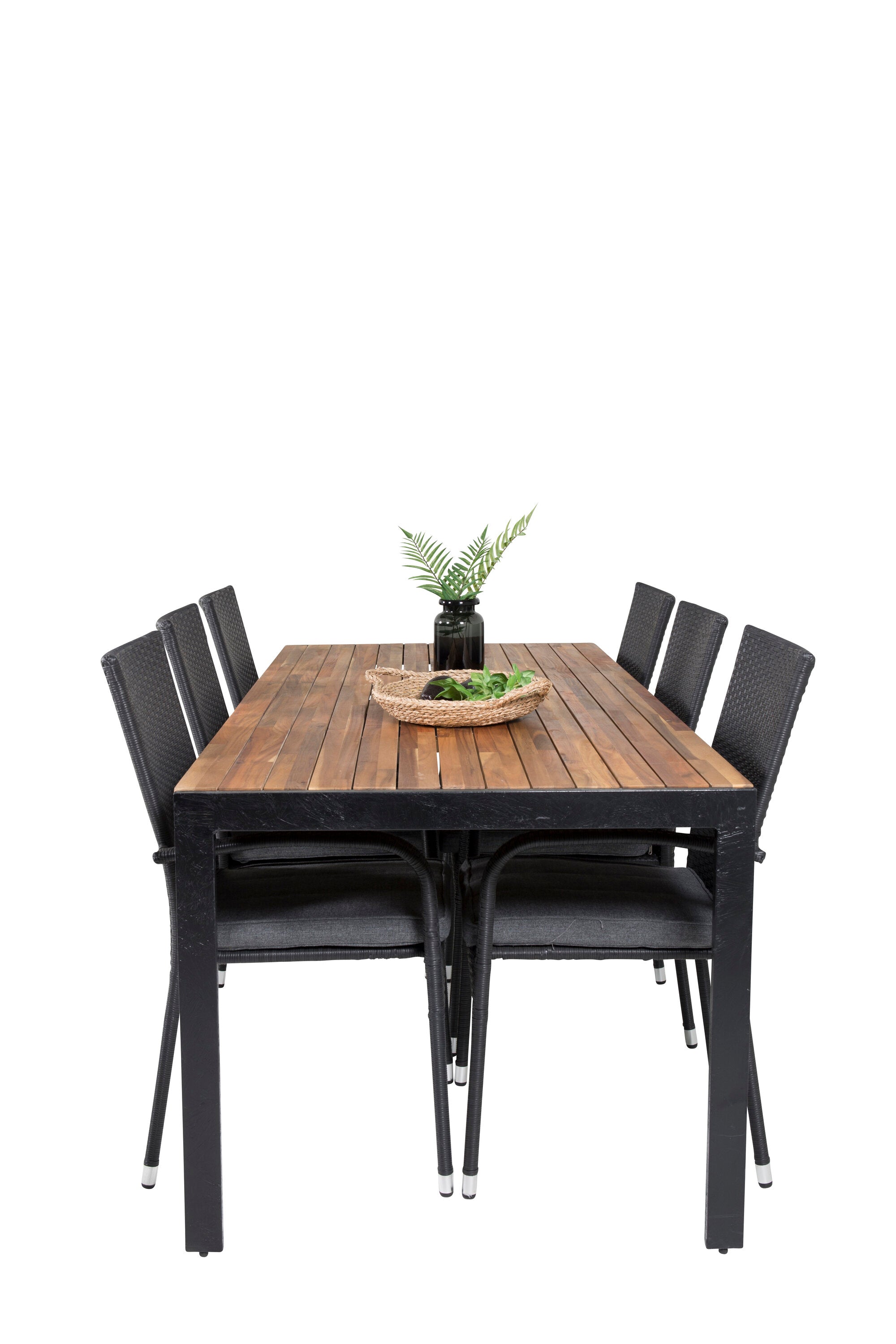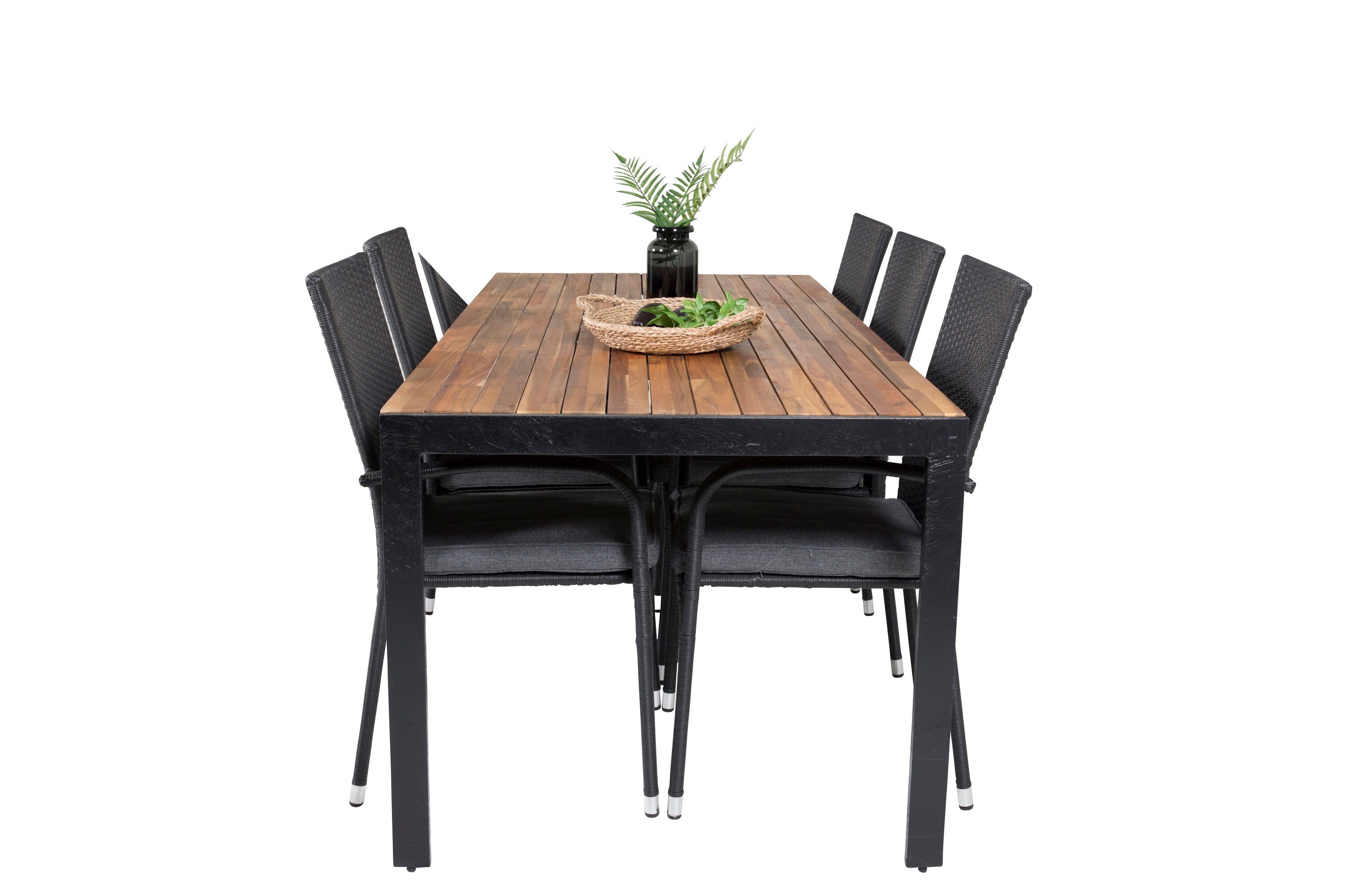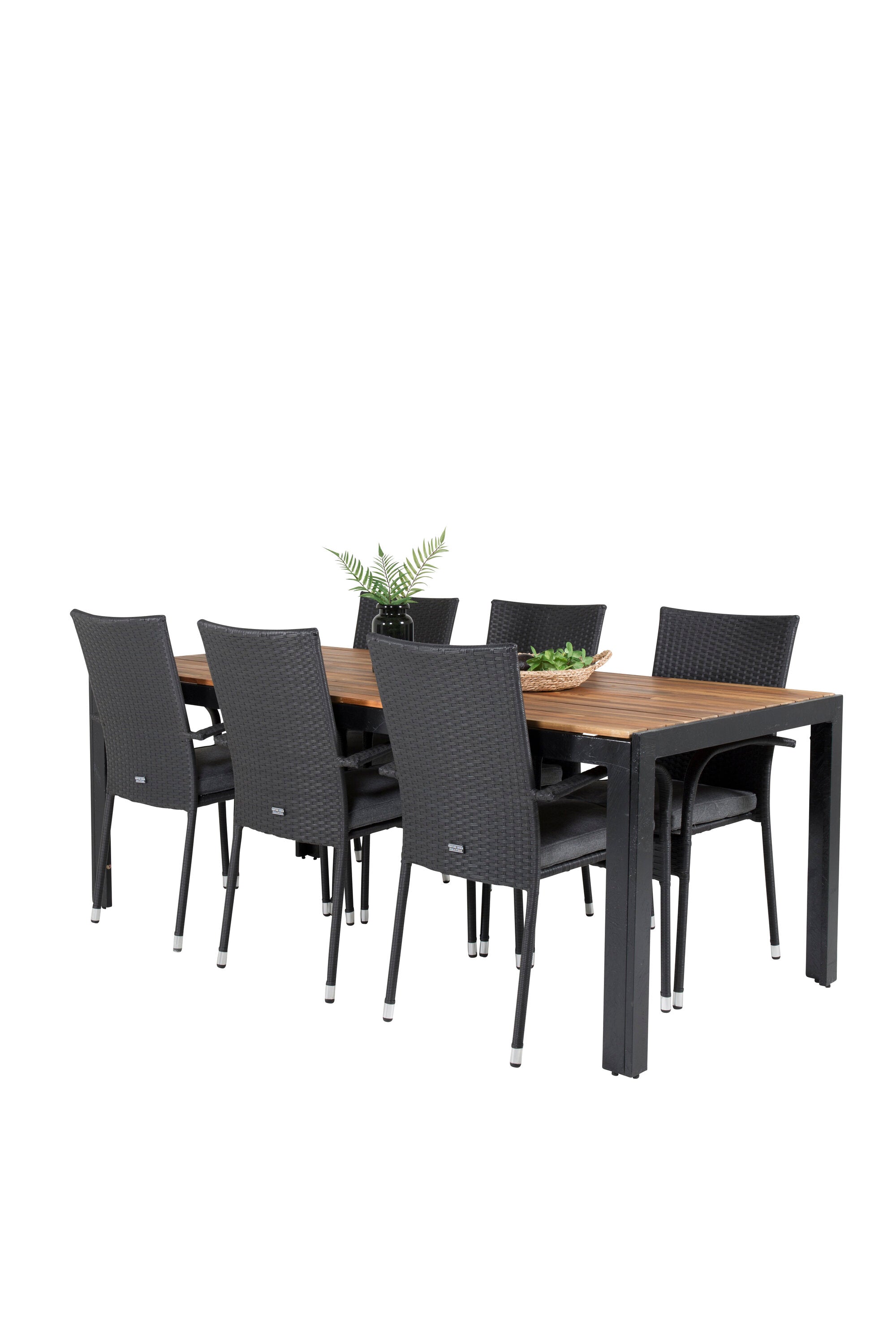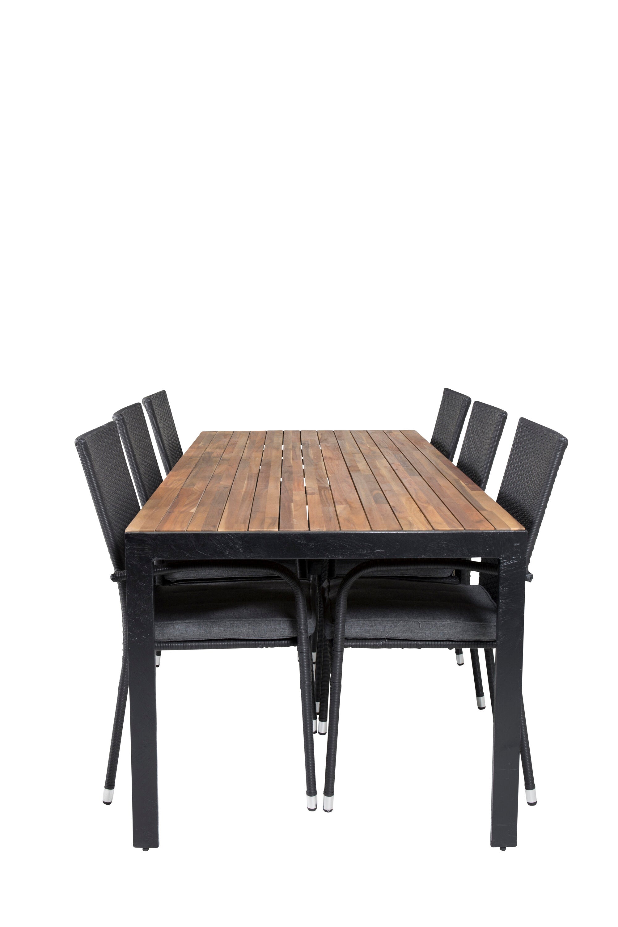 Bois Jídelní stůl 200*100cm - Černé nohy / Akácie + křeslo Anna (stohovatelné) -