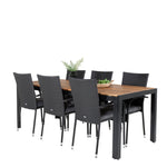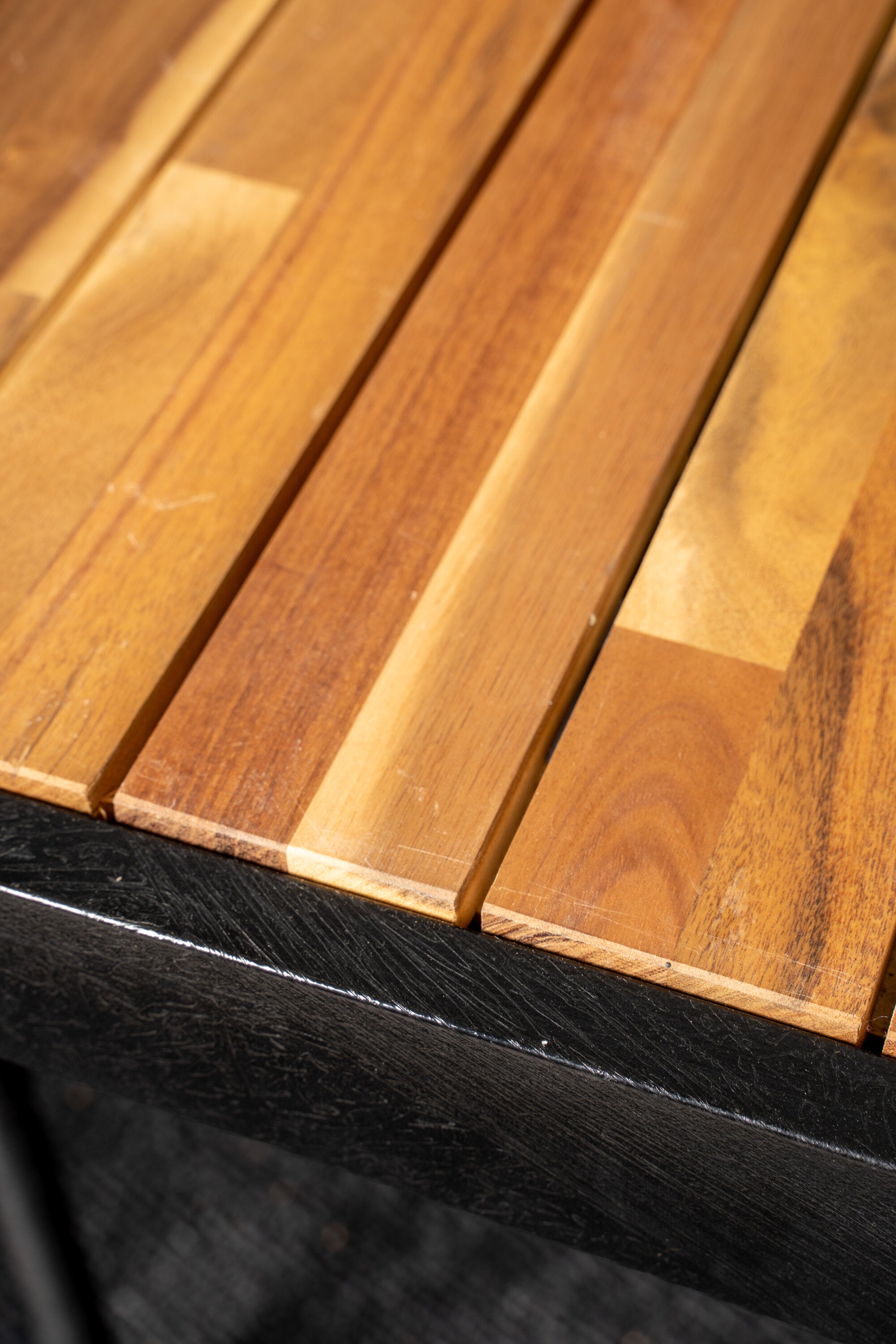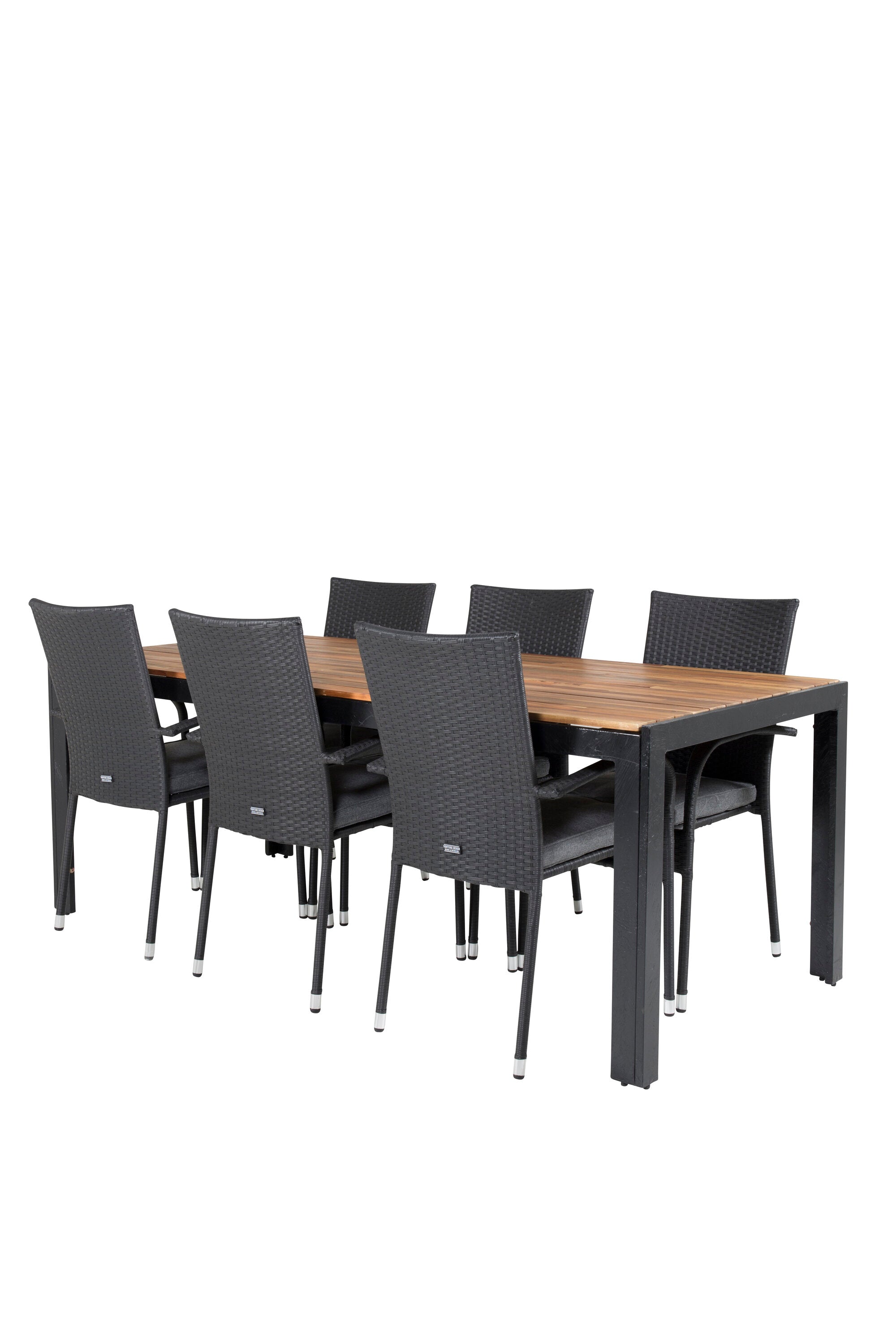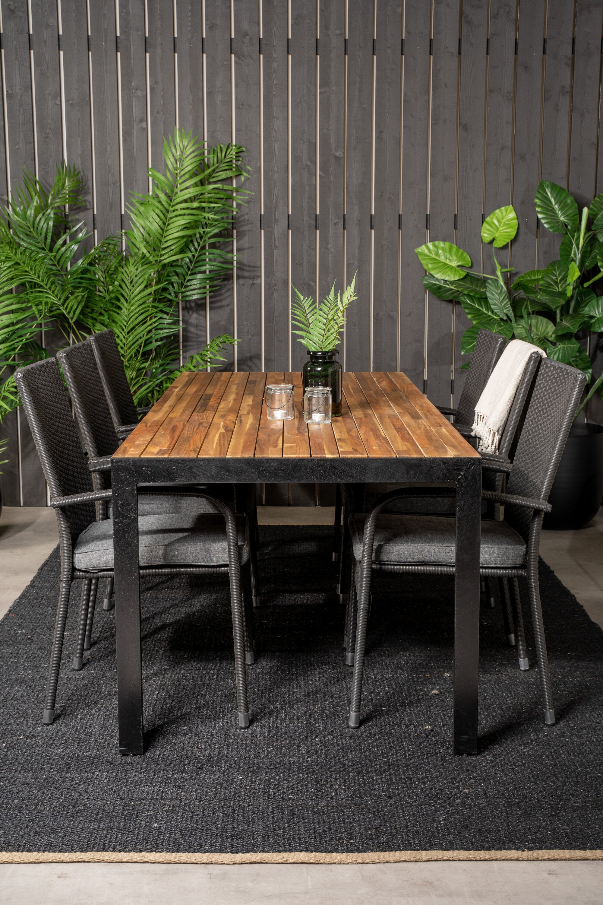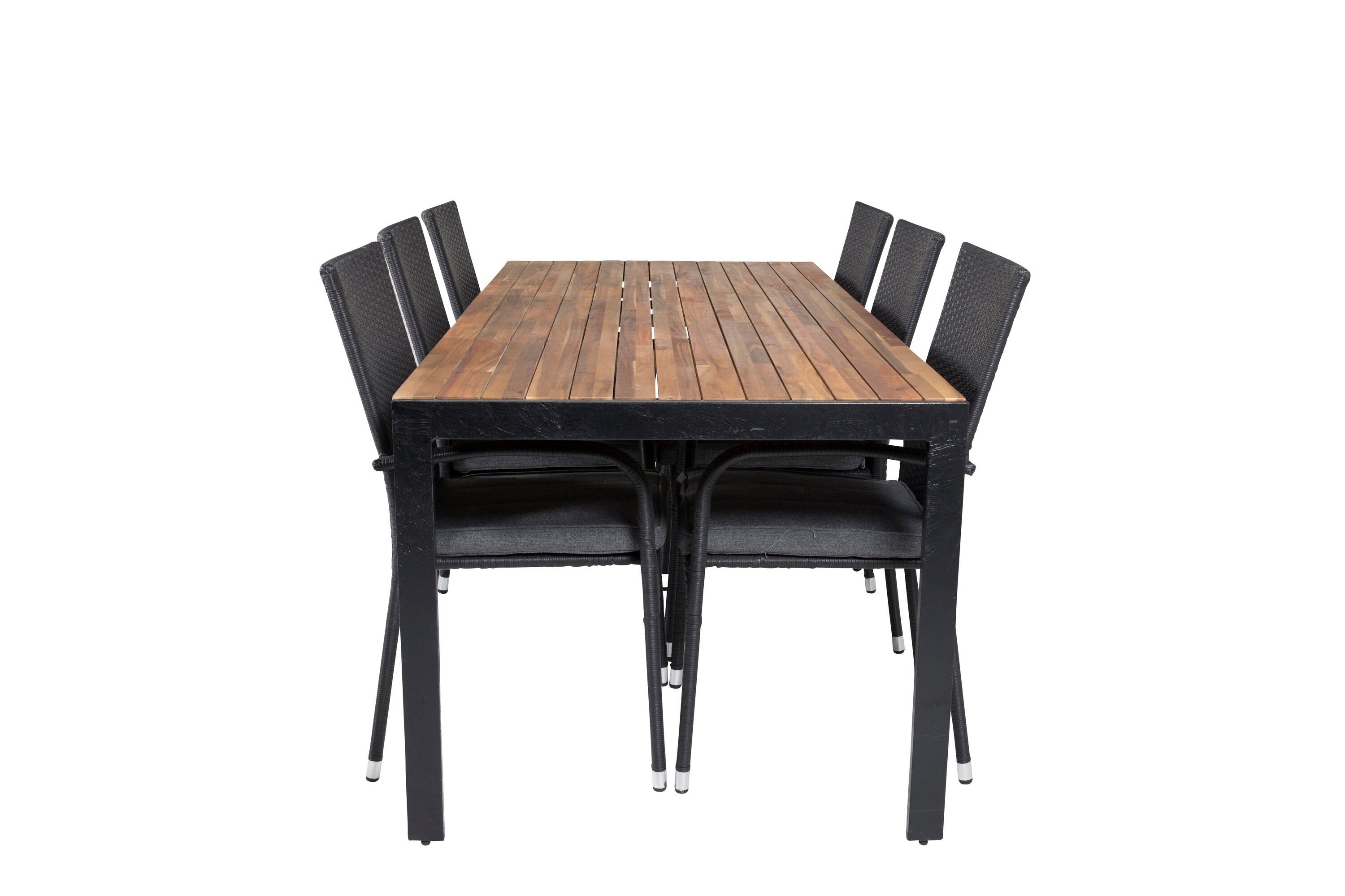 Bois Jídelní stůl 200*100cm - Černé nohy / Akácie + křeslo Anna (stohovatelné) -