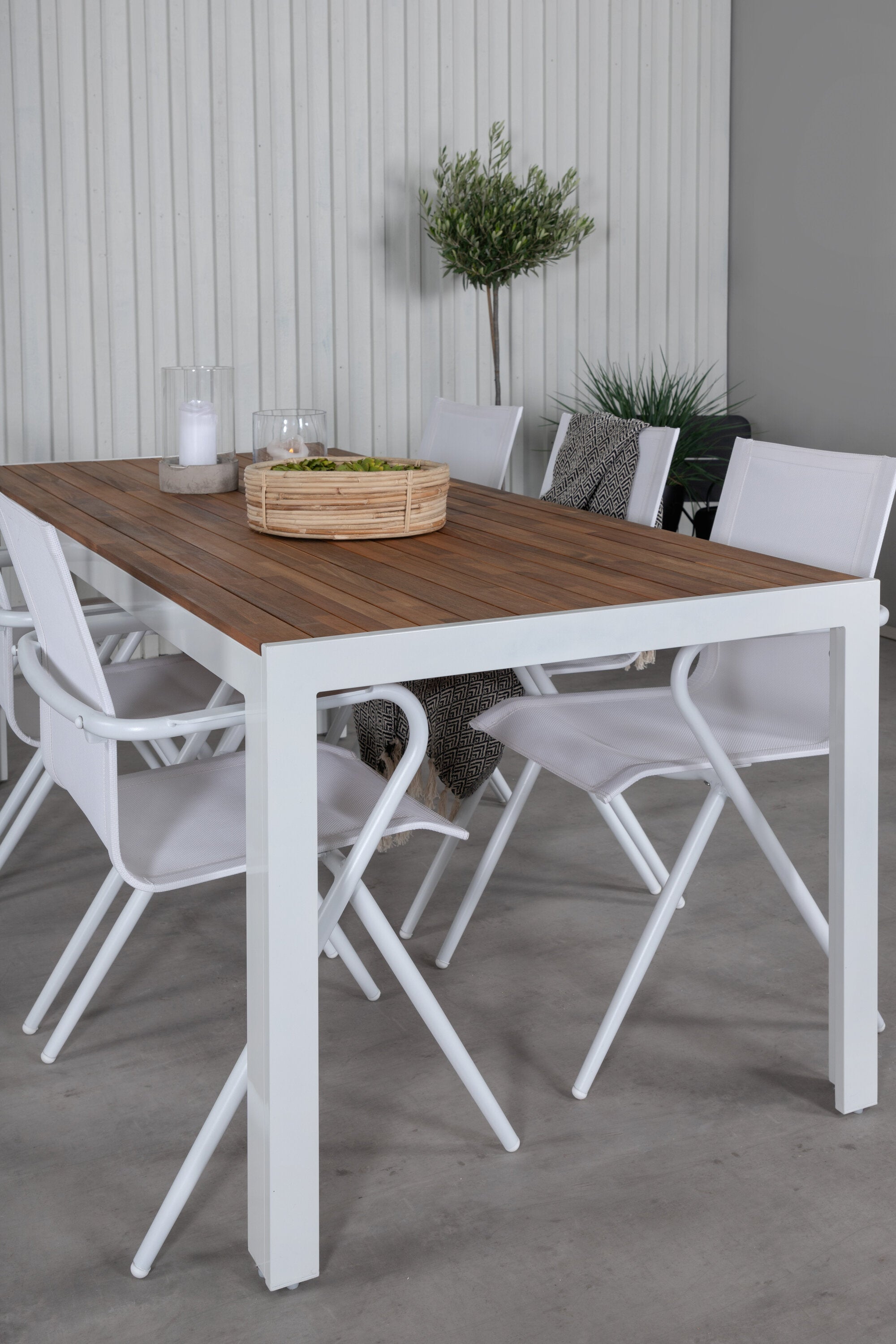 Bois Jídelní stůl 205*90cm - Bílá Alu / Akácie +Alina Jídelní židle - Bílá Alu / Bílá Textilene_6