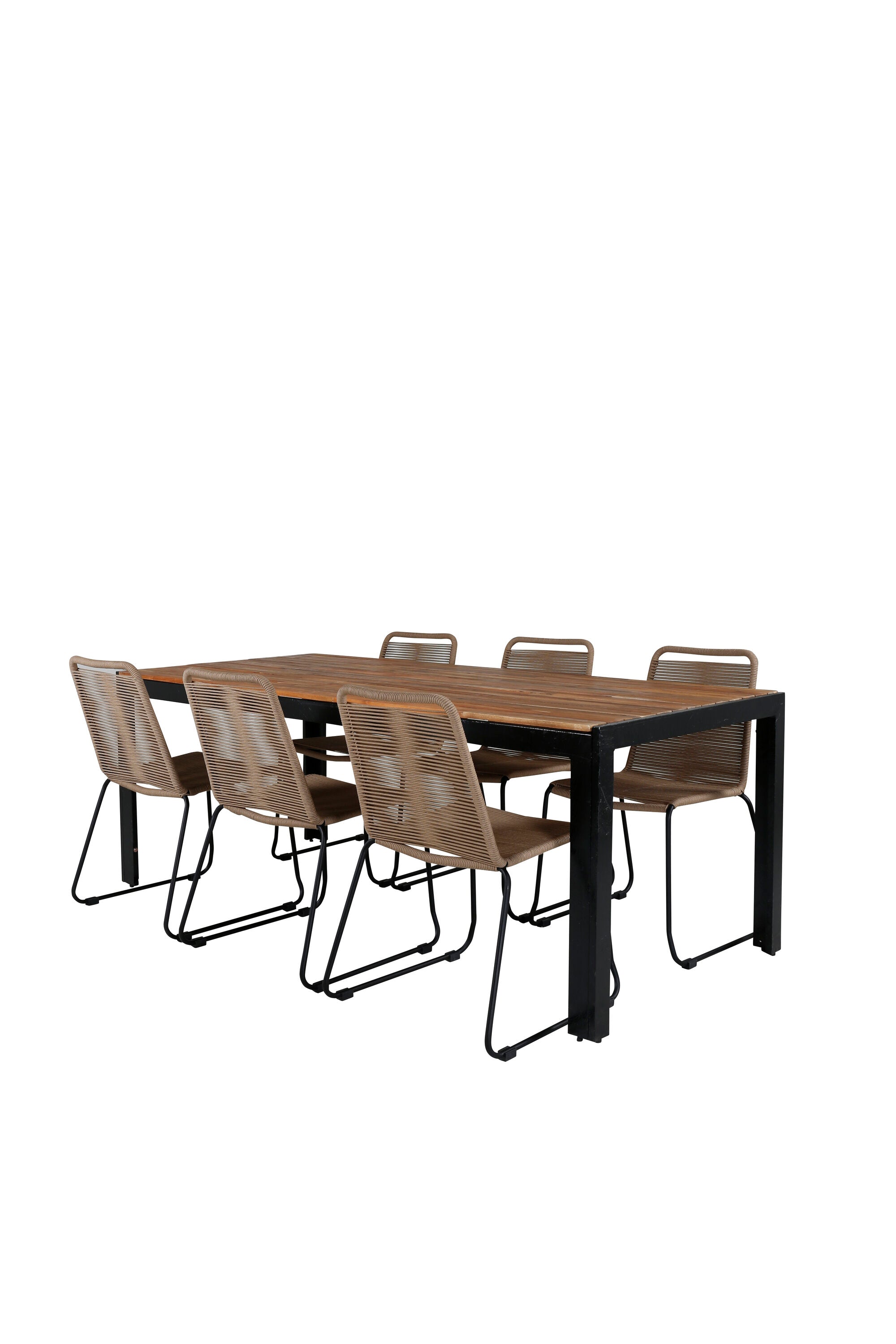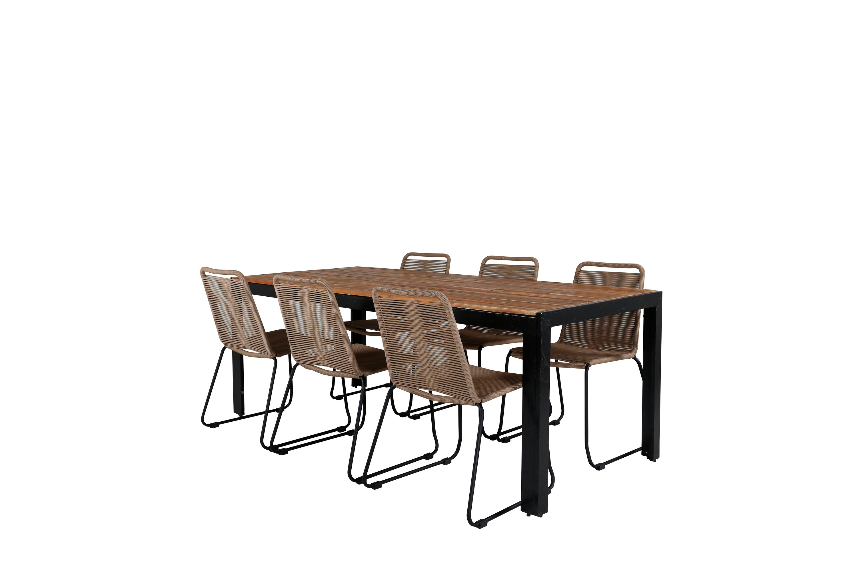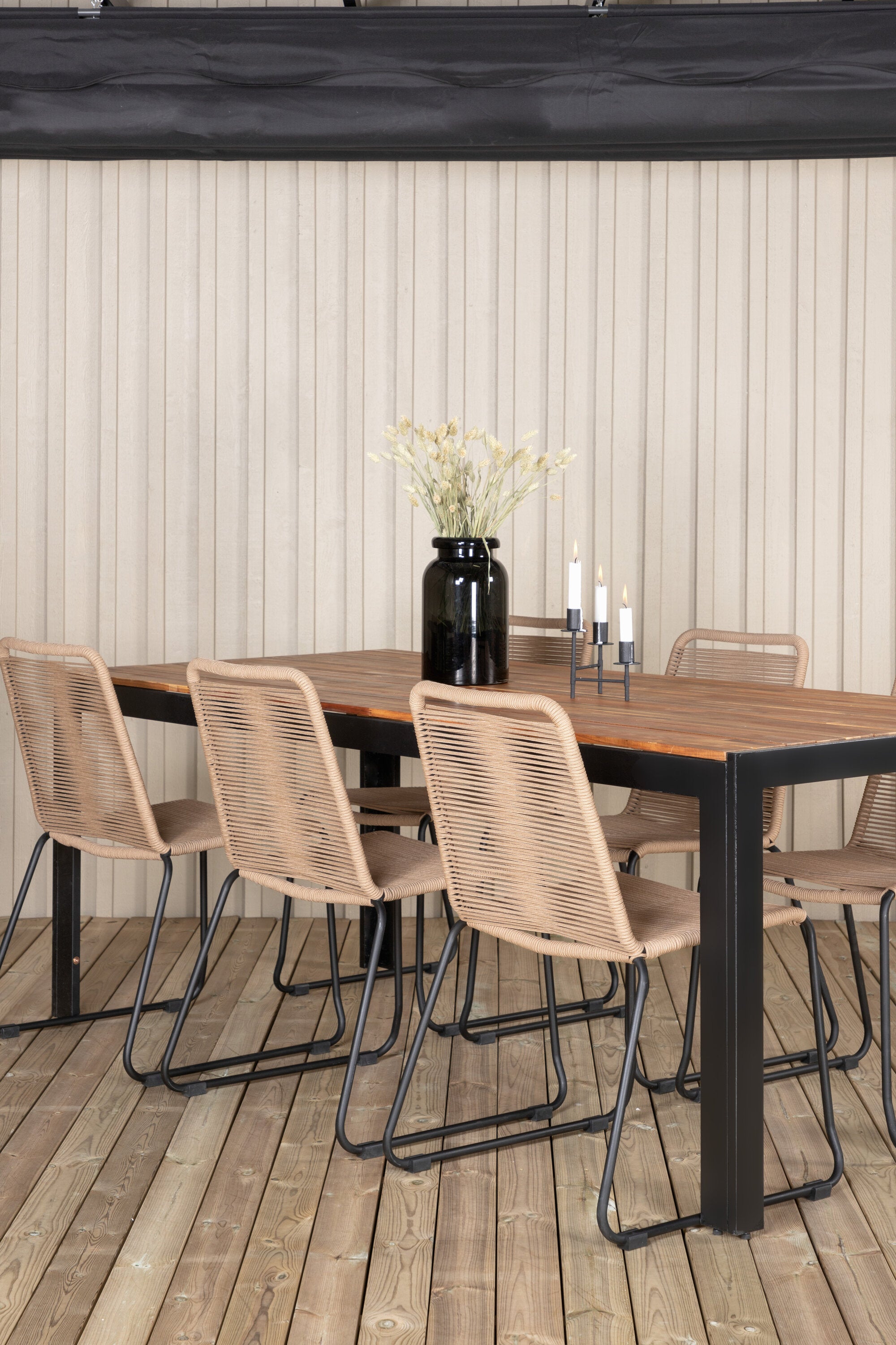 Bois Jídelní stůl 205*90cm - Černé nohy / Acacia +Lindos Stohovací židle - Black Alu / Latte Rope_6