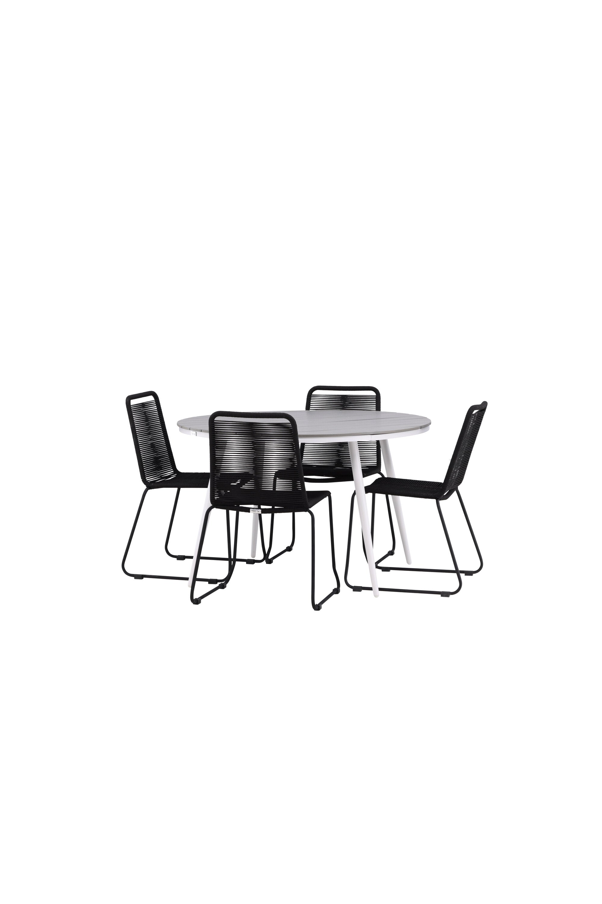 Break - Jídelní stůl kulatý - Bílá / Šedá - Alu / Aintwood - 120ø _1+ Lindos Stohovací židle - Černá Alu / Černé lano _4