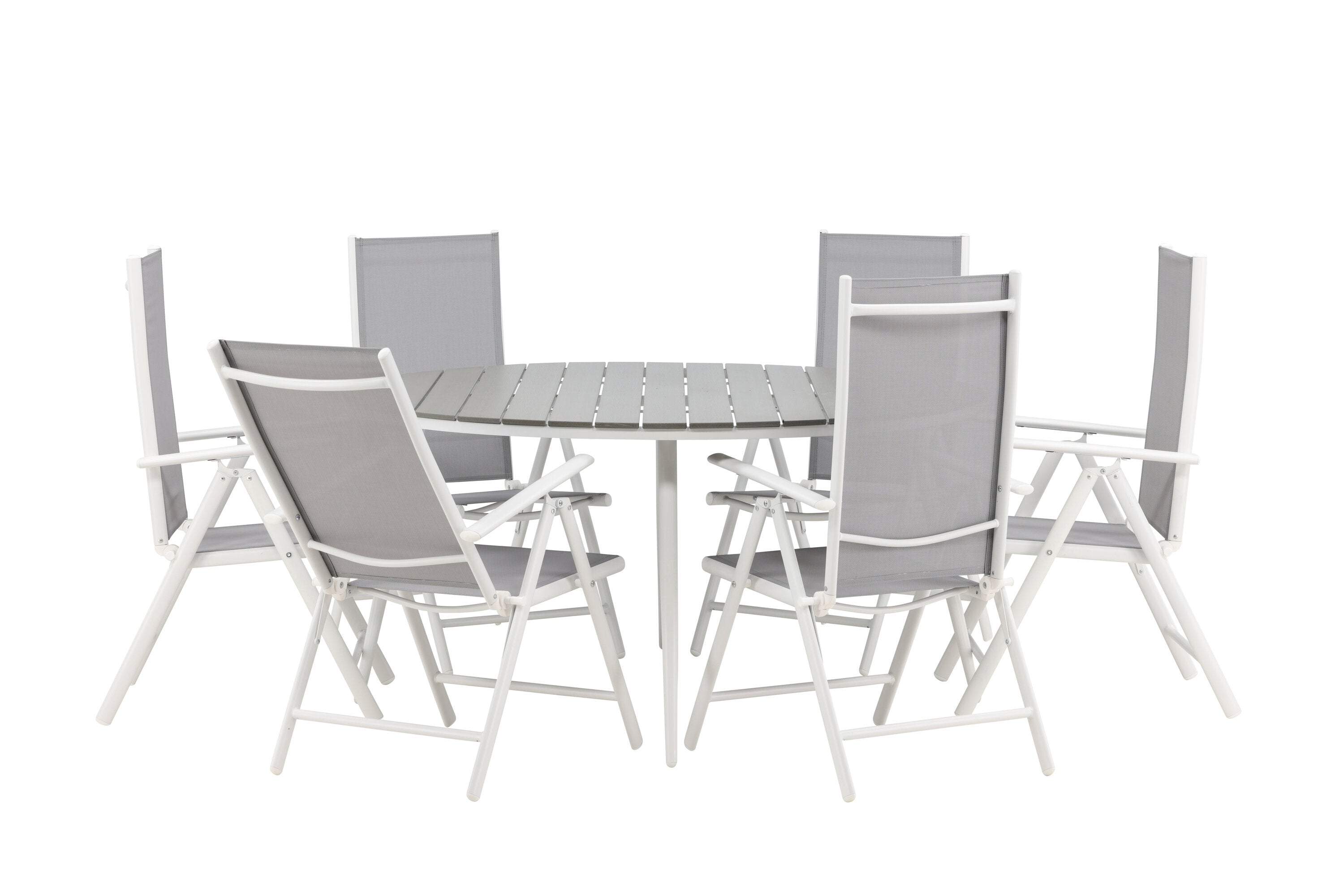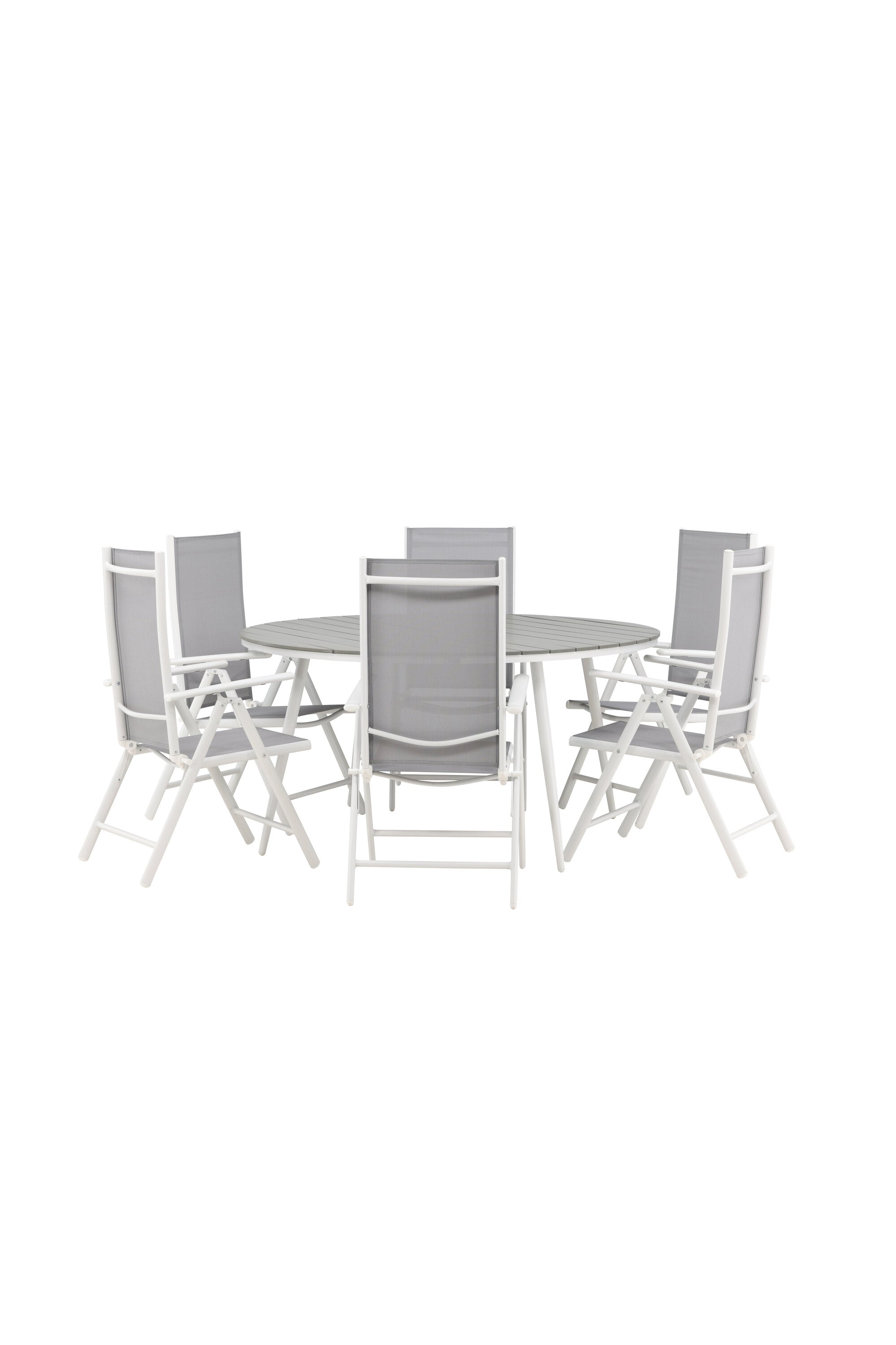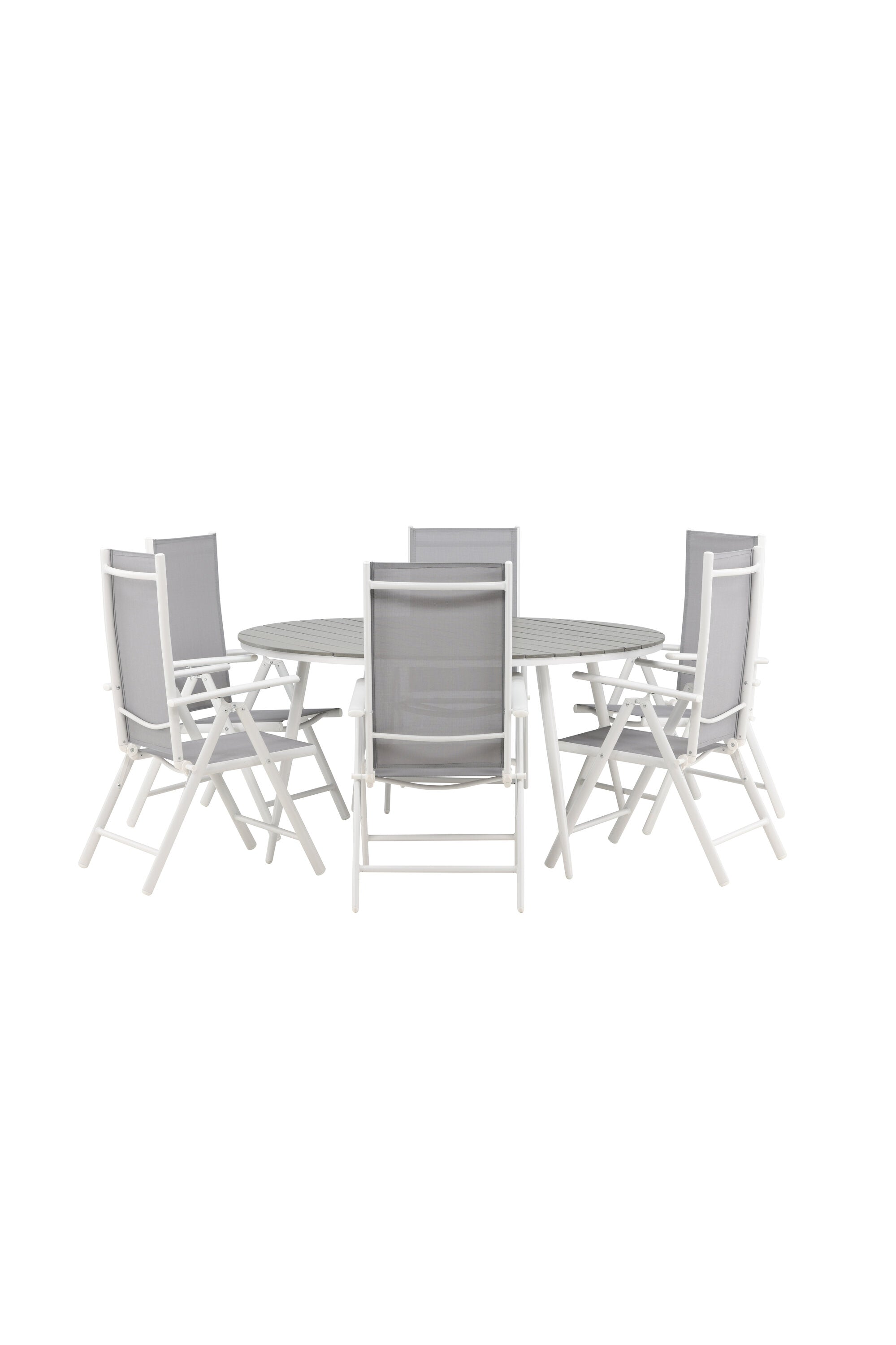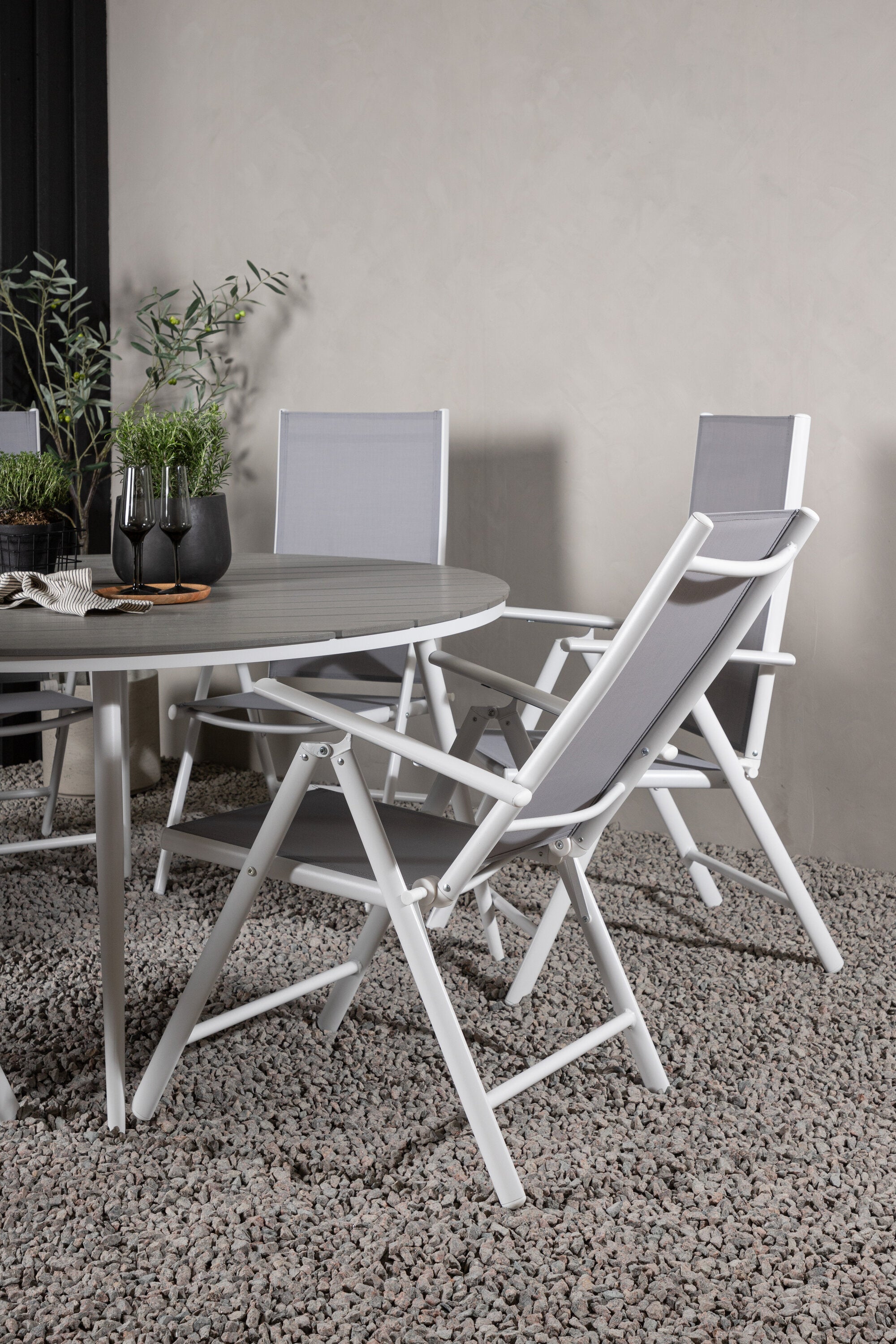 Break - Jídelní stůl kulatý- Bílá / Šedá - Alu / Aintwood - 150ø _1+ Break 5:pos Židle - Bílá/Šedá _6