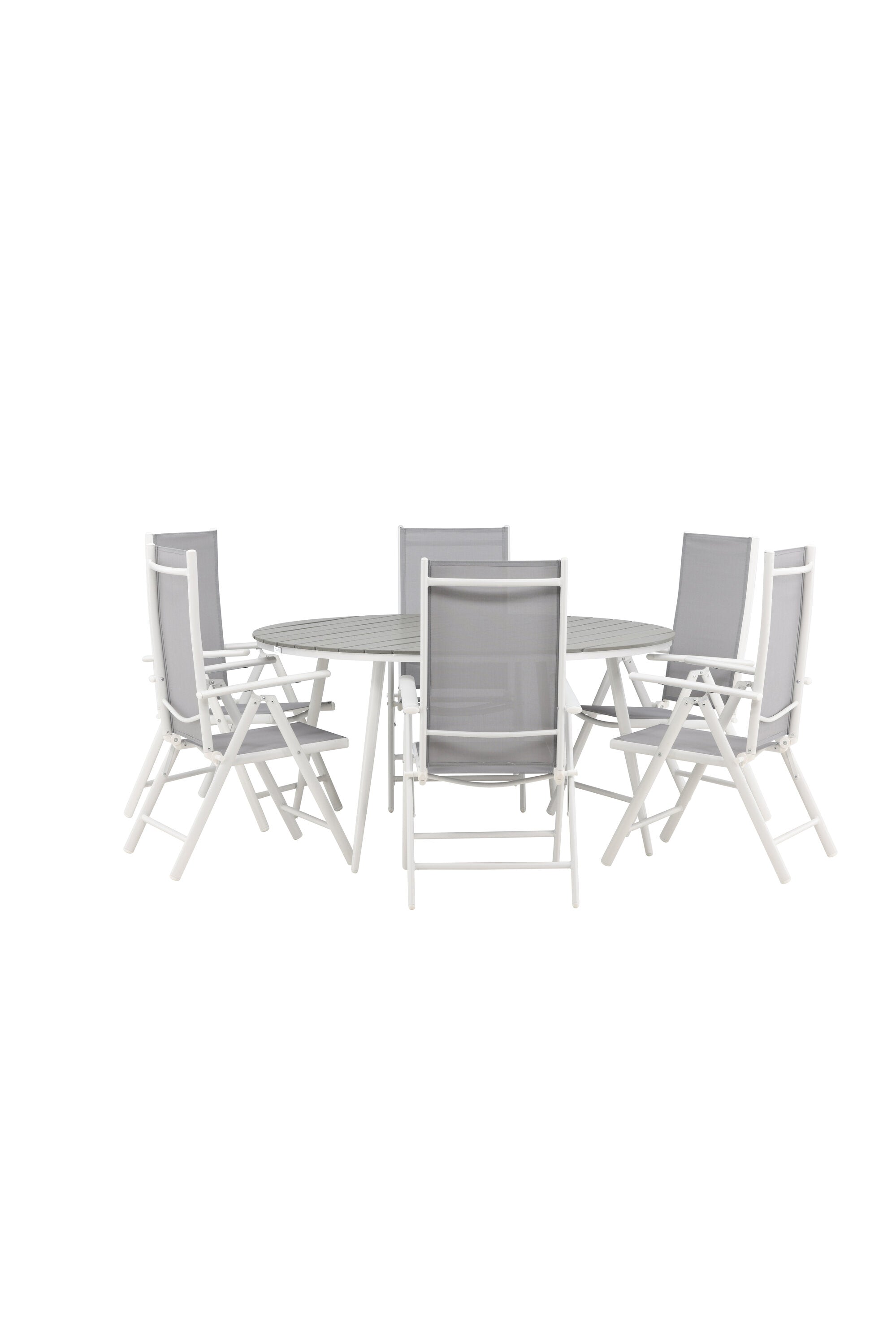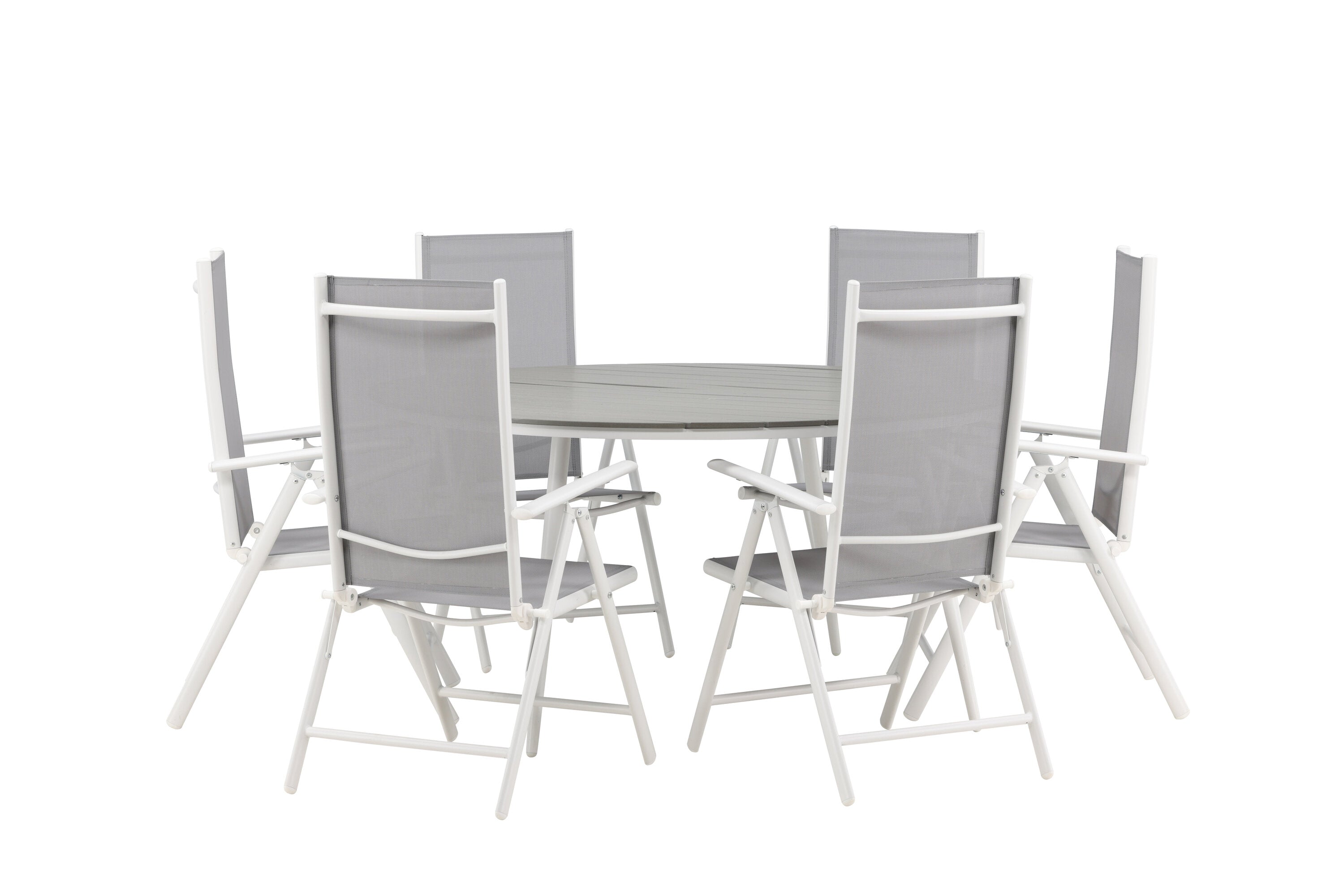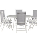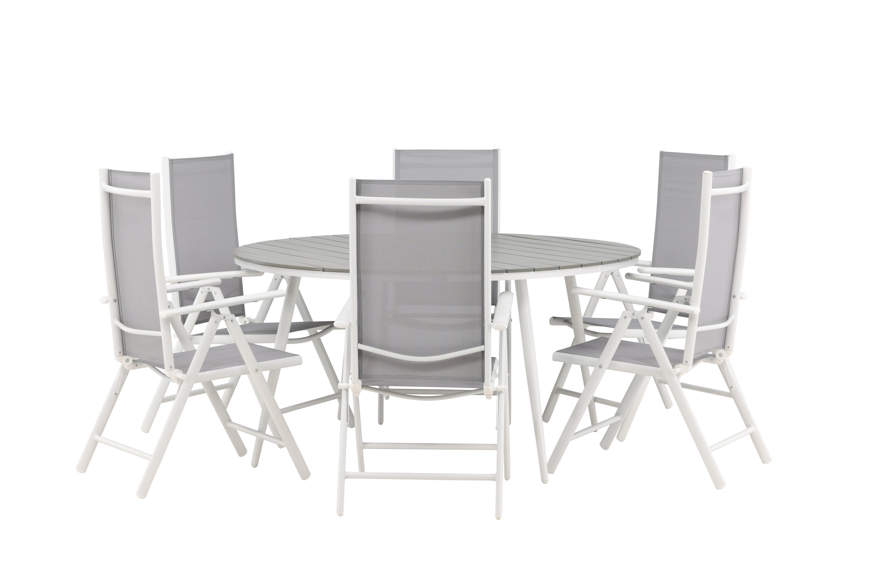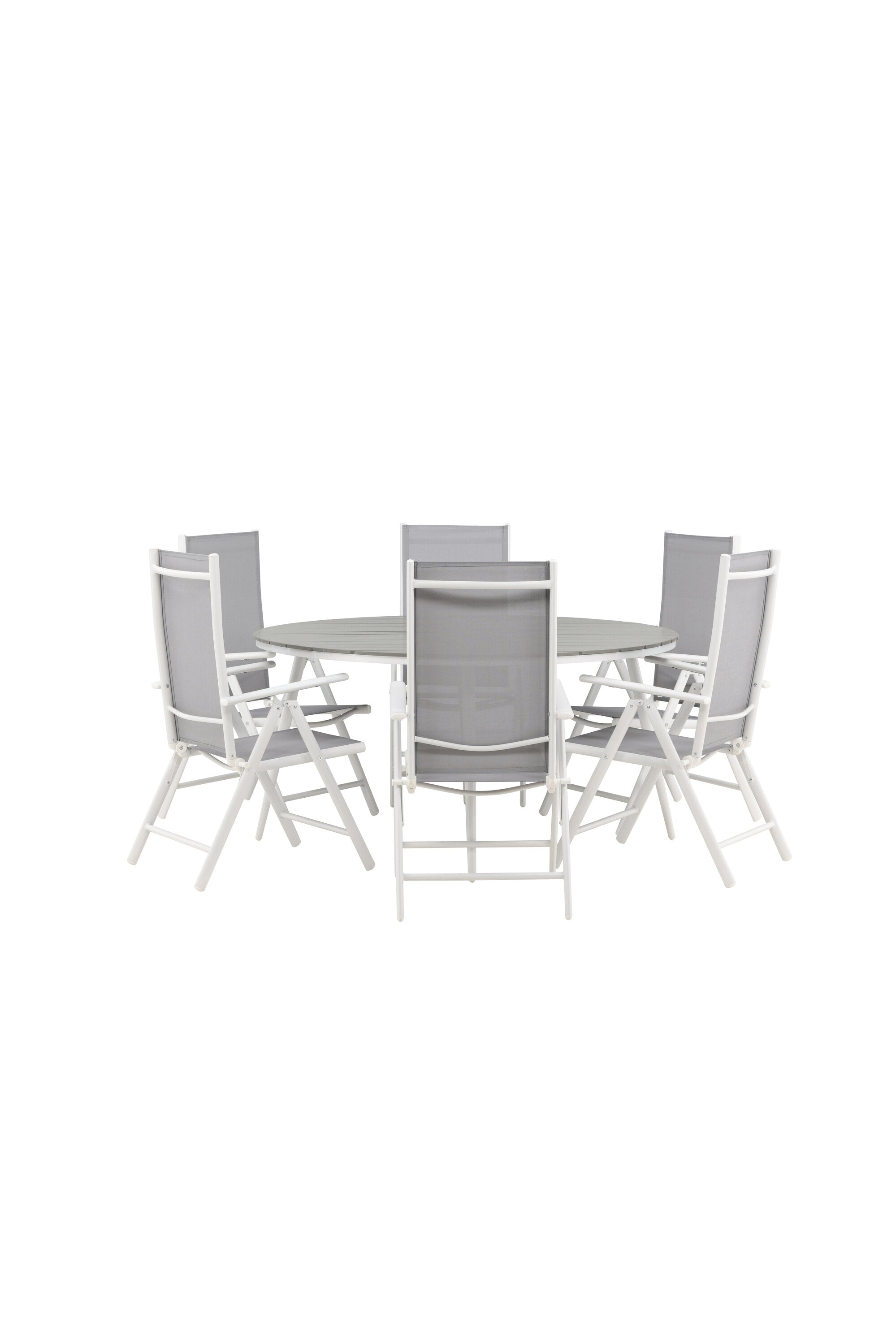 Break - Jídelní stůl kulatý- Bílá / Šedá - Alu / Aintwood - 150ø _1+ Break 5:pos Židle - Bílá/Šedá _6