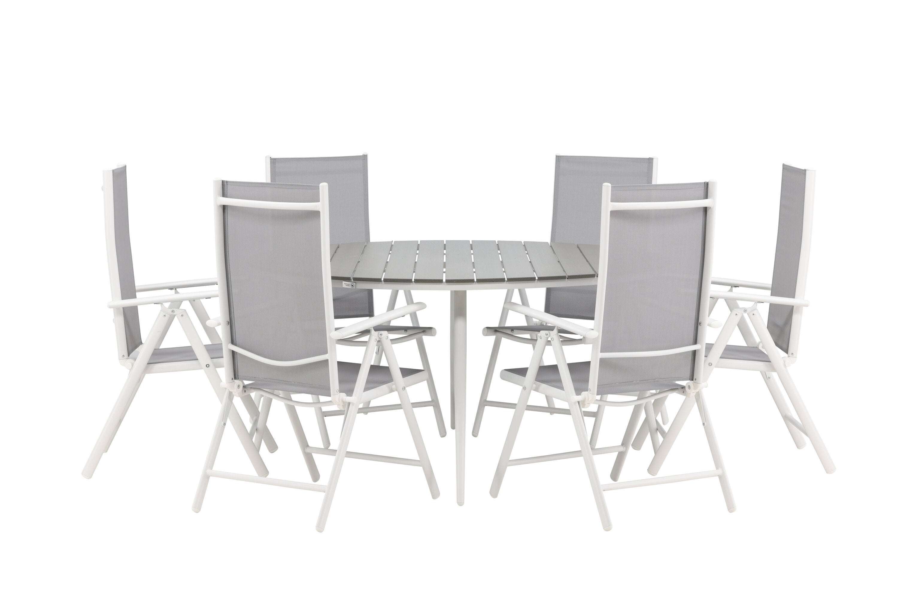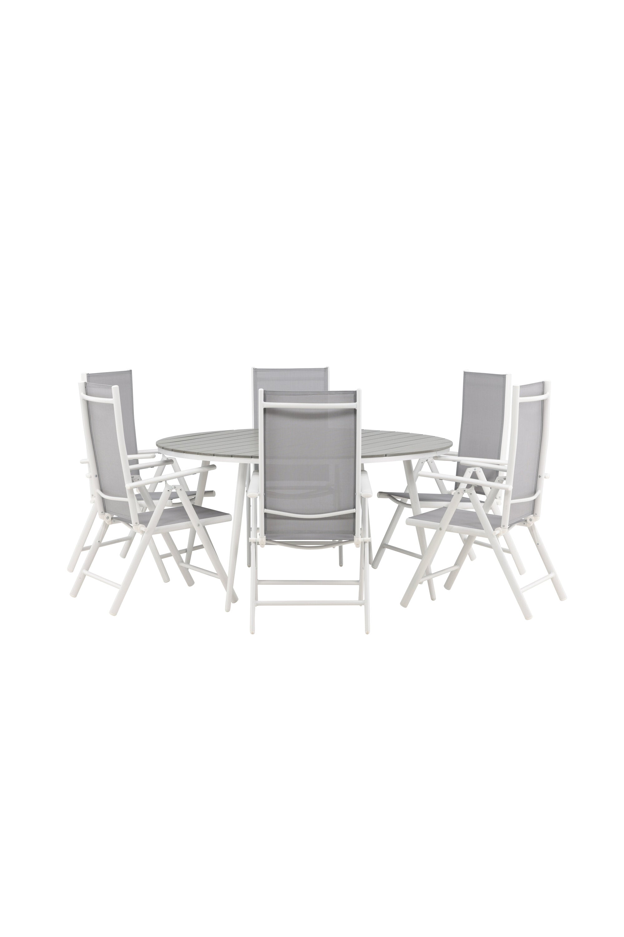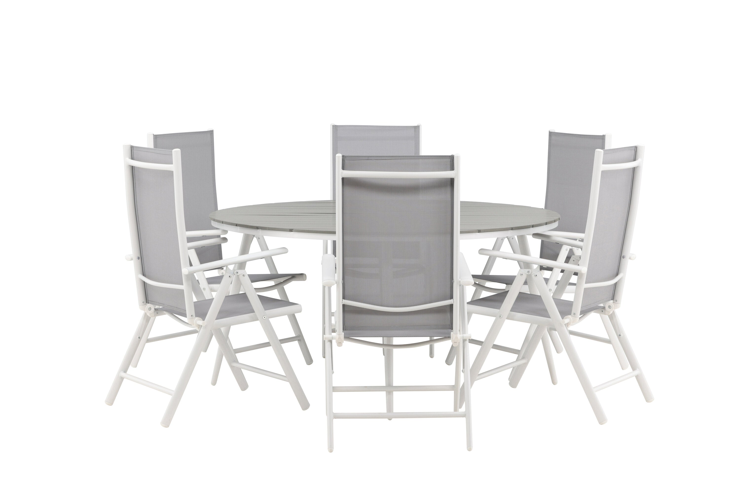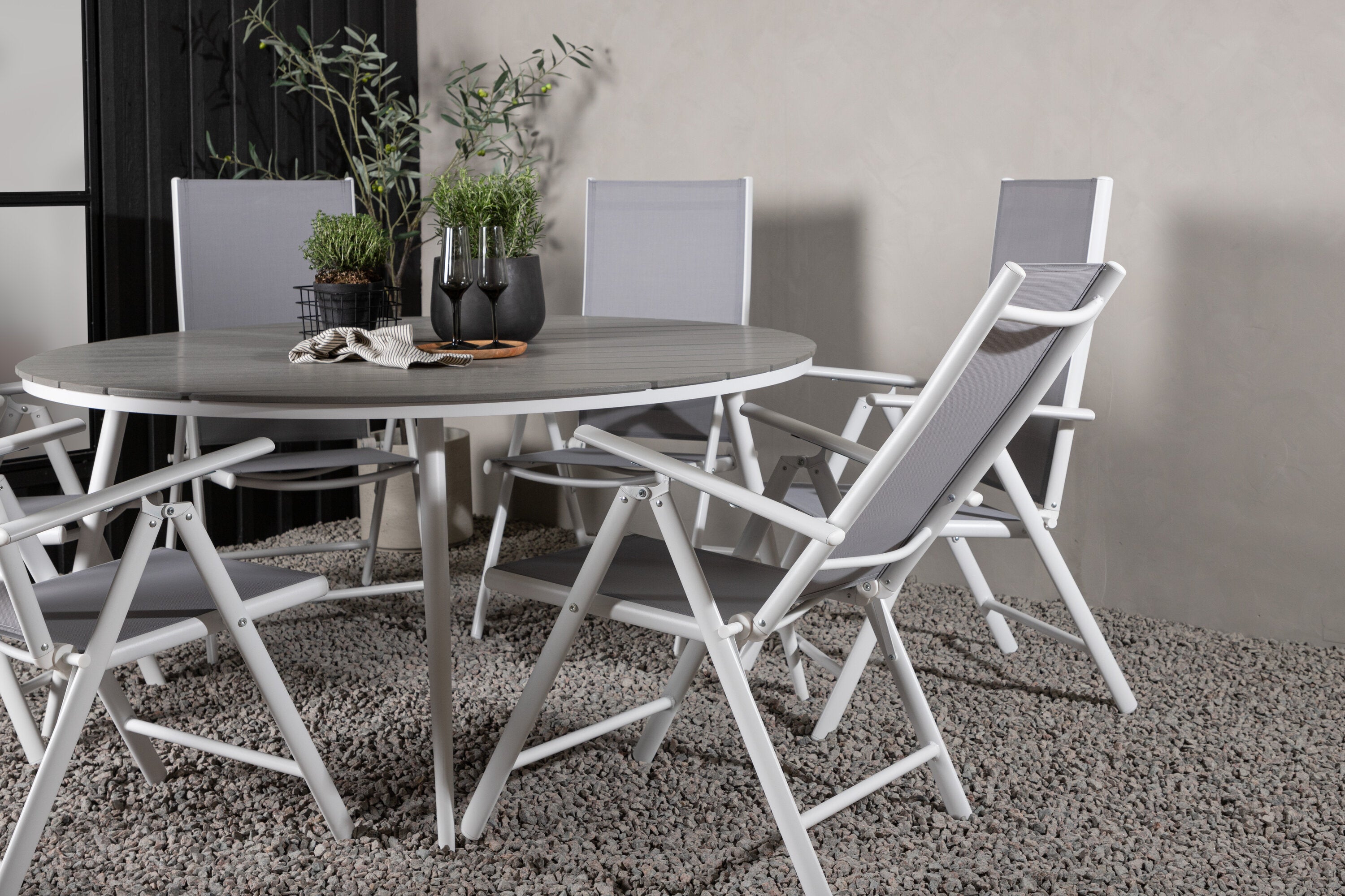 Break - Jídelní stůl kulatý- Bílá / Šedá - Alu / Aintwood - 150ø _1+ Break 5:pos Židle - Bílá/Šedá _6